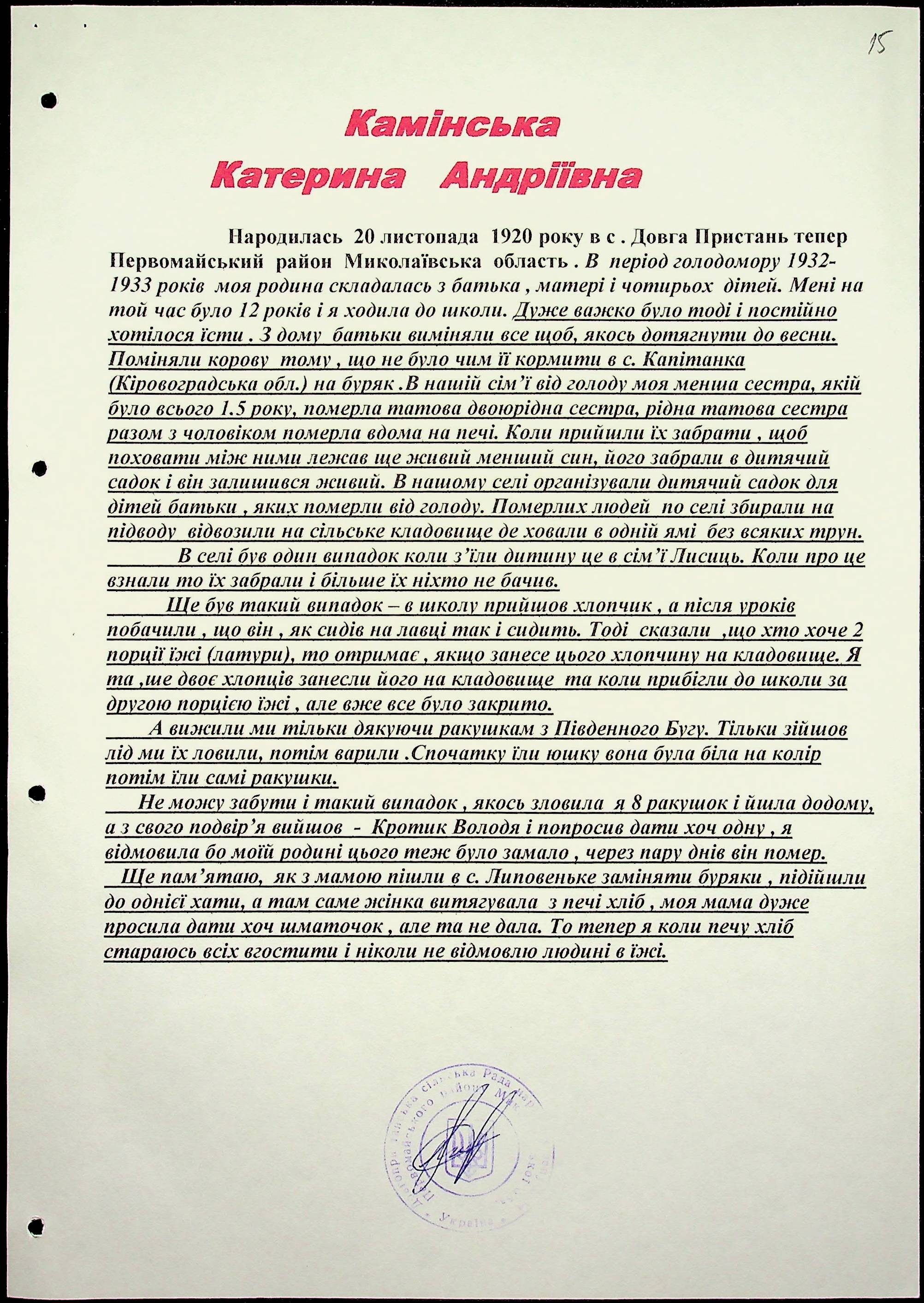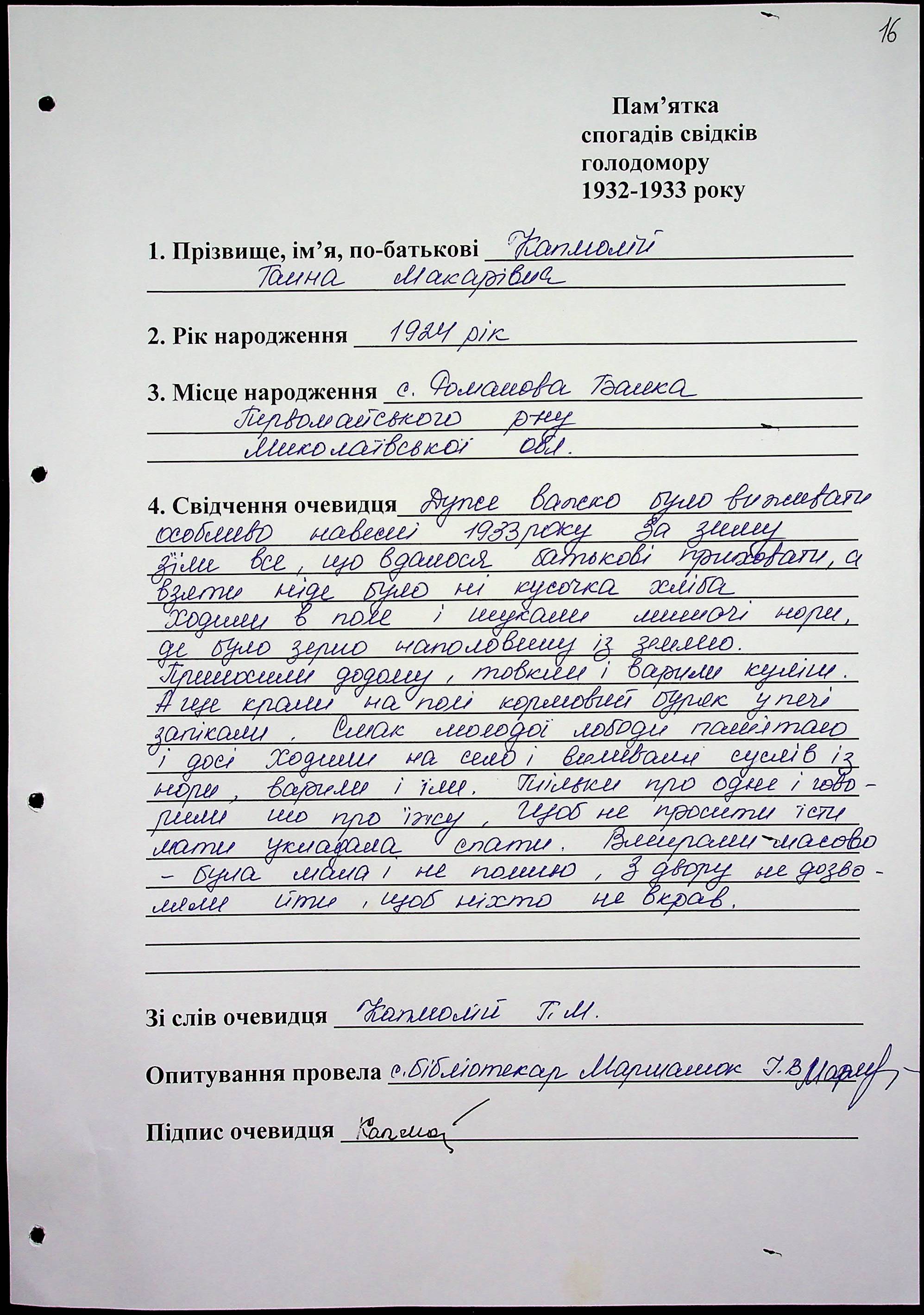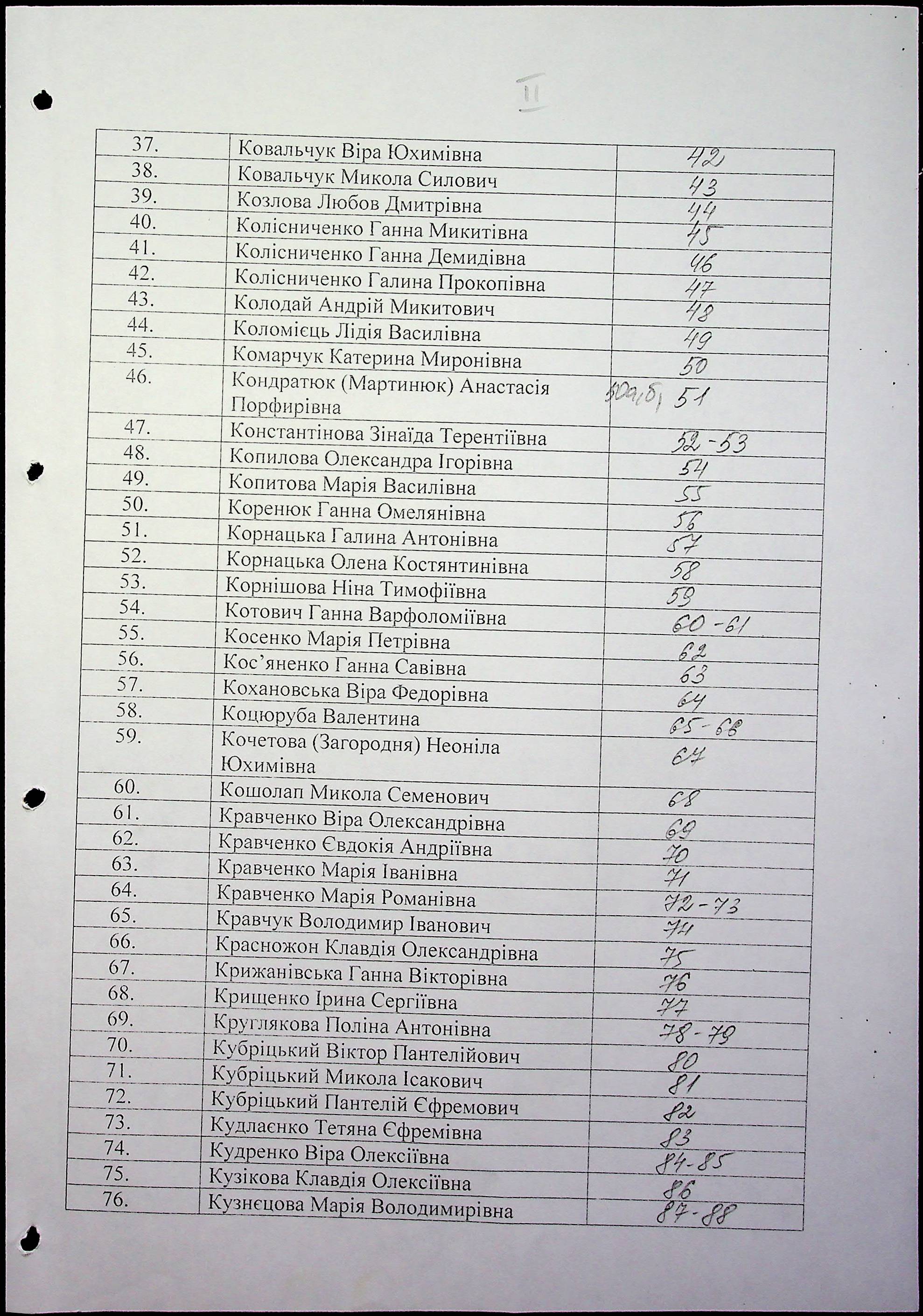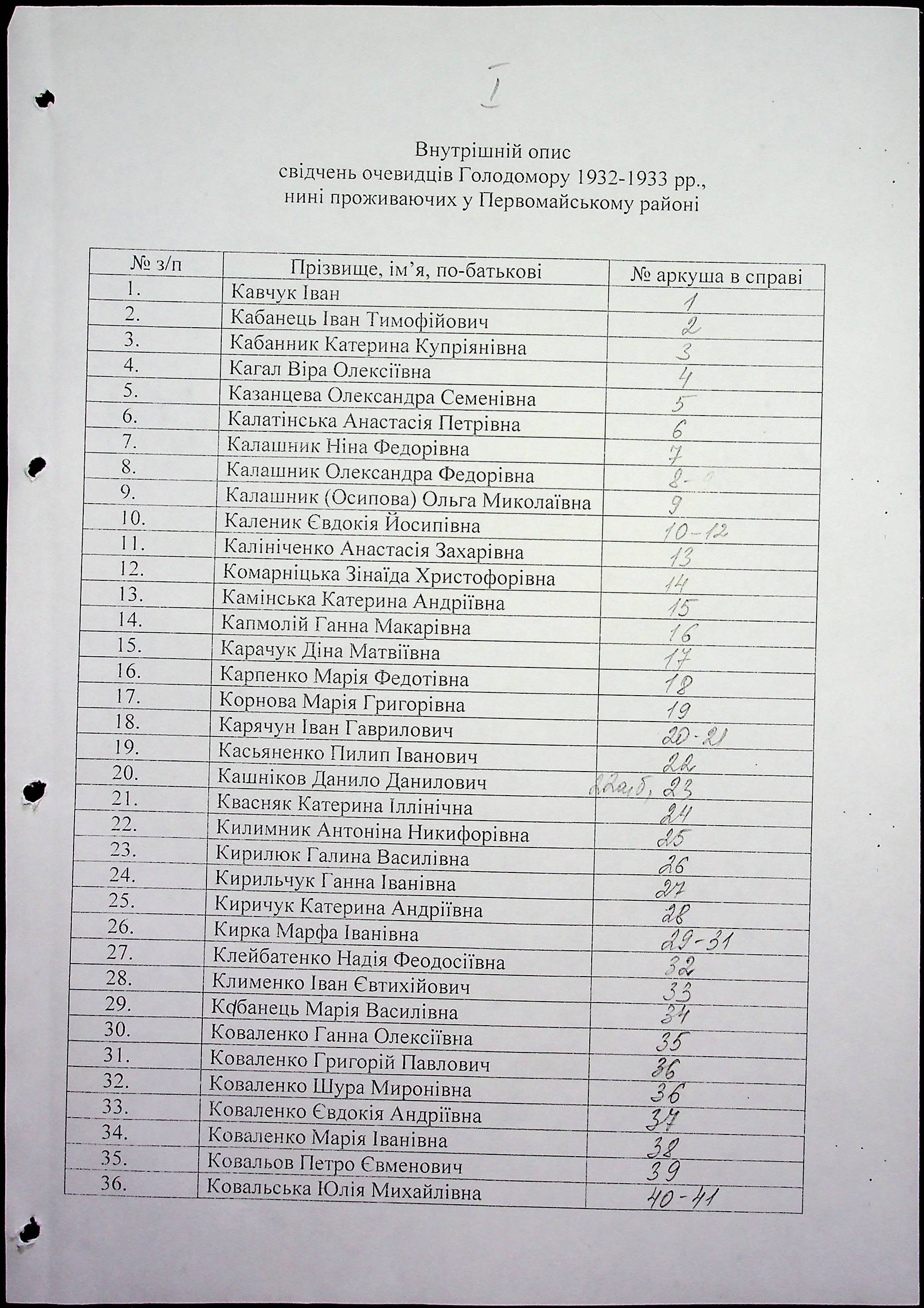 • • • • Справа № 61 “Свідчення очевидців Голодомору 1932-1933 років, які проживають у Первомайському районі, з прізвищами на літери К–П”