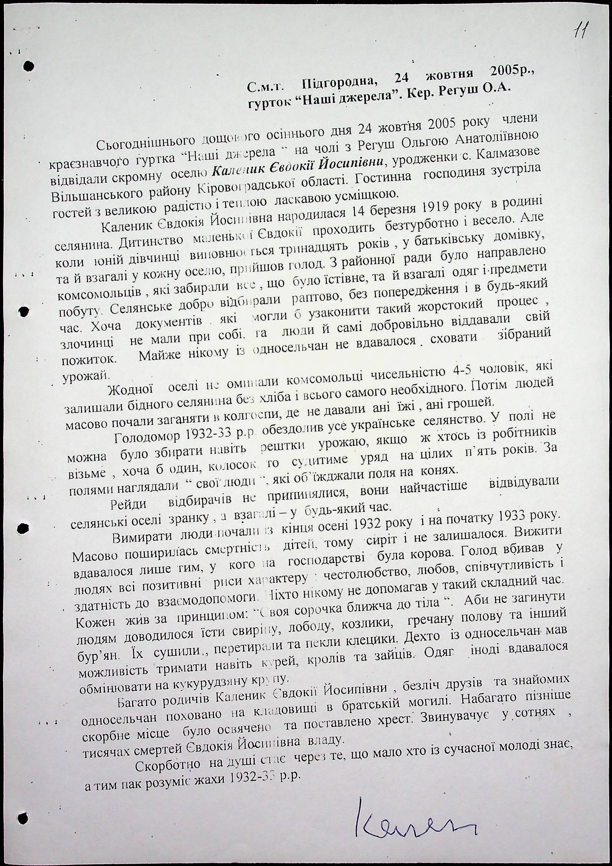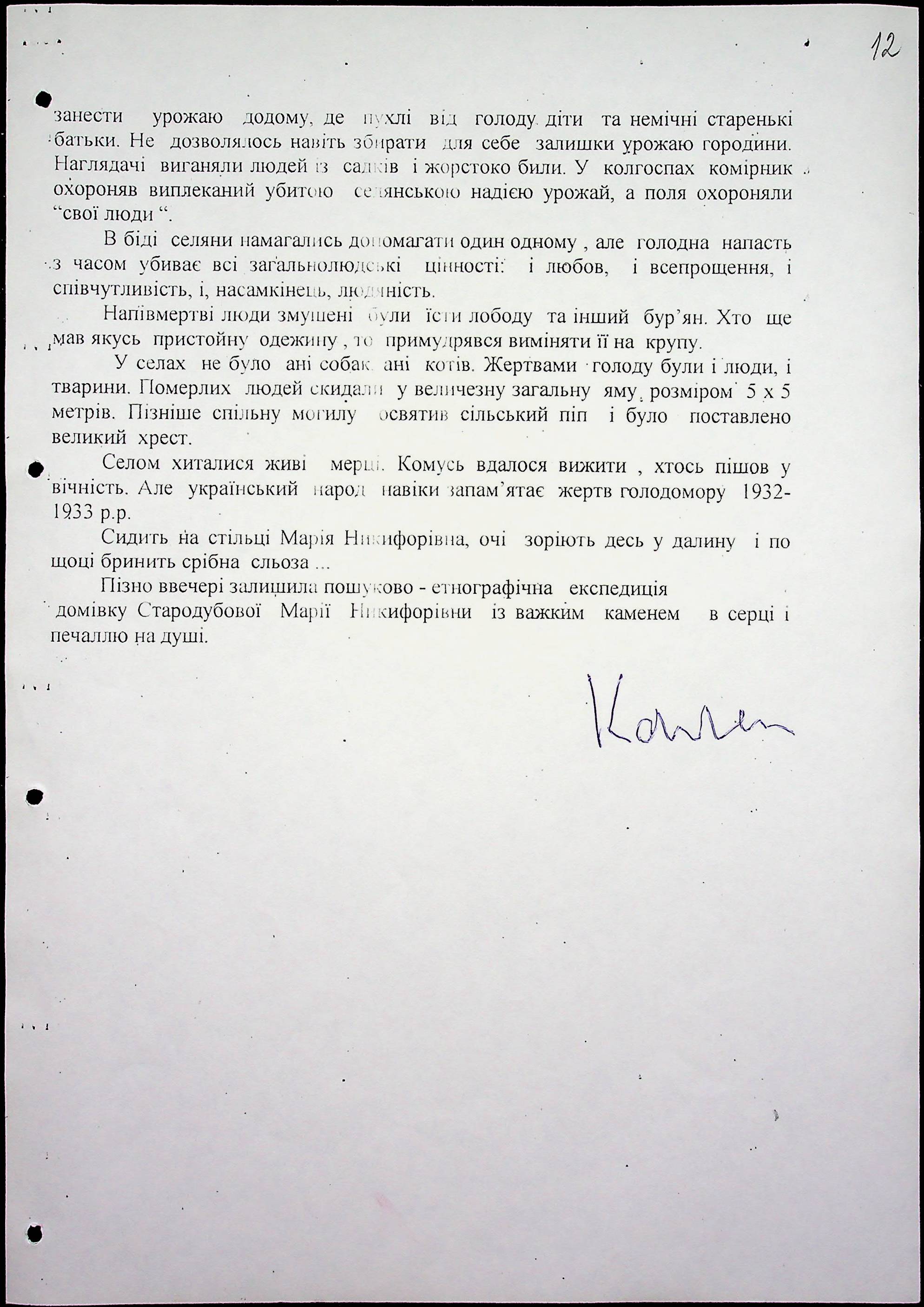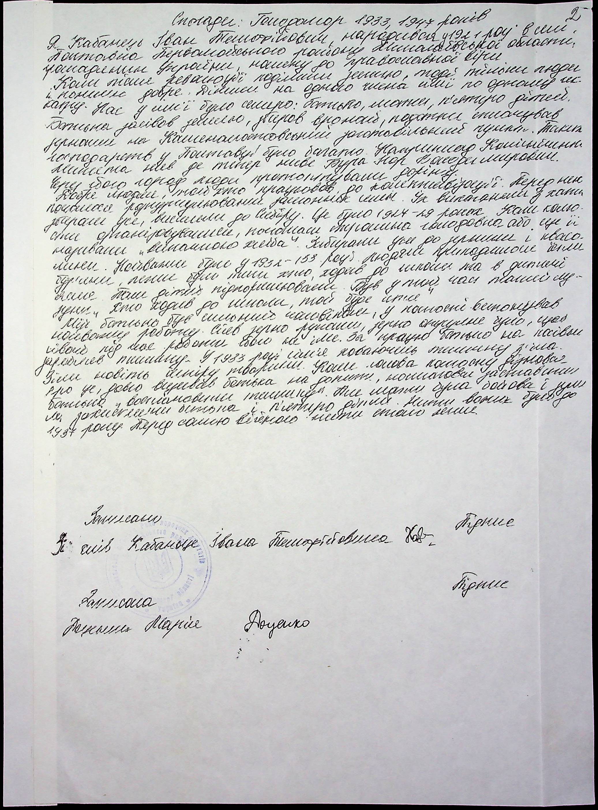 • • • • Справа № 61 “Свідчення очевидців Голодомору 1932-1933 років, які проживають у Первомайському районі, з прізвищами на літери К–П”