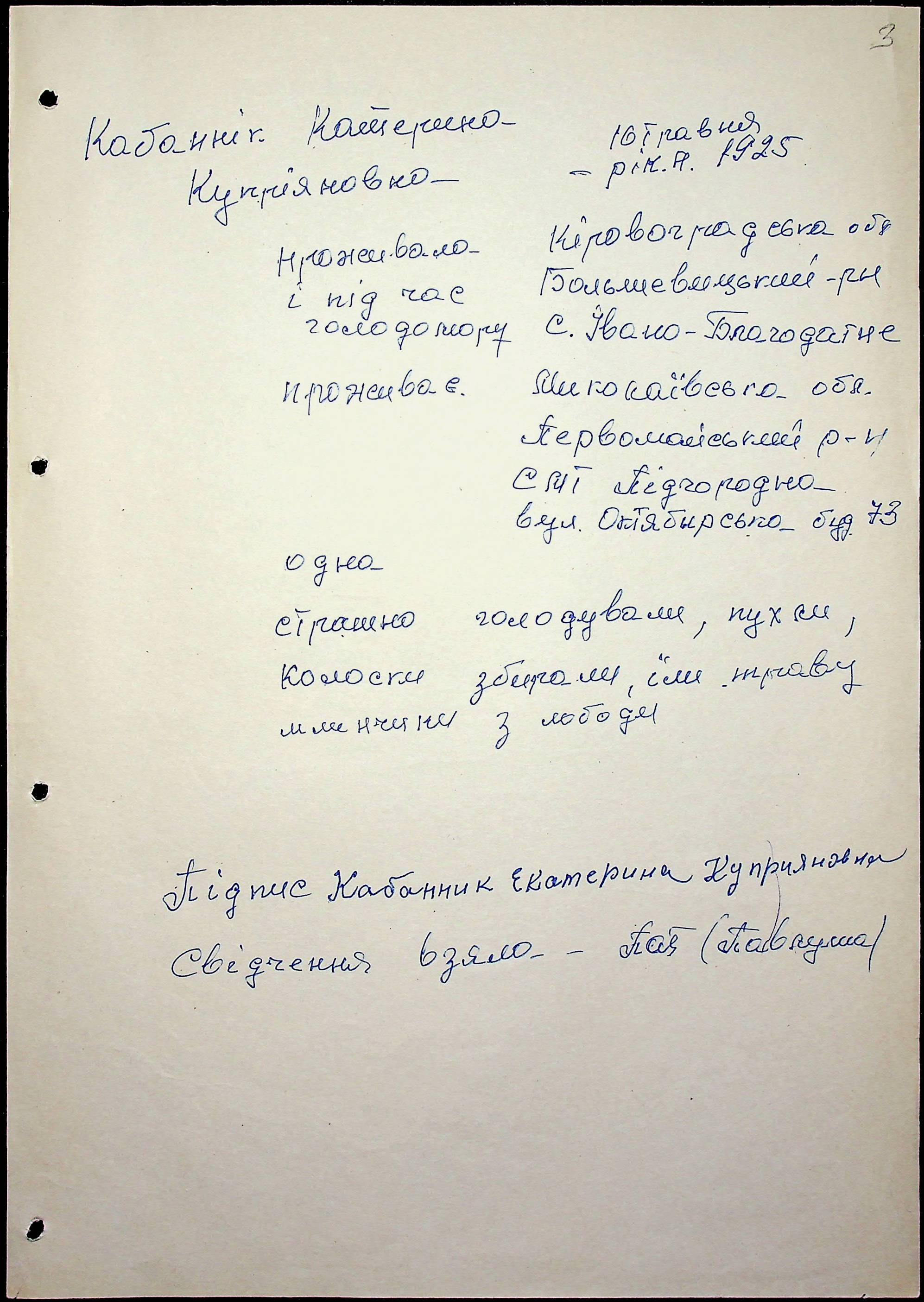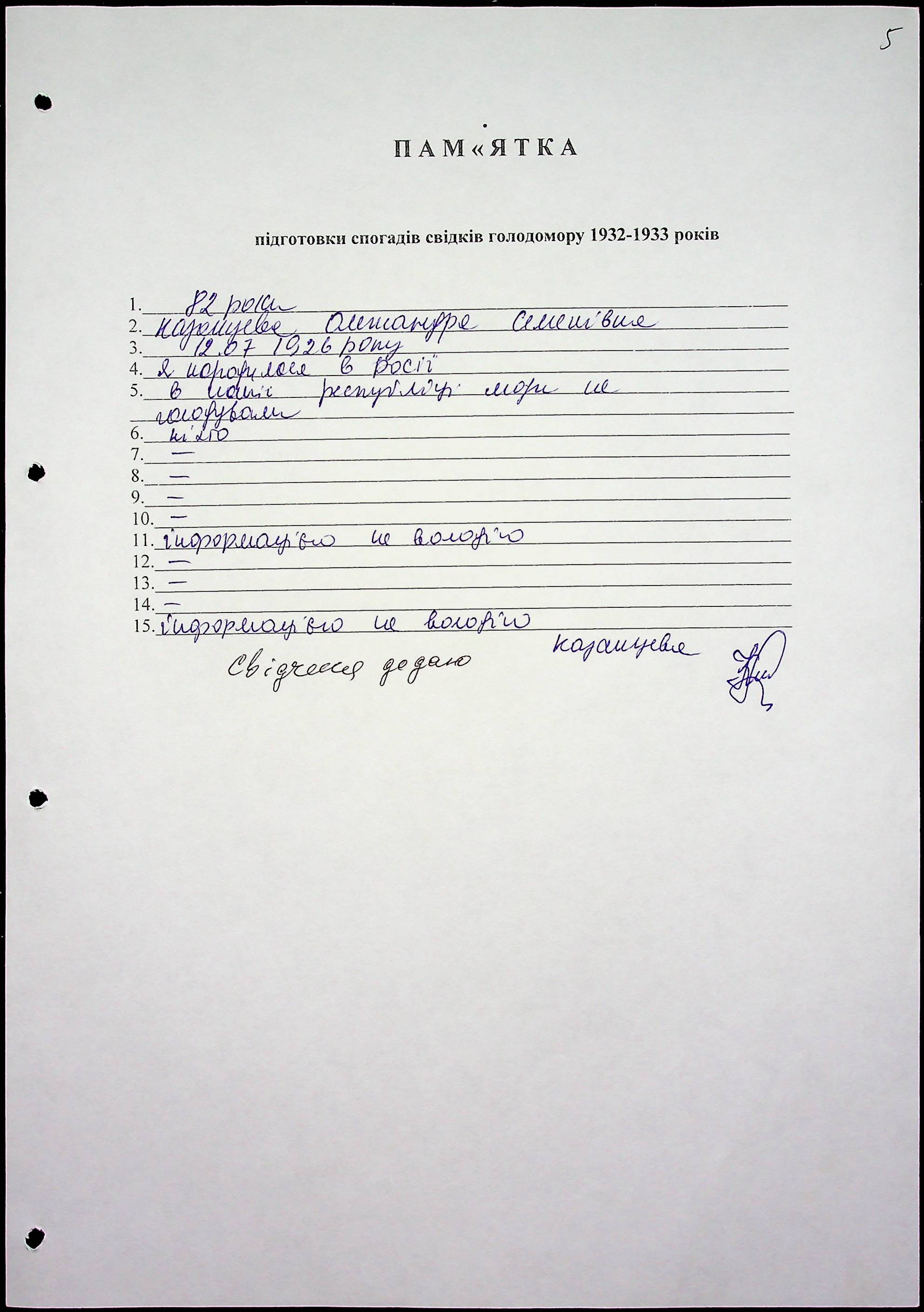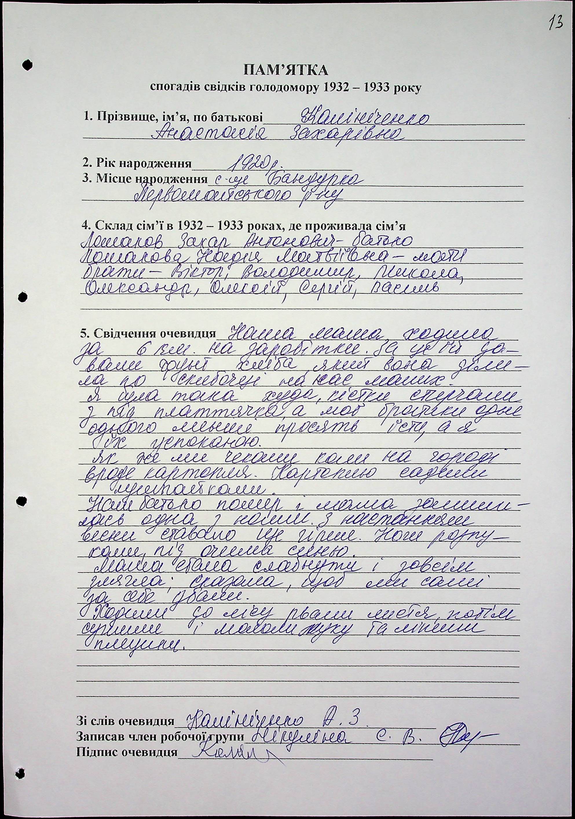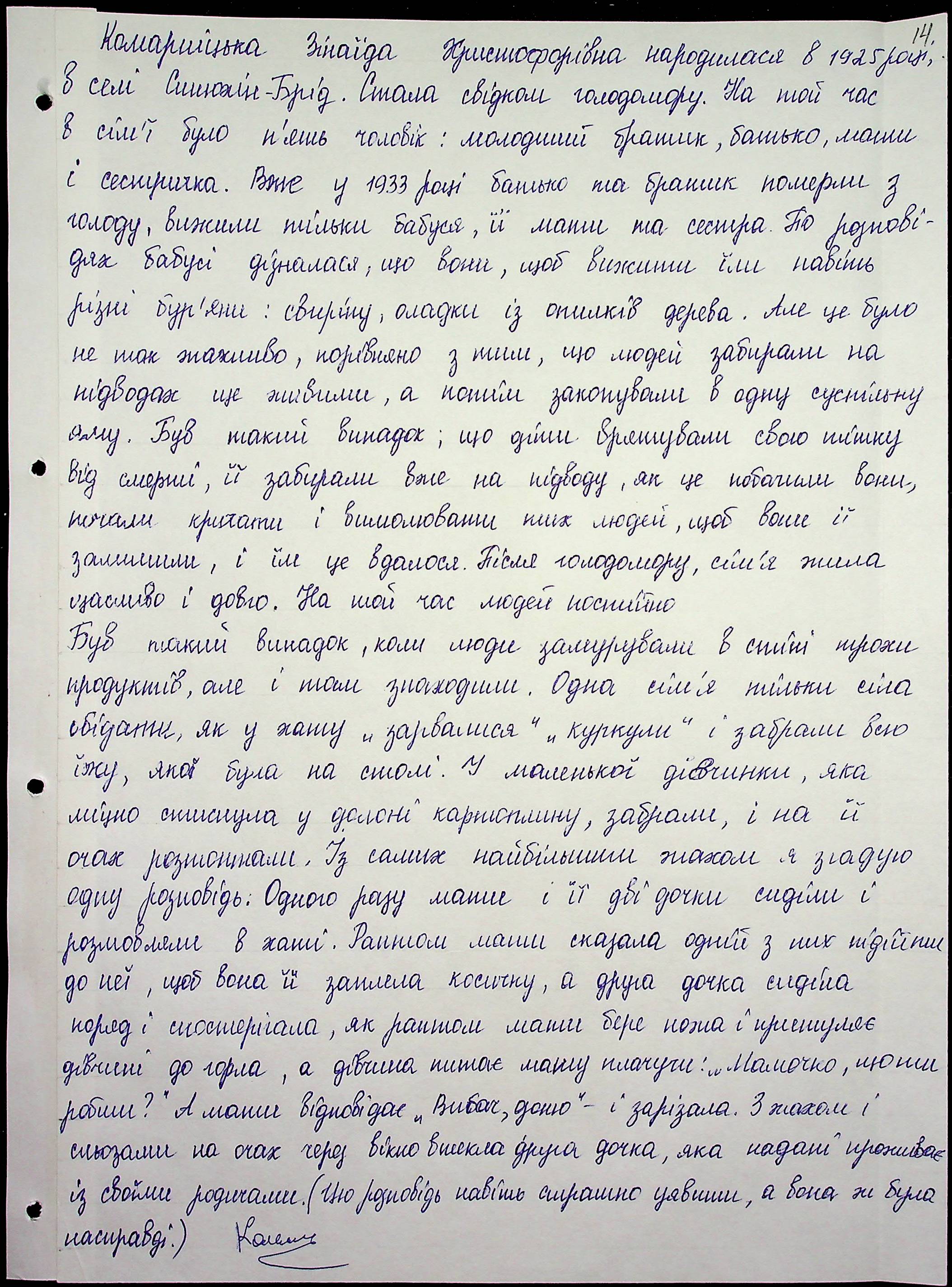 • • • • Справа № 61 “Свідчення очевидців Голодомору 1932-1933 років, які проживають у Первомайському районі, з прізвищами на літери К–П”