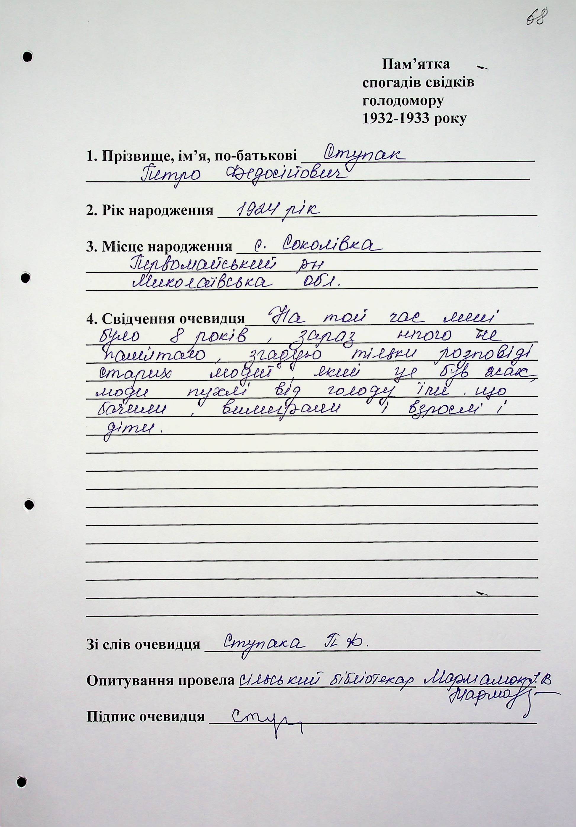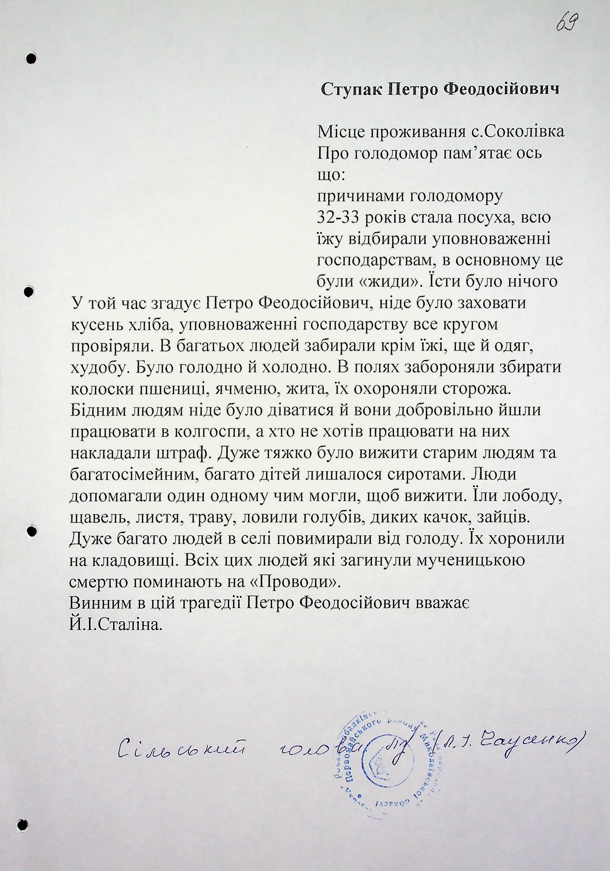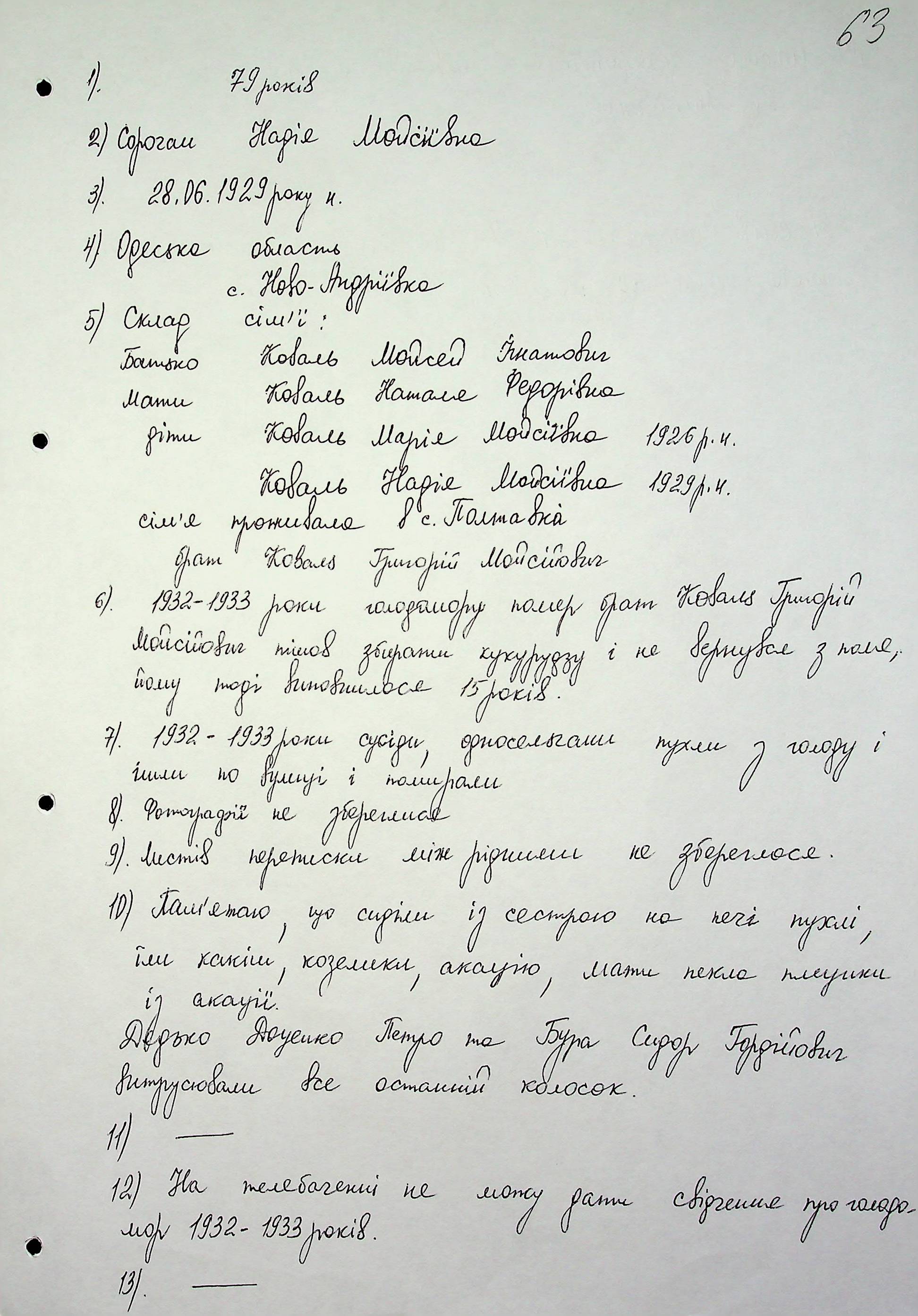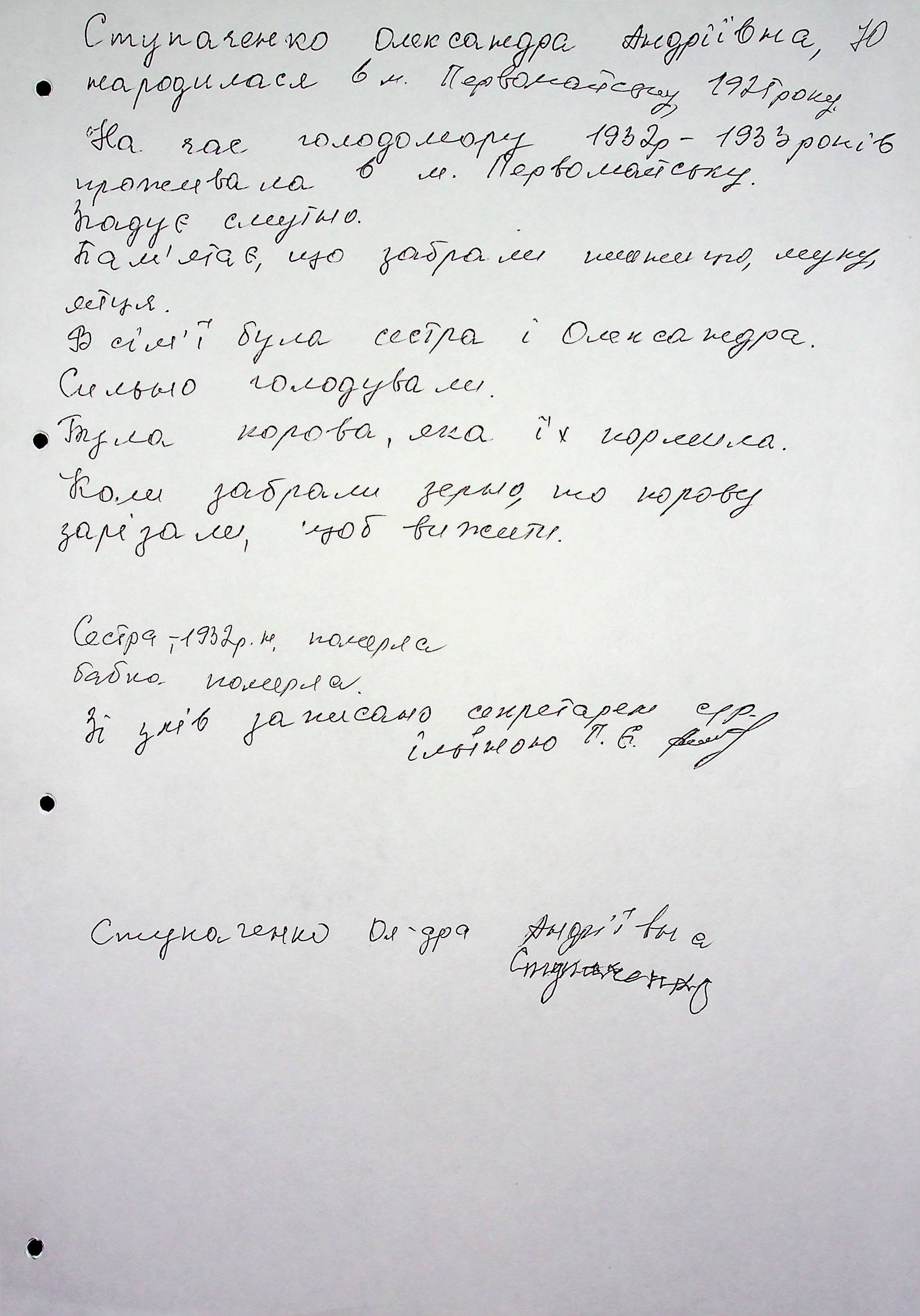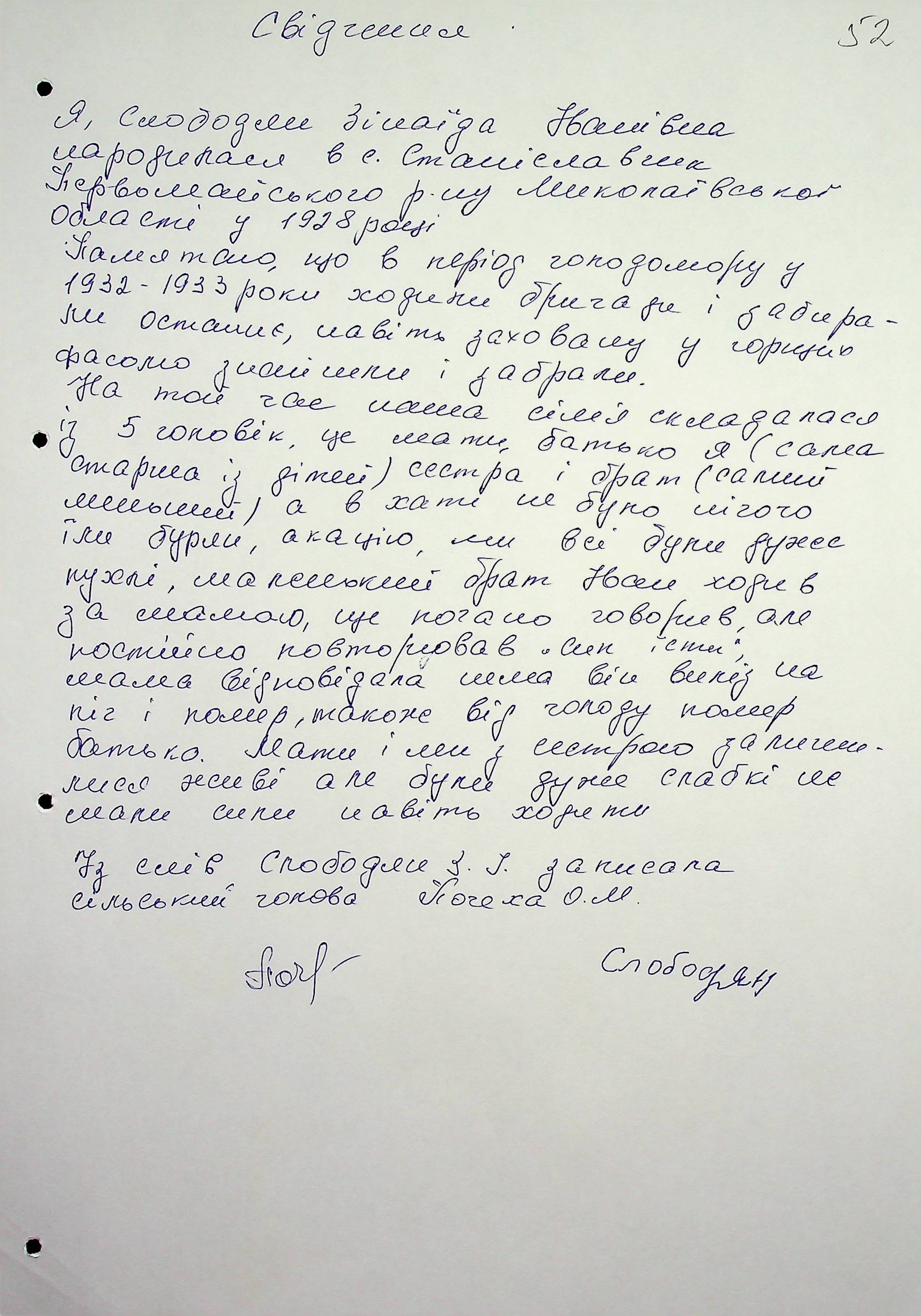 • • • • Справа № 62 “Свідчення очевидців Голодомору 1932-1933 років, які проживають у Первомайському районі, з прізвищами на літери Р–Я”
