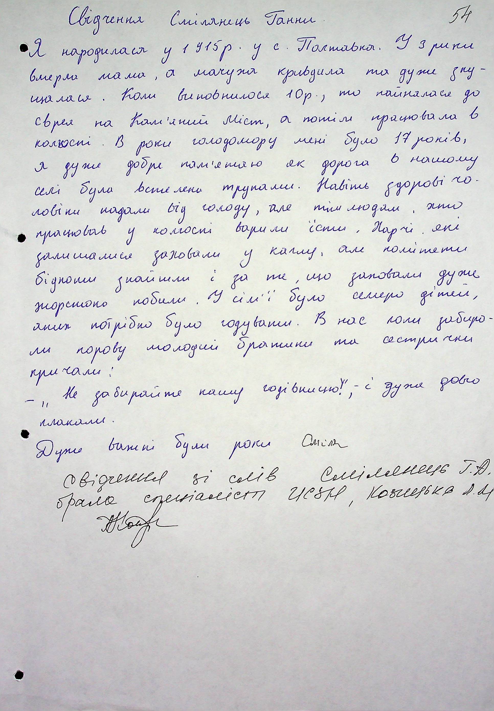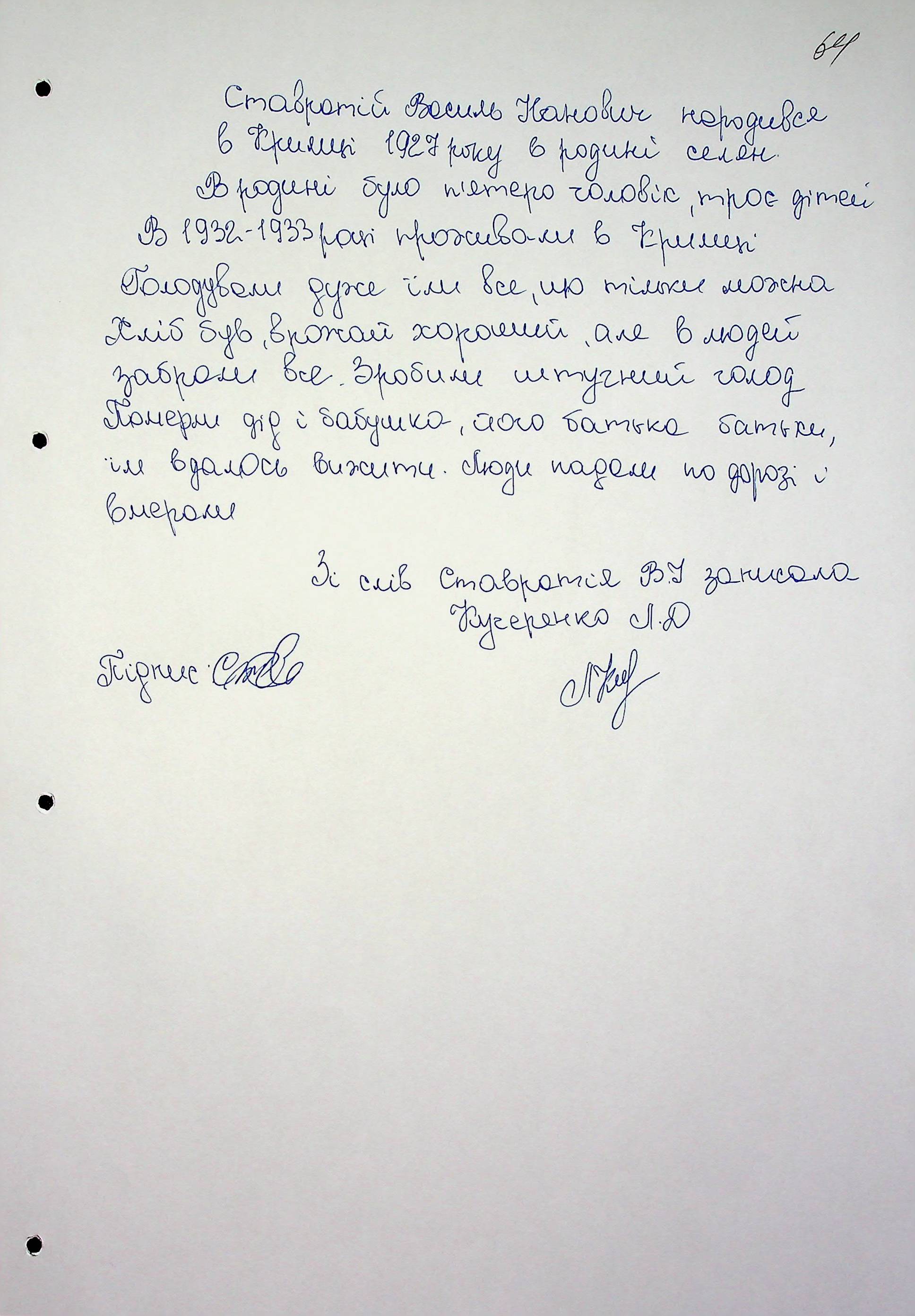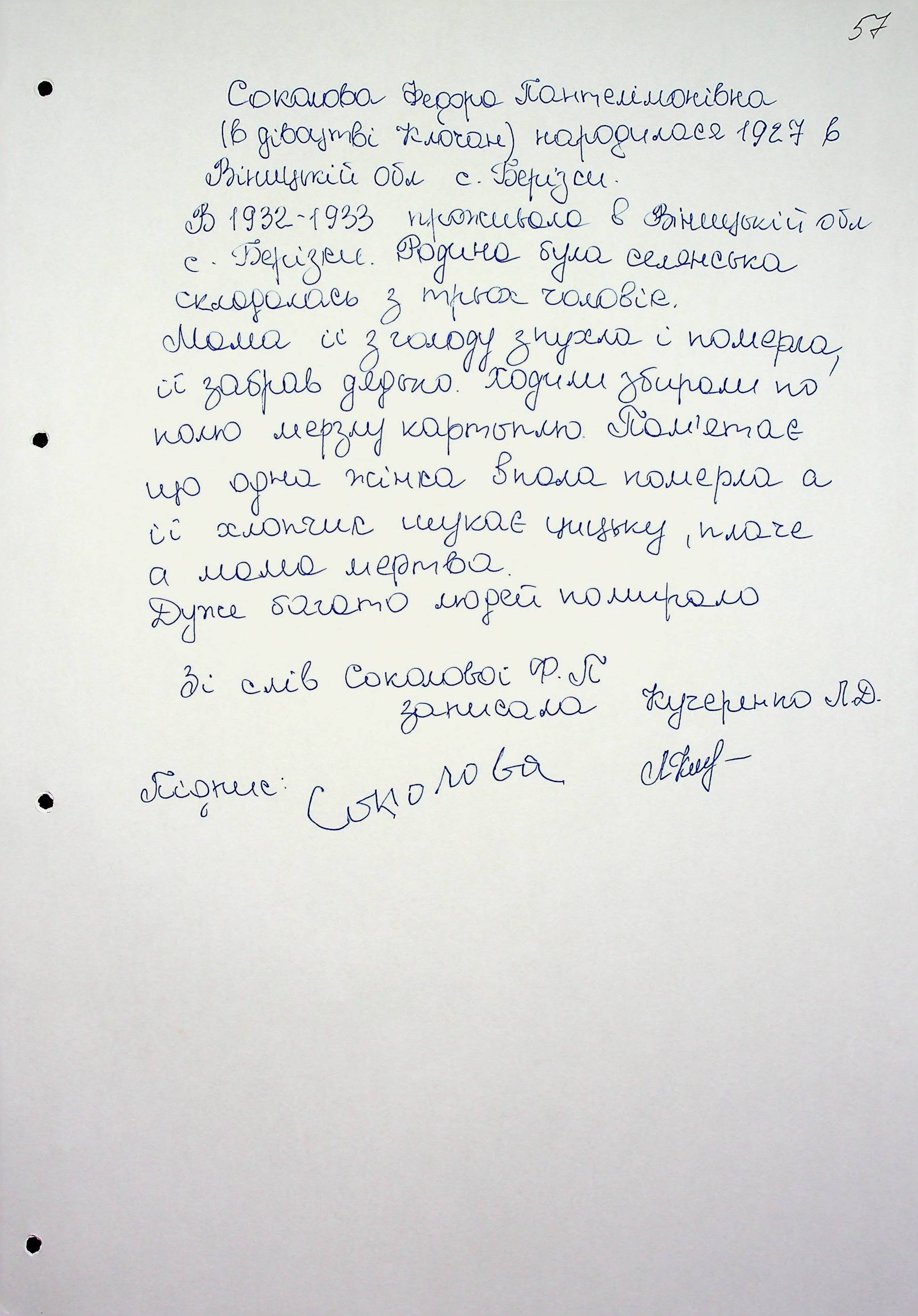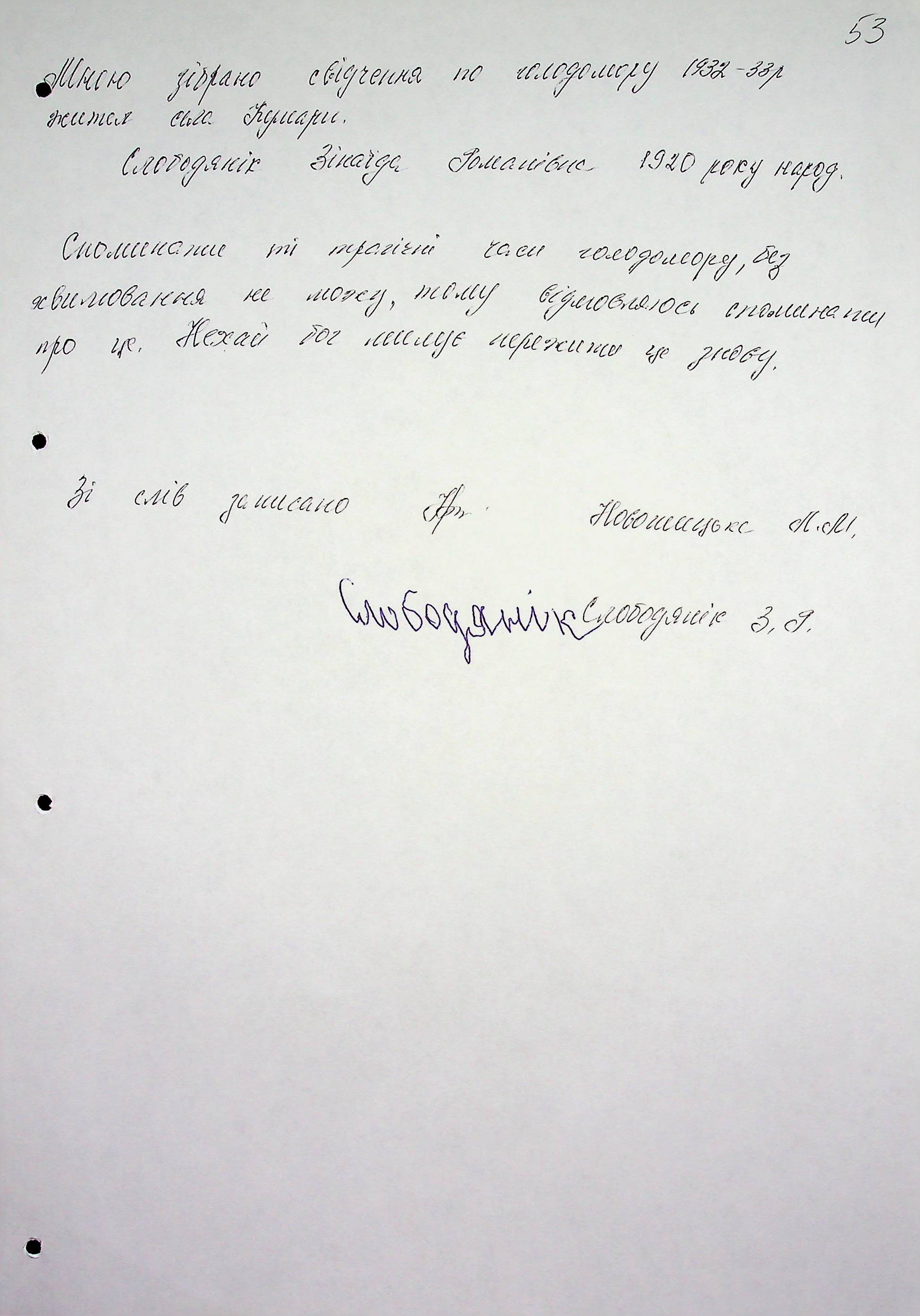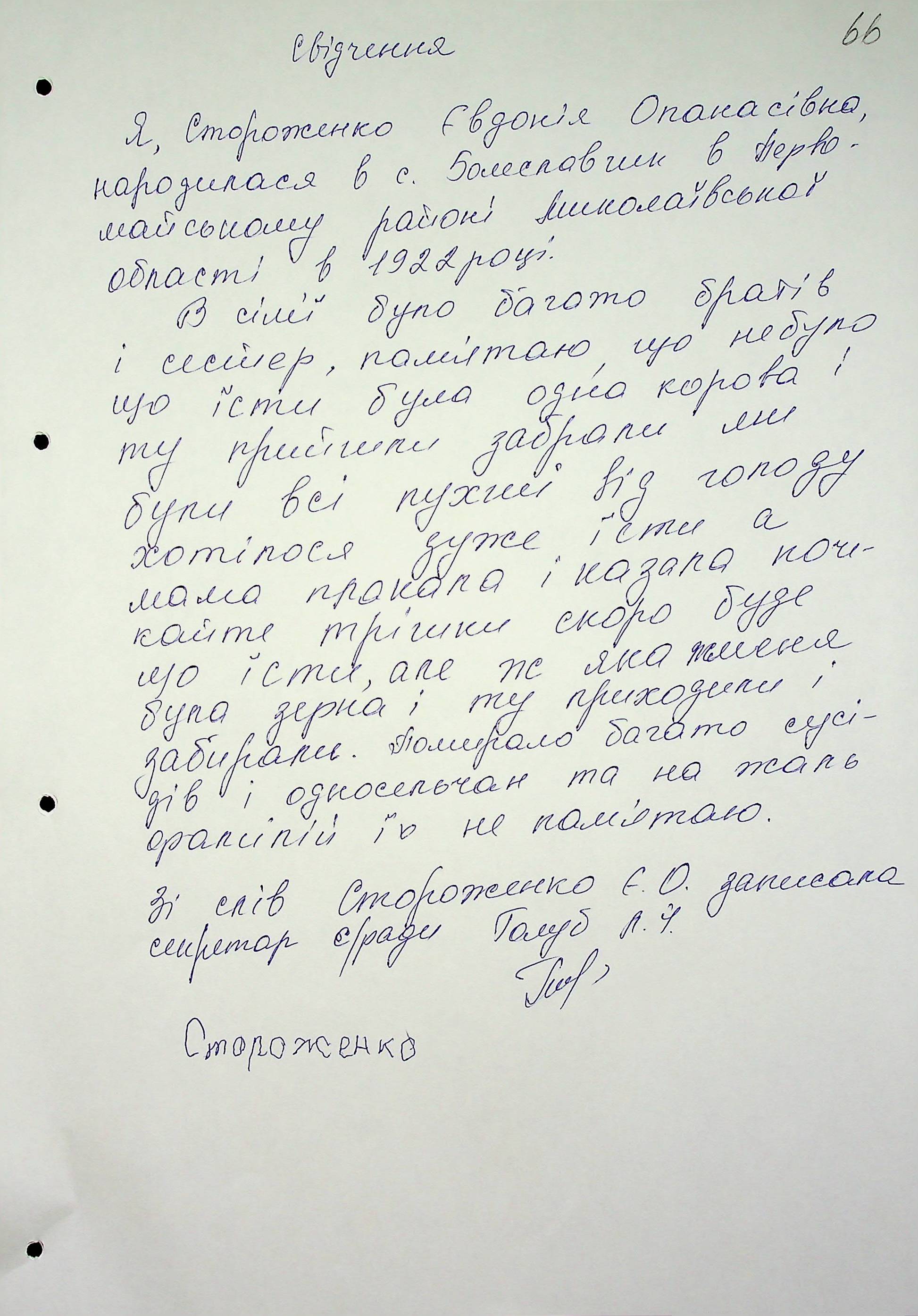 • • • • Справа № 62 “Свідчення очевидців Голодомору 1932-1933 років, які проживають у Первомайському районі, з прізвищами на літери Р–Я”