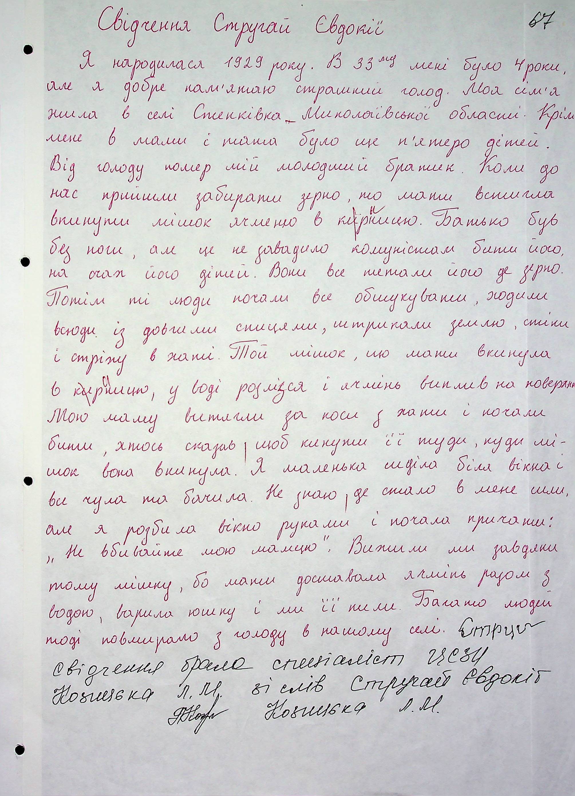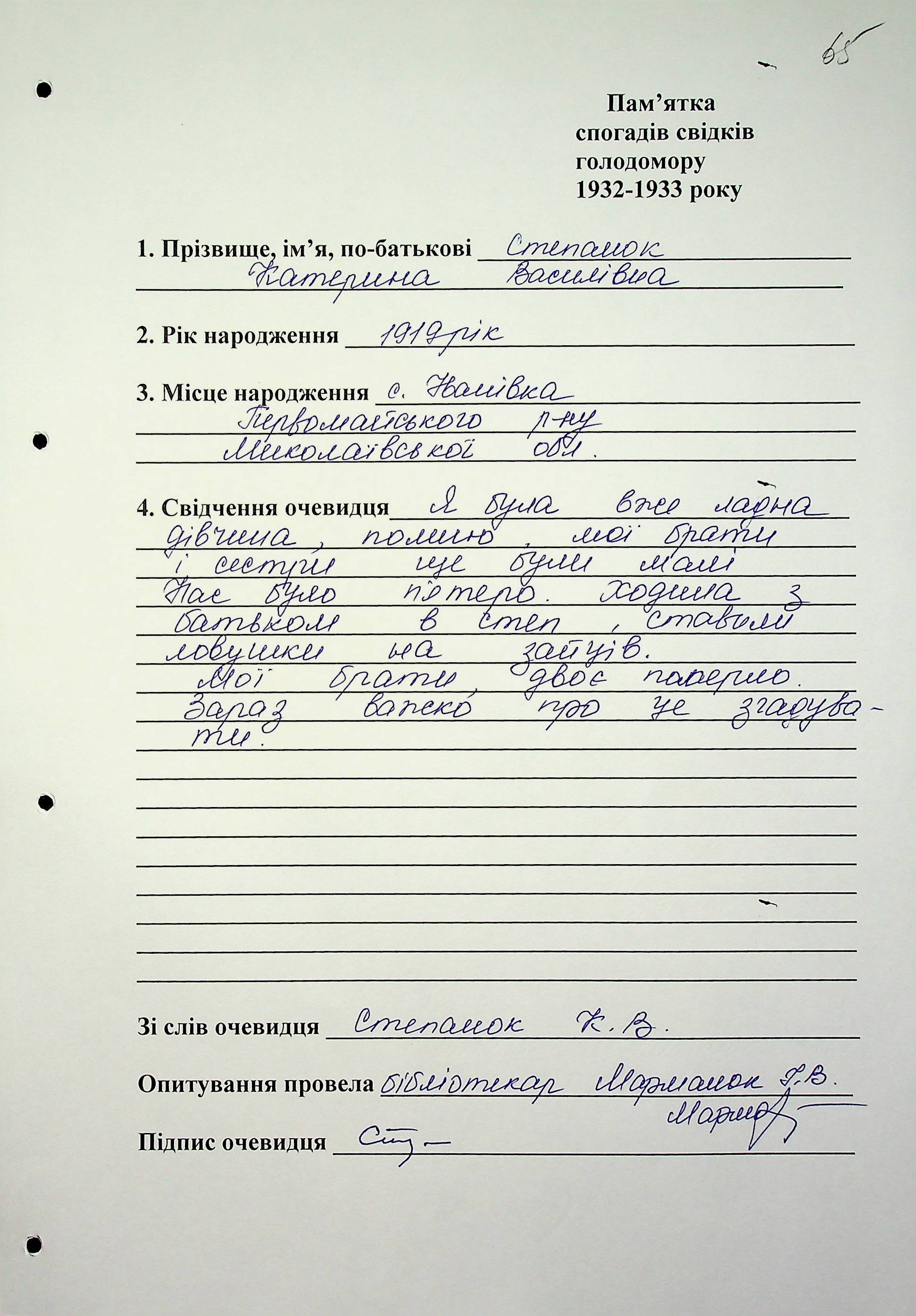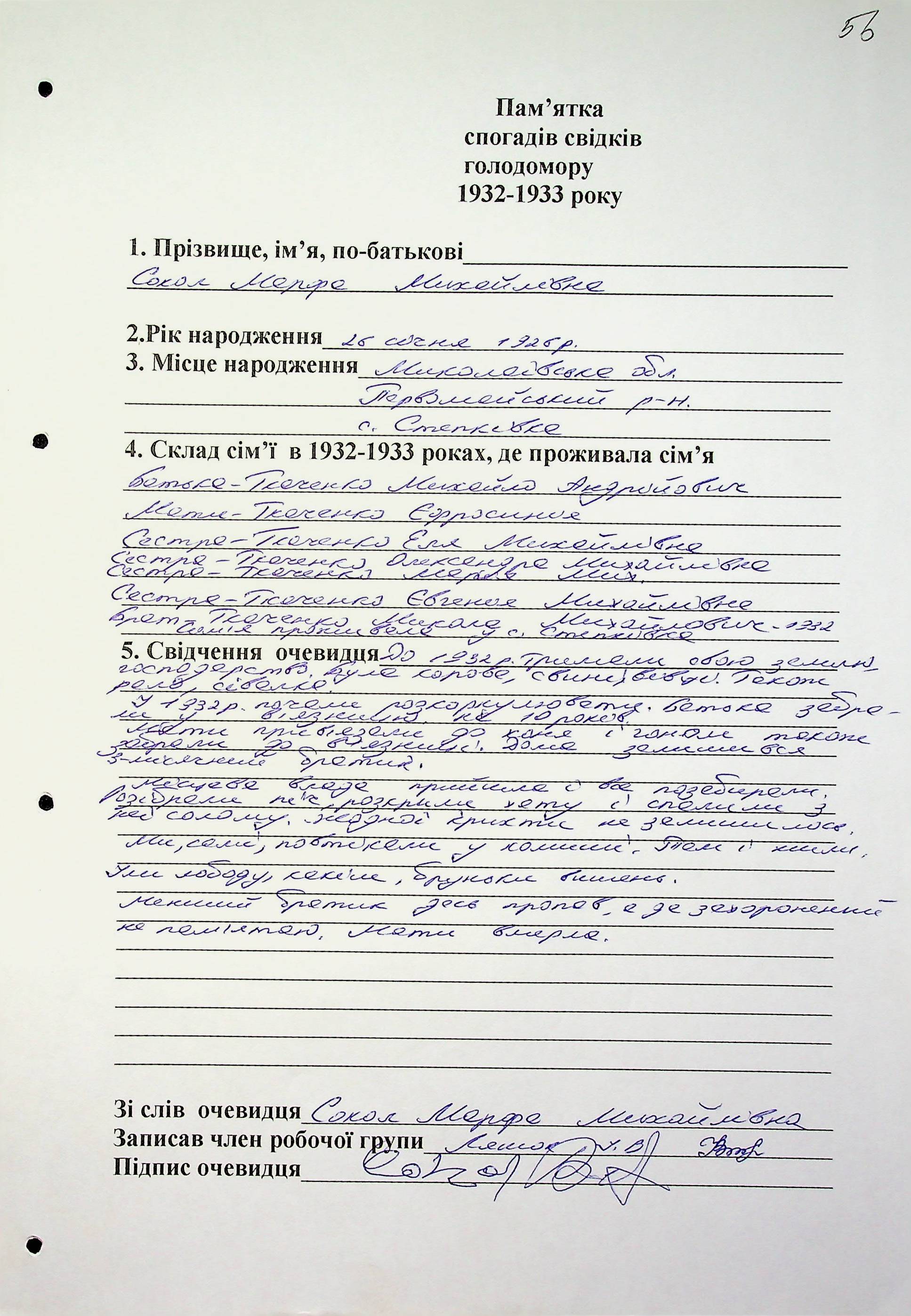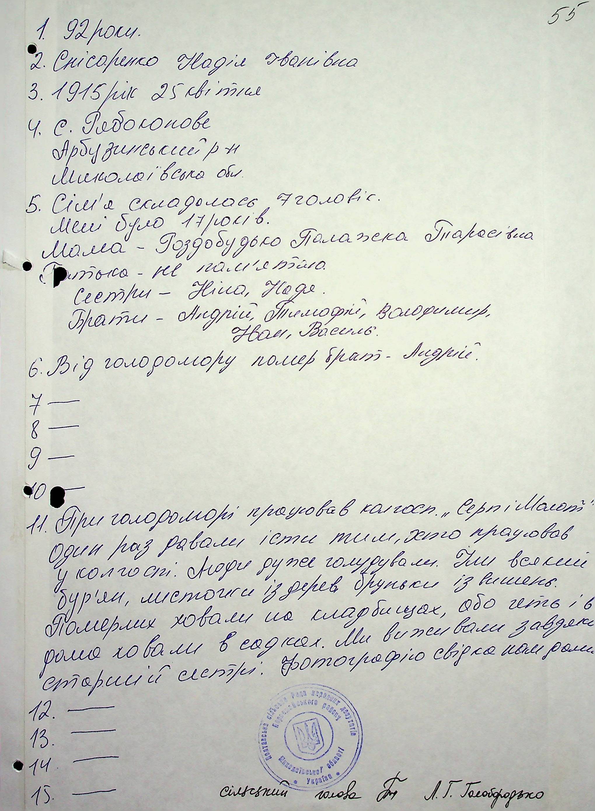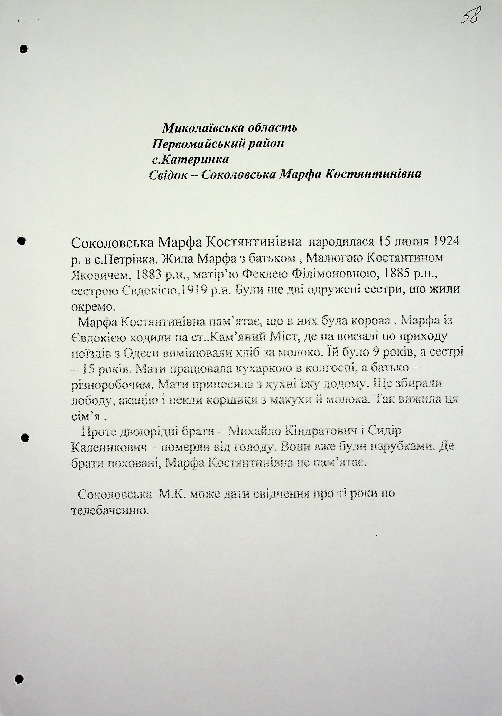 ◦ ◦ Фонд № 6146 “Колекція свідчень очевидців Голодомору 1932-1933 рр., нині проживаючих у Миколаївській області”