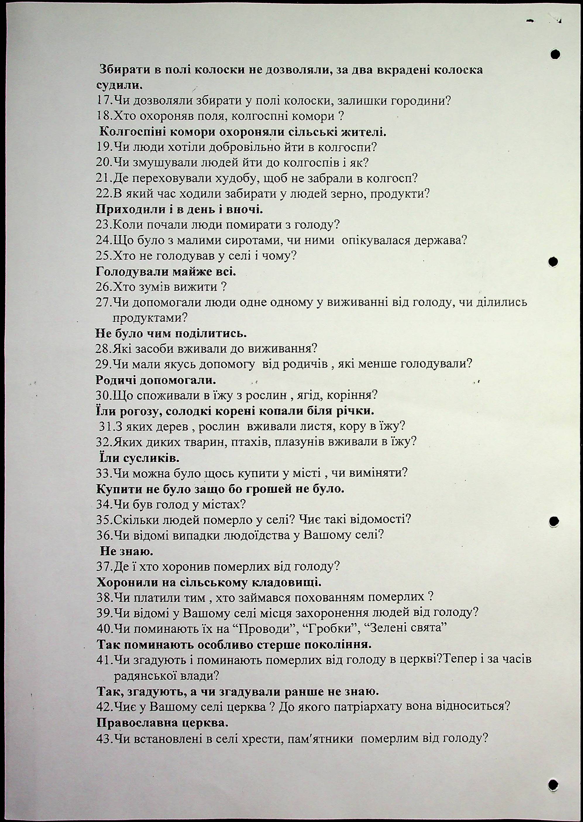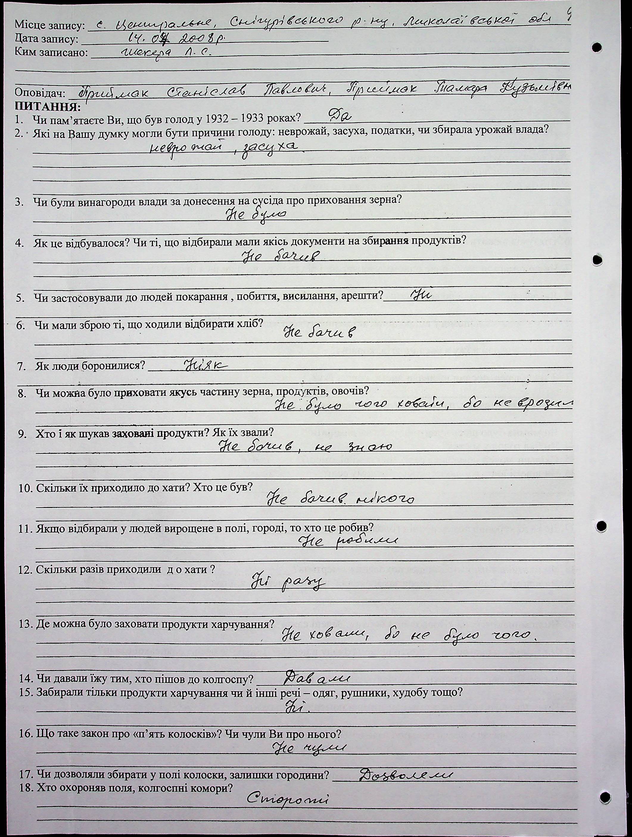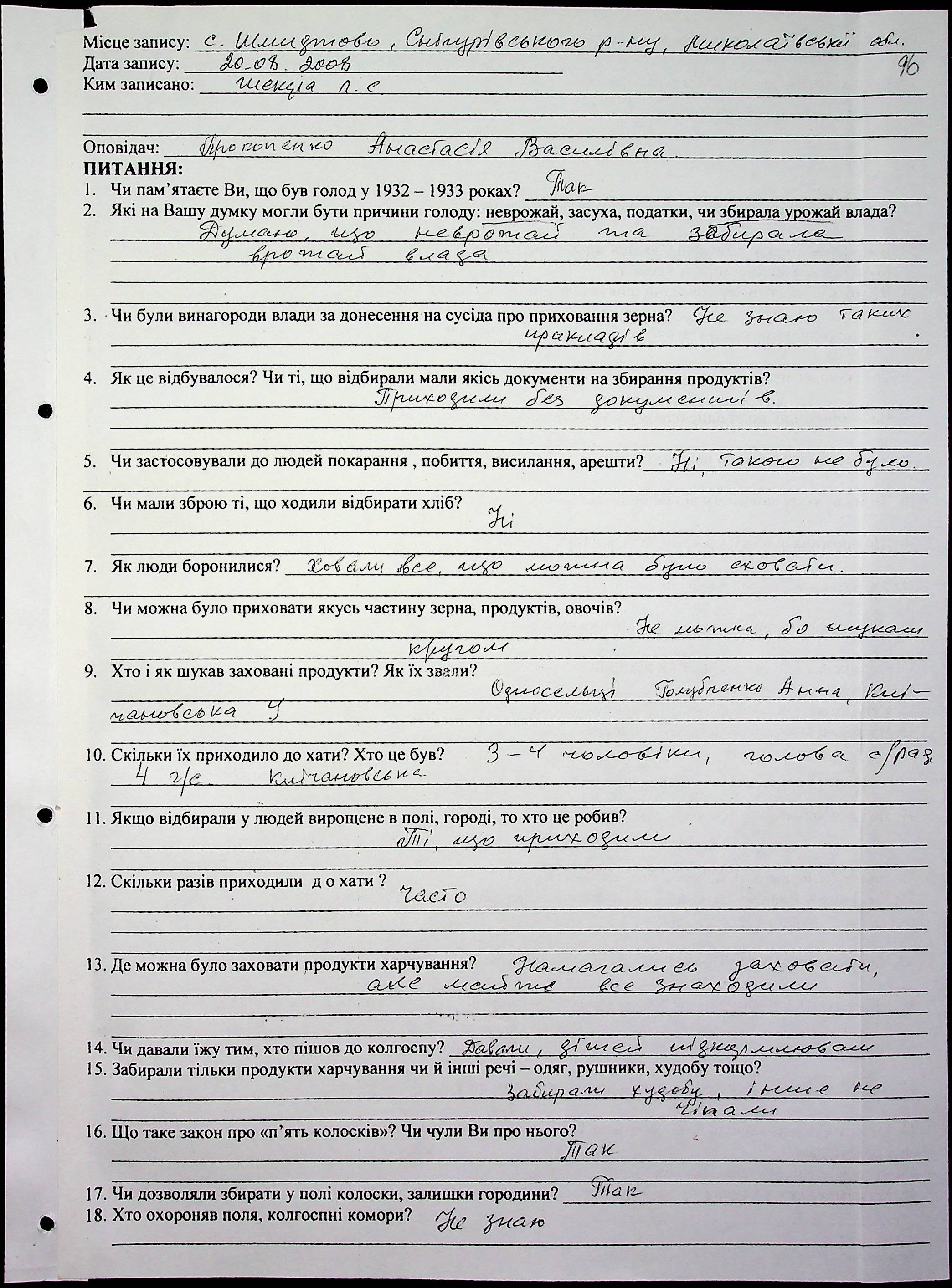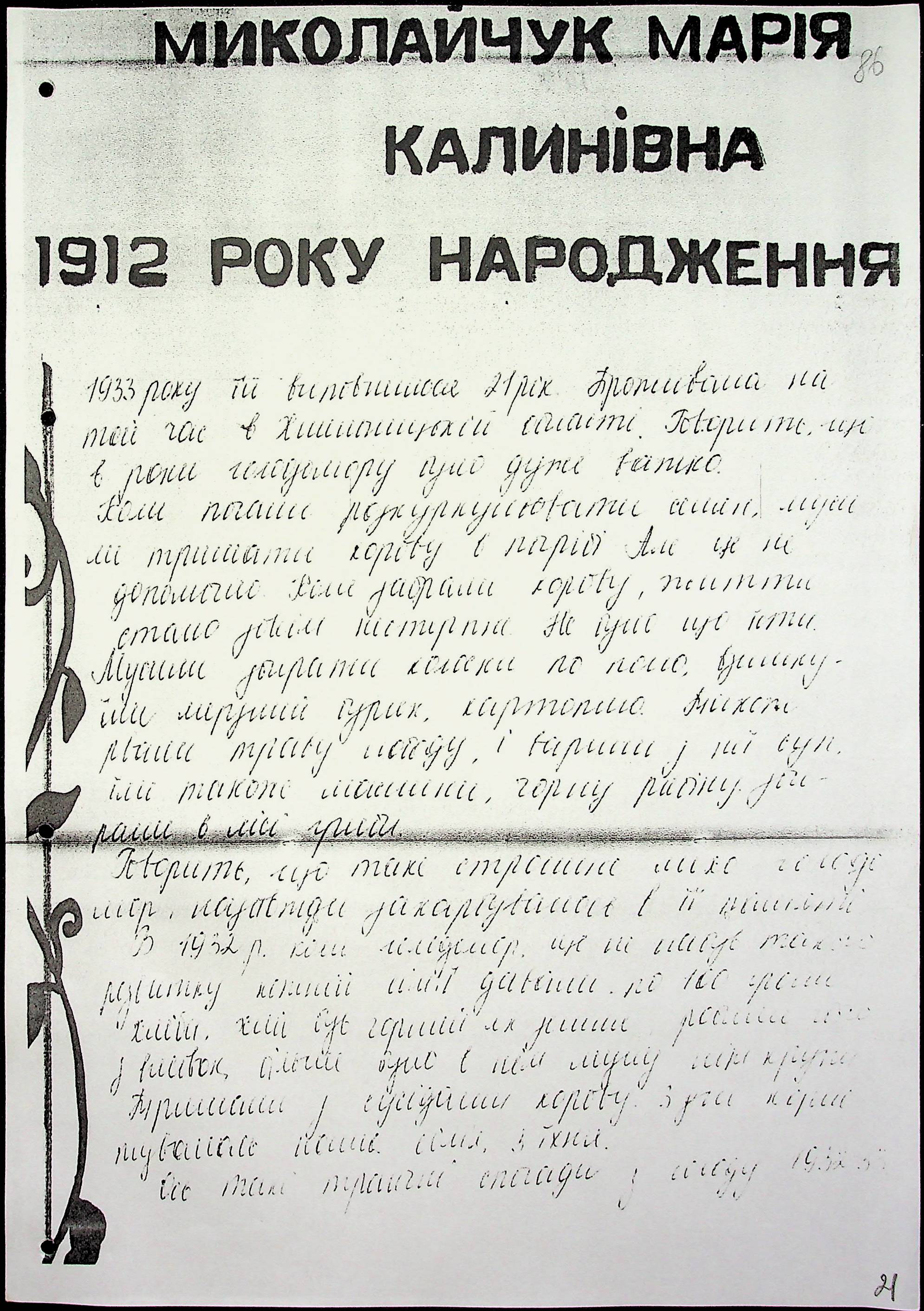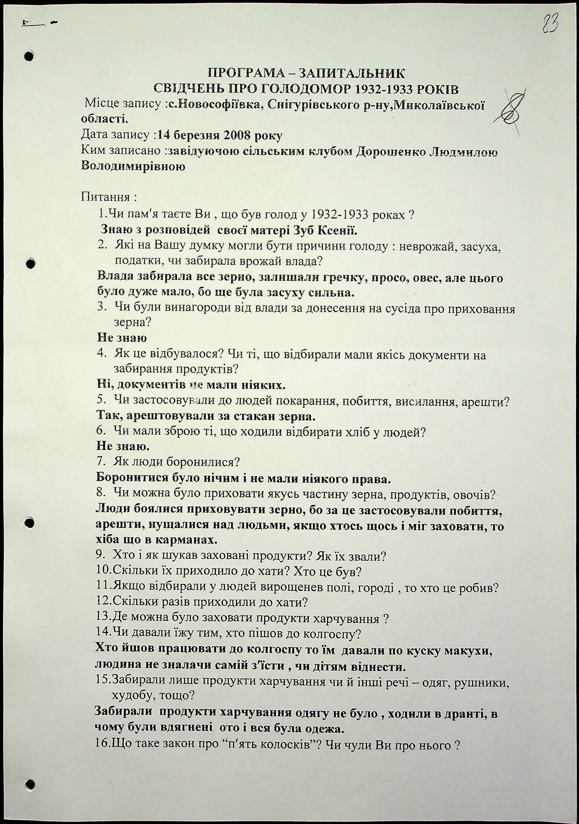 ◦ ◦ Фонд № 6146 “Колекція свідчень очевидців Голодомору 1932-1933 рр., нині проживаючих у Миколаївській області”