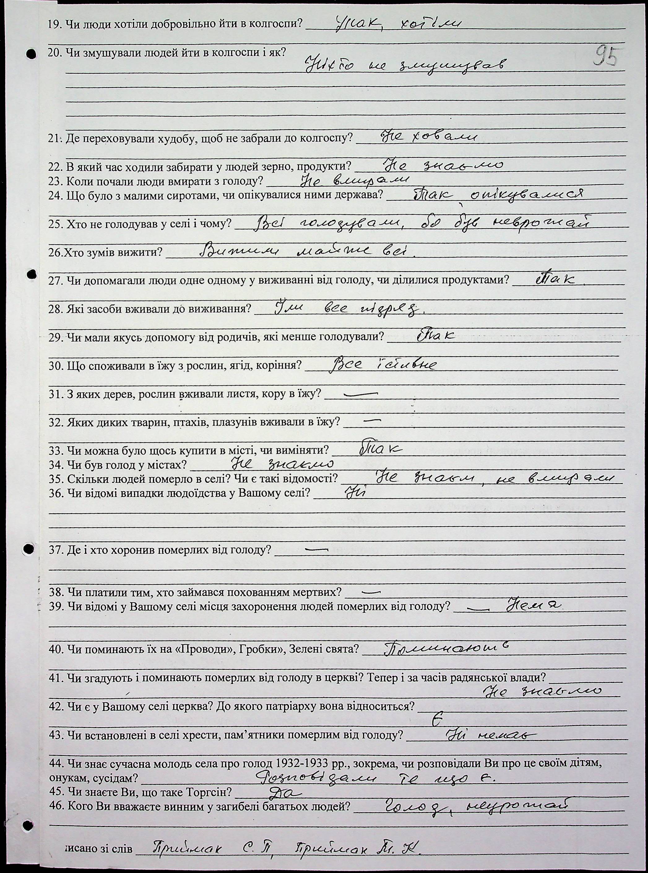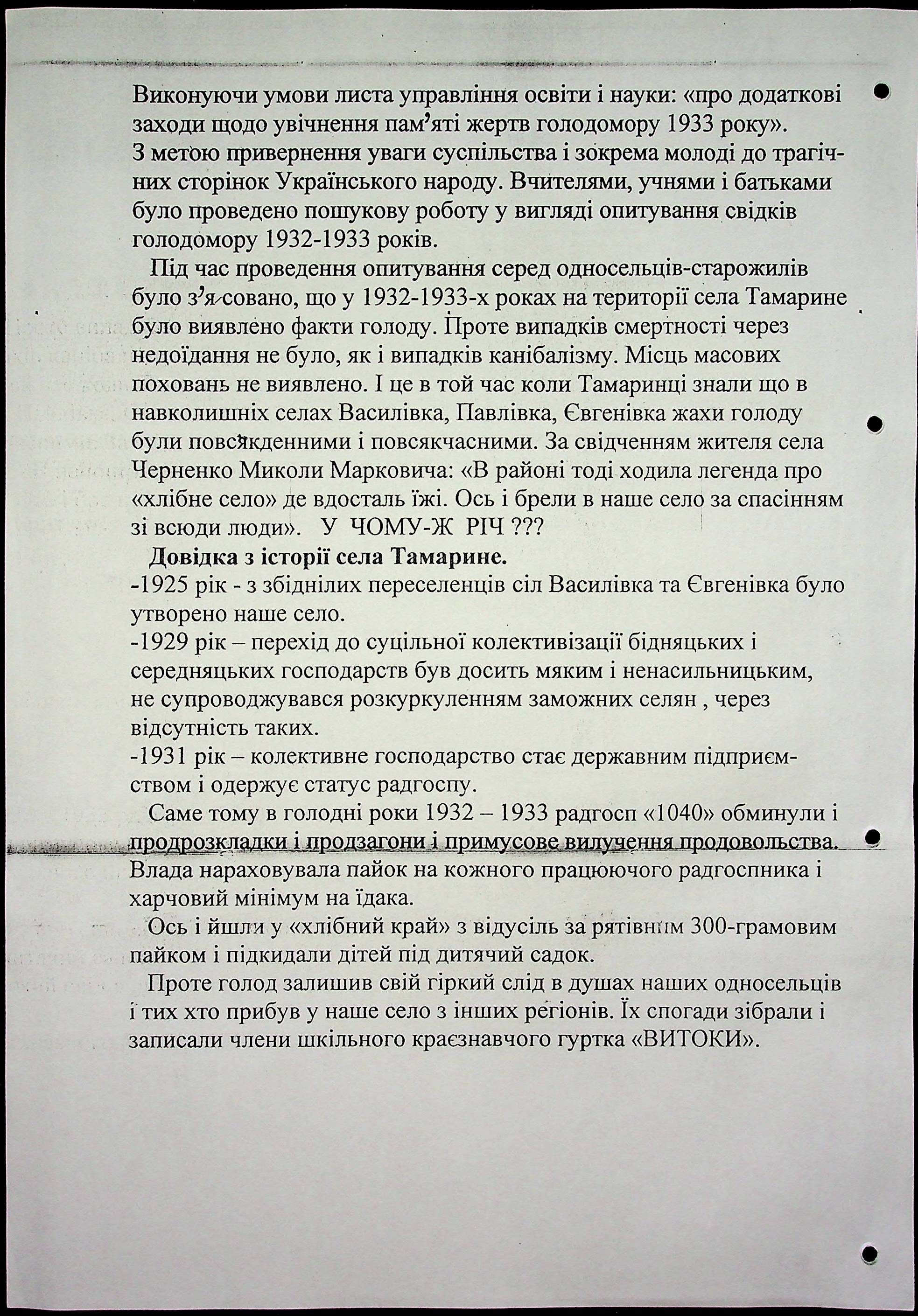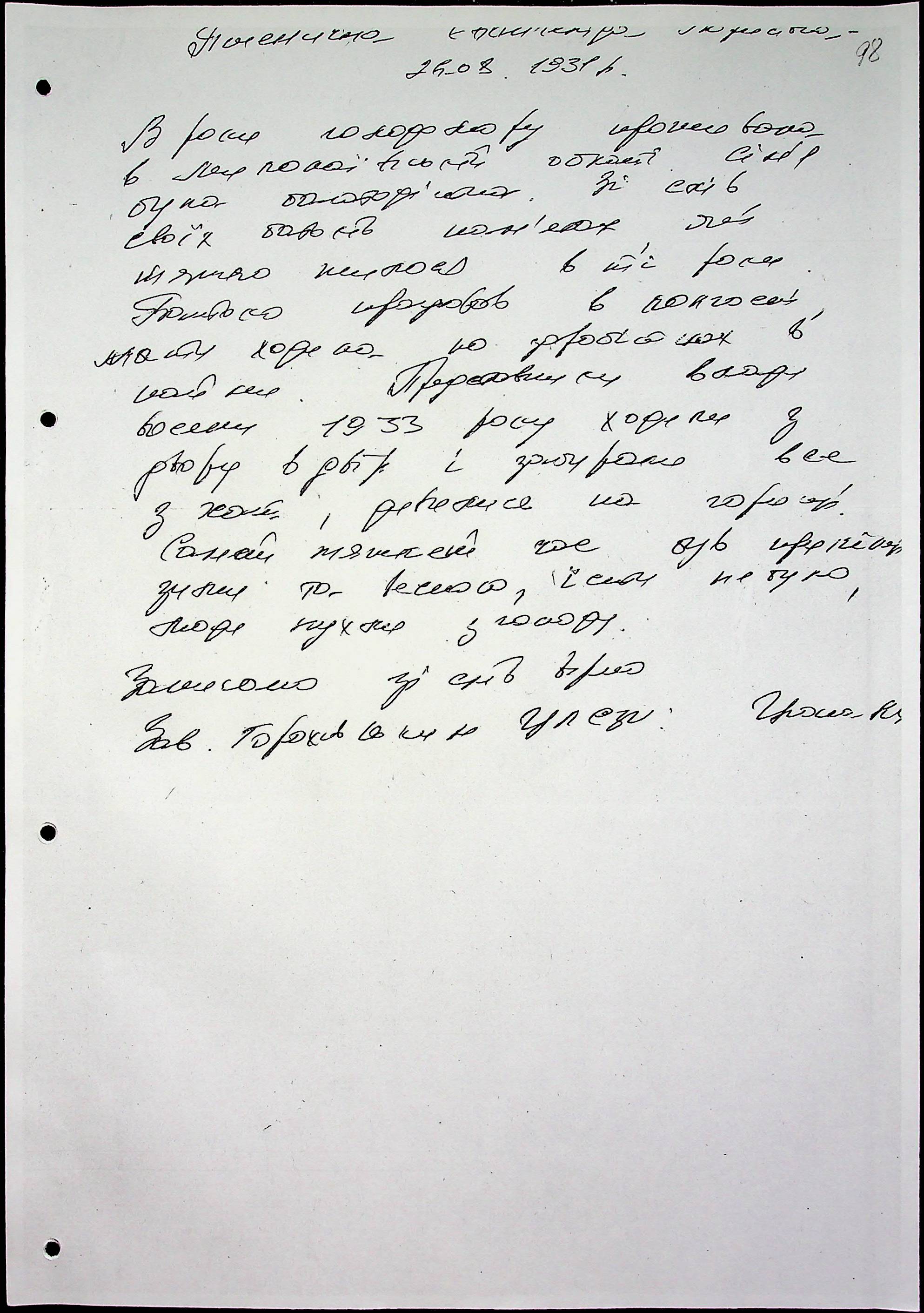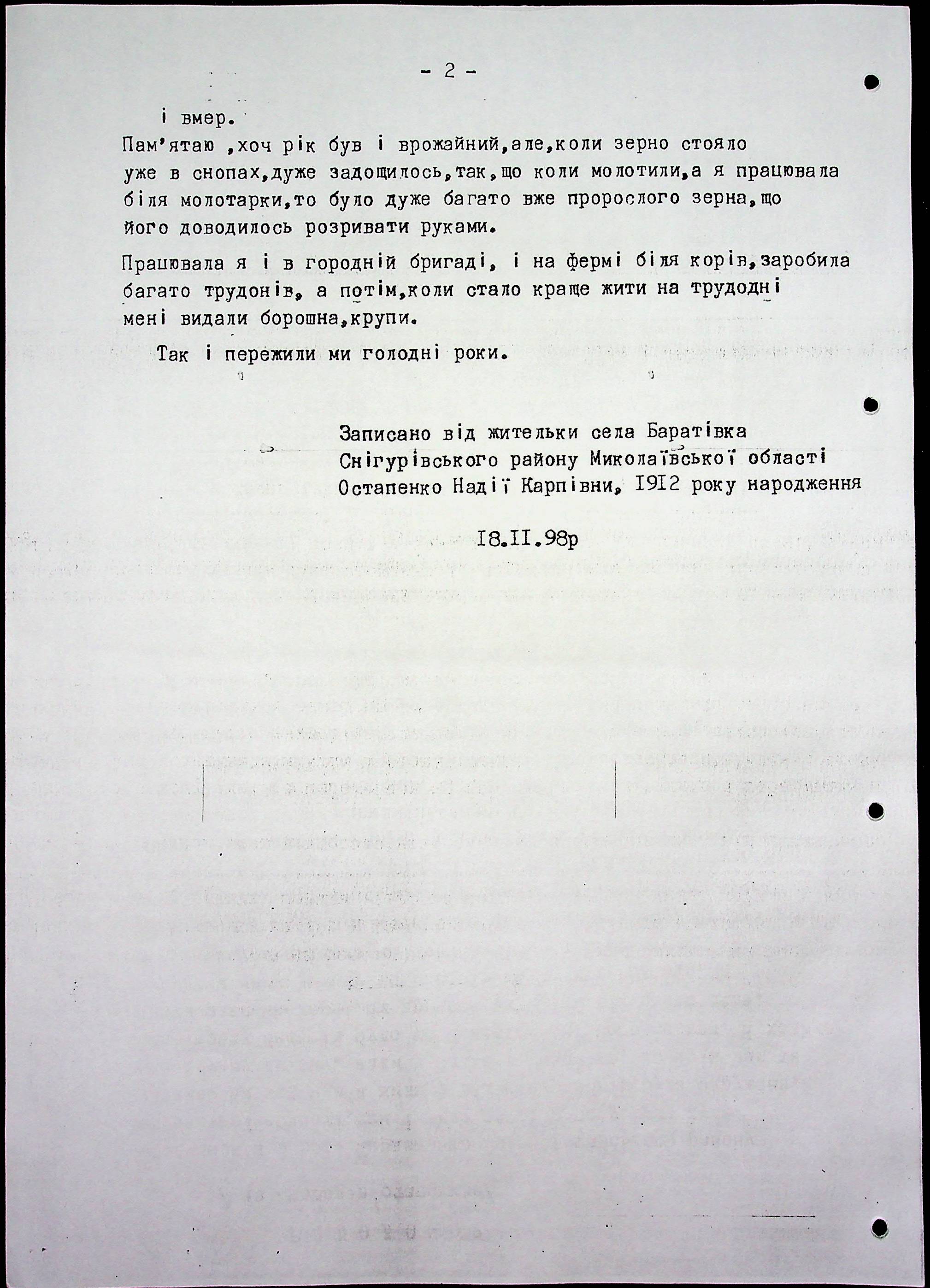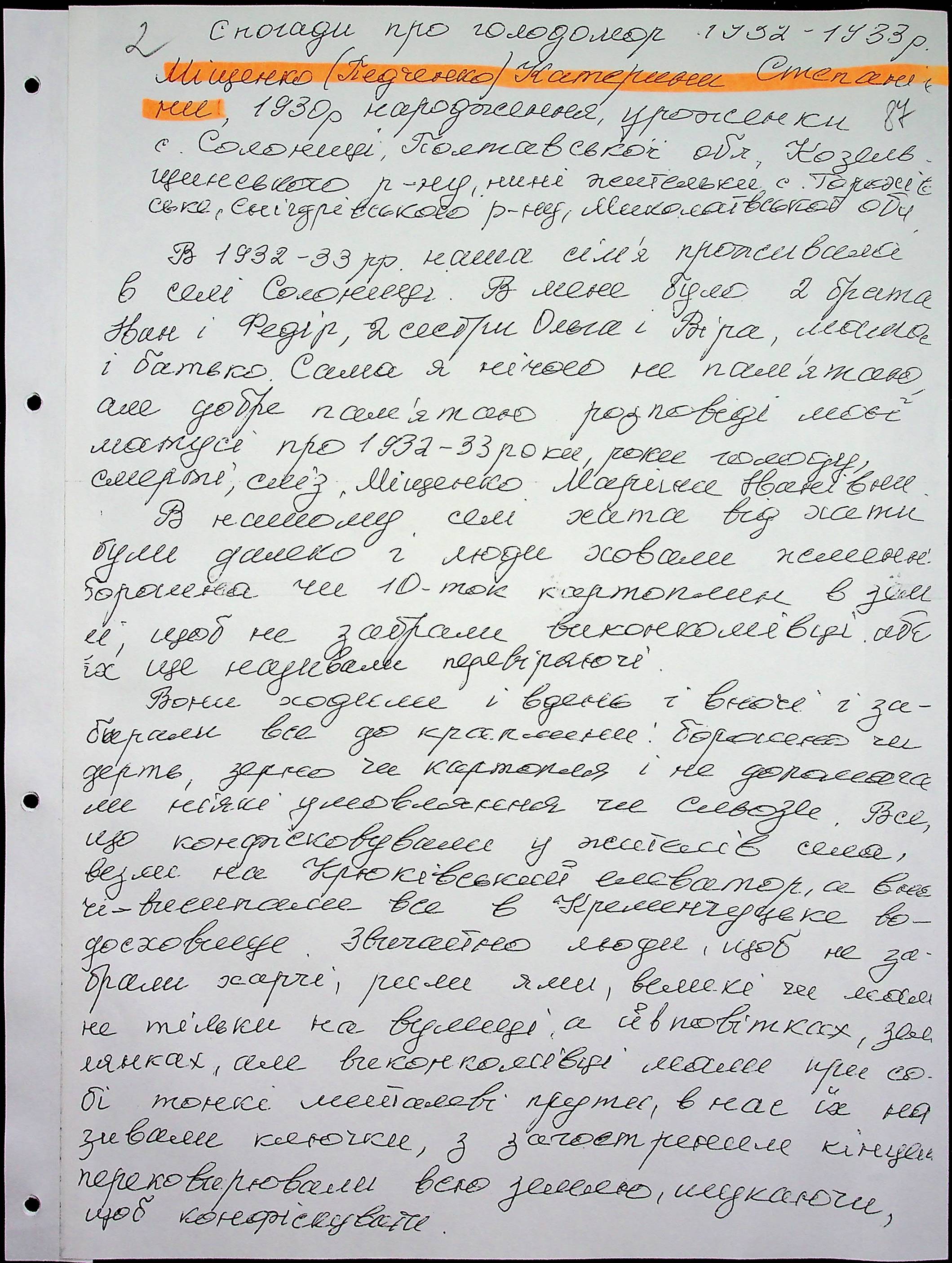 • • • • Справа № 64 “Свідчення очевидців Голодомору 1932-1933 років, які проживають у Снігурівському районі. Том 1”