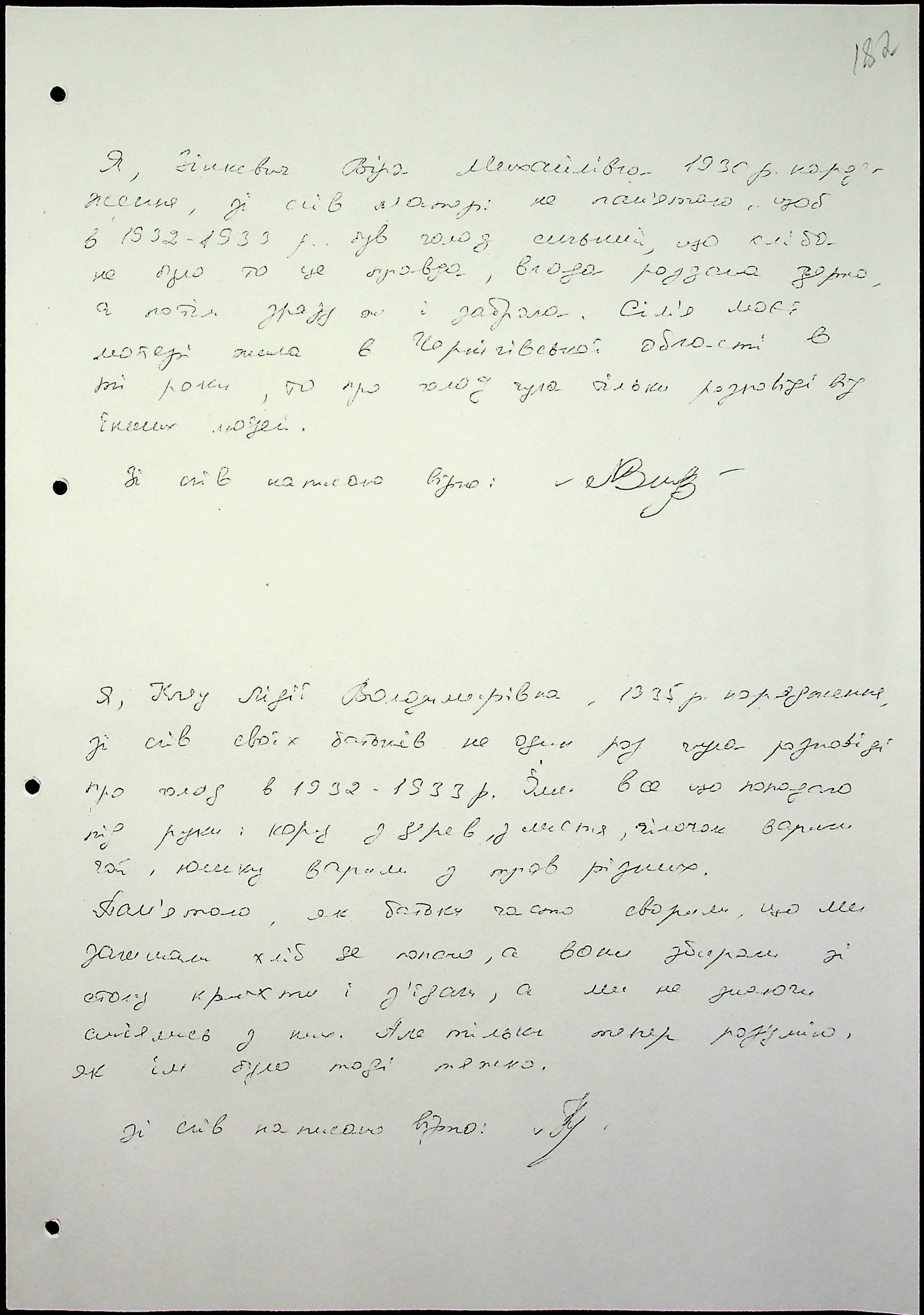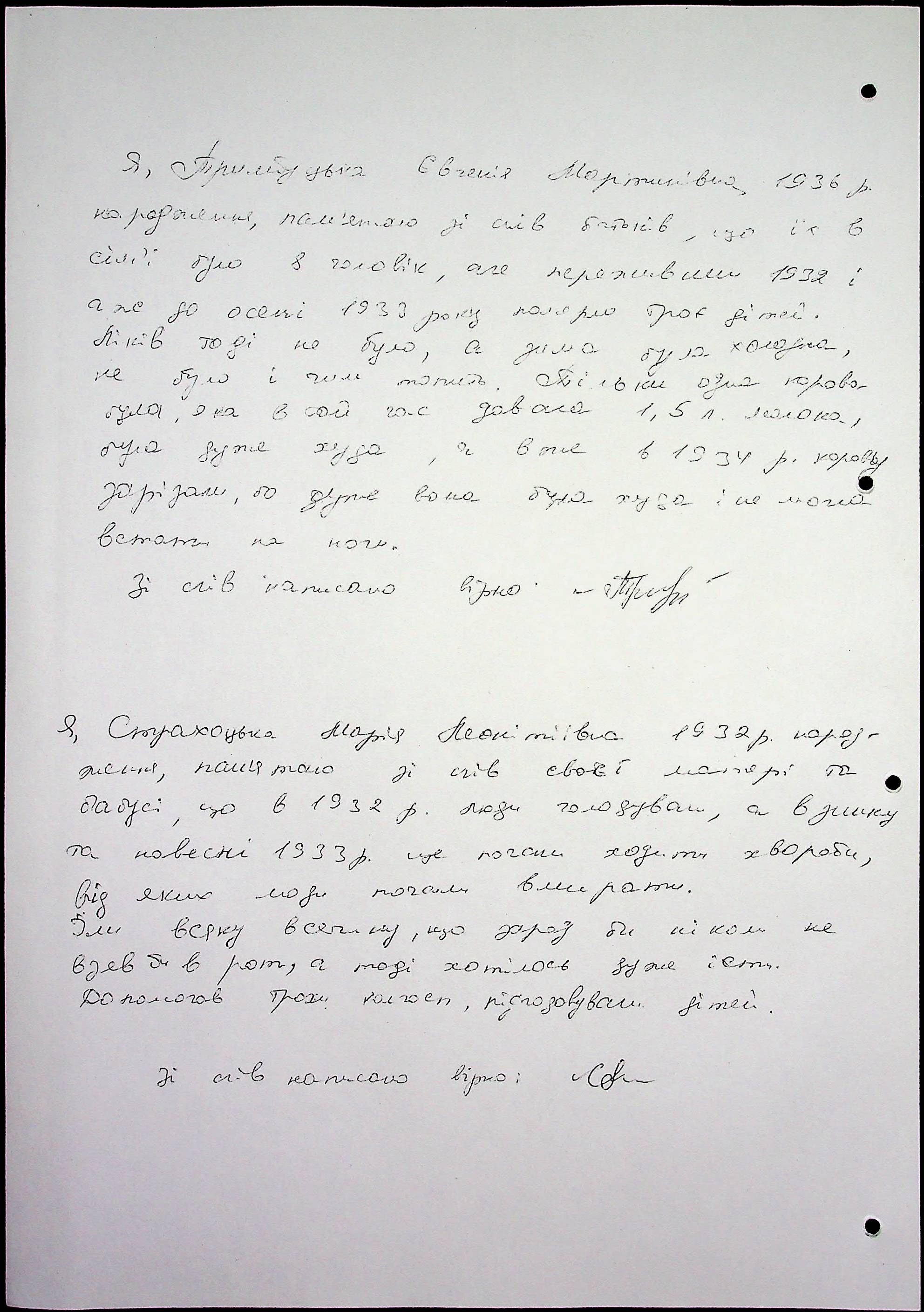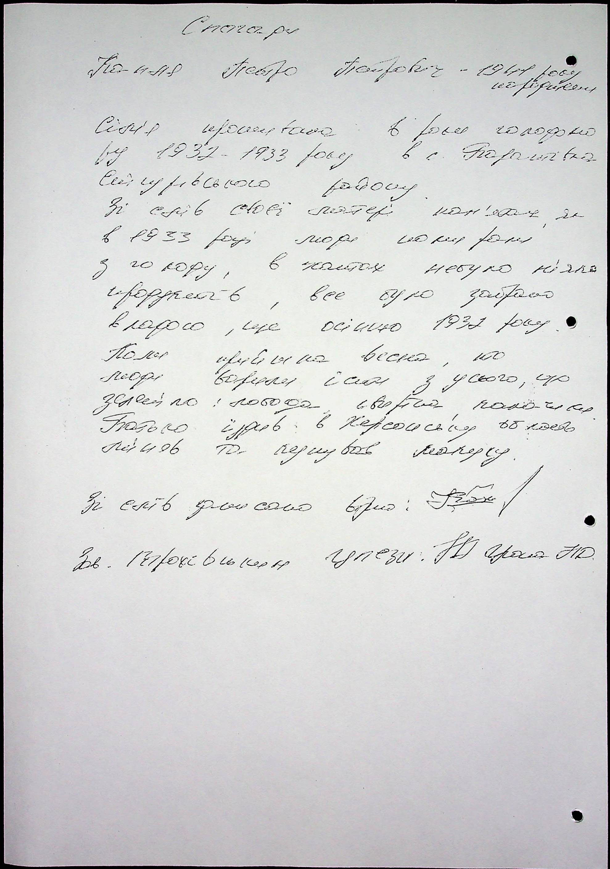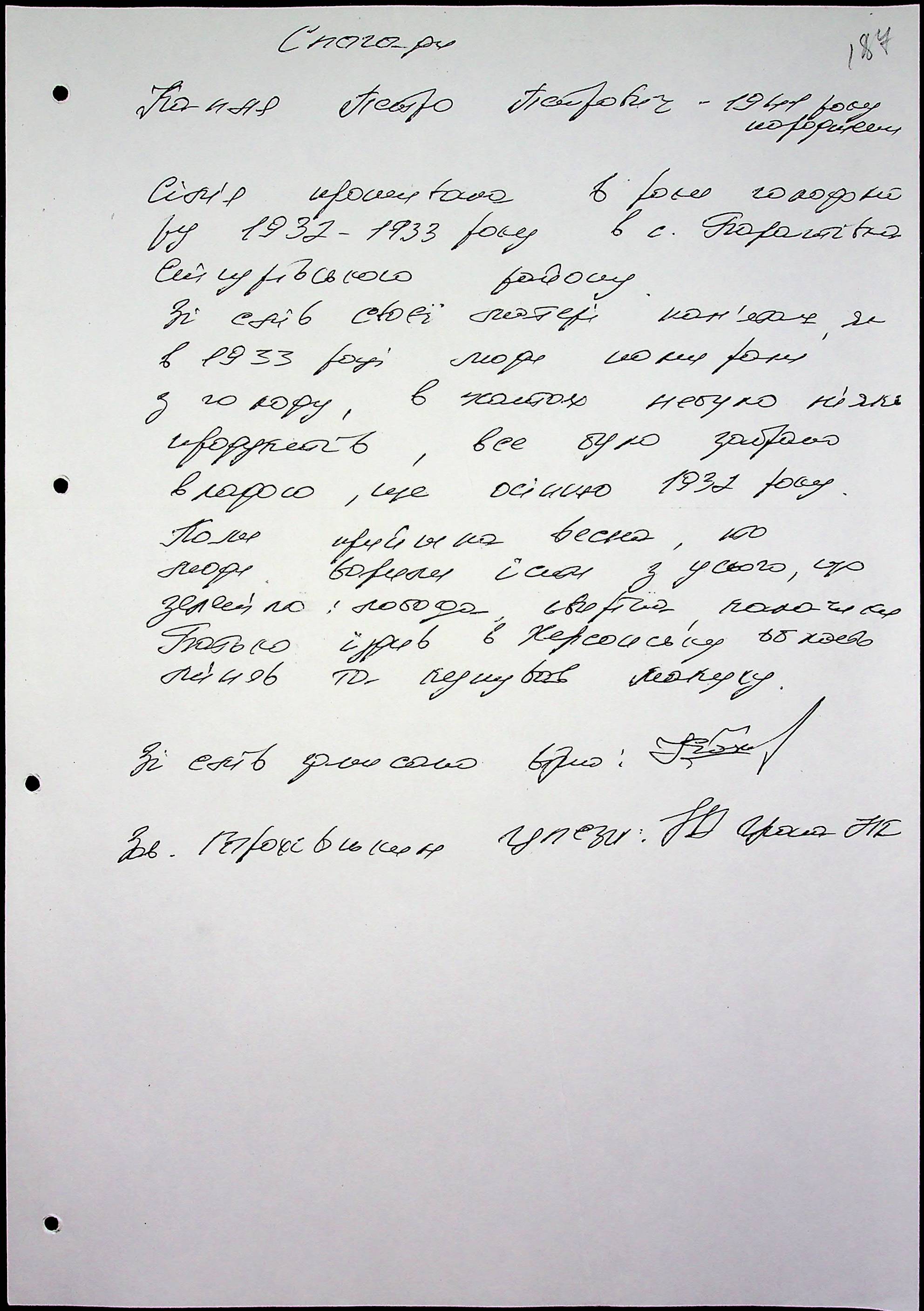 • • • • Справа № 65 “Свідчення очевидців Голодомору 1932-1933 років, які проживають у Снігурівському районі. Том 2”