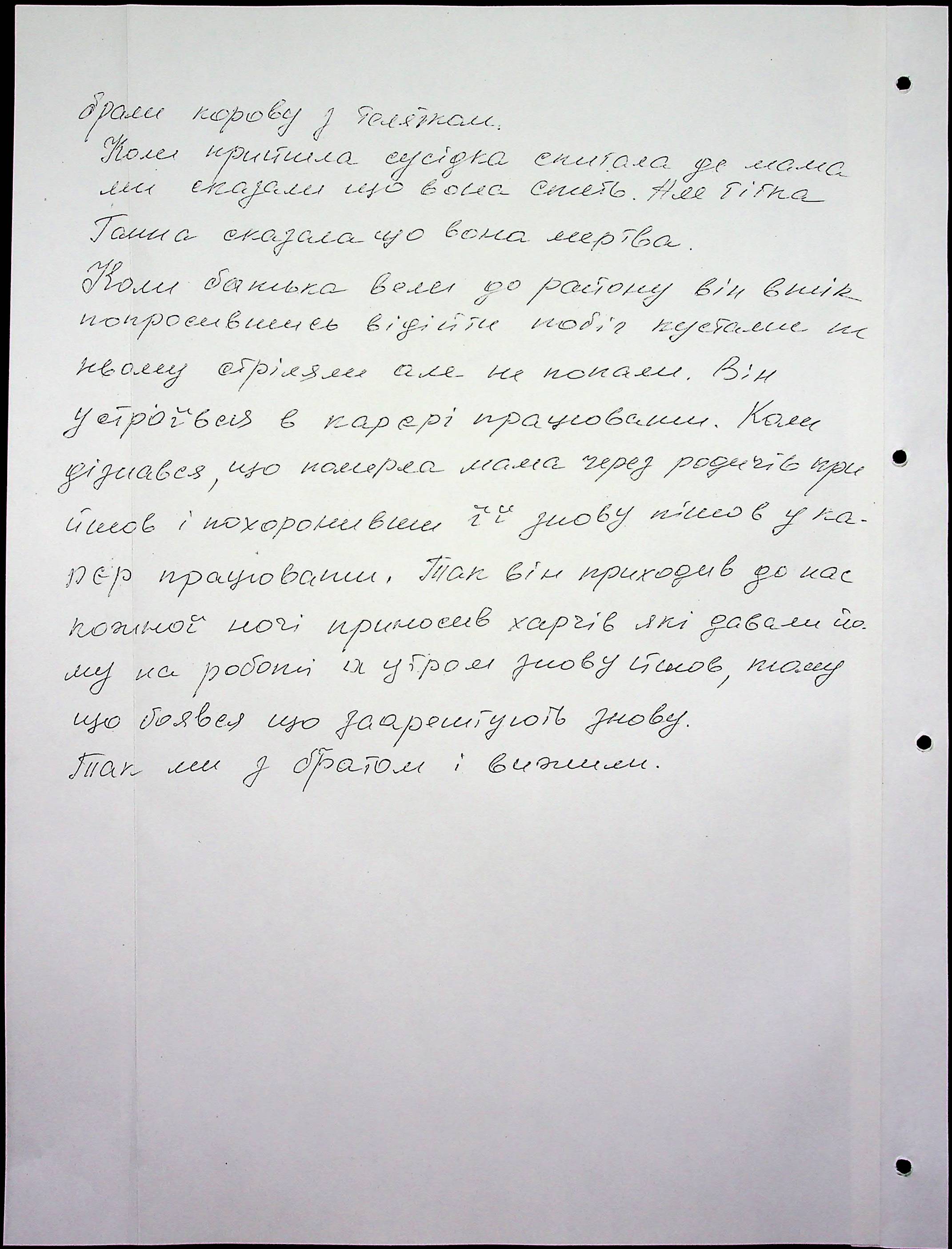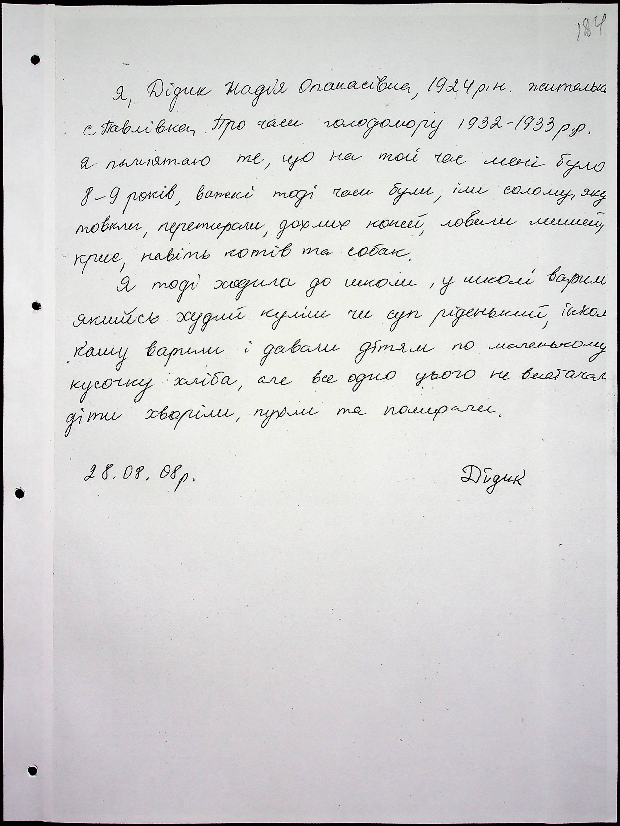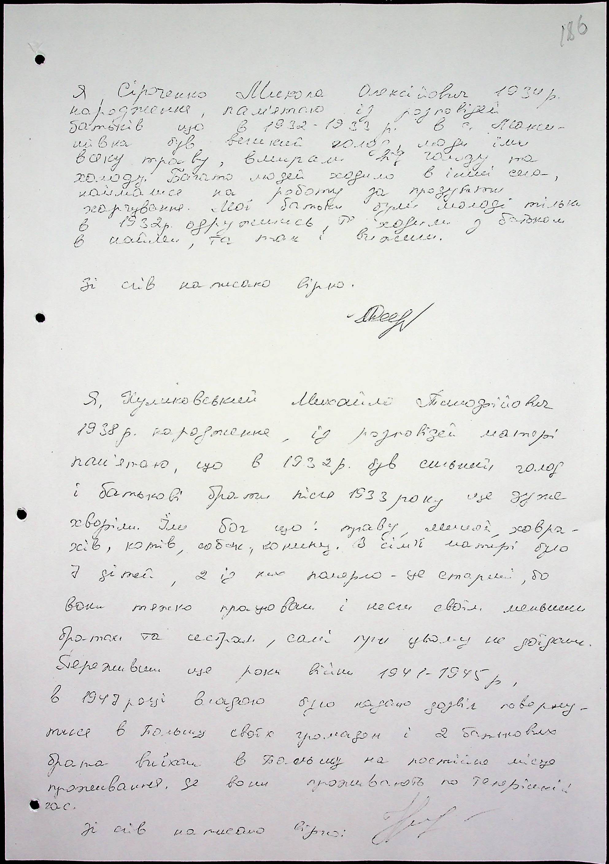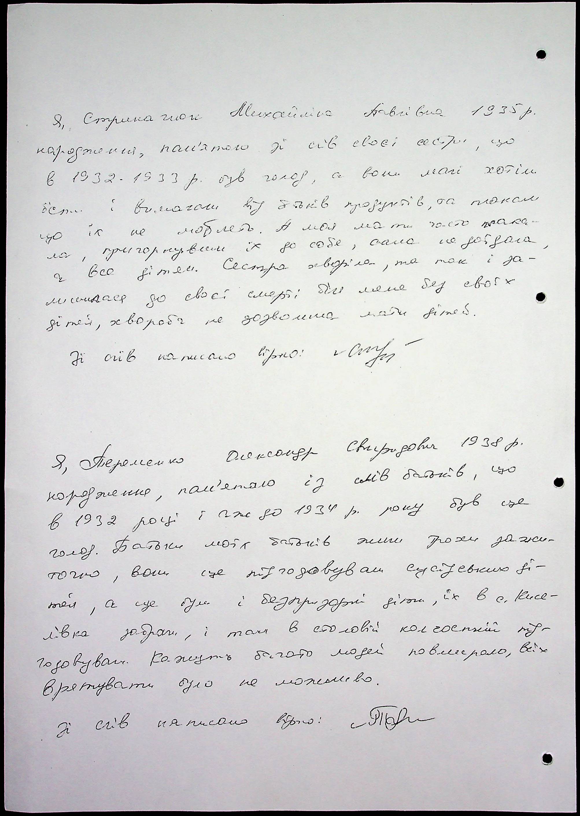 • • • • Справа № 65 “Свідчення очевидців Голодомору 1932-1933 років, які проживають у Снігурівському районі. Том 2”