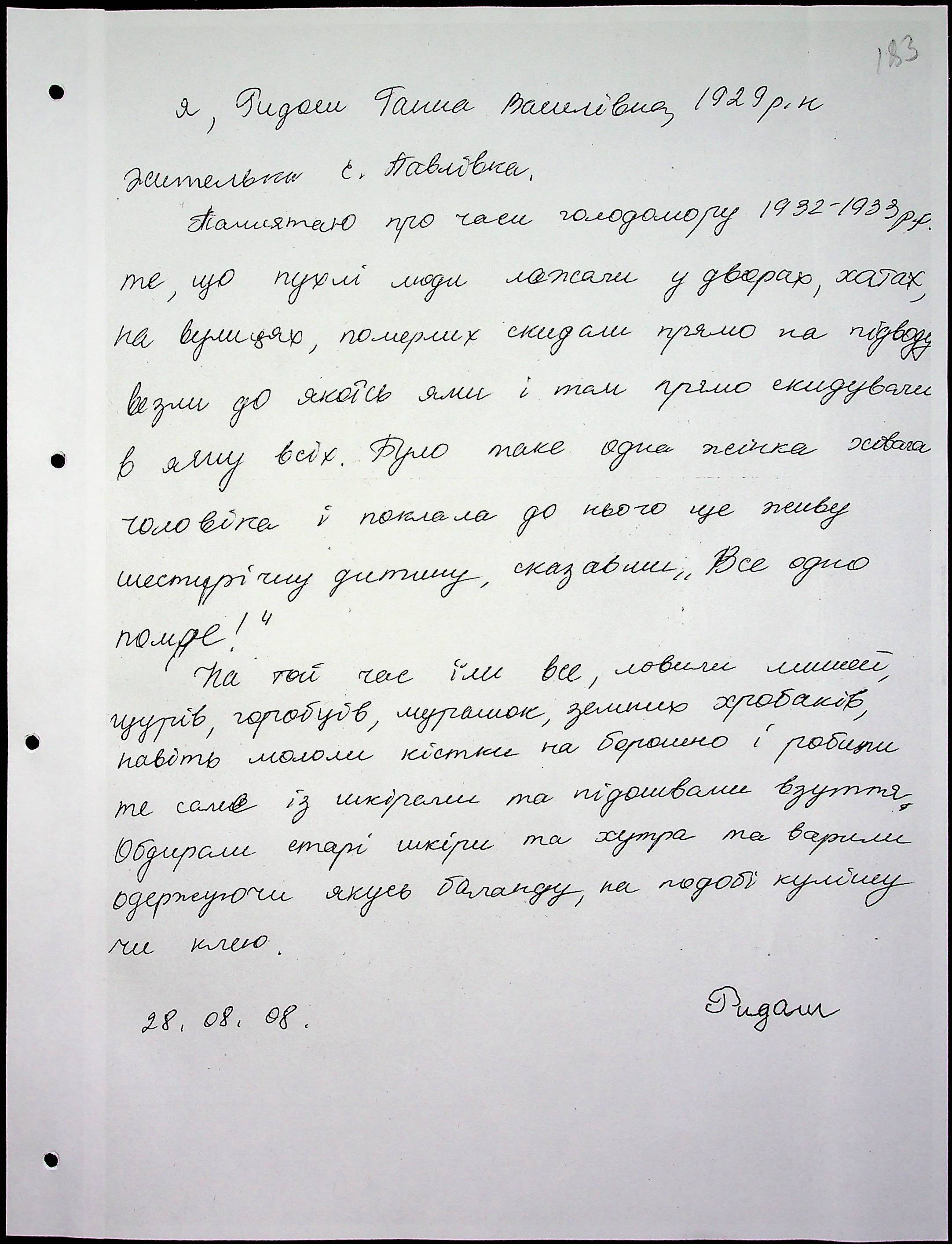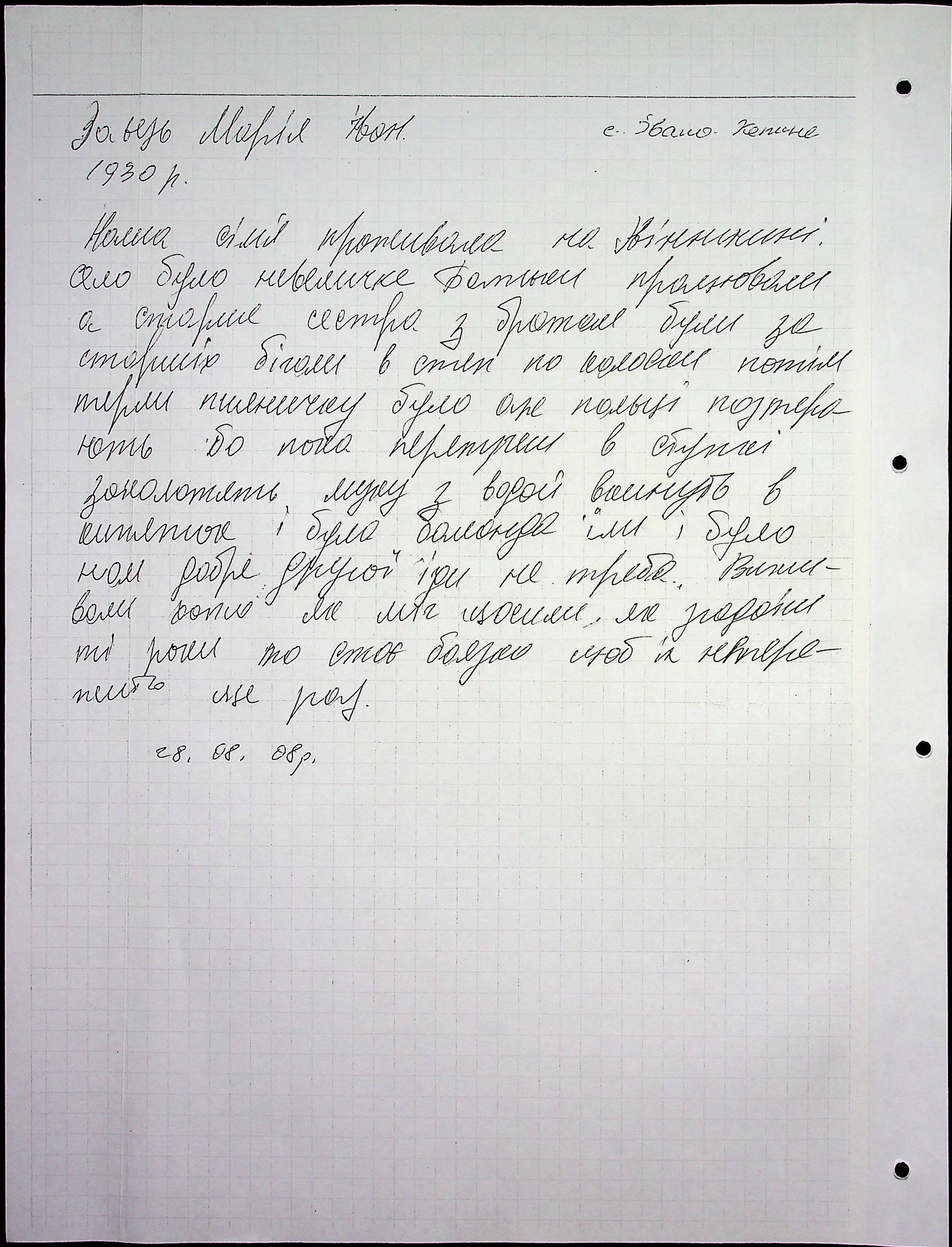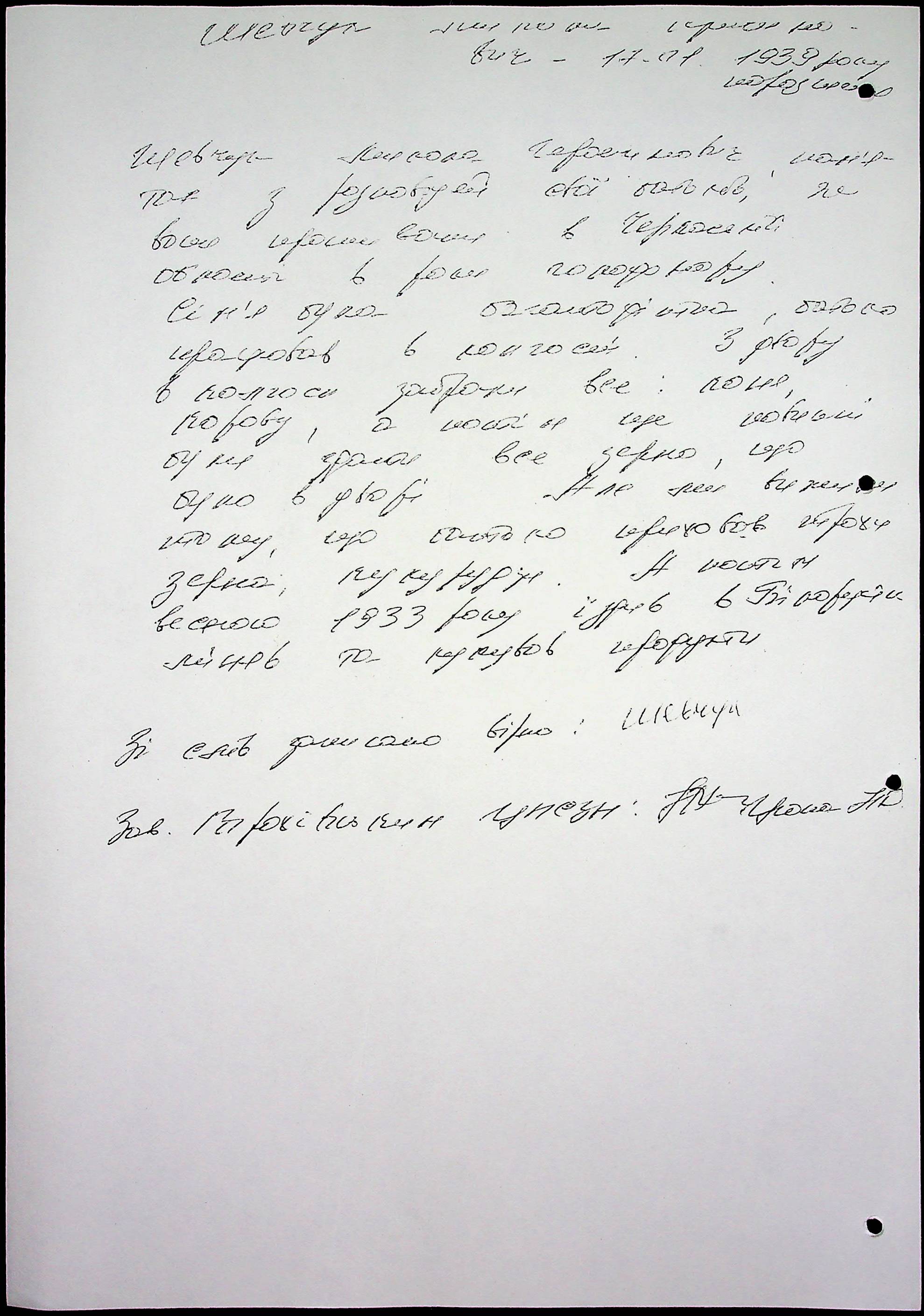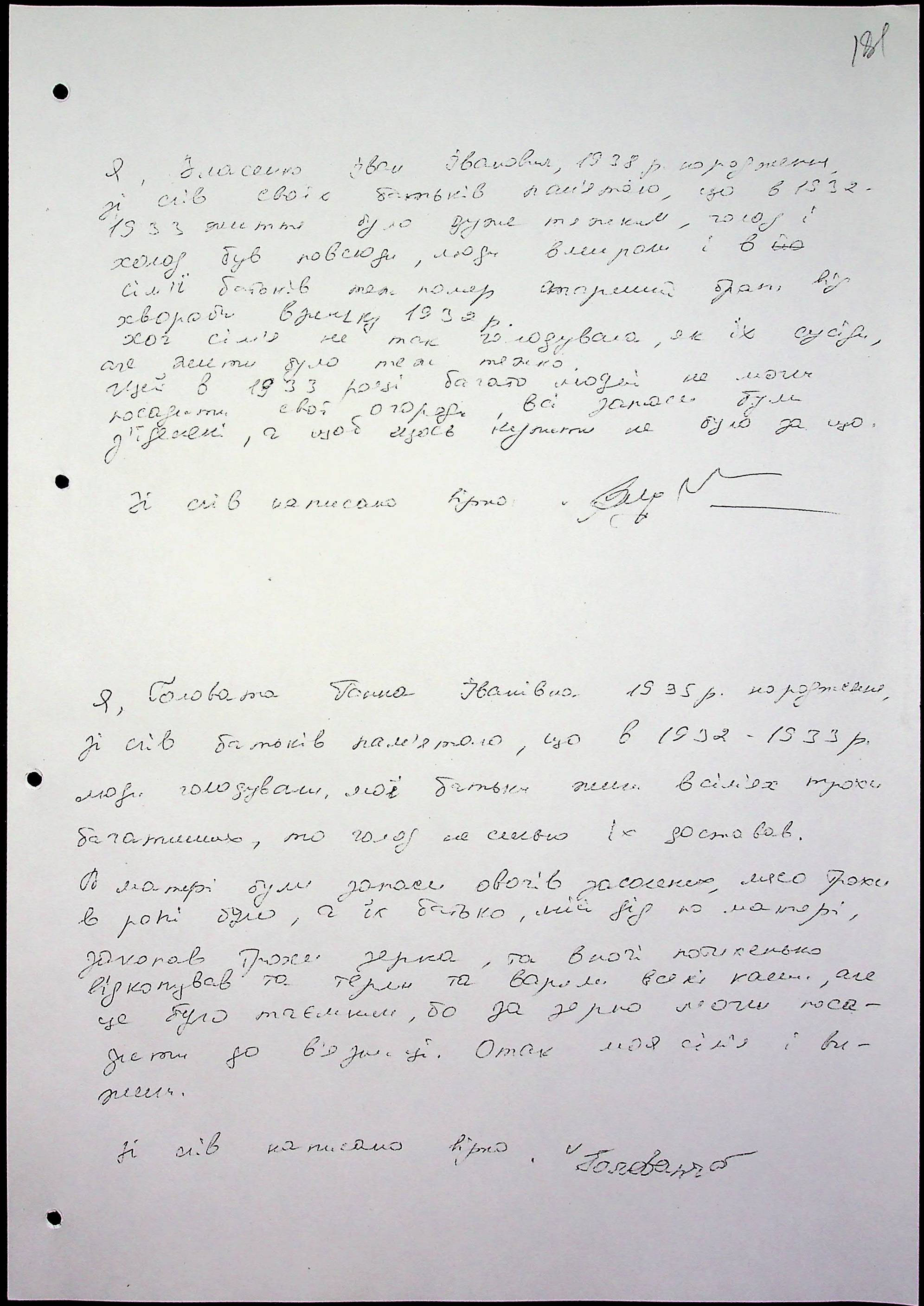 • • • • Справа № 65 “Свідчення очевидців Голодомору 1932-1933 років, які проживають у Снігурівському районі. Том 2”