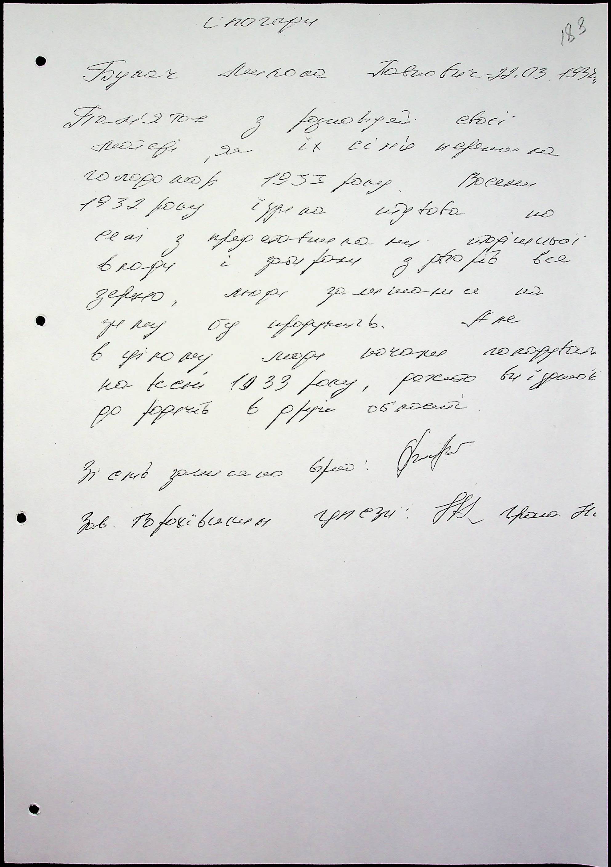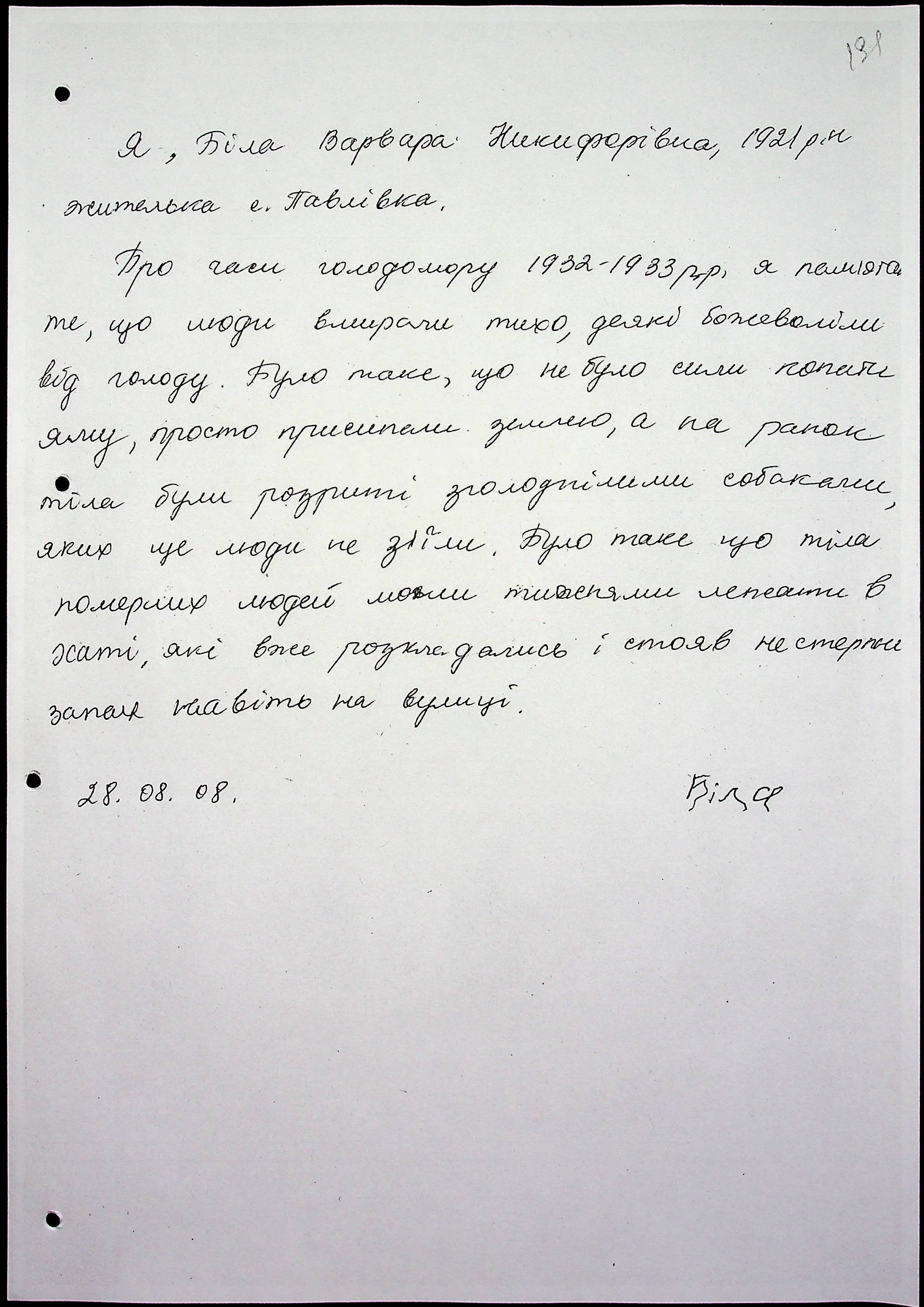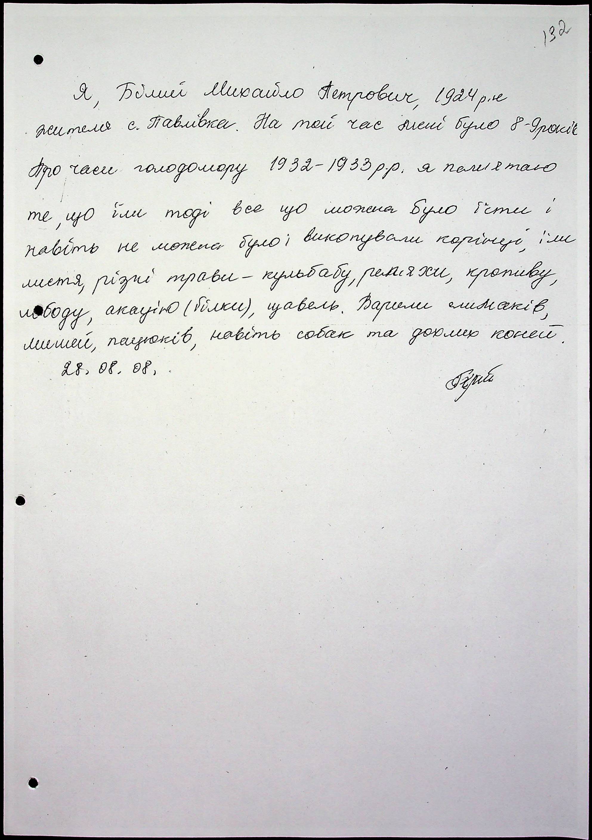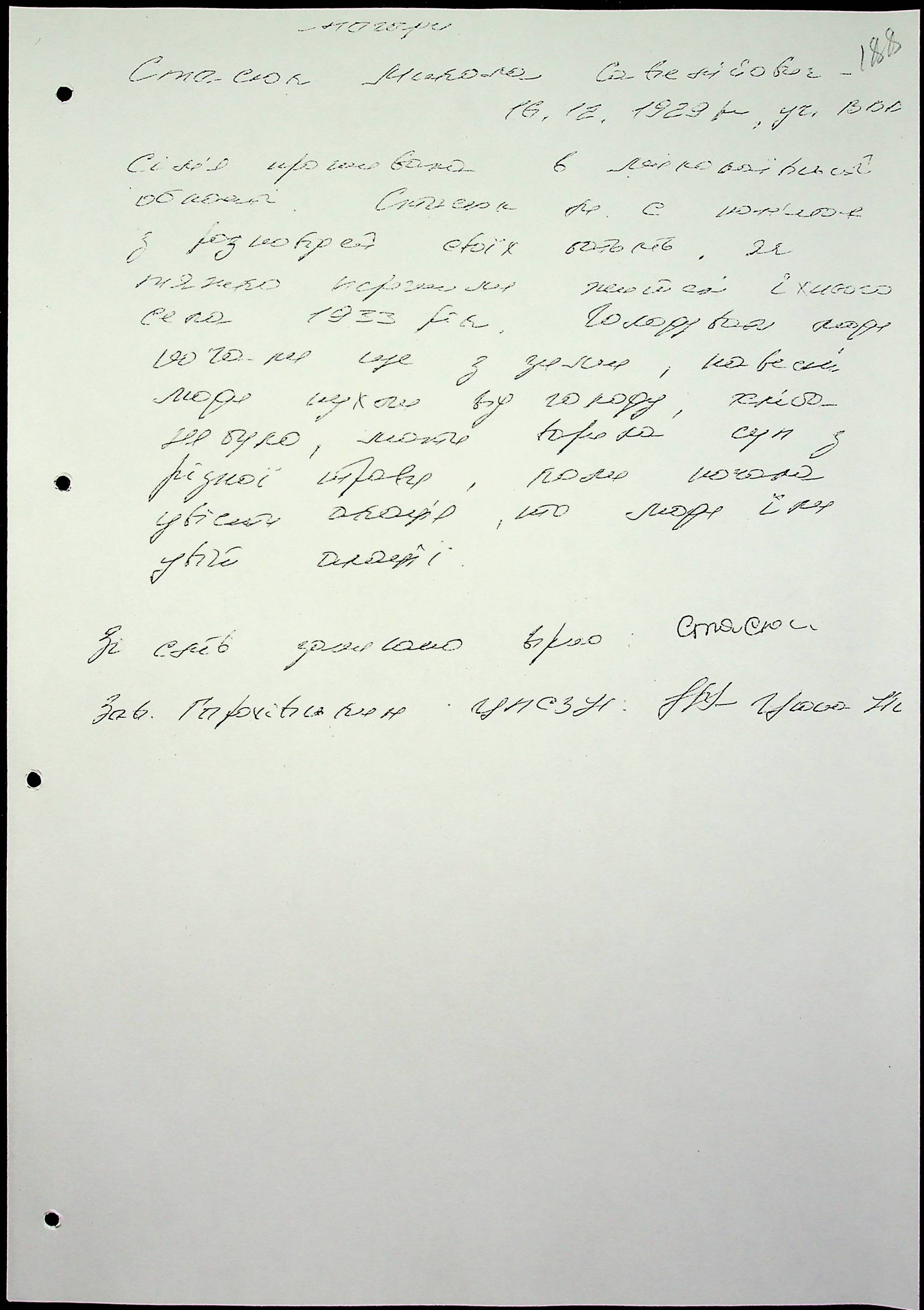 • • • • Справа № 65 “Свідчення очевидців Голодомору 1932-1933 років, які проживають у Снігурівському районі. Том 2”