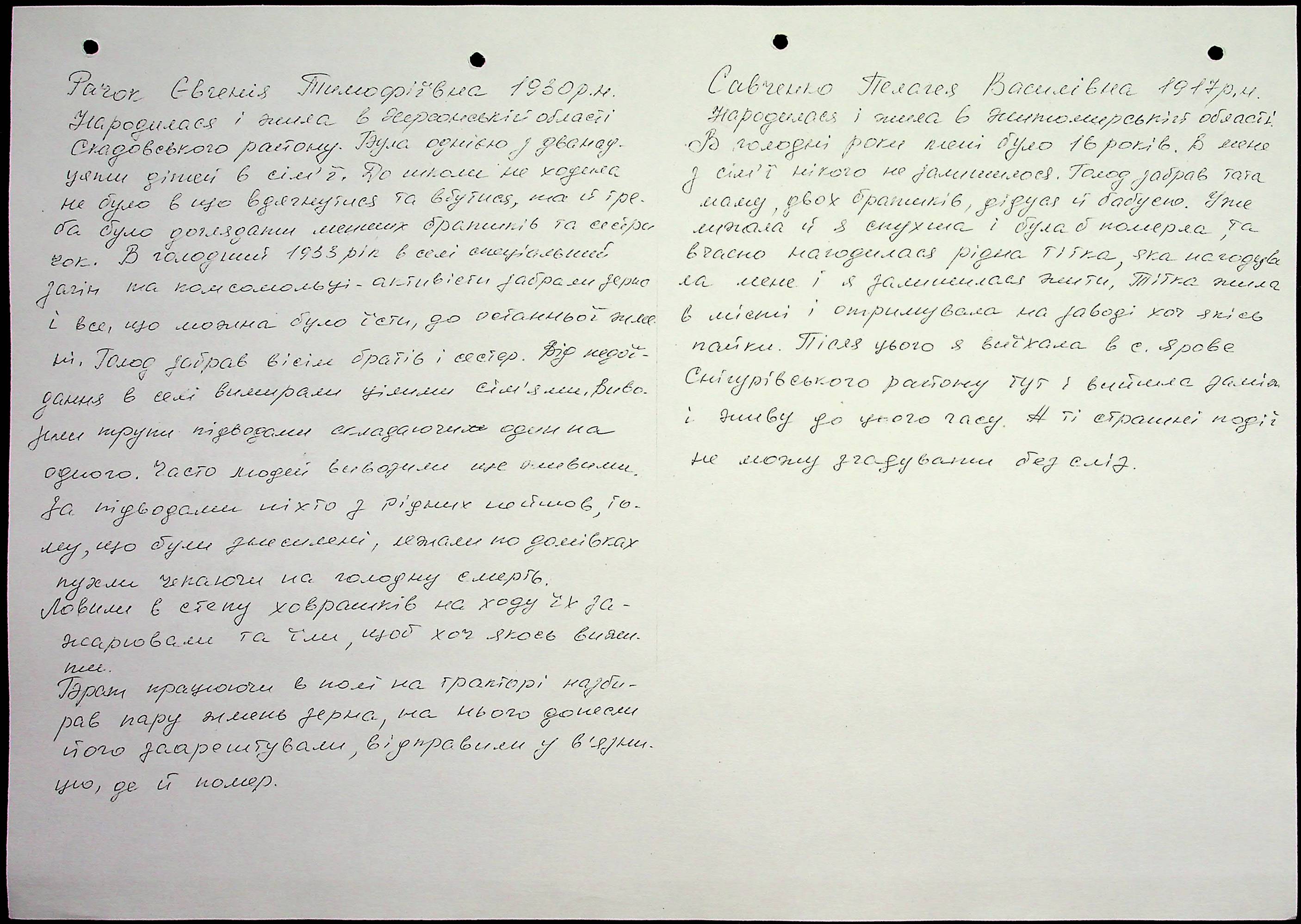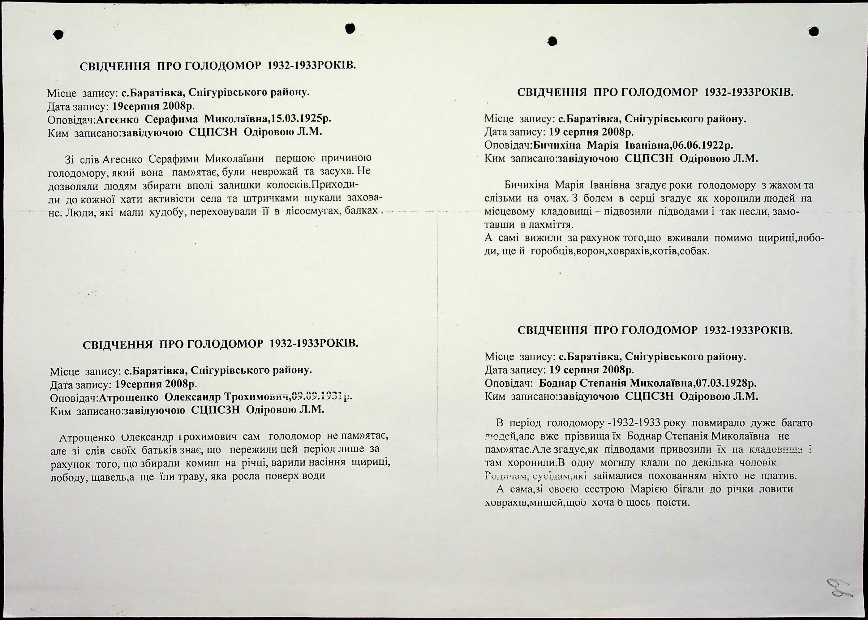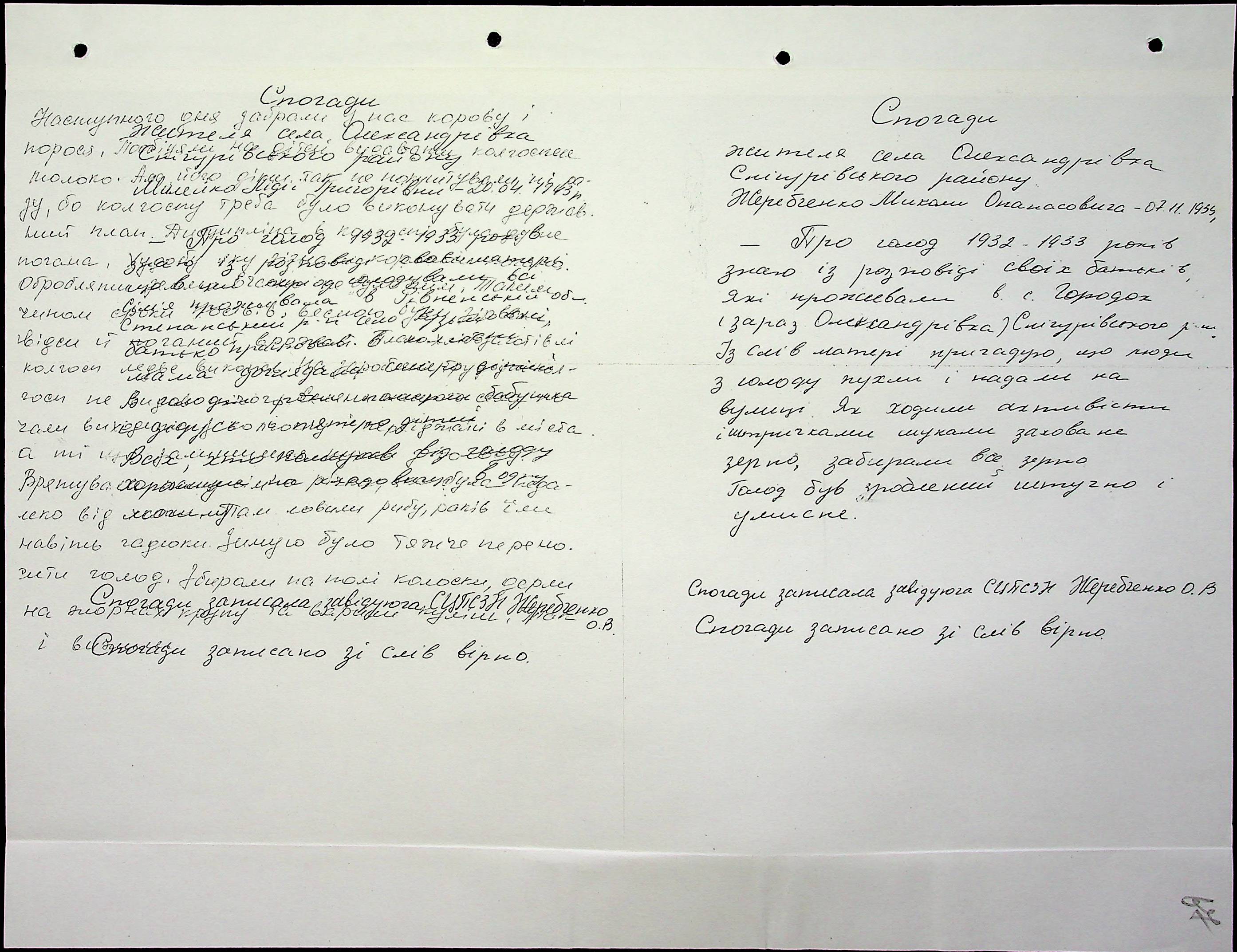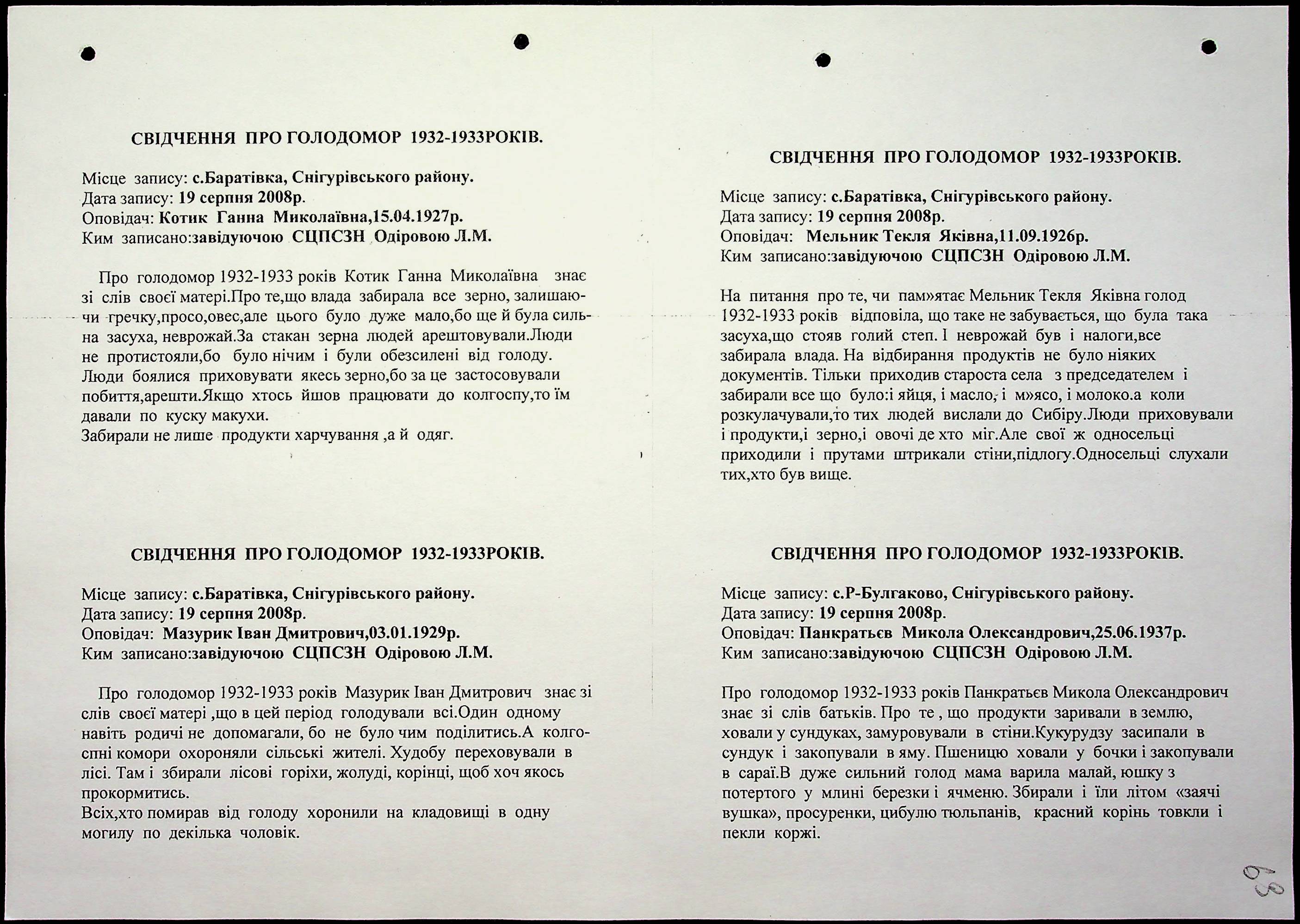 • • • • Справа № 65 “Свідчення очевидців Голодомору 1932-1933 років, які проживають у Снігурівському районі. Том 2”