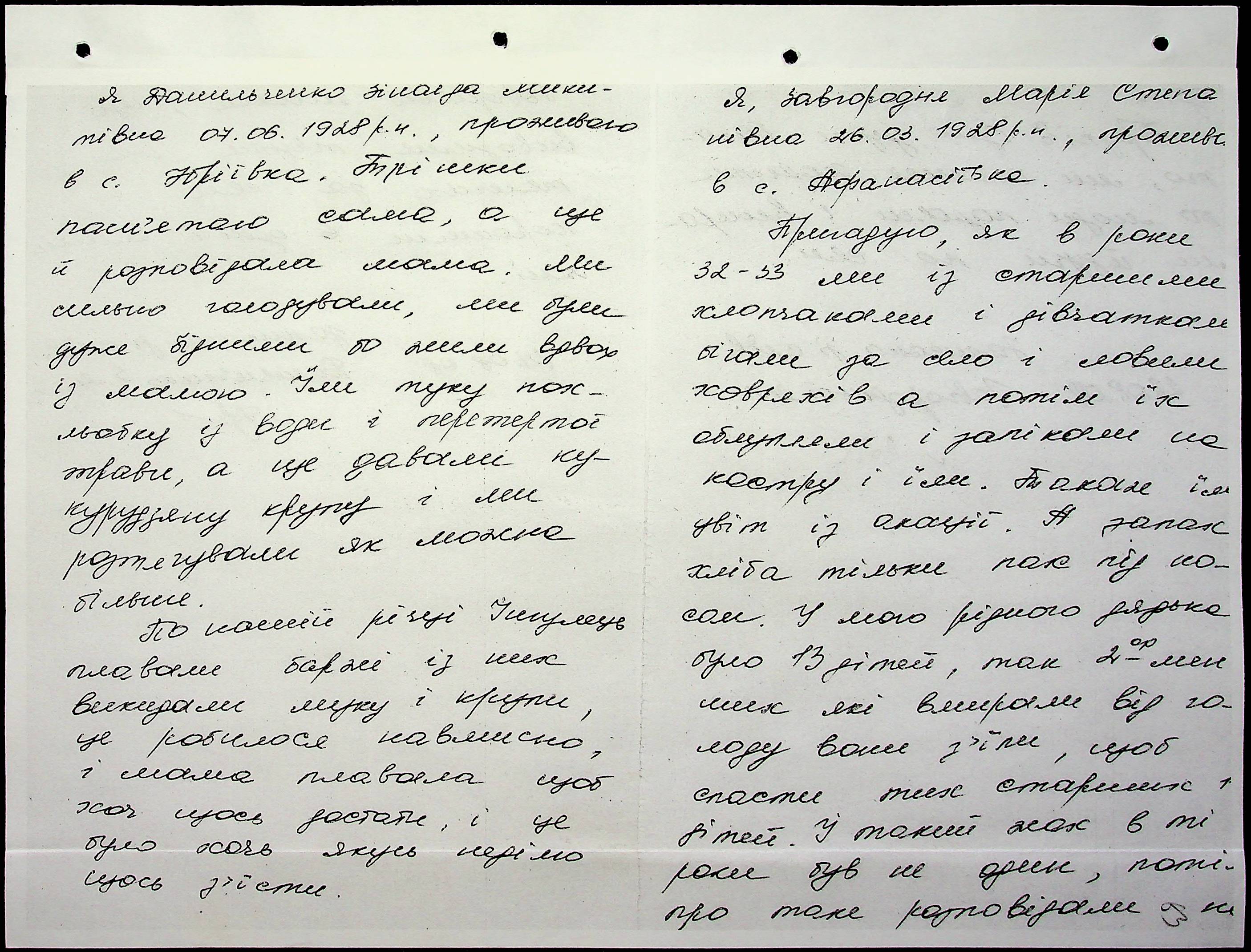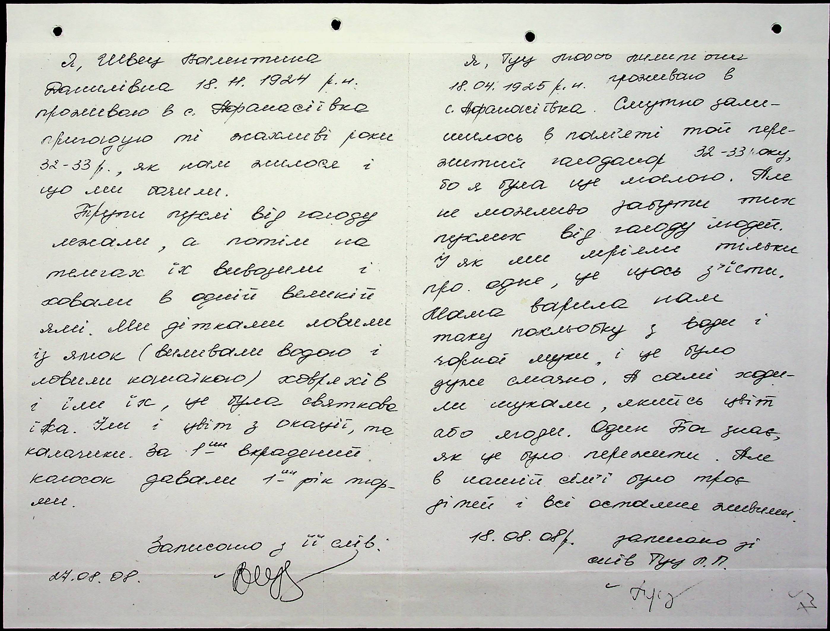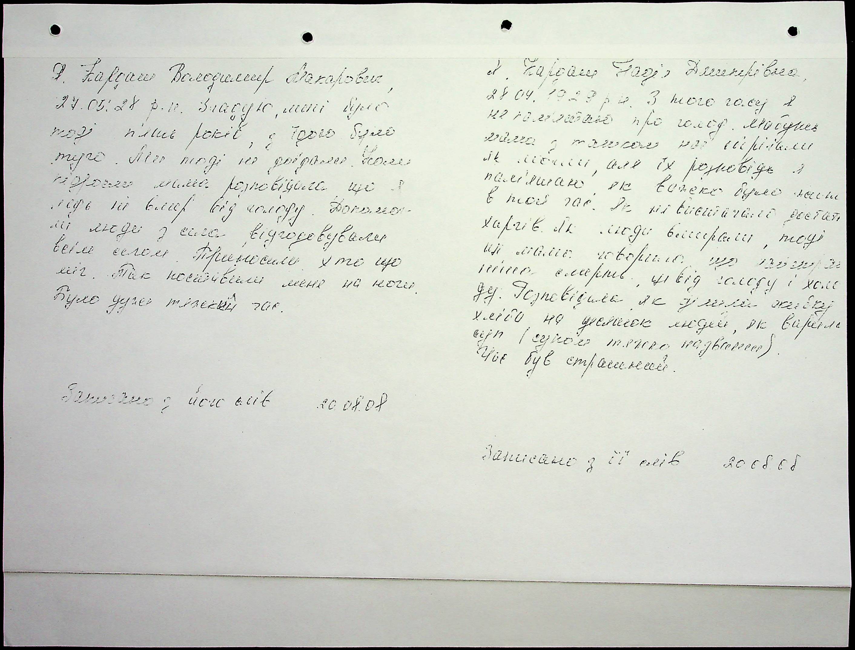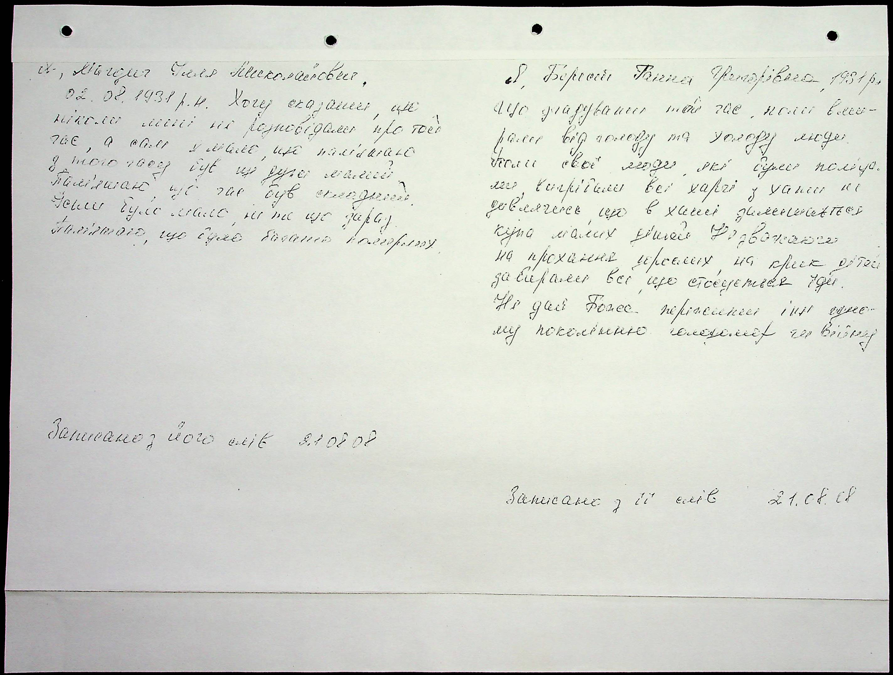 • • • • Справа № 65 “Свідчення очевидців Голодомору 1932-1933 років, які проживають у Снігурівському районі. Том 2”