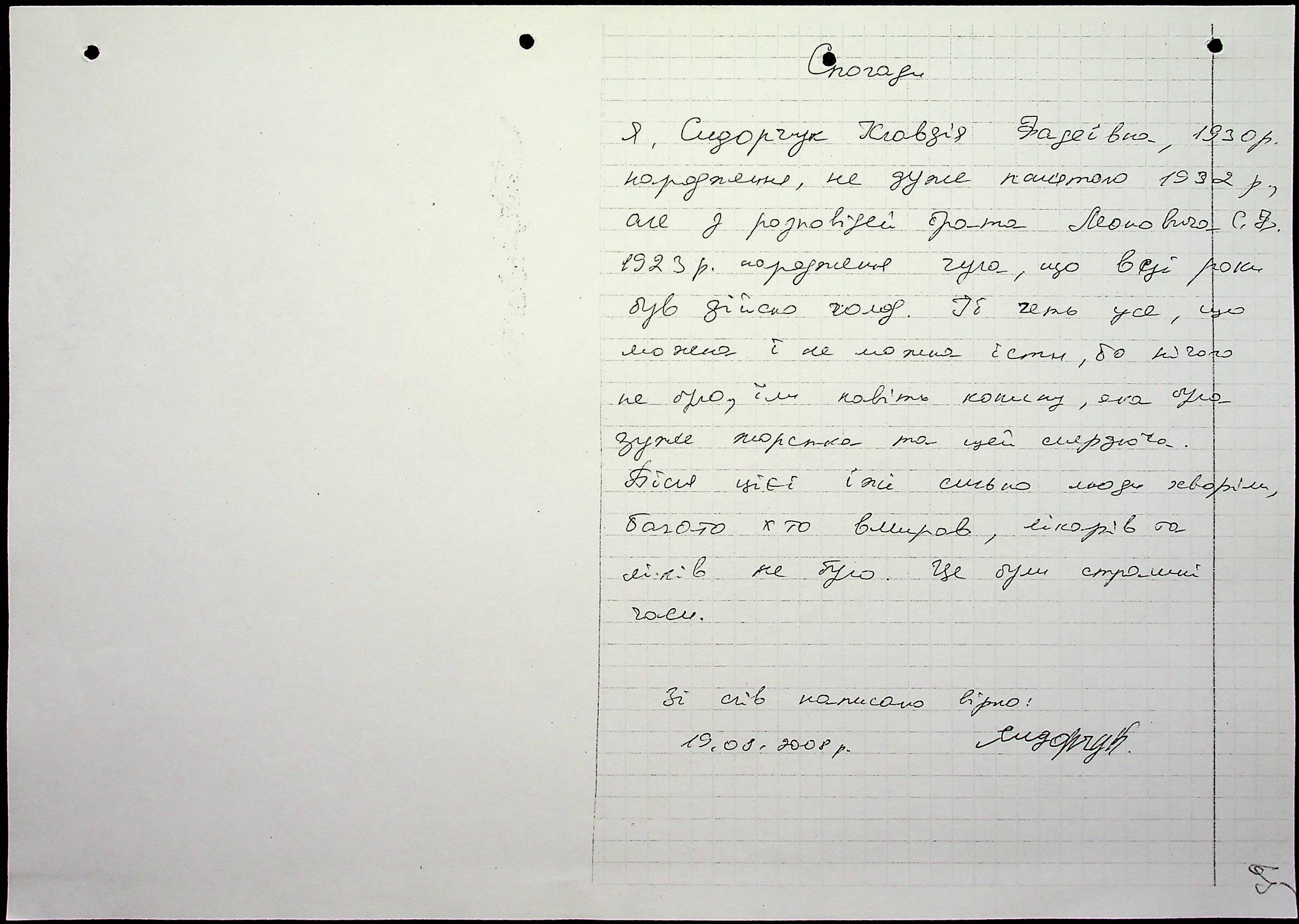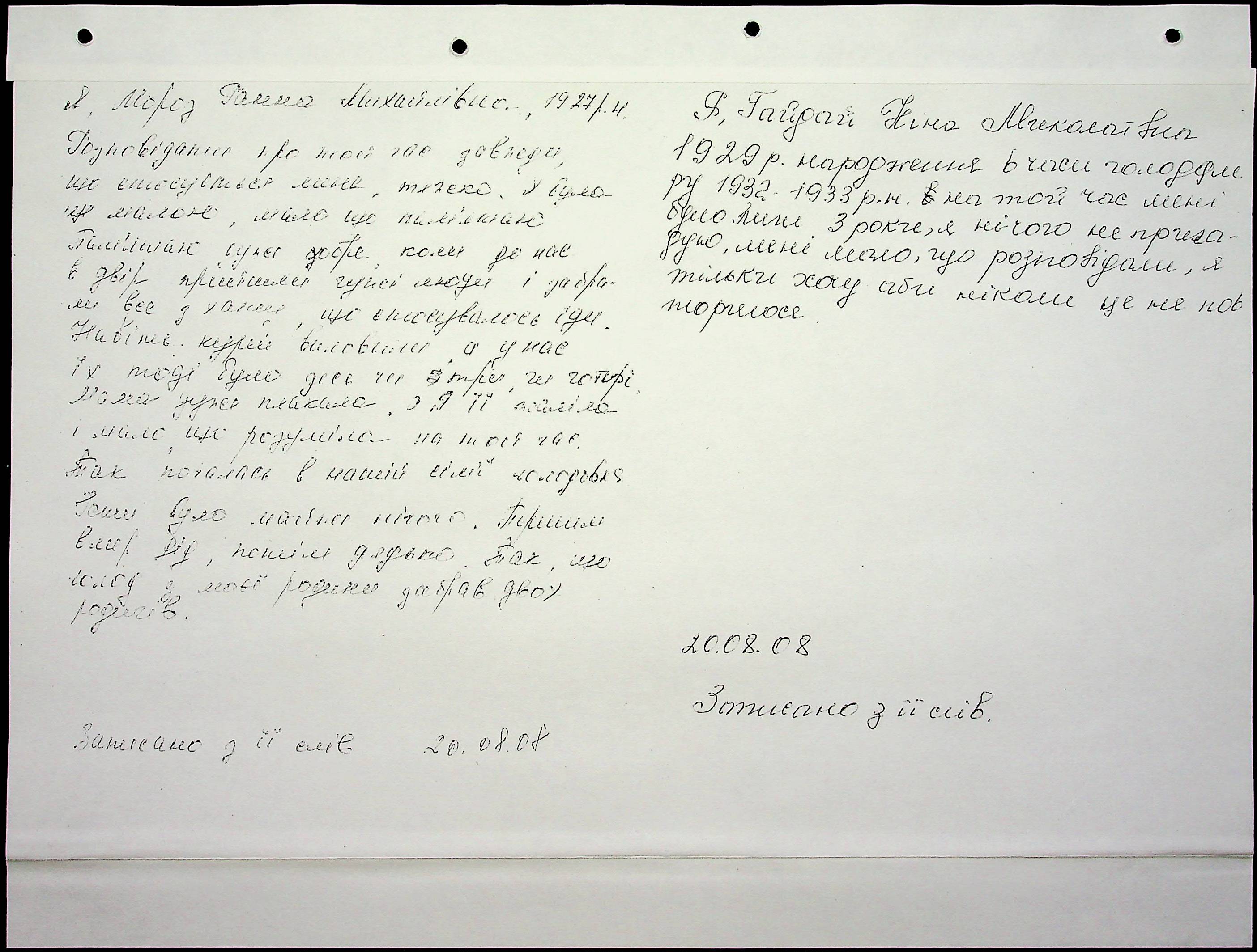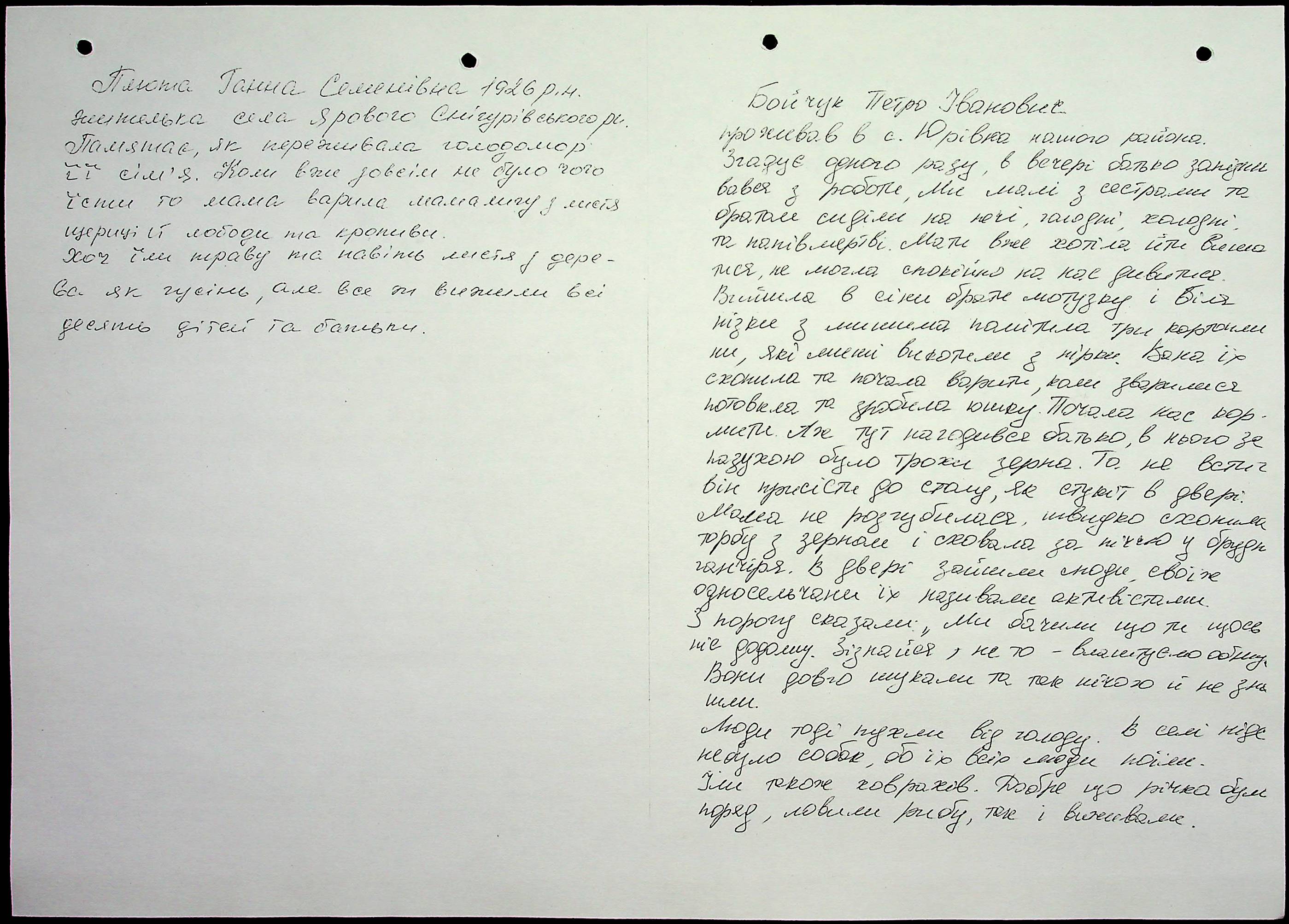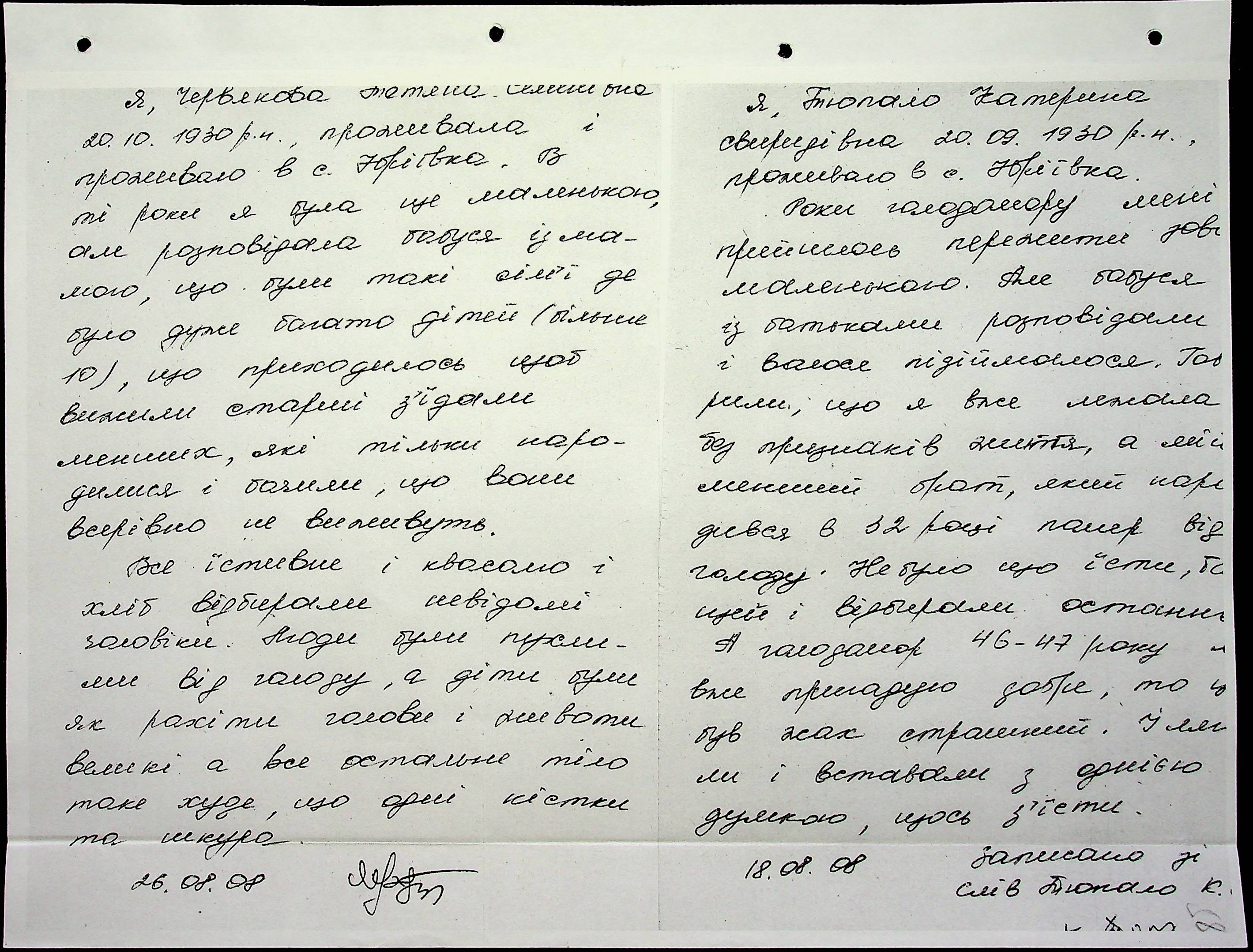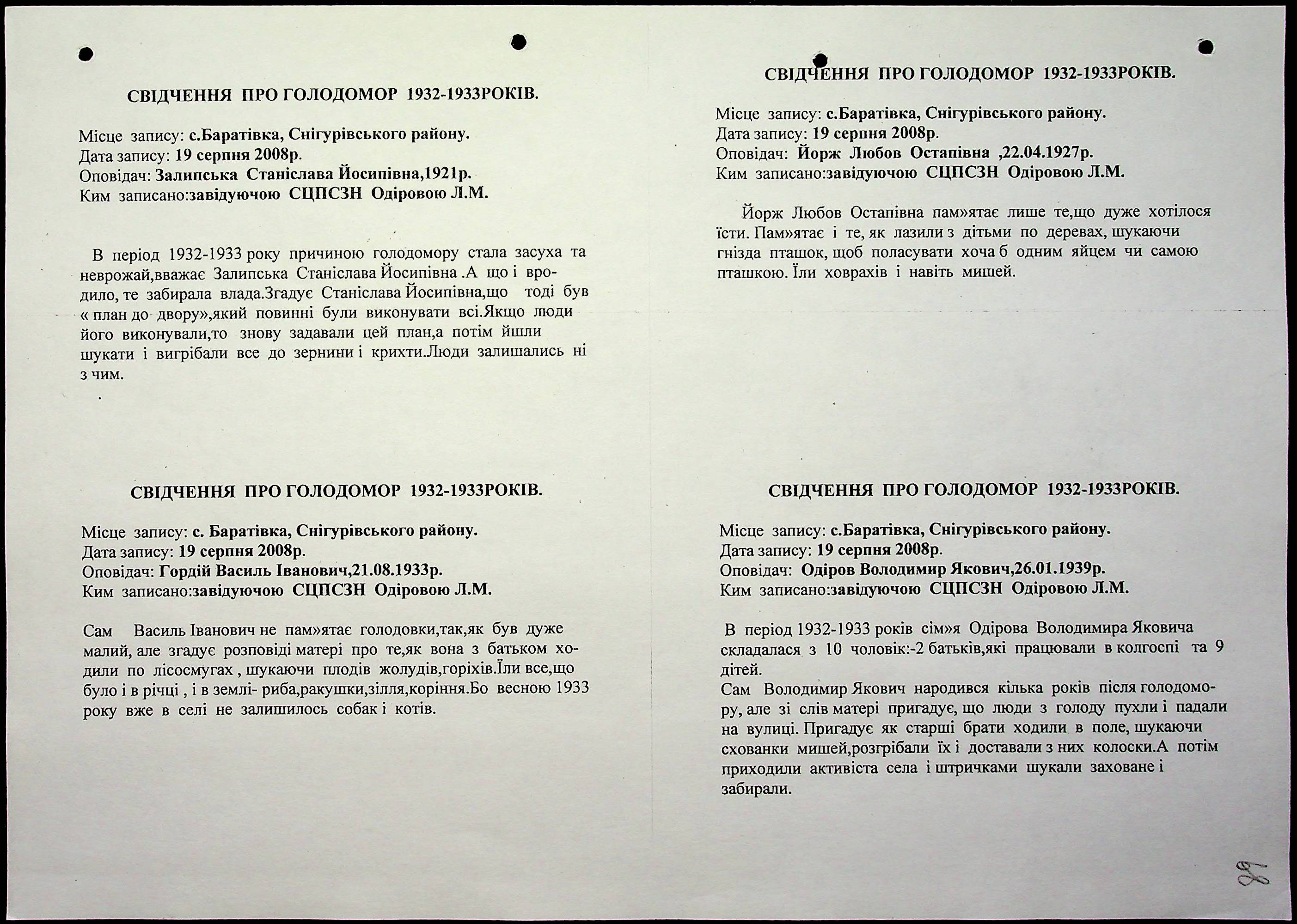 • • • • Справа № 65 “Свідчення очевидців Голодомору 1932-1933 років, які проживають у Снігурівському районі. Том 2”