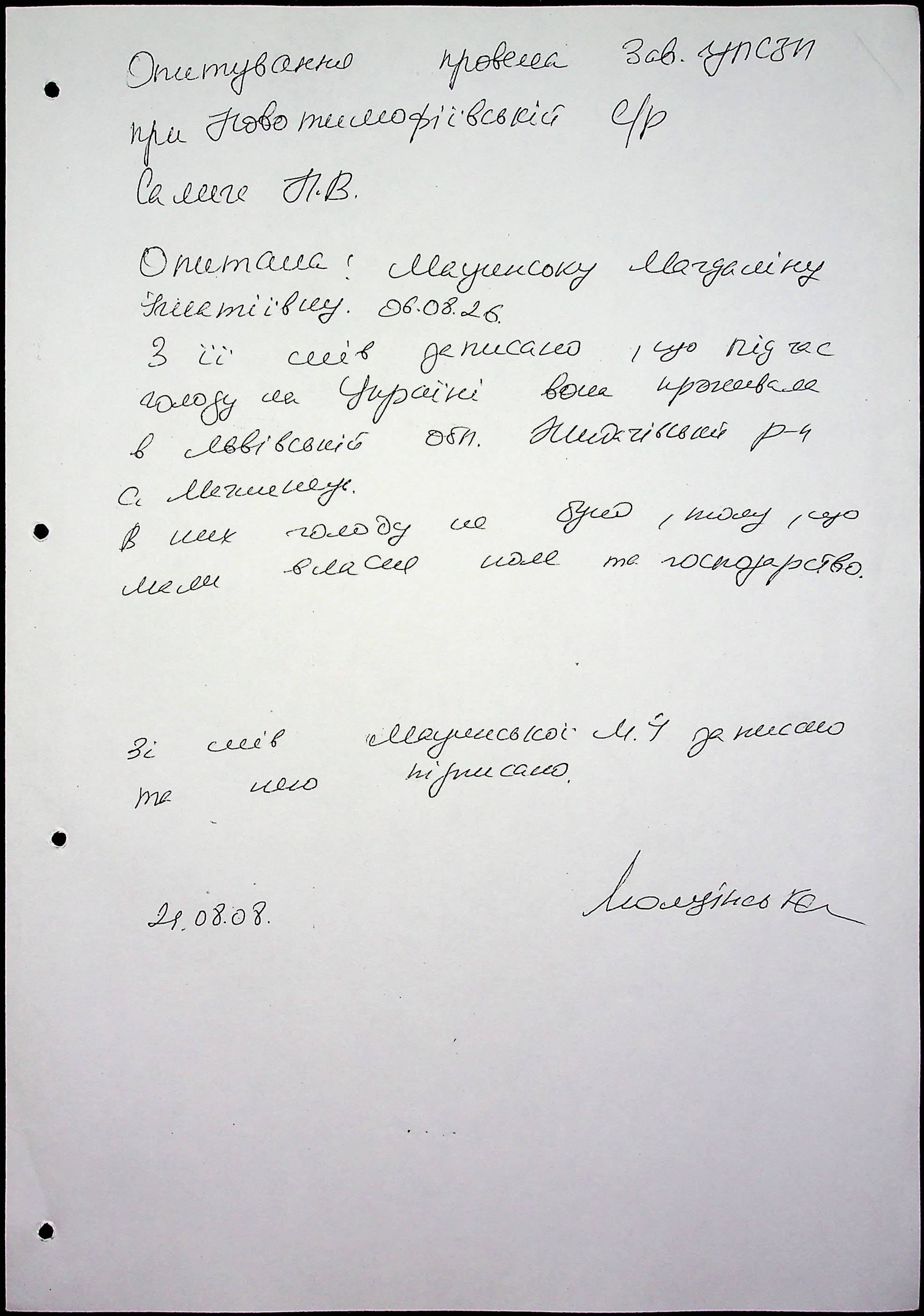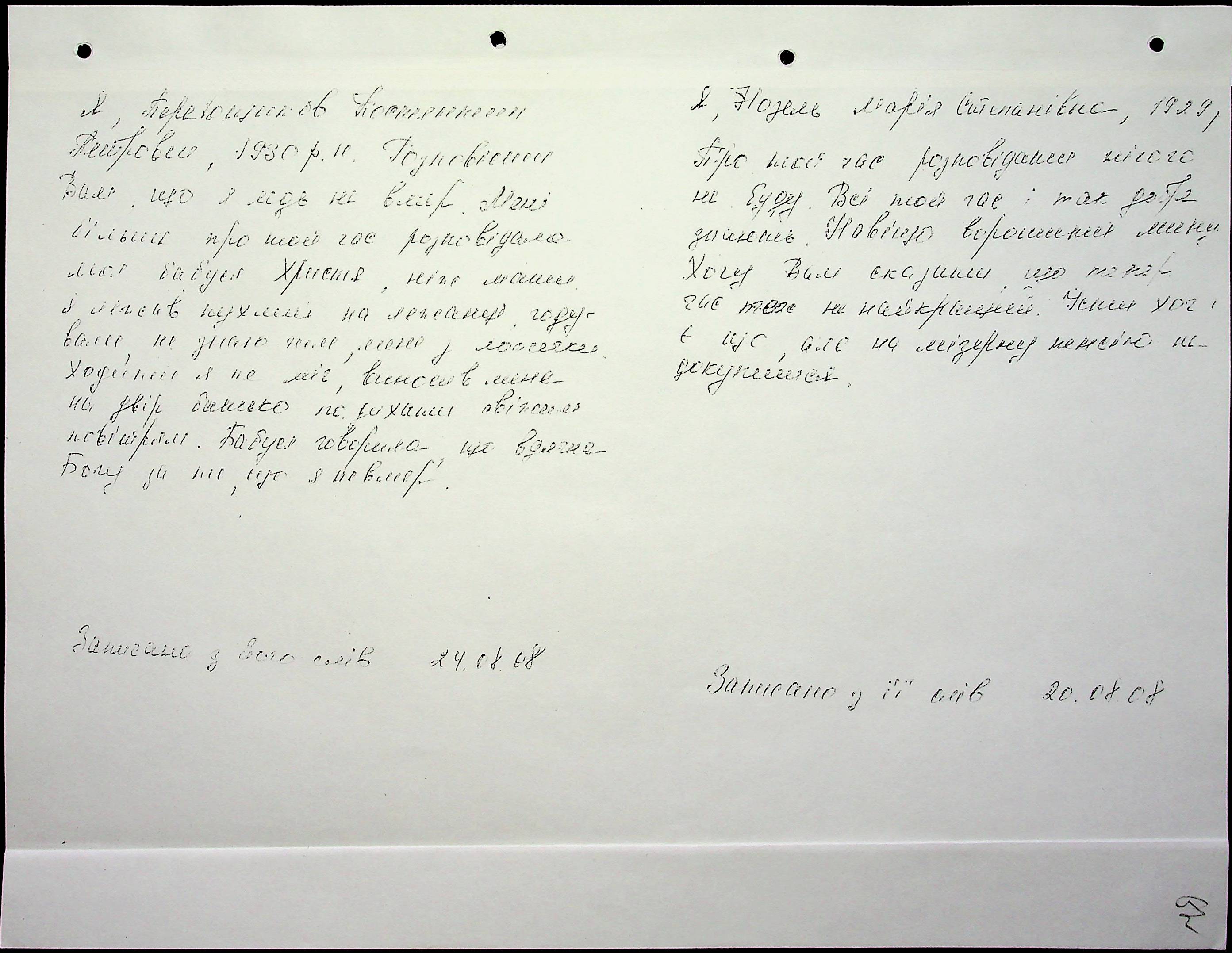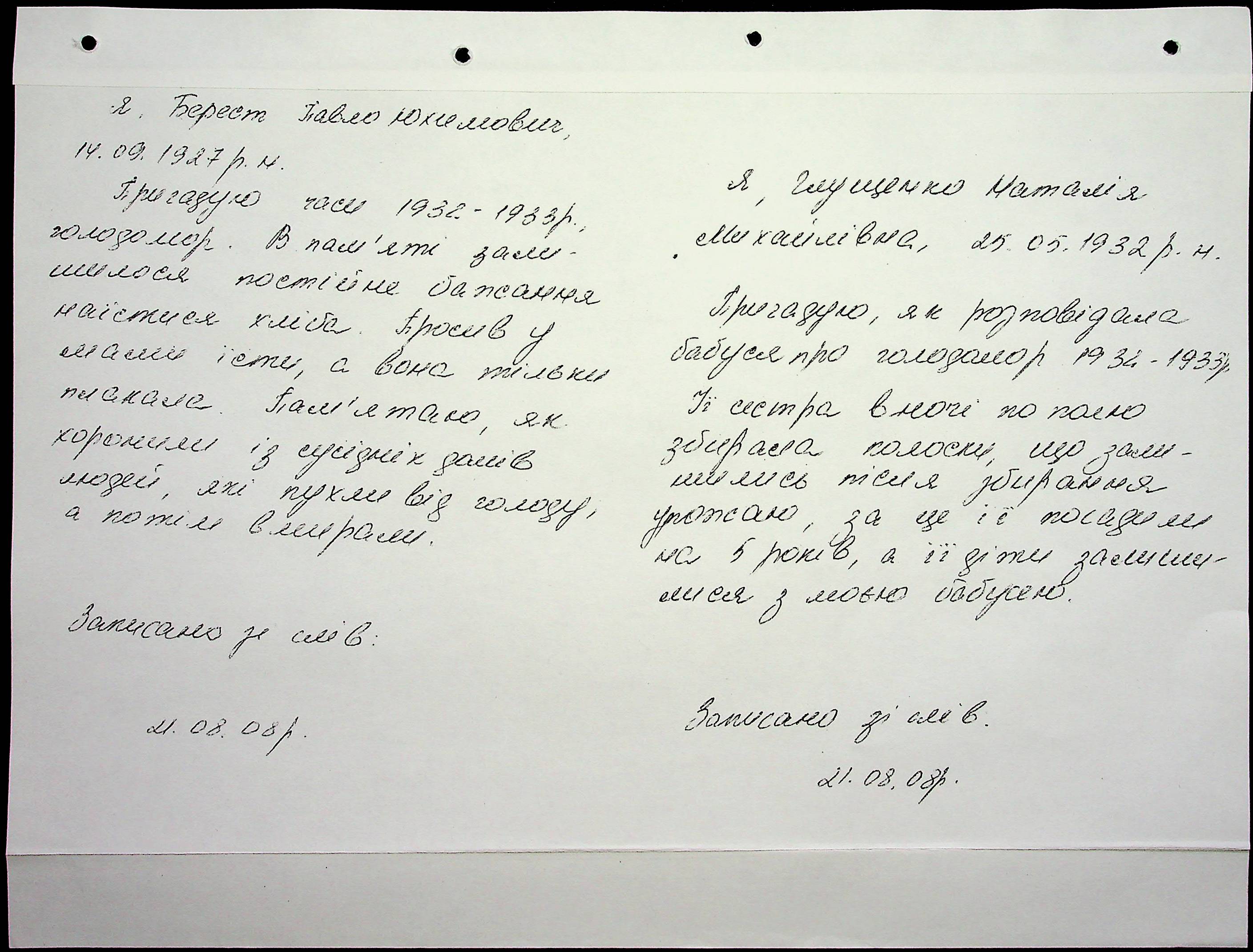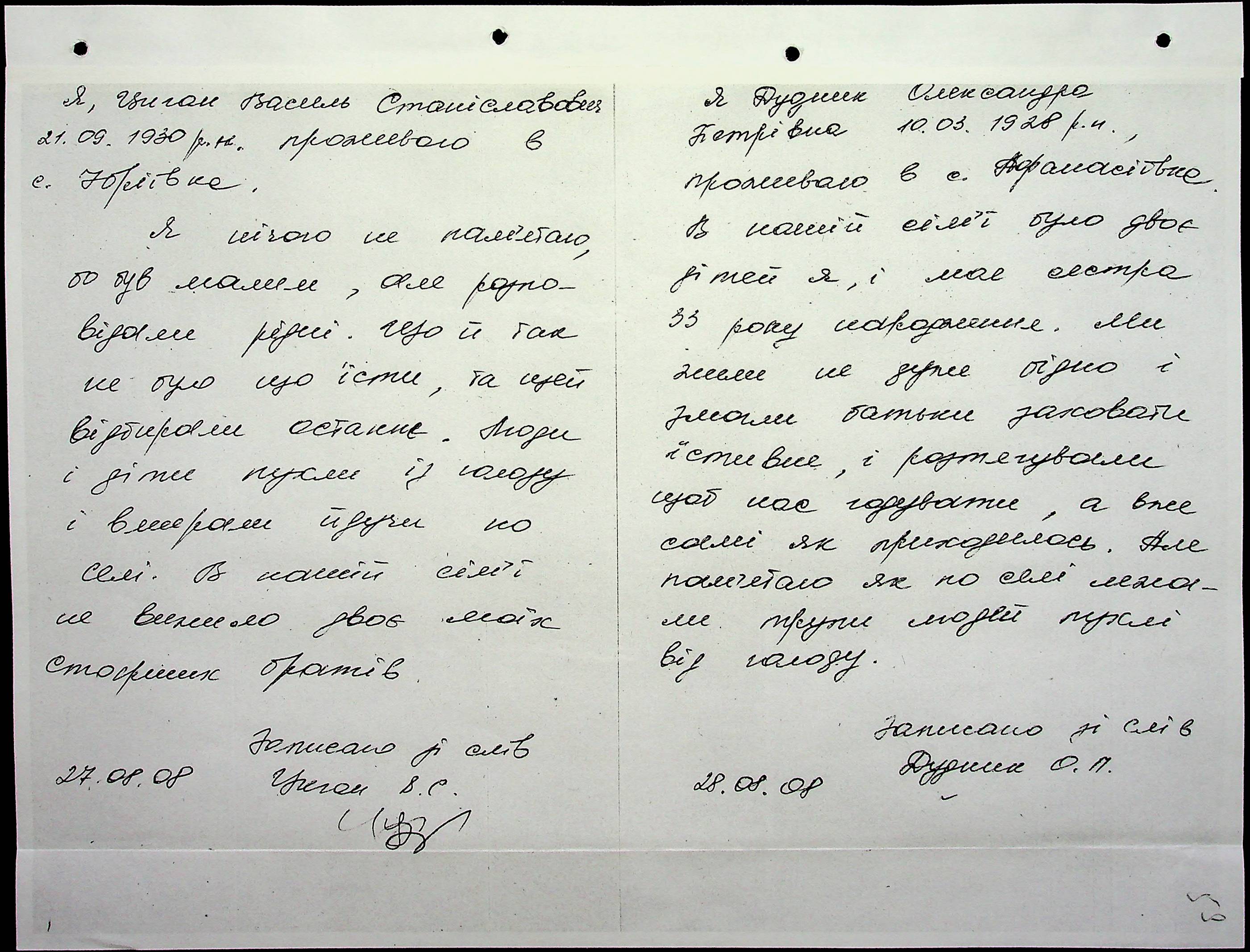 • • • • Справа № 65 “Свідчення очевидців Голодомору 1932-1933 років, які проживають у Снігурівському районі. Том 2”