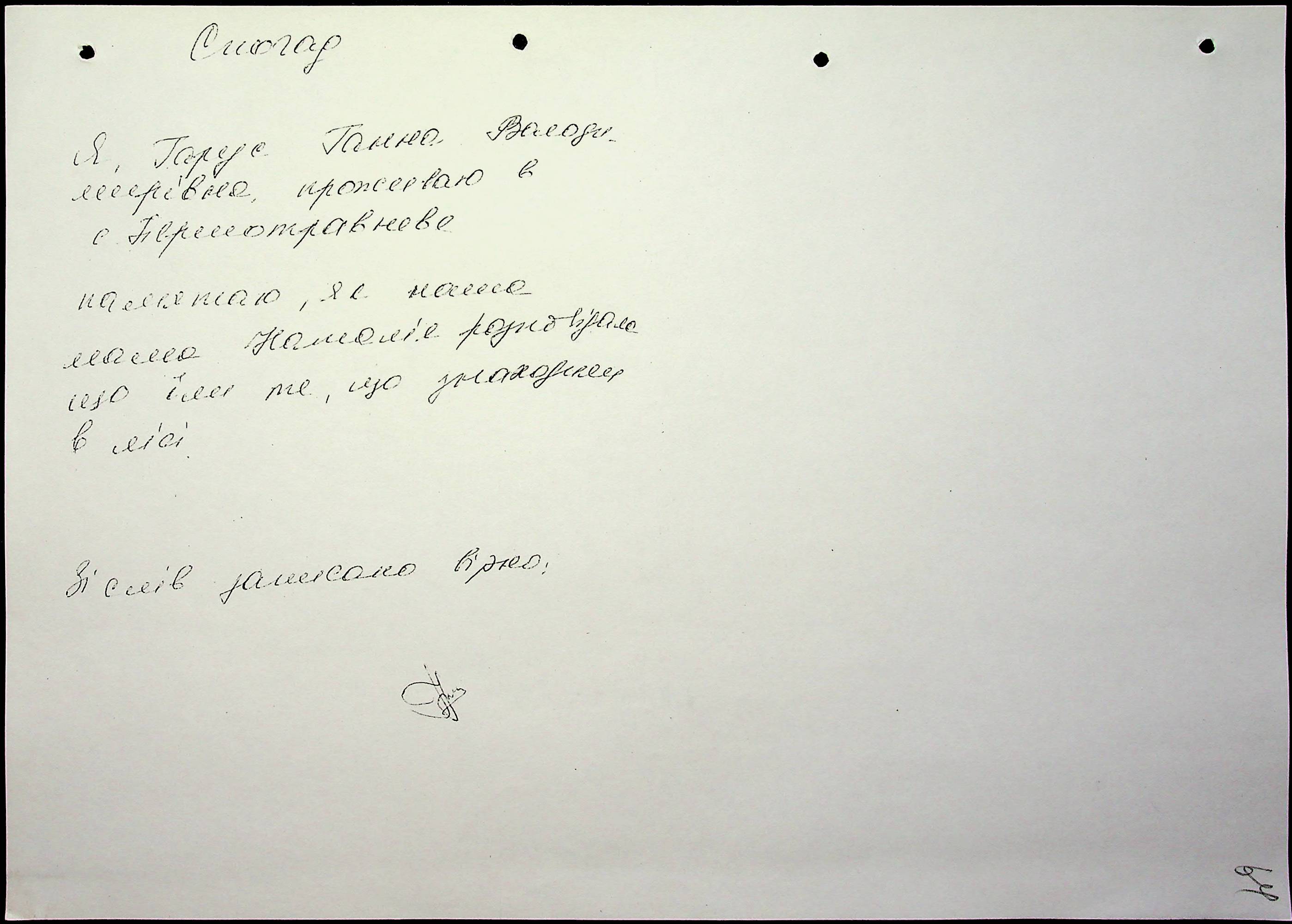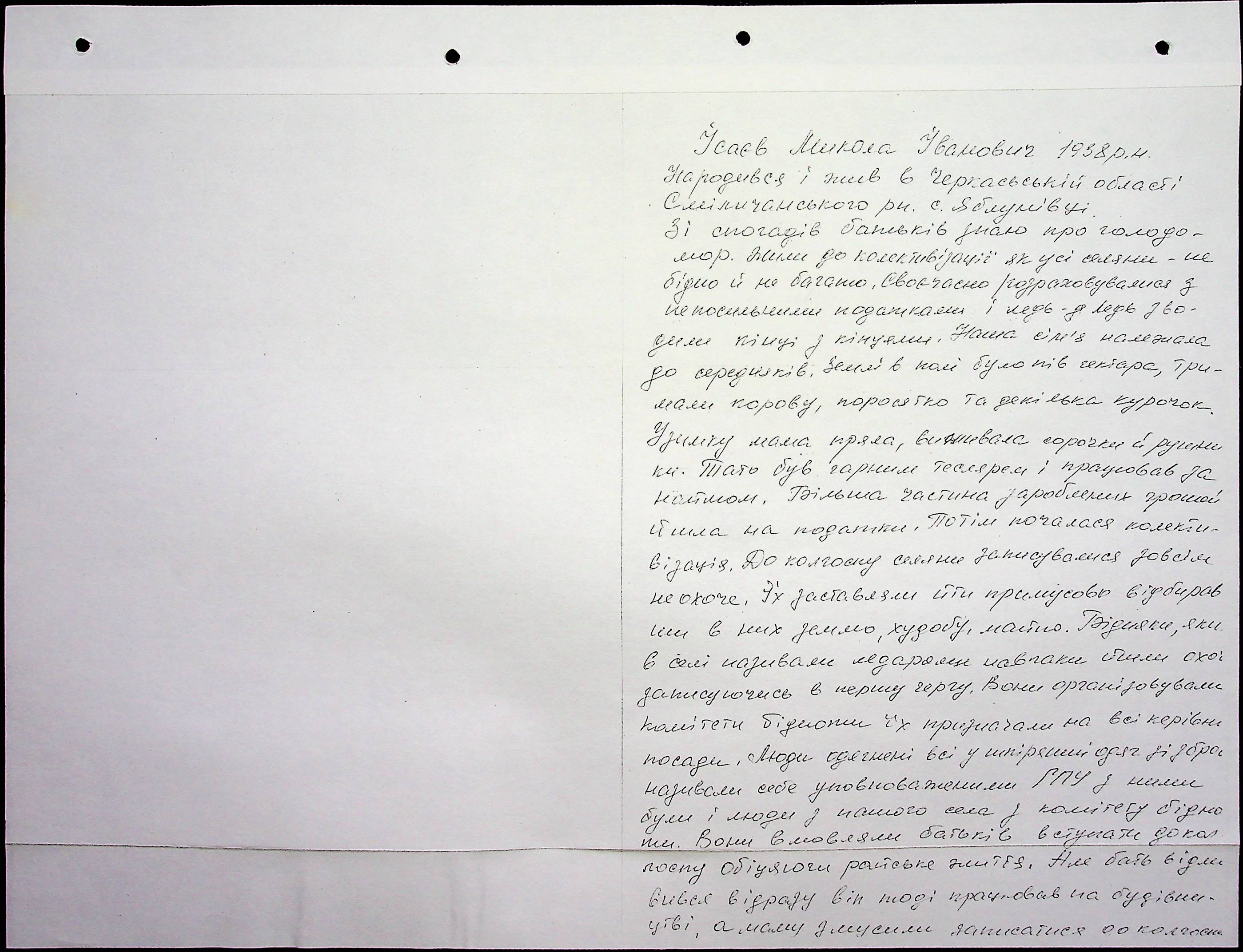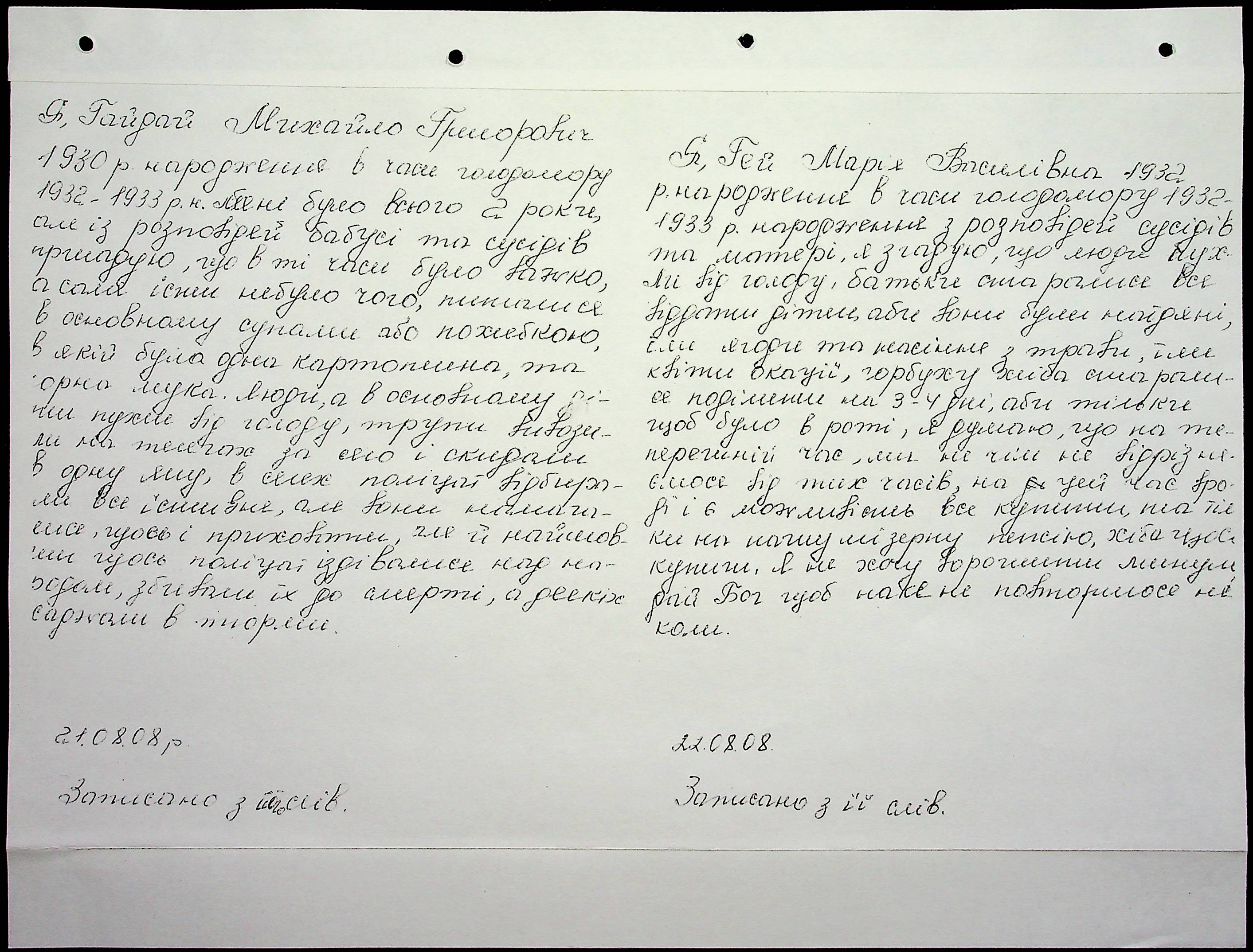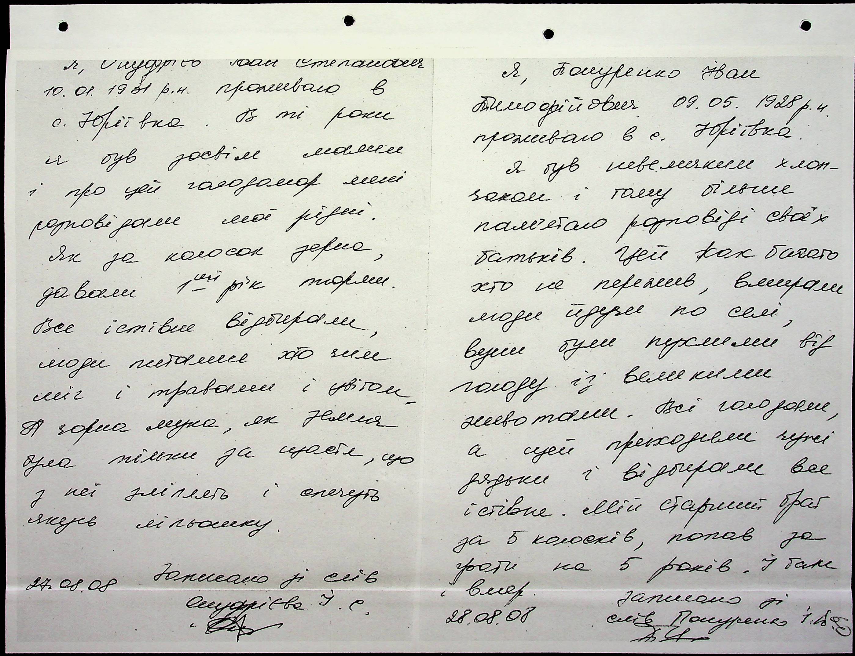 • • • • Справа № 65 “Свідчення очевидців Голодомору 1932-1933 років, які проживають у Снігурівському районі. Том 2”