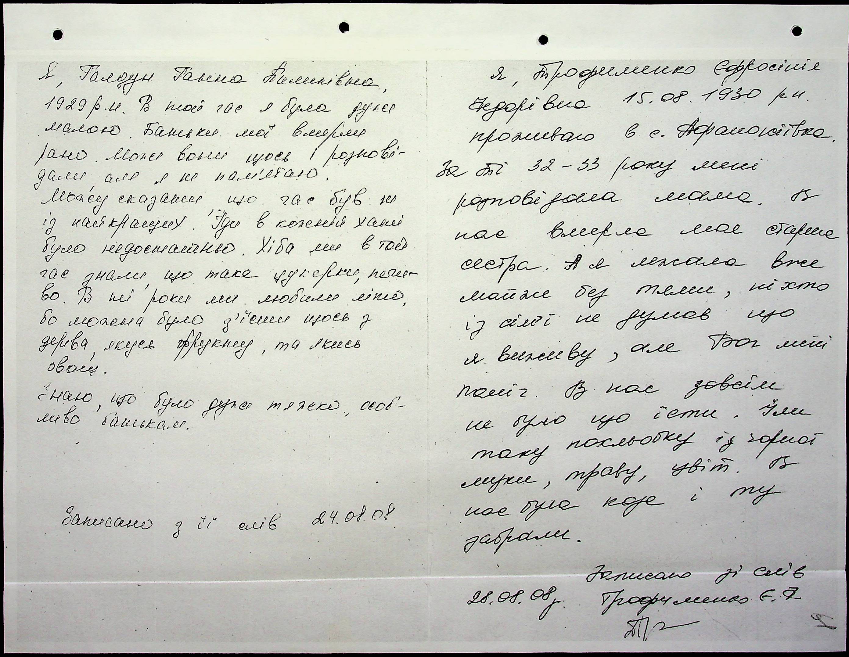 ◦ ◦ Фонд № 6146 “Колекція свідчень очевидців Голодомору 1932-1933 рр., нині проживаючих у Миколаївській області”