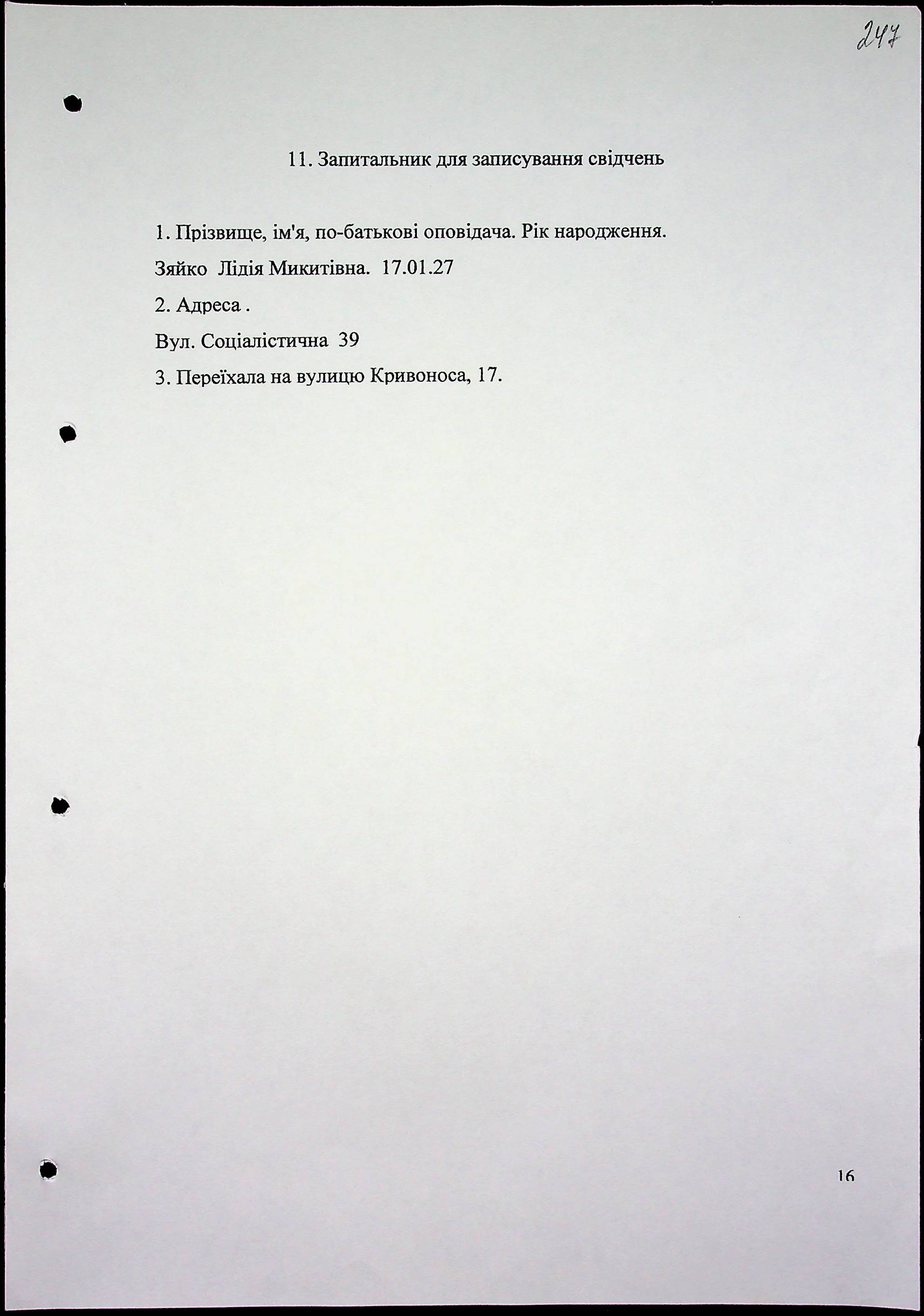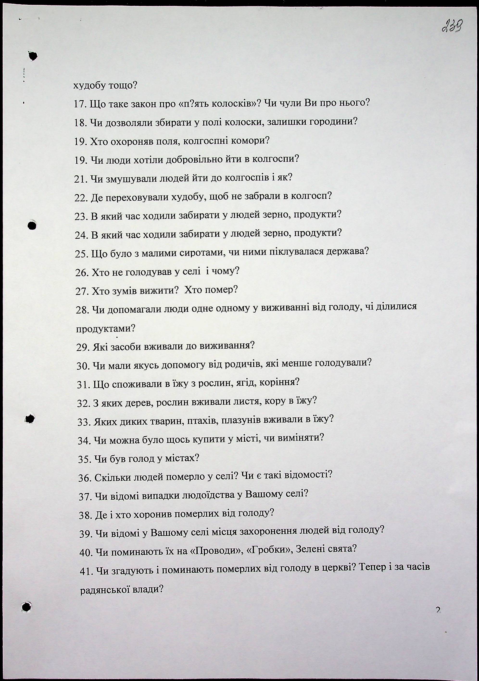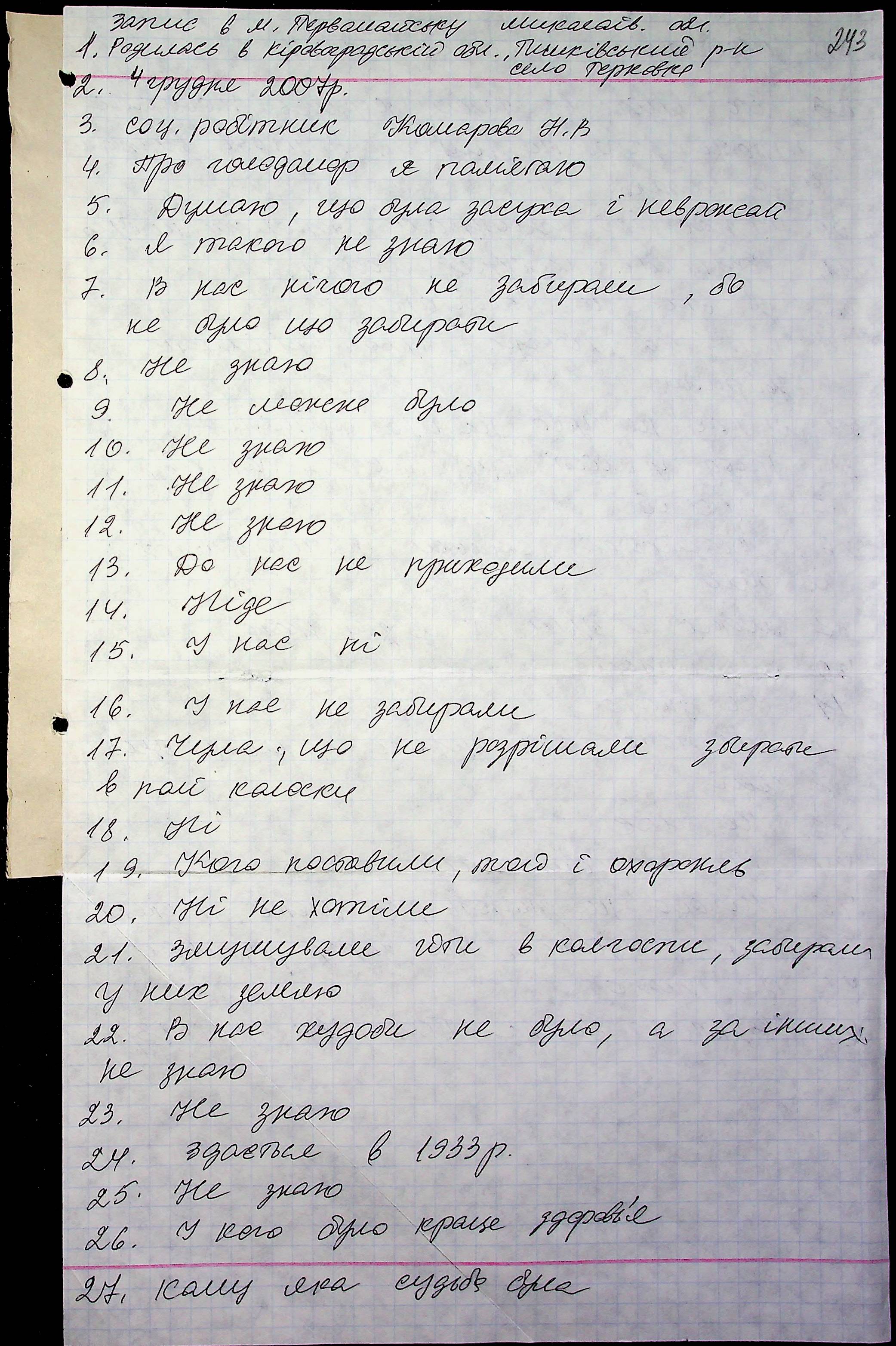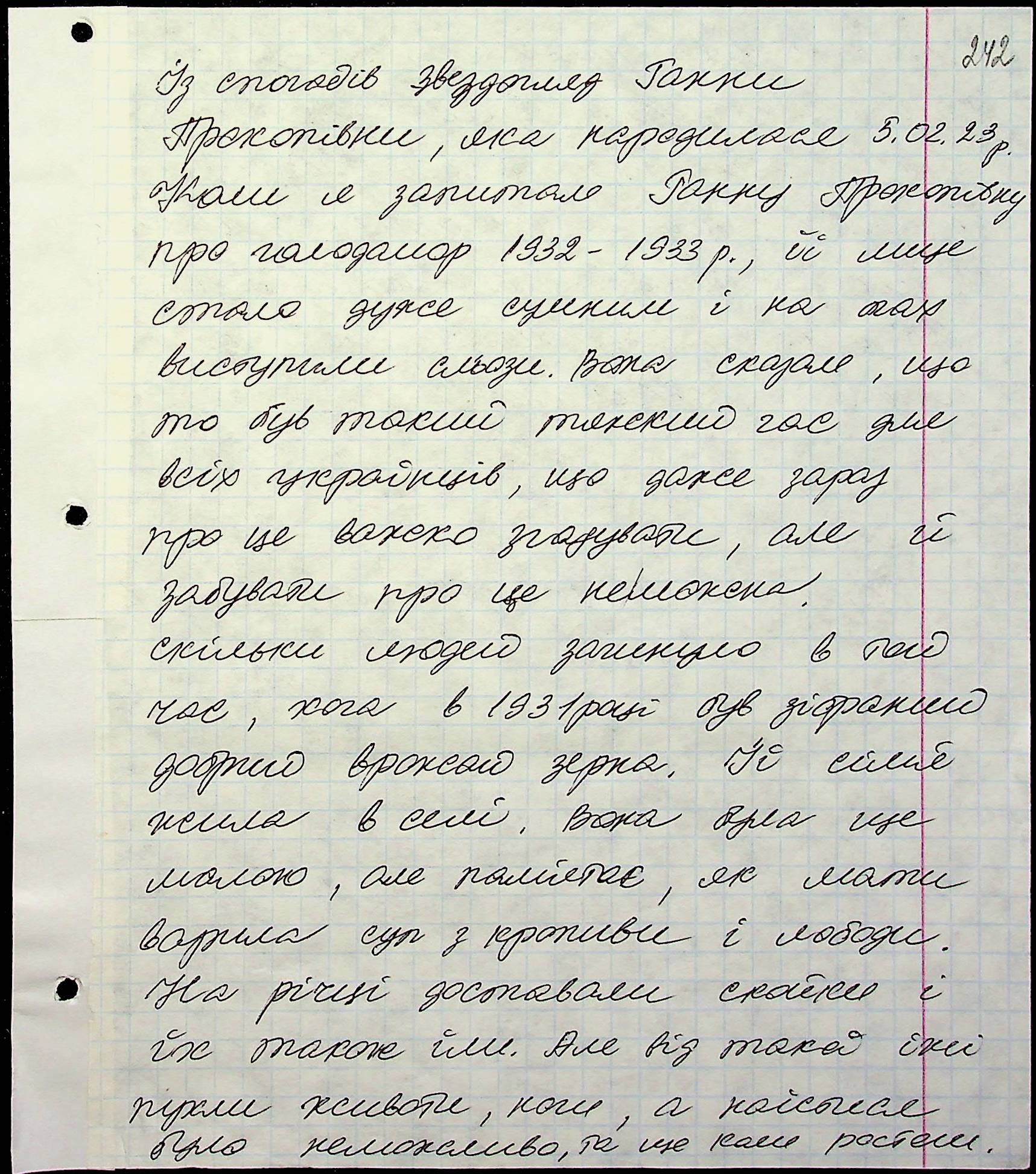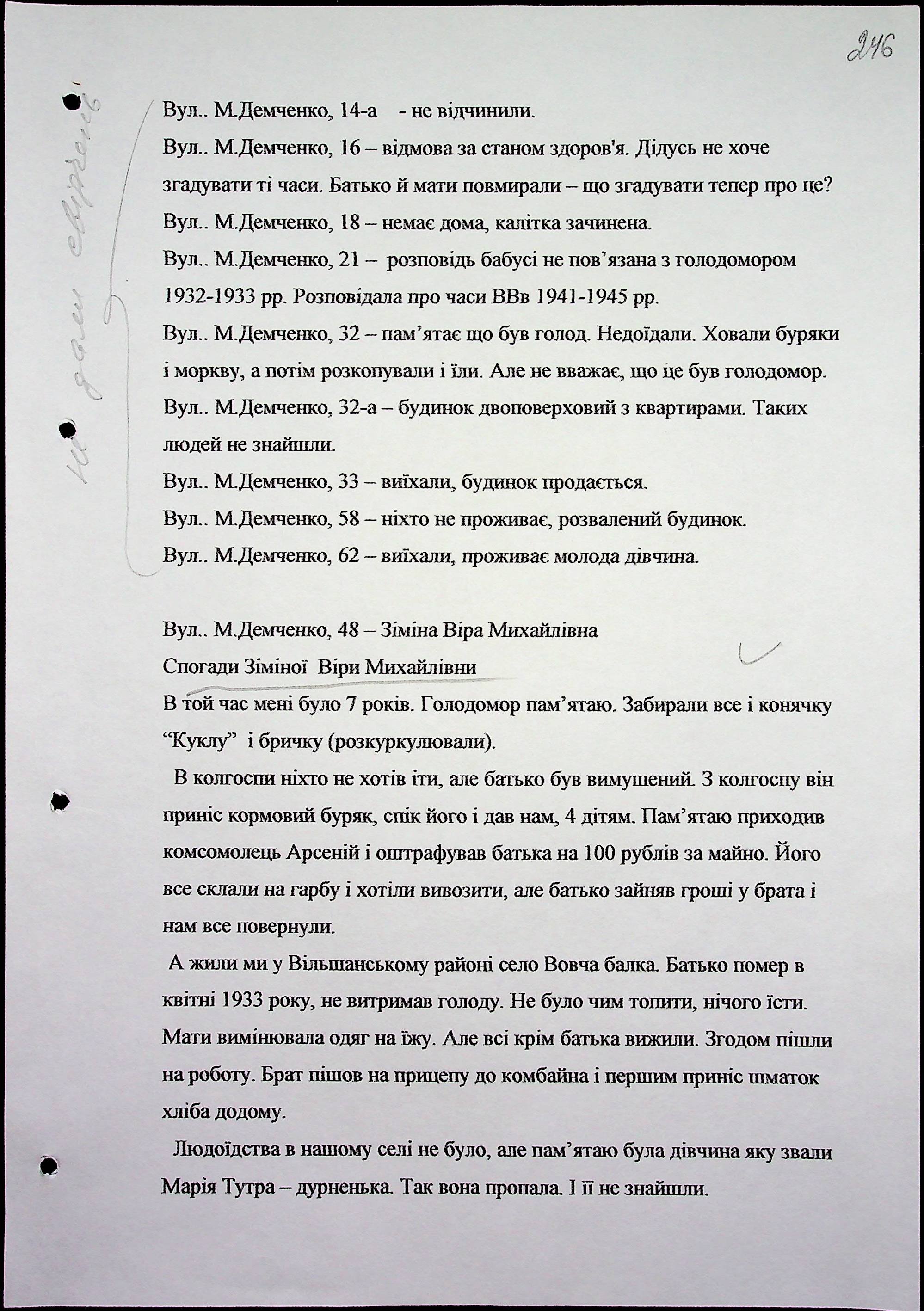 • • • • Справа № 71 “Свідчення очевидців Голодомору 1932-1933 років, які проживають у місті Первомайську, з прізвищами на літери Г–З”