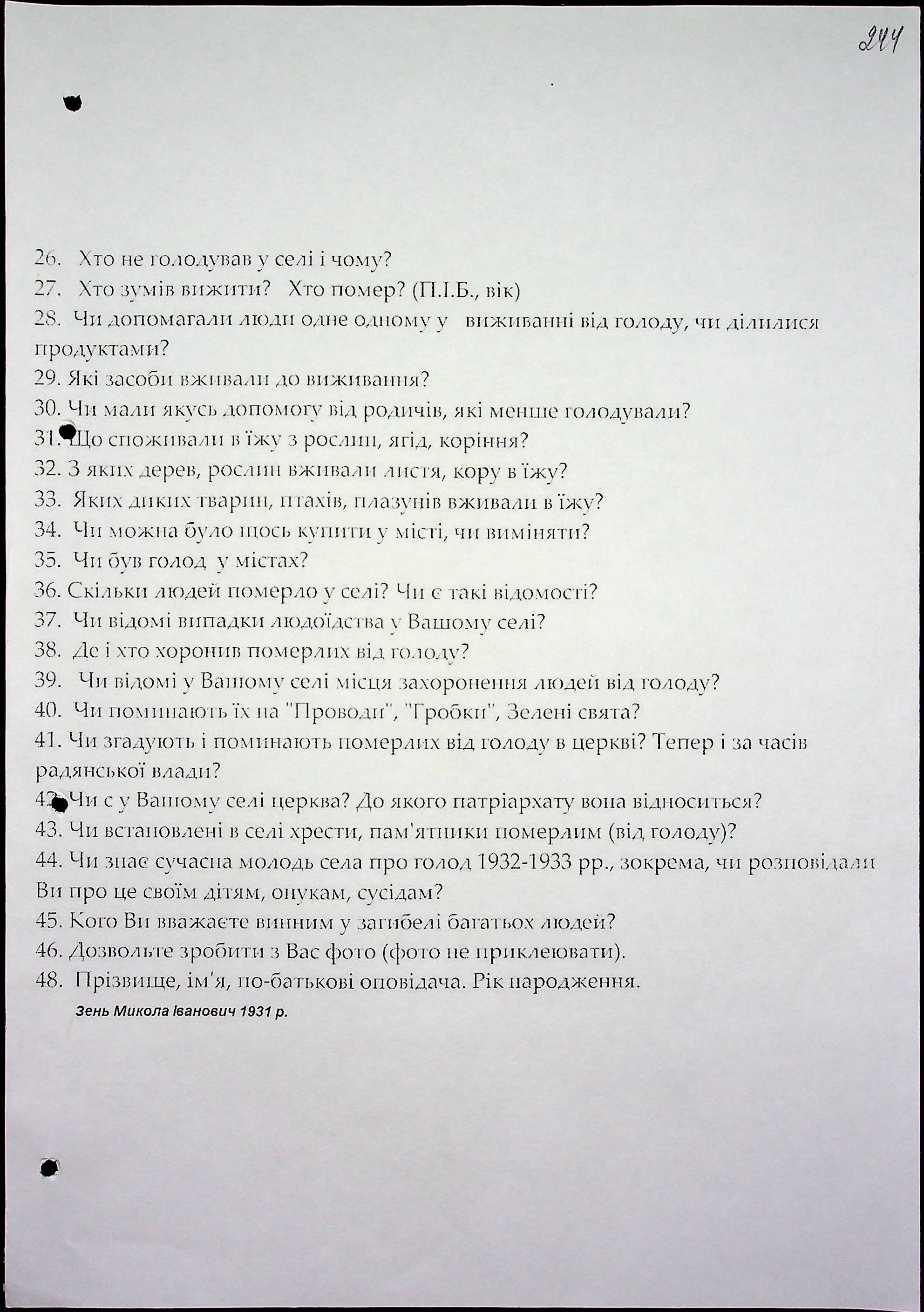 ◦ ◦ Фонд № 6146 “Колекція свідчень очевидців Голодомору 1932-1933 рр., нині проживаючих у Миколаївській області”