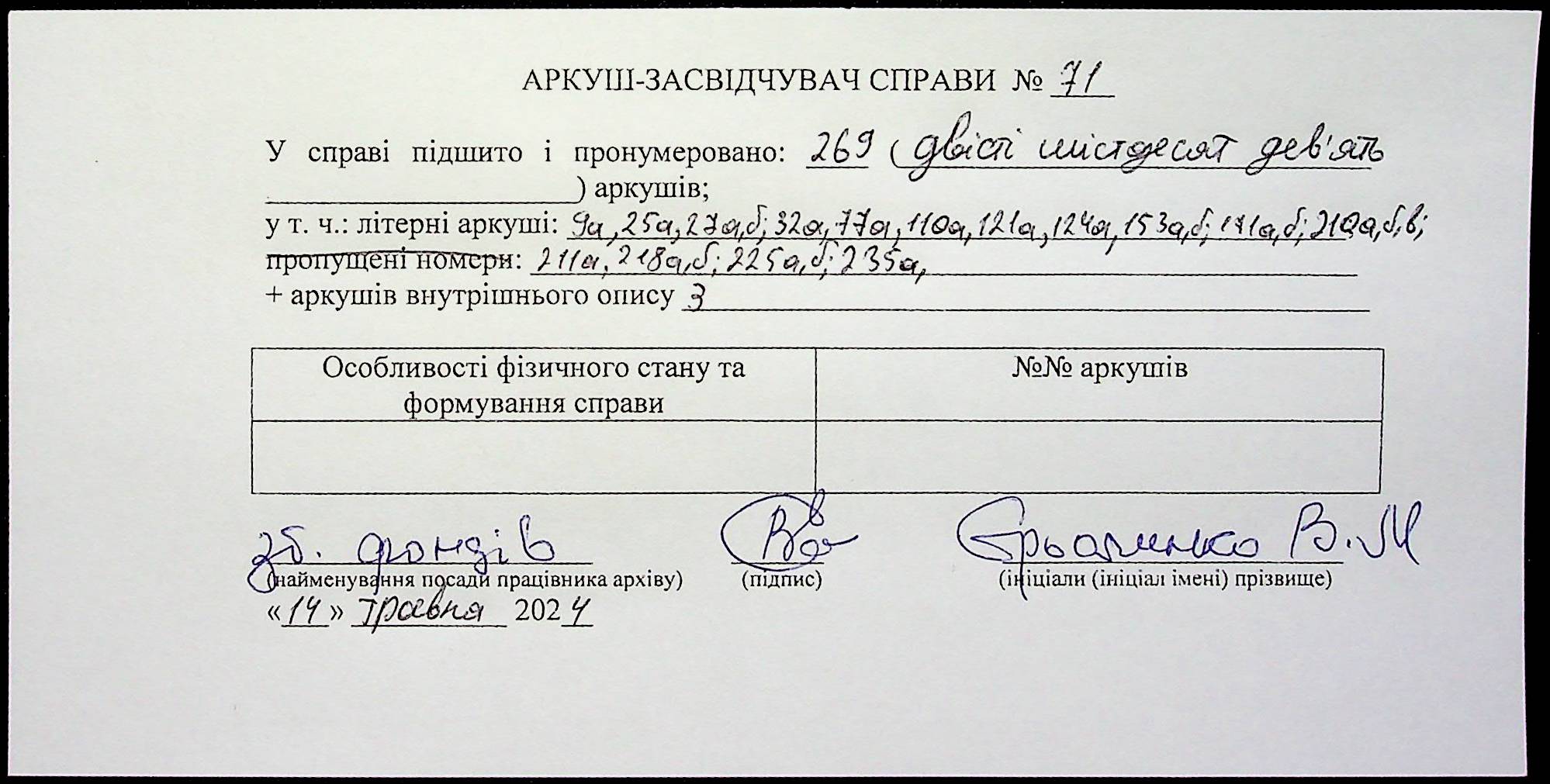 Фонд 6146 / Опис 1 / Справа 071