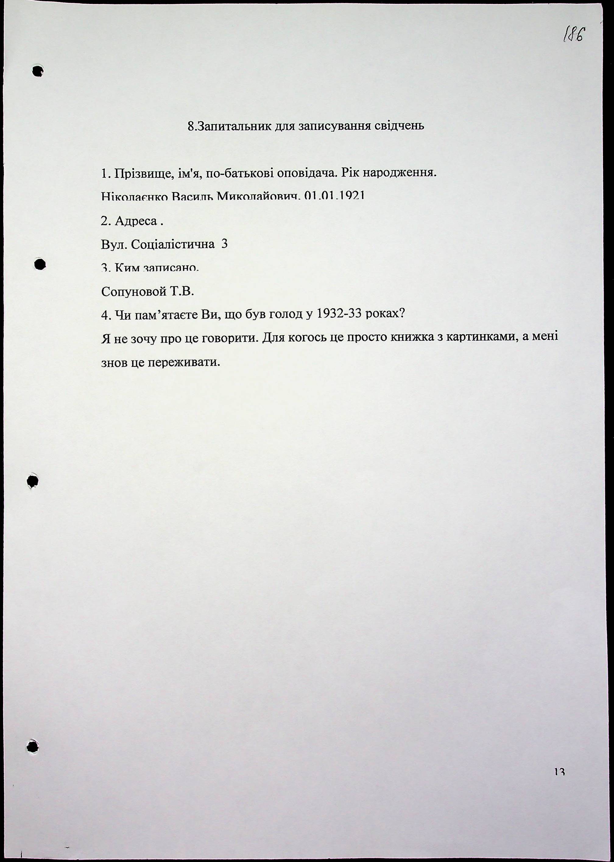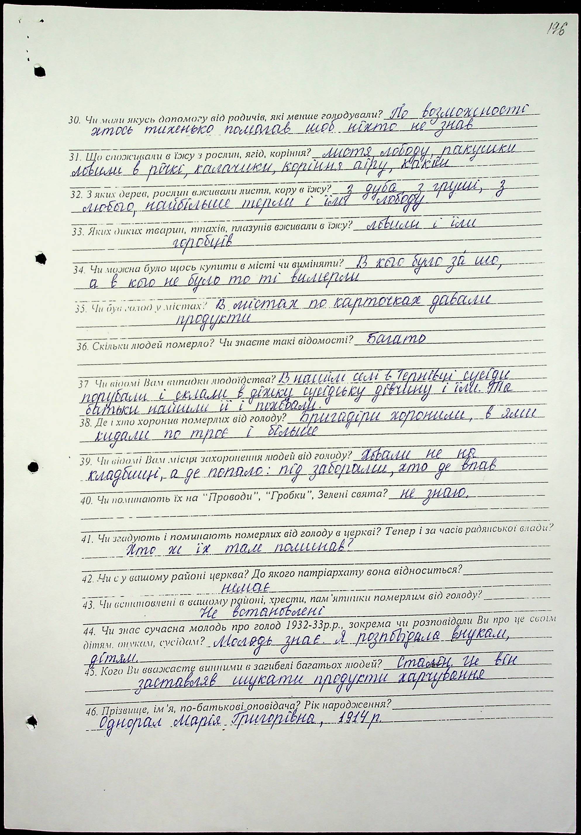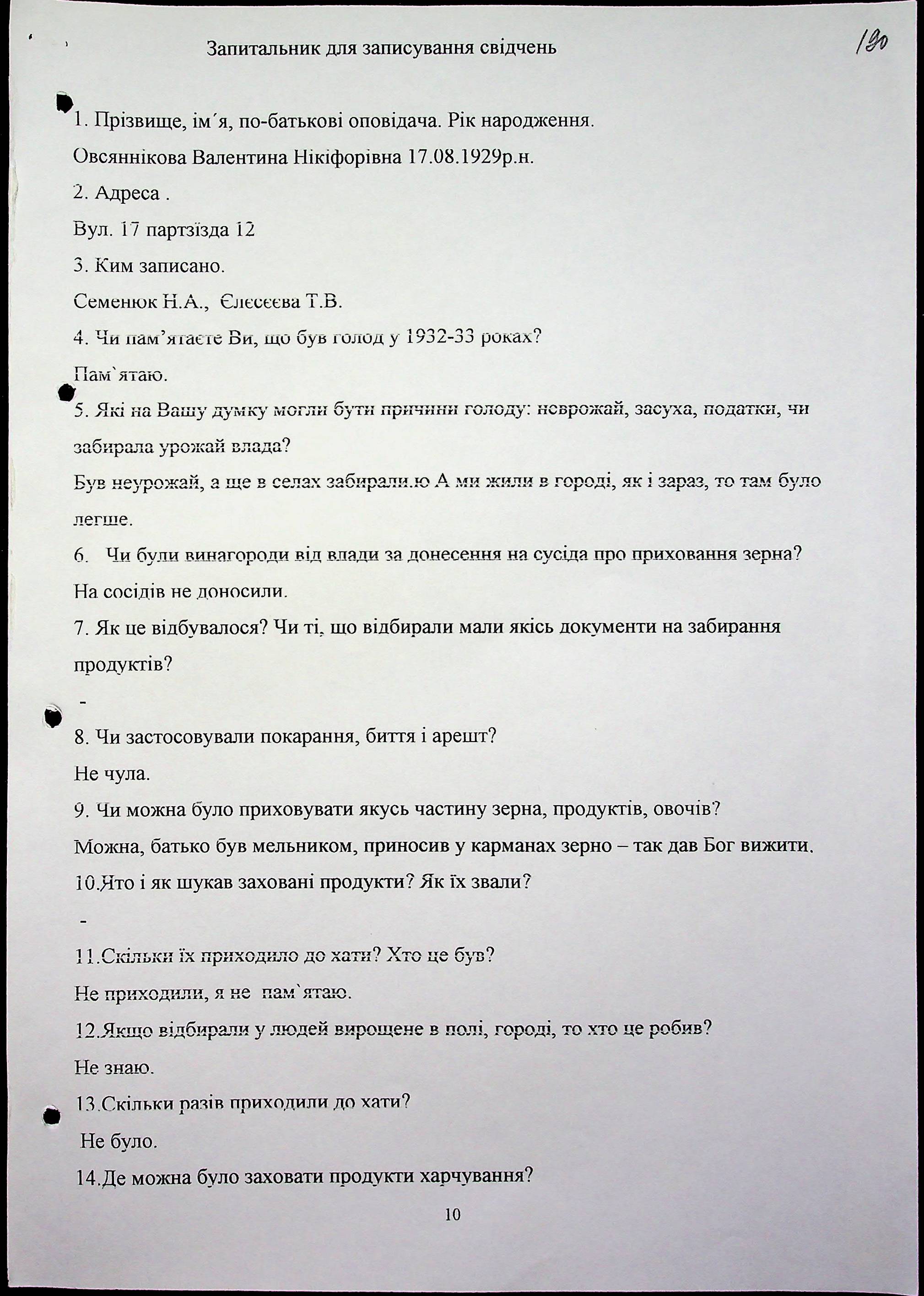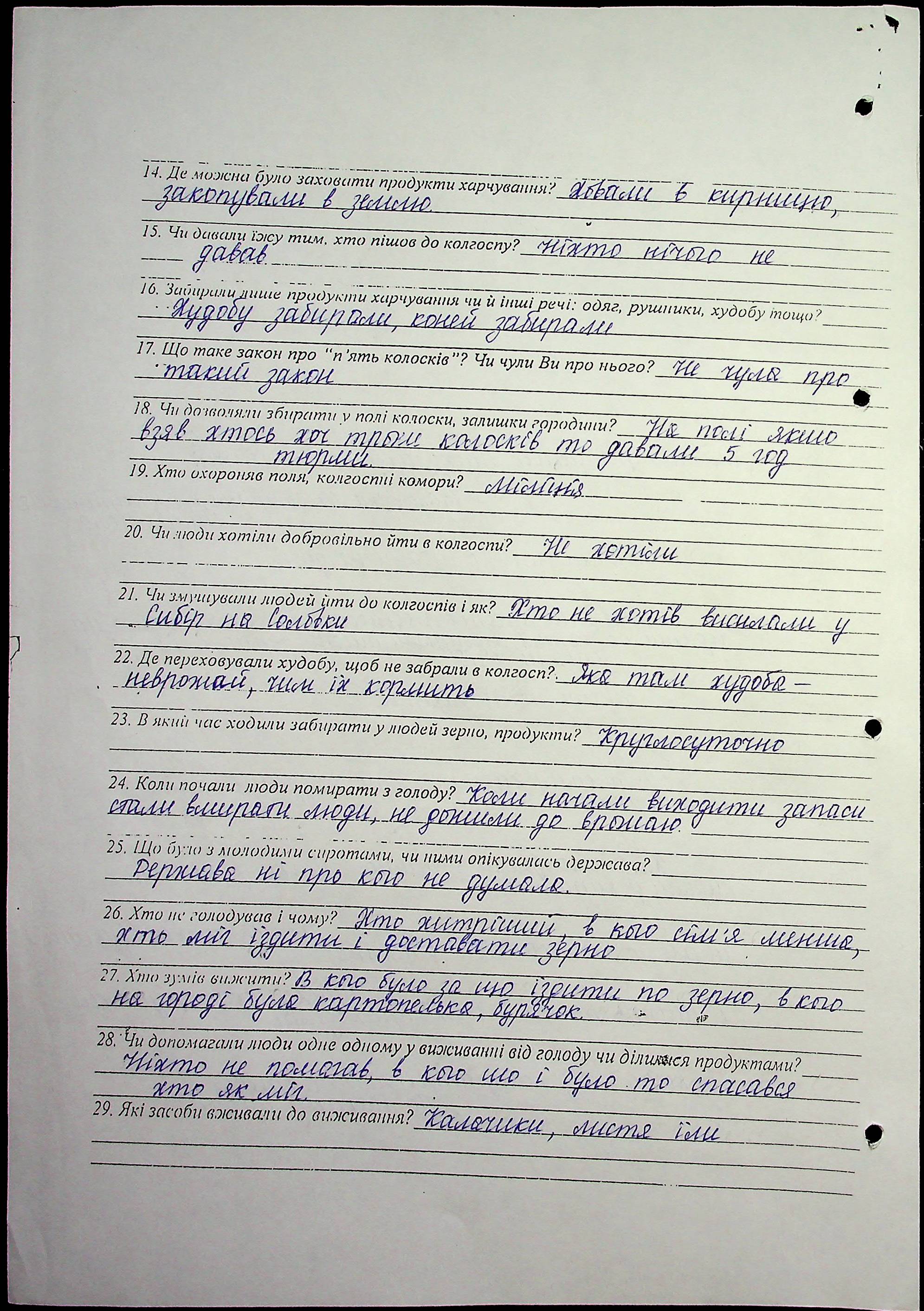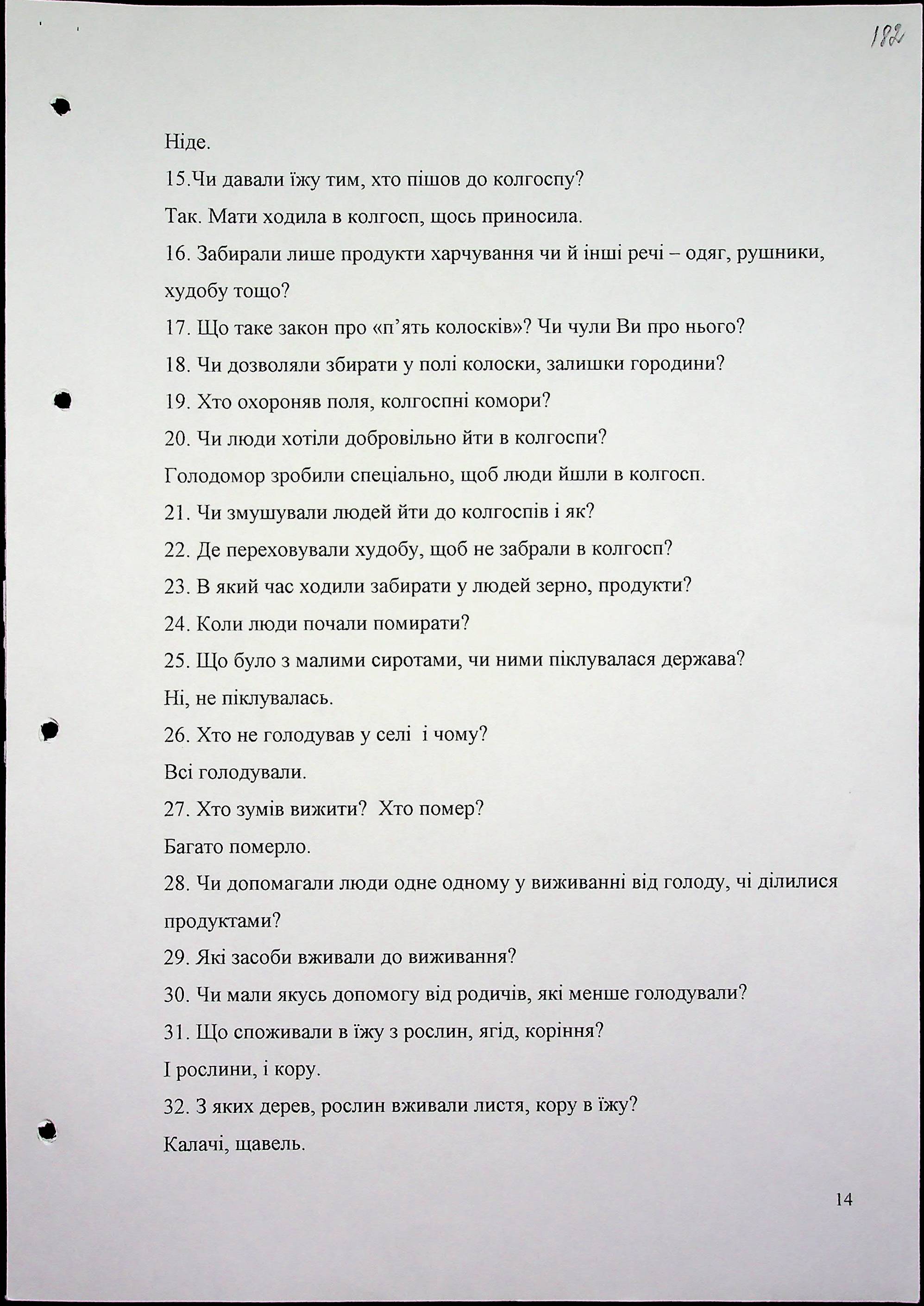 ◦ ◦ Фонд № 6146 “Колекція свідчень очевидців Голодомору 1932-1933 рр., нині проживаючих у Миколаївській області”