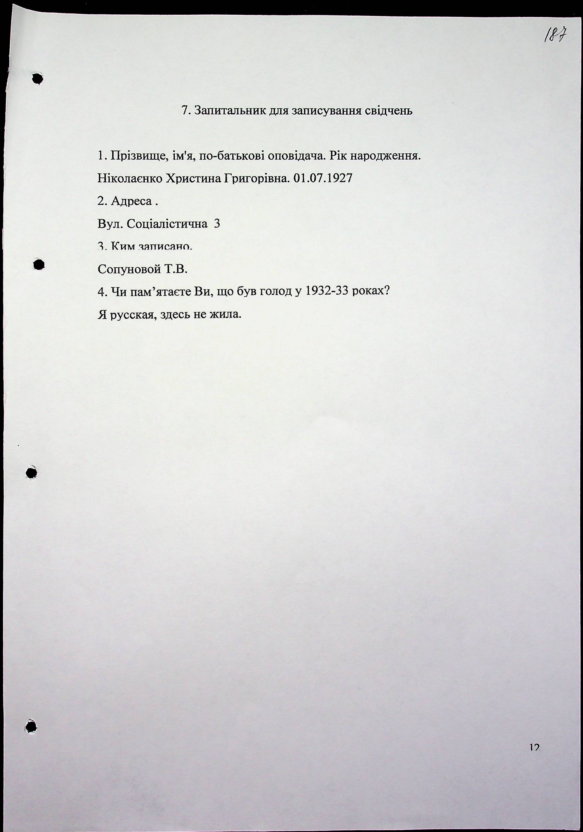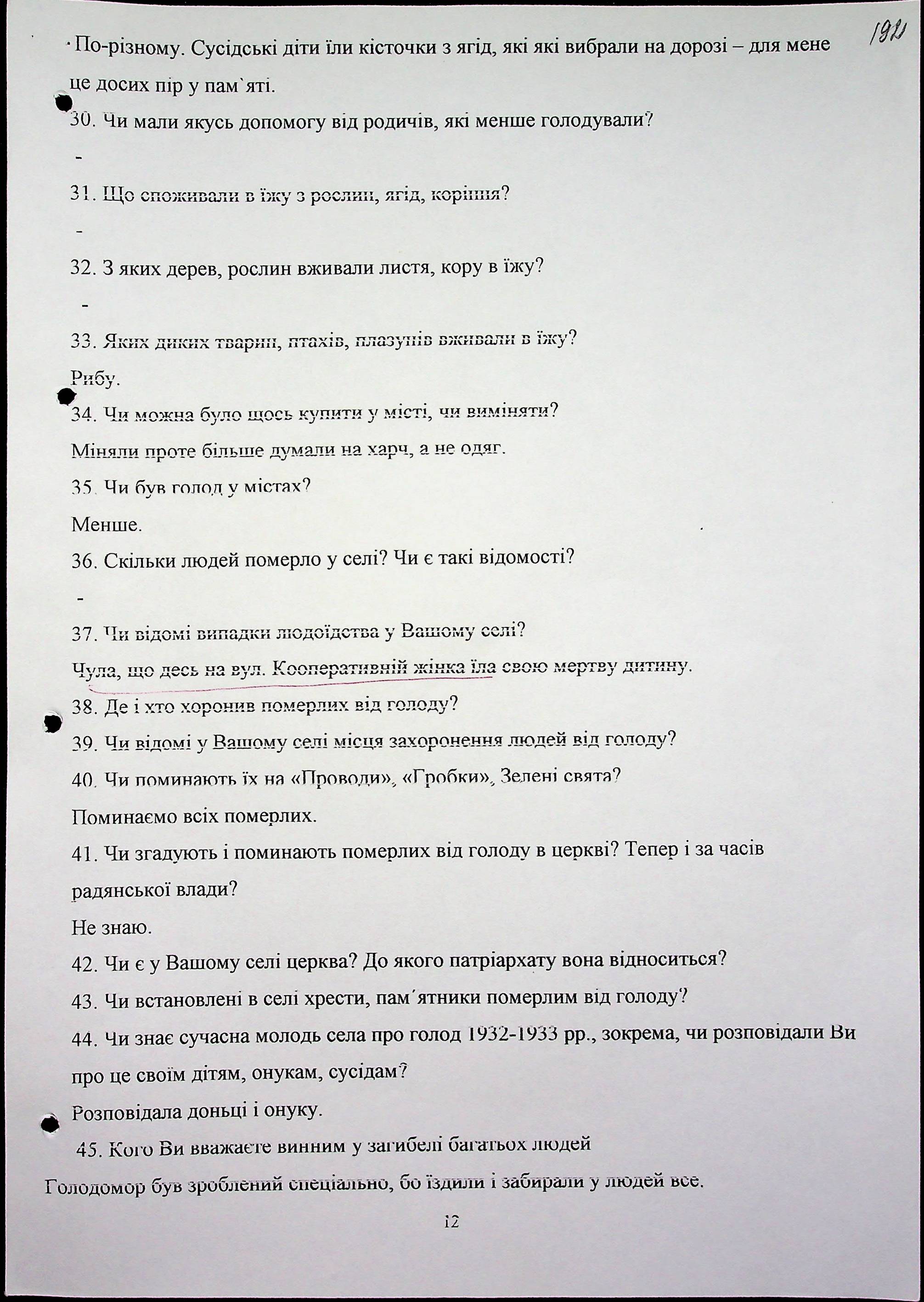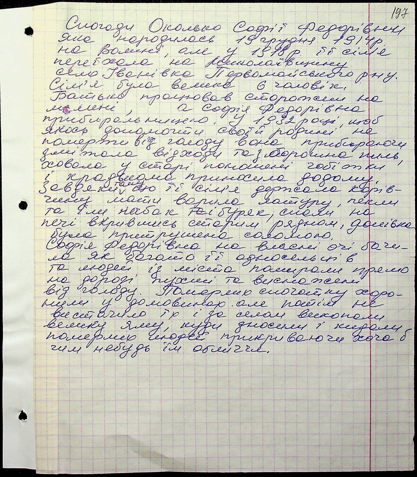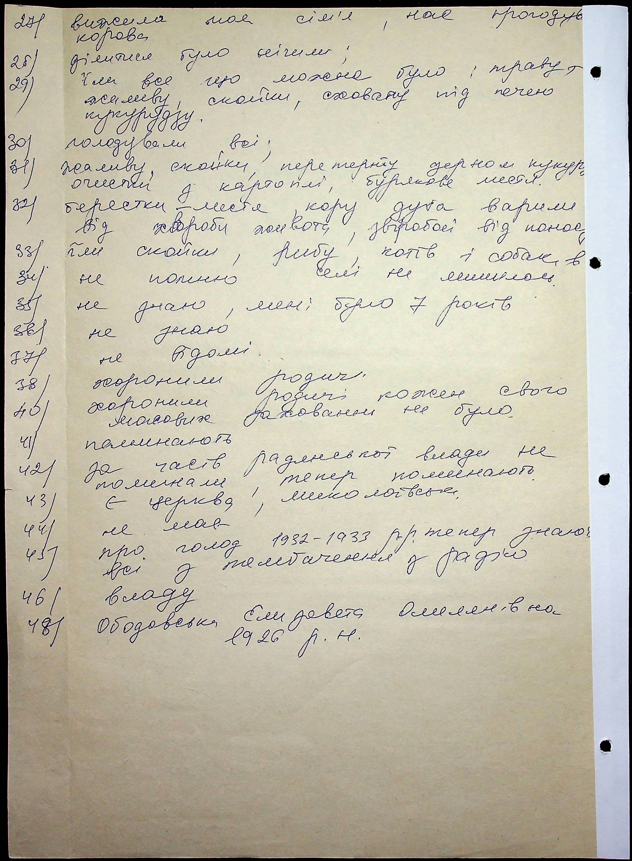• • • • Справа № 73 “Свідчення очевидців Голодомору 1932-1933 років, які проживають у місті Первомайську, з прізвищами на літери Л–О”