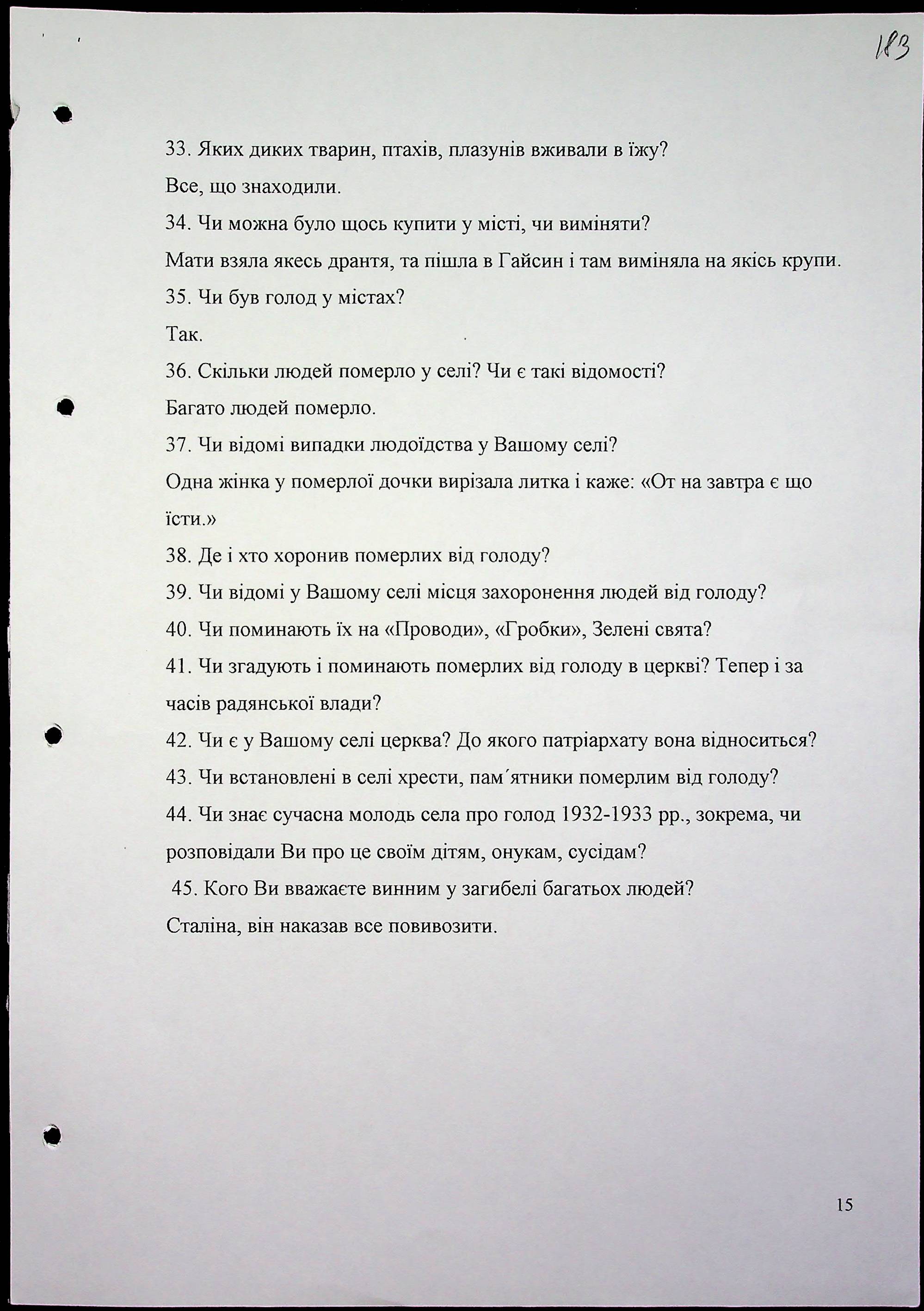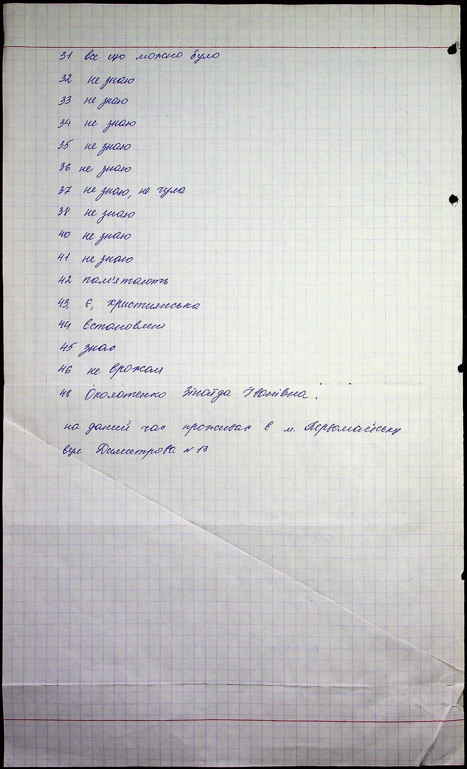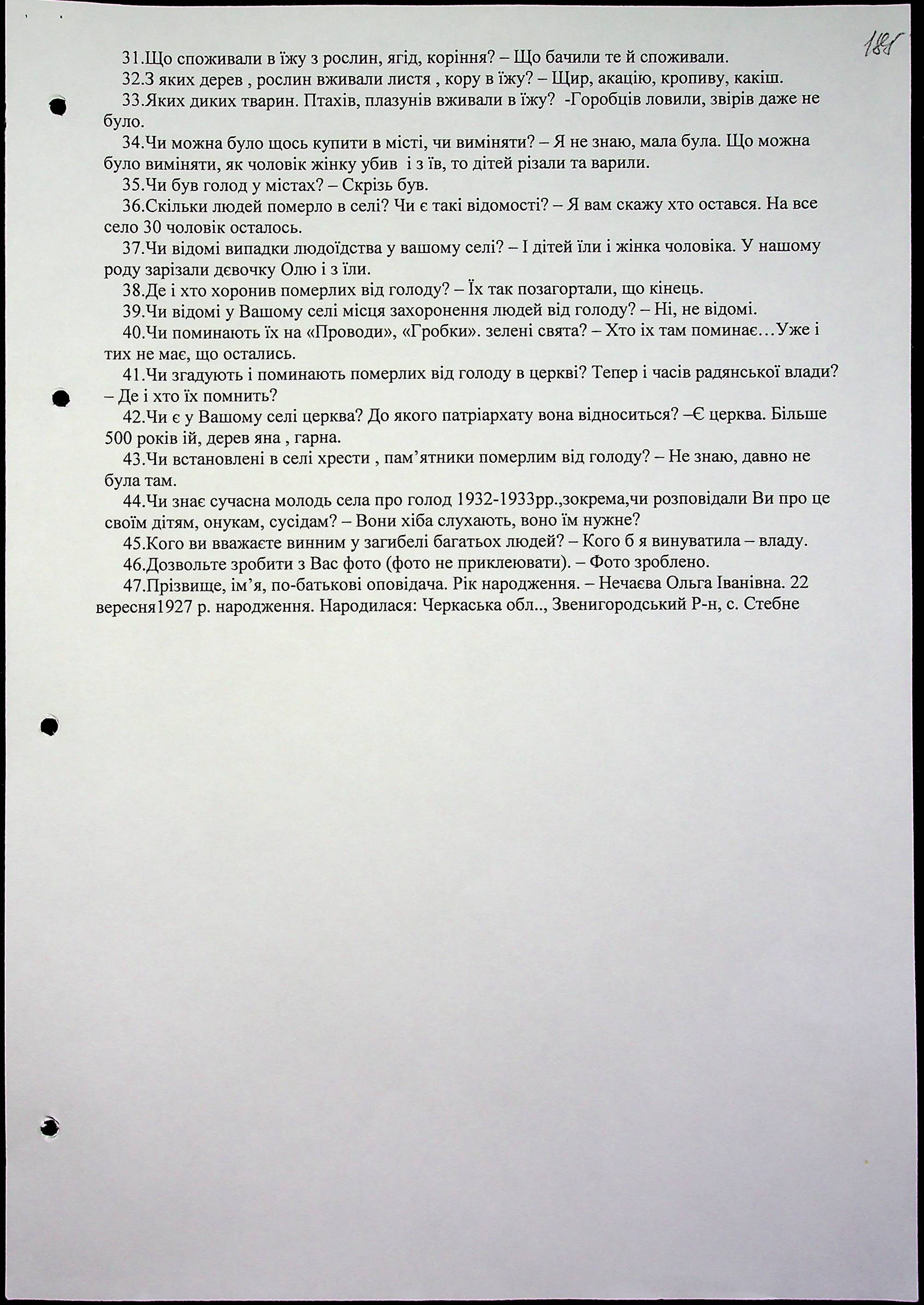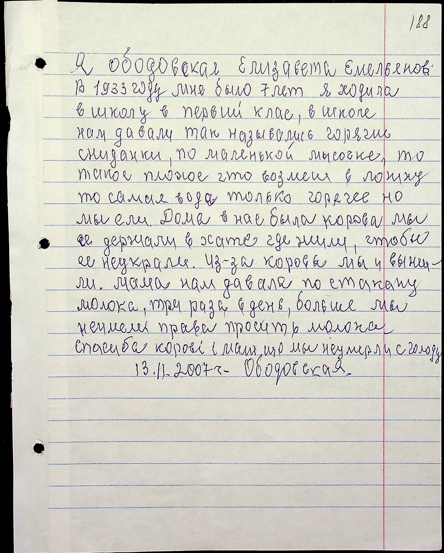 • • • • Справа № 73 “Свідчення очевидців Голодомору 1932-1933 років, які проживають у місті Первомайську, з прізвищами на літери Л–О”