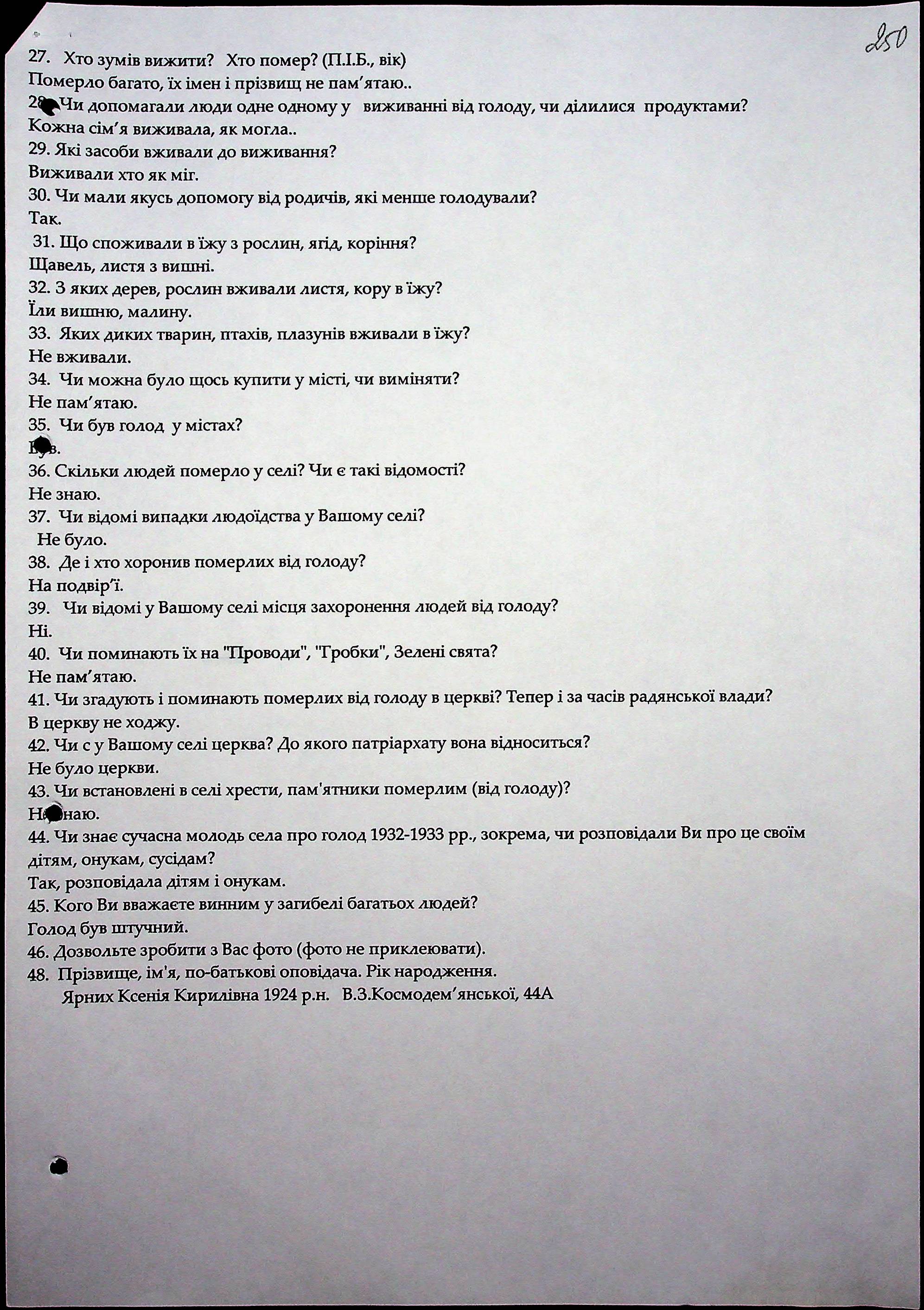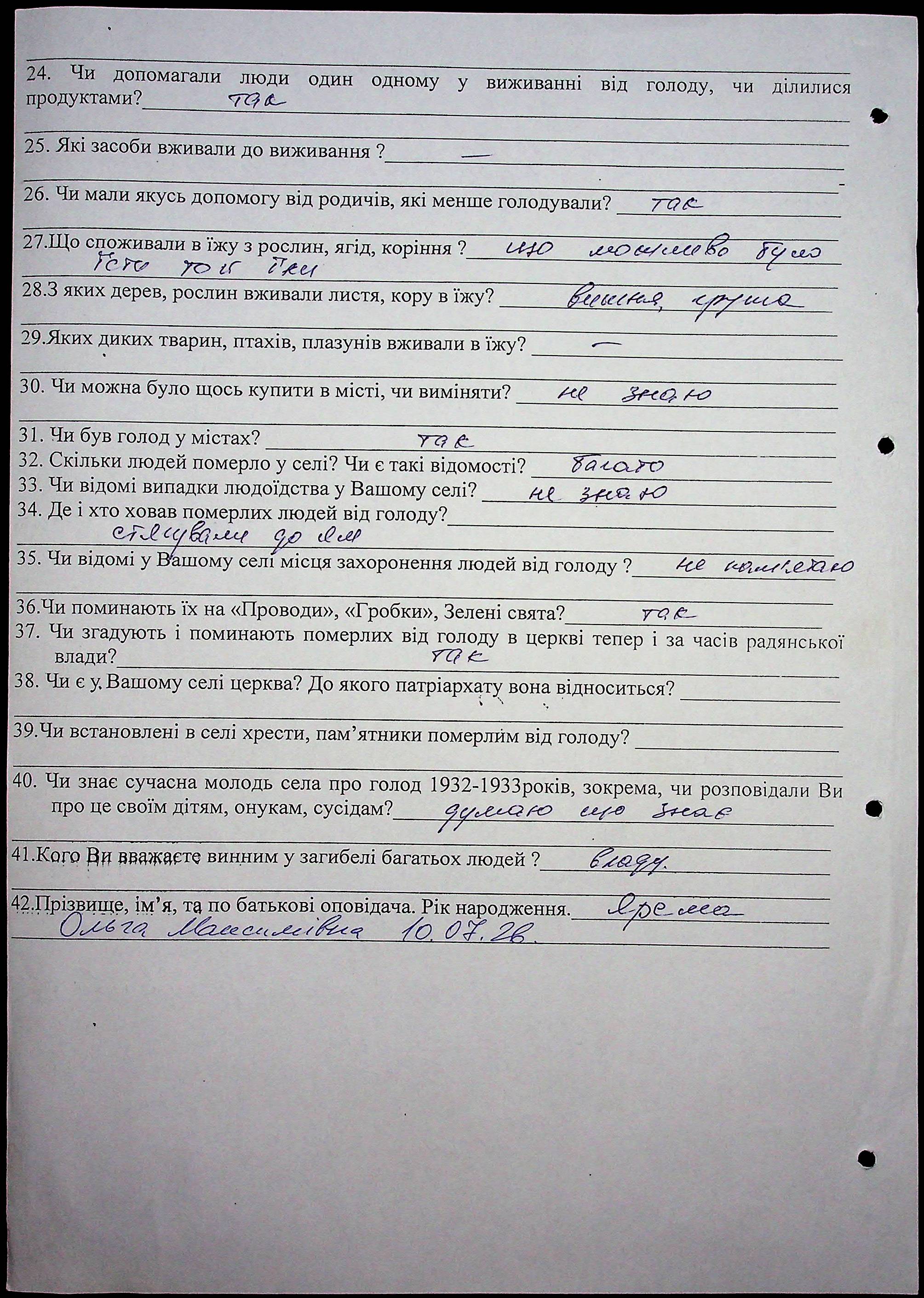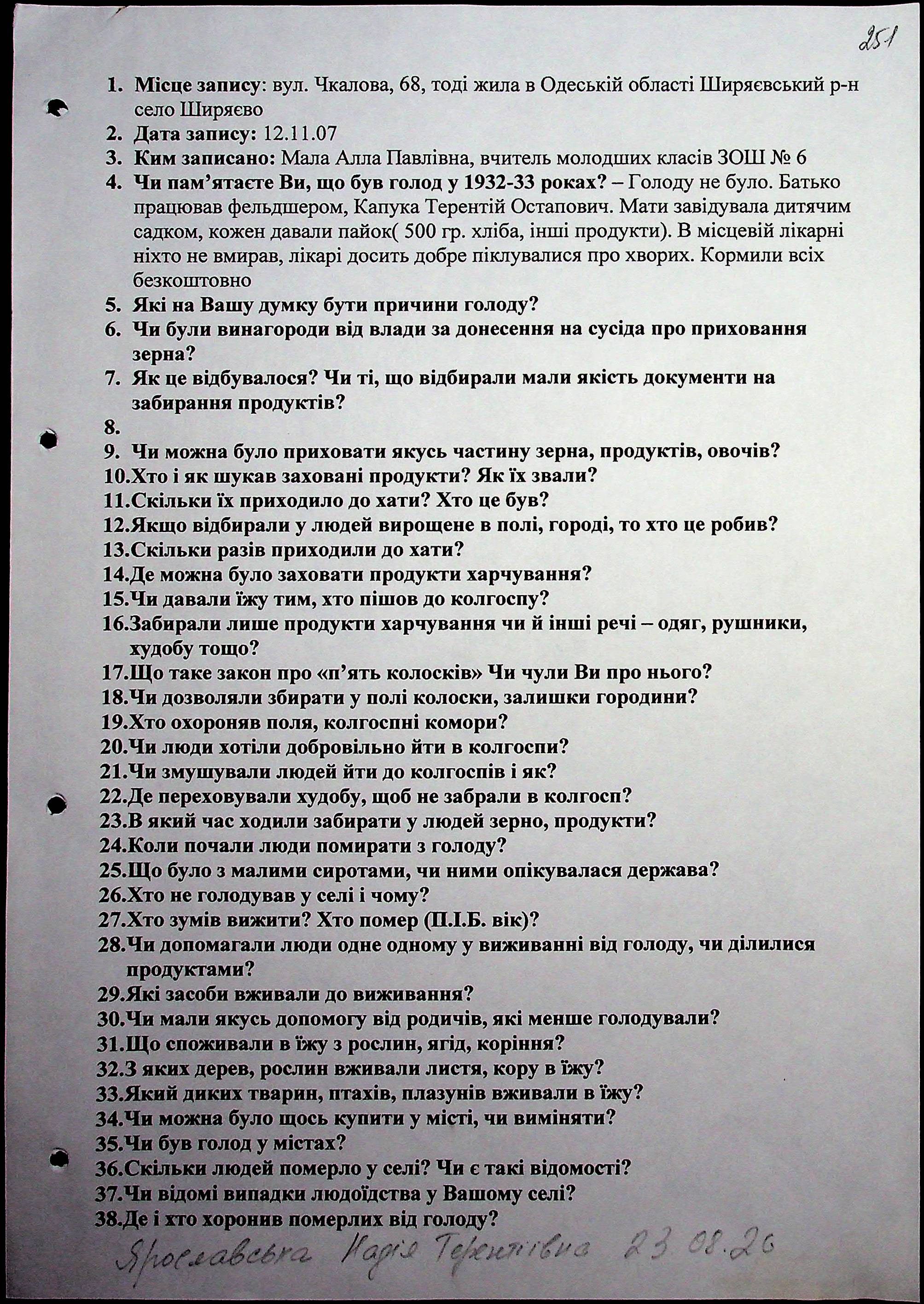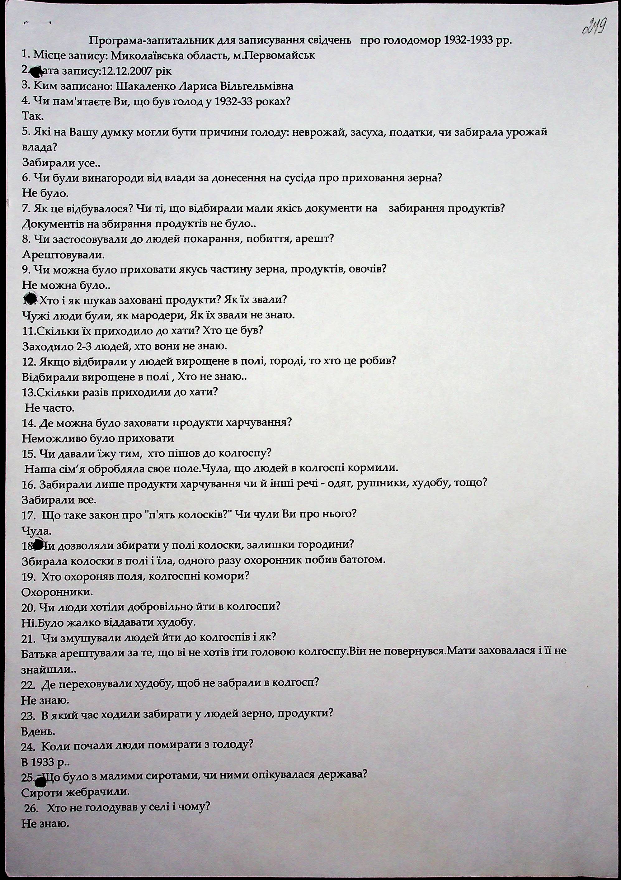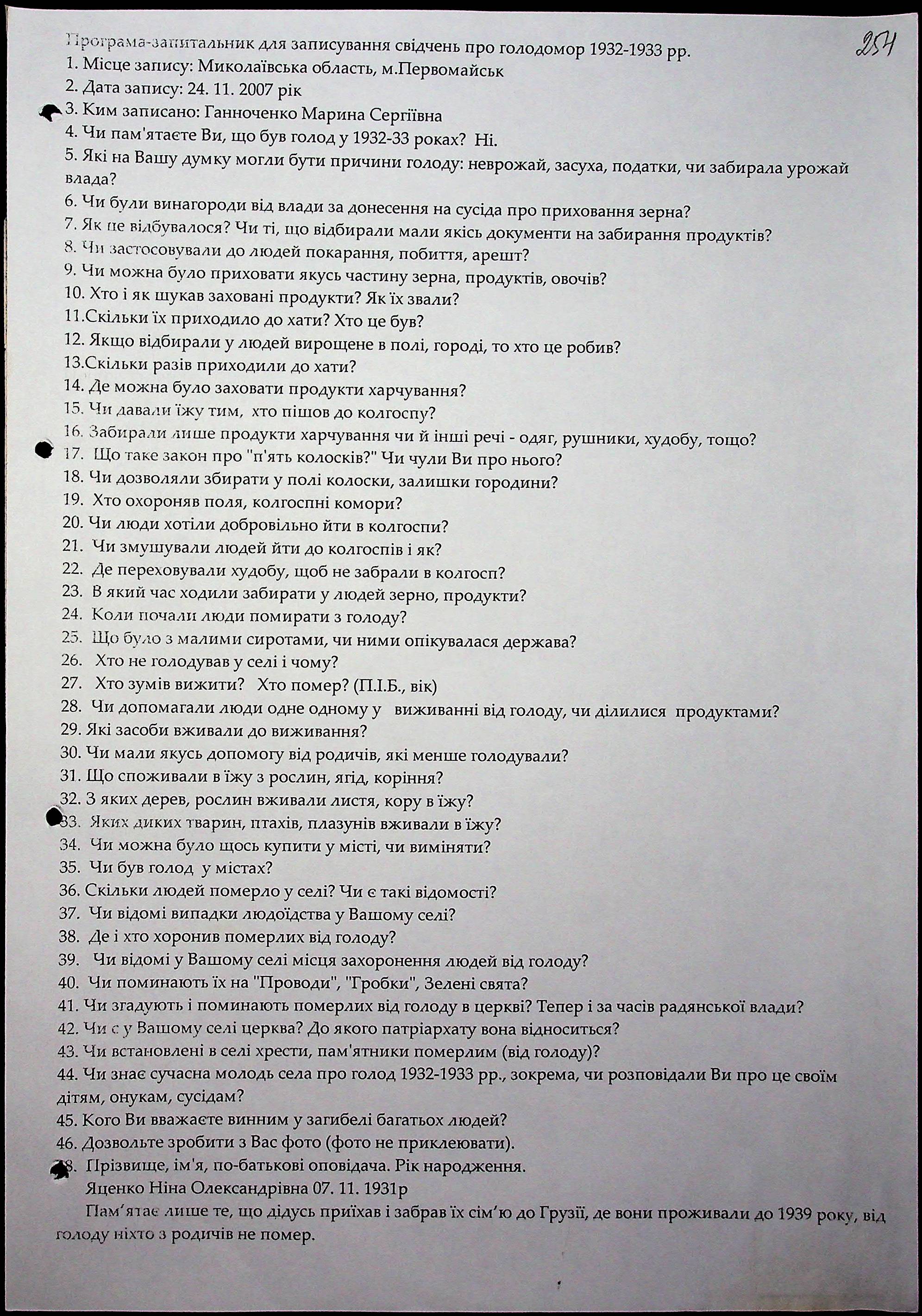 ◦ ◦ Фонд № 6146 “Колекція свідчень очевидців Голодомору 1932-1933 рр., нині проживаючих у Миколаївській області”