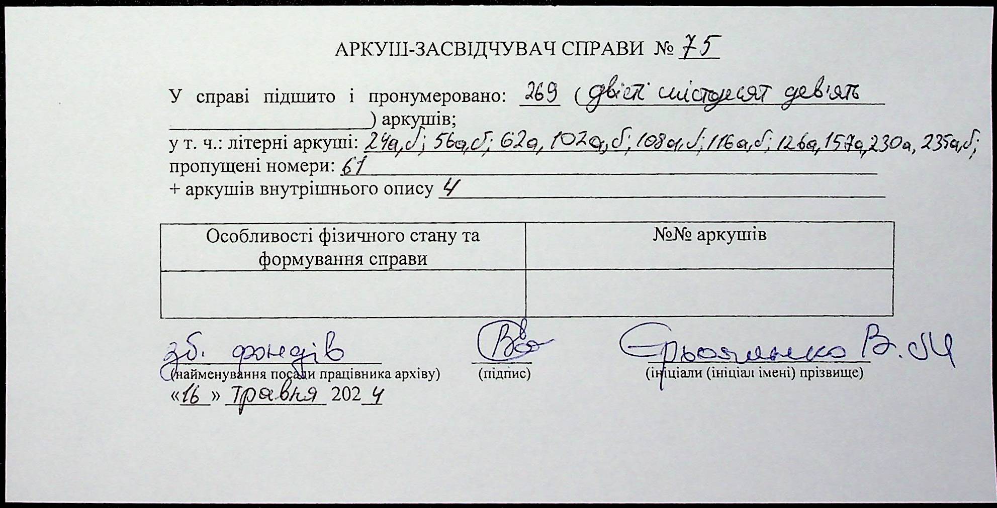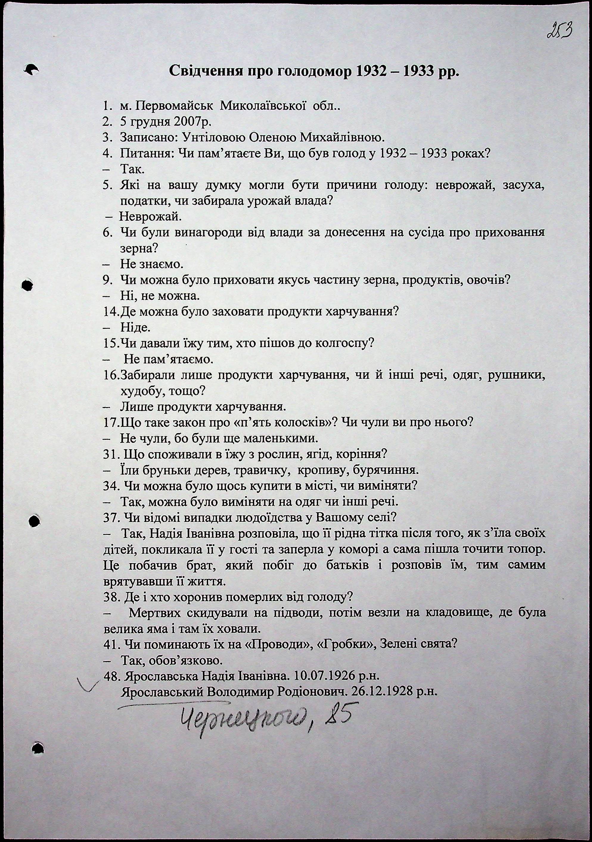 • • • • Справа № 75 “Свідчення очевидців Голодомору 1932-1933 років, які проживають у місті Первомайську, з прізвищами на літери Т–Я”