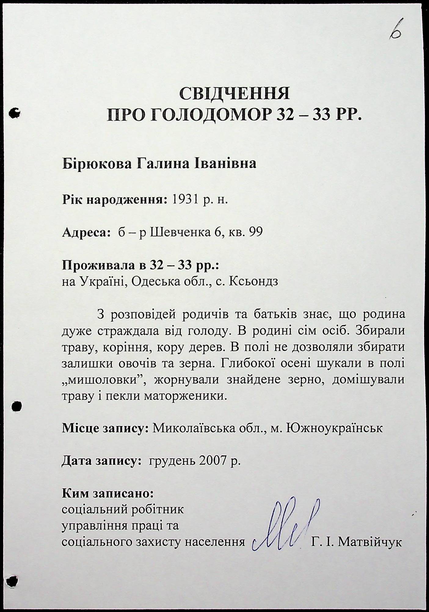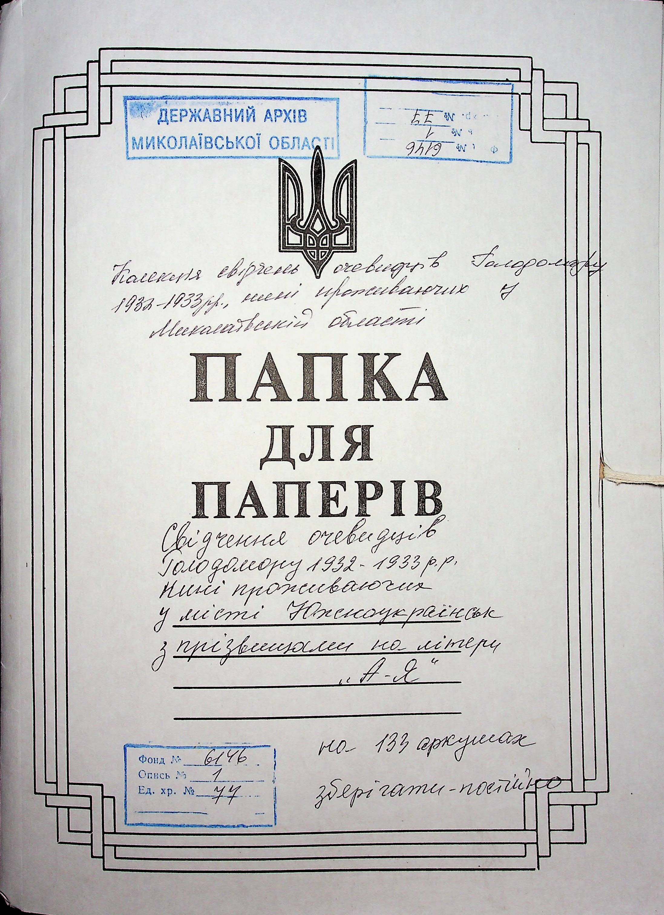 ◦ ◦ Фонд № 6146 “Колекція свідчень очевидців Голодомору 1932-1933 рр., нині проживаючих у Миколаївській області”