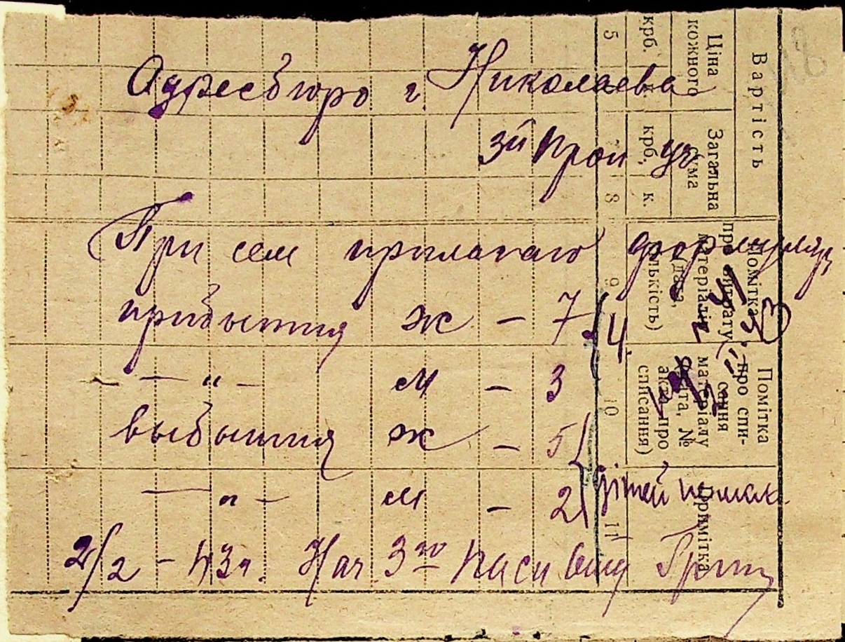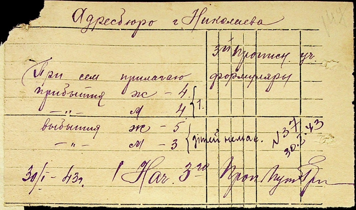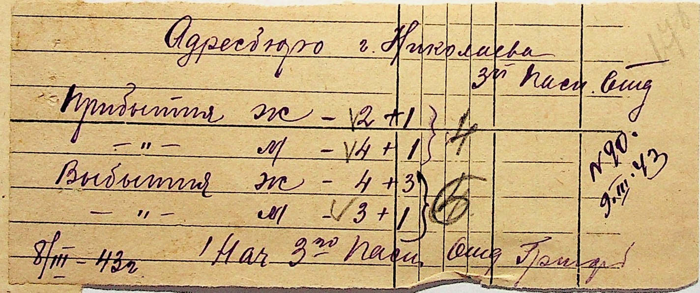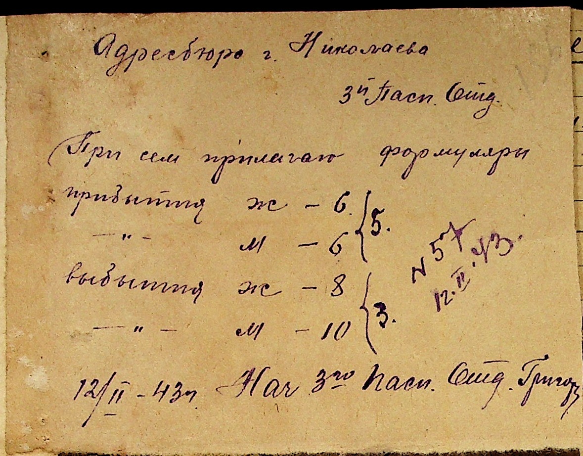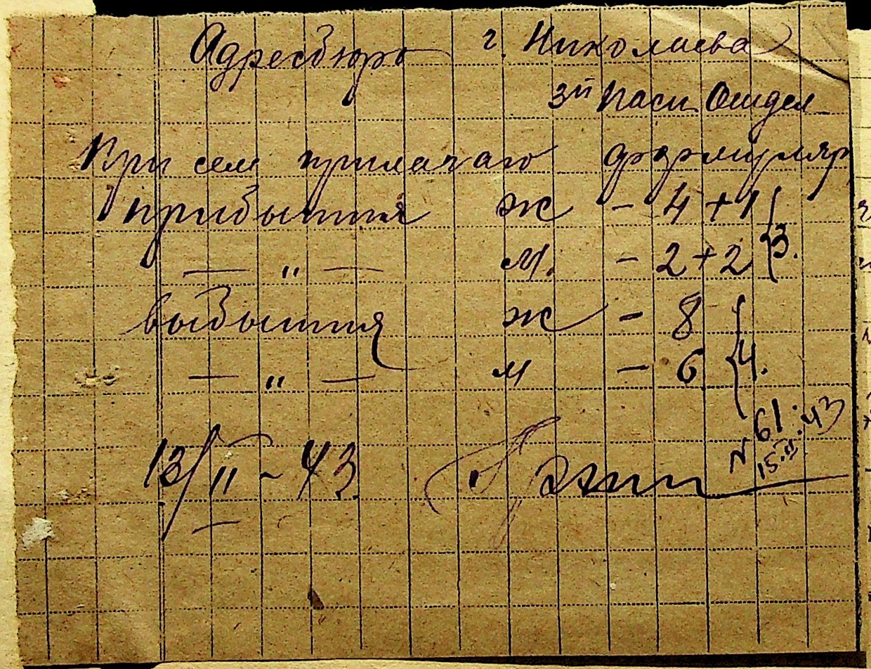 • • • • Справа № 10 “Списки осіб, які прибули до або вибули з приписних пунктів м.Миколаєва”