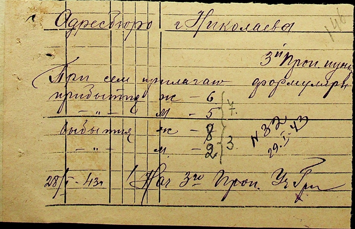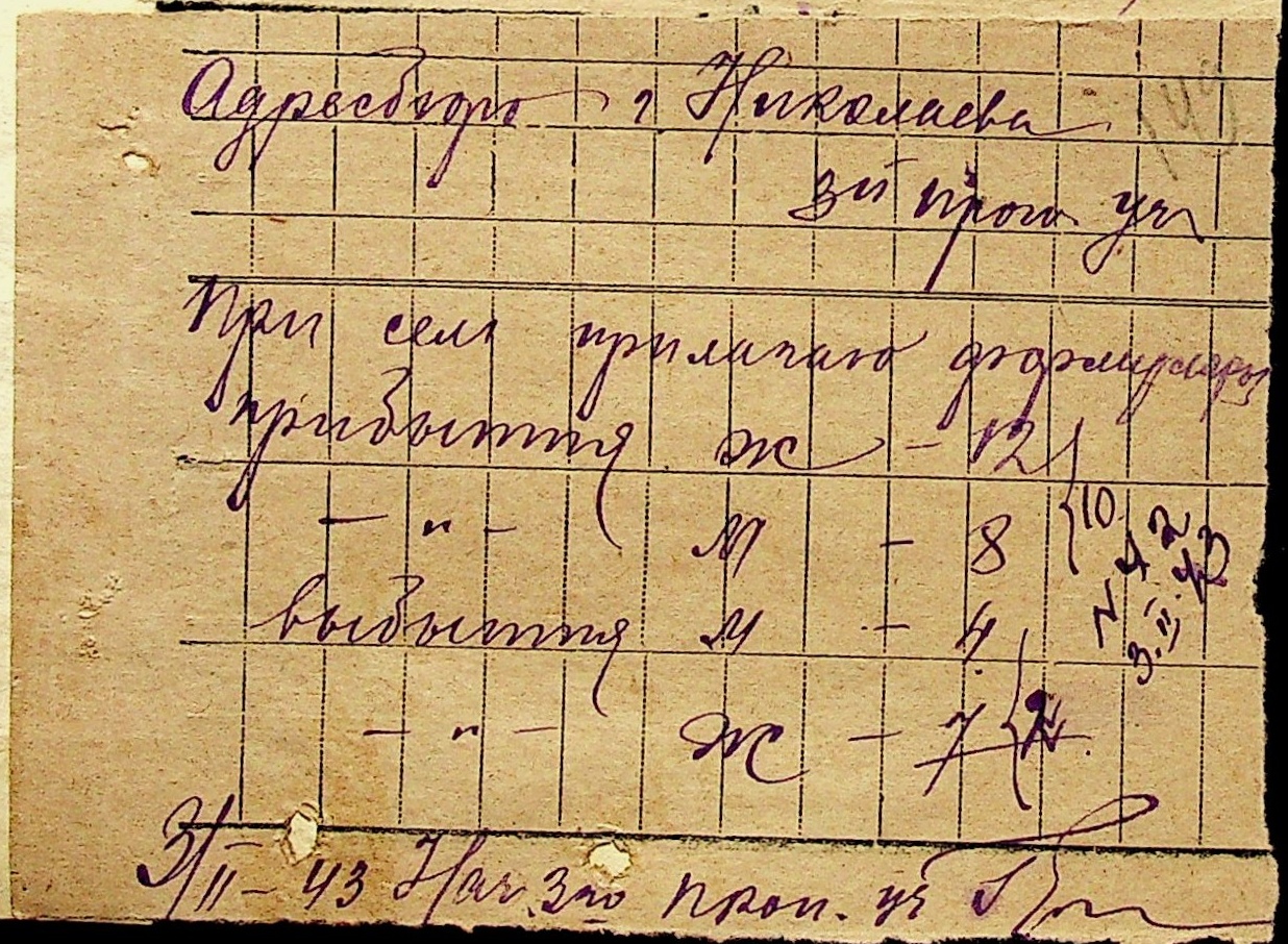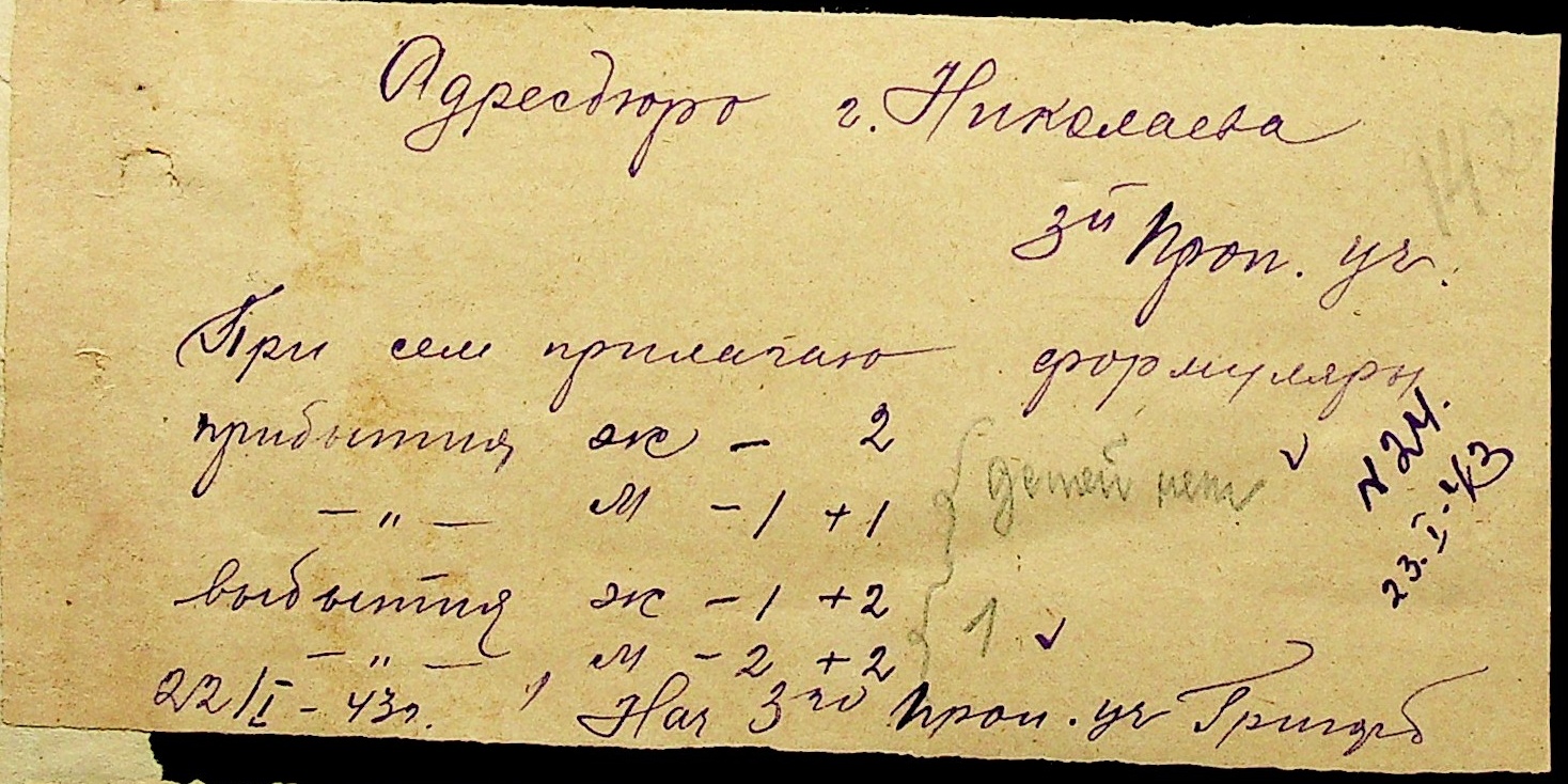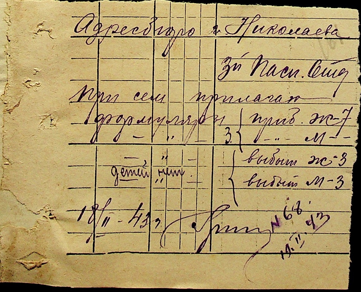 • • • • Справа № 10 “Списки осіб, які прибули до або вибули з приписних пунктів м.Миколаєва”