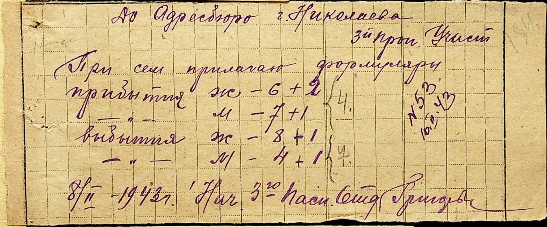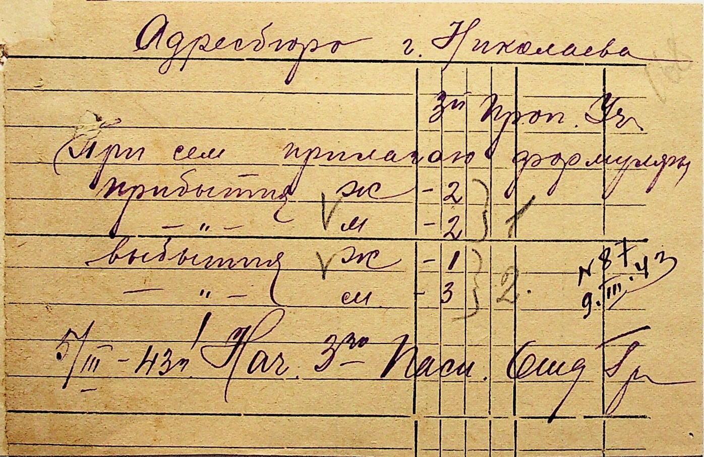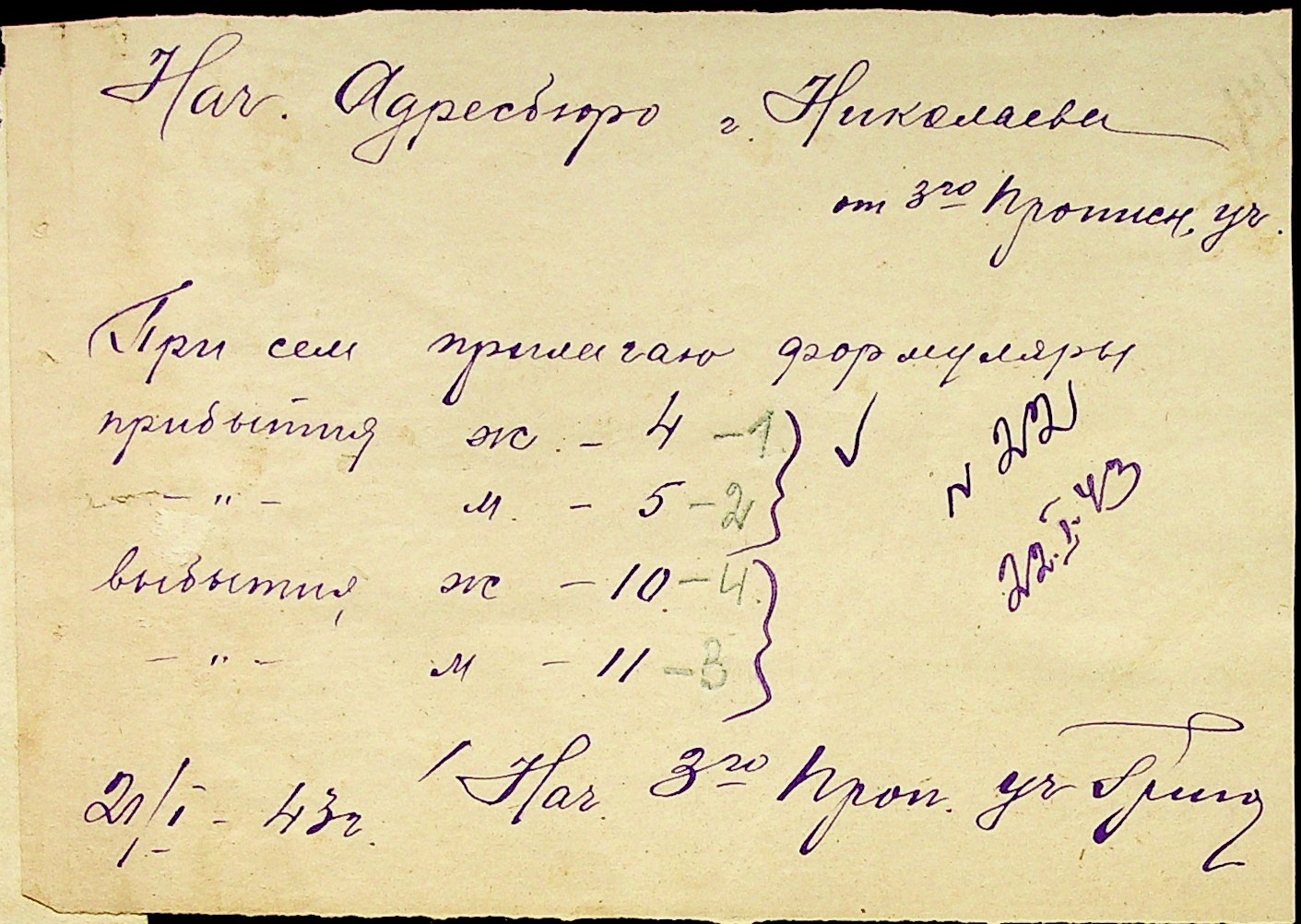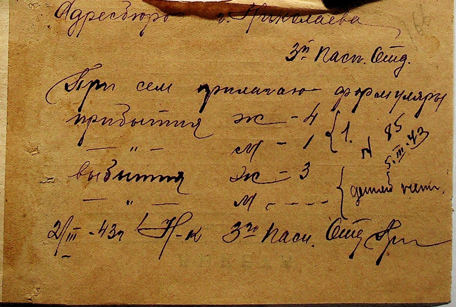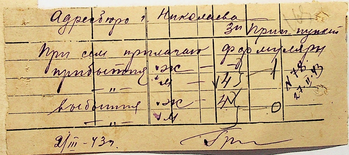 • • • • Справа № 10 “Списки осіб, які прибули до або вибули з приписних пунктів м.Миколаєва”