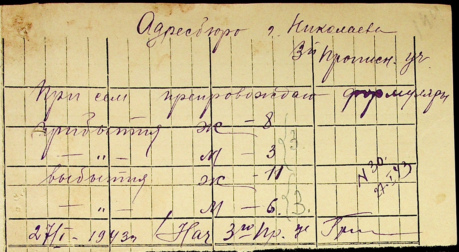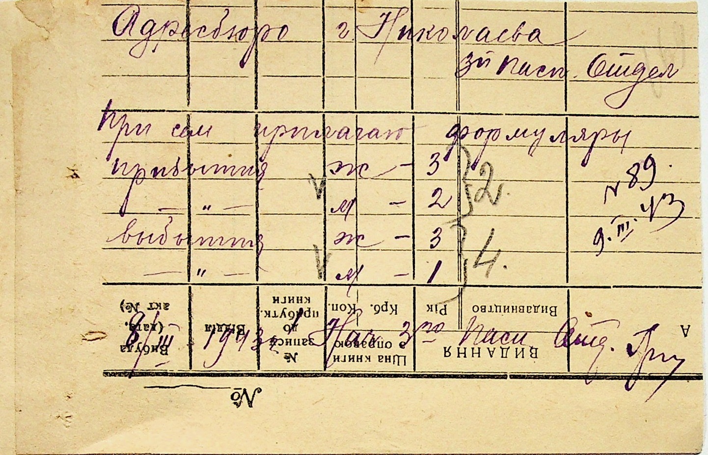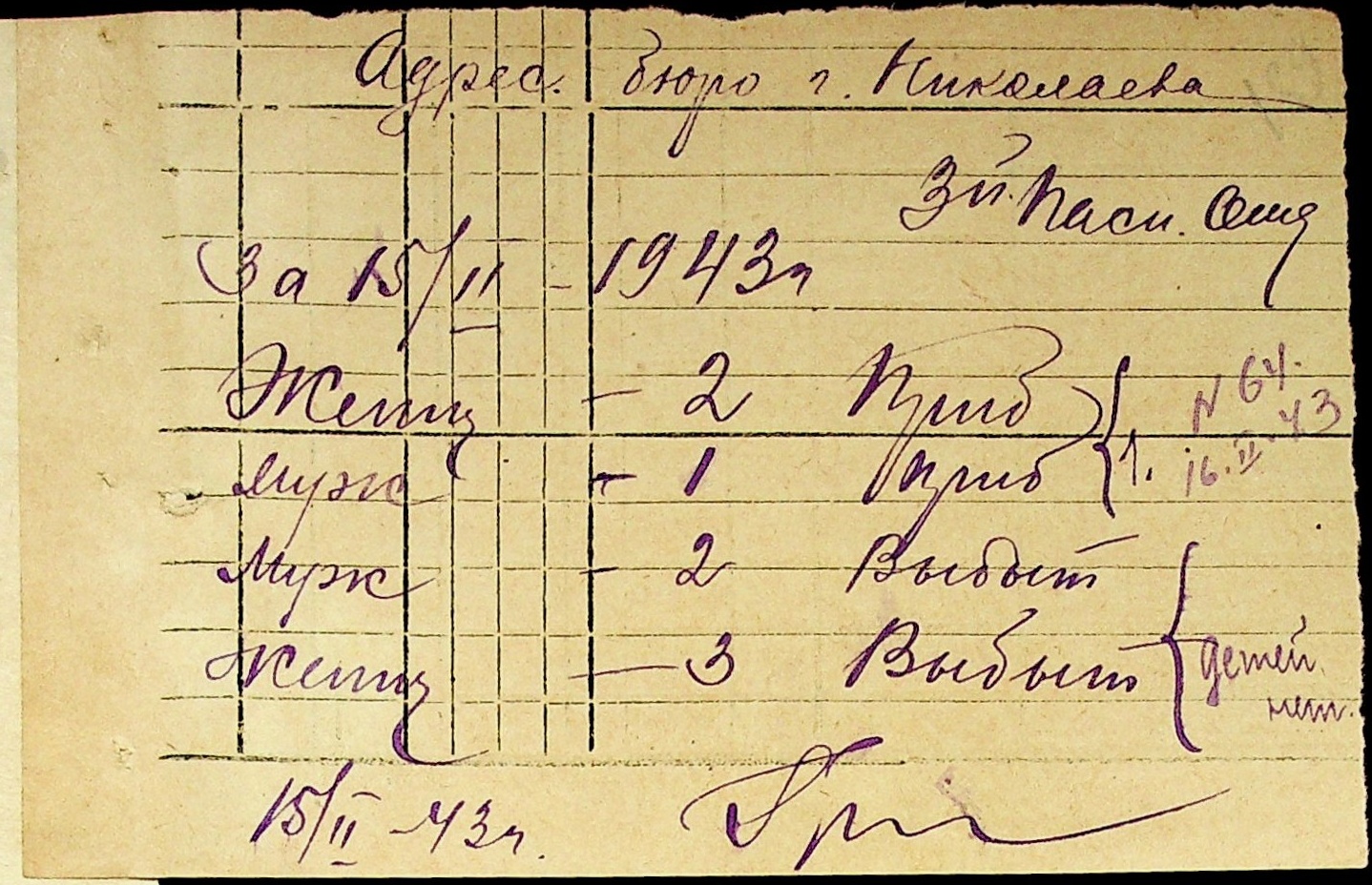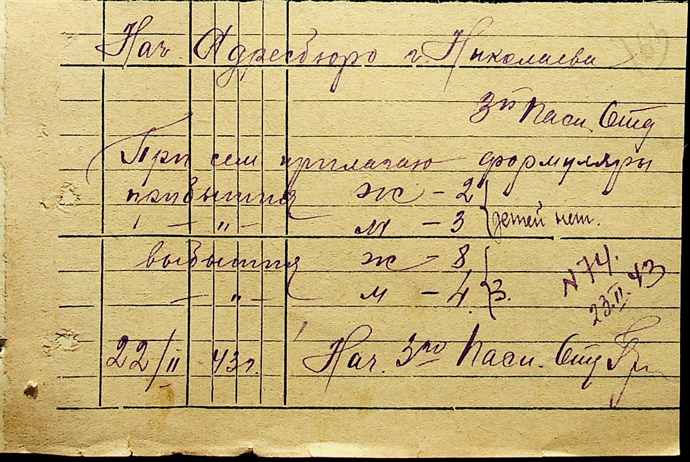 • • • • Справа № 10 “Списки осіб, які прибули до або вибули з приписних пунктів м.Миколаєва”