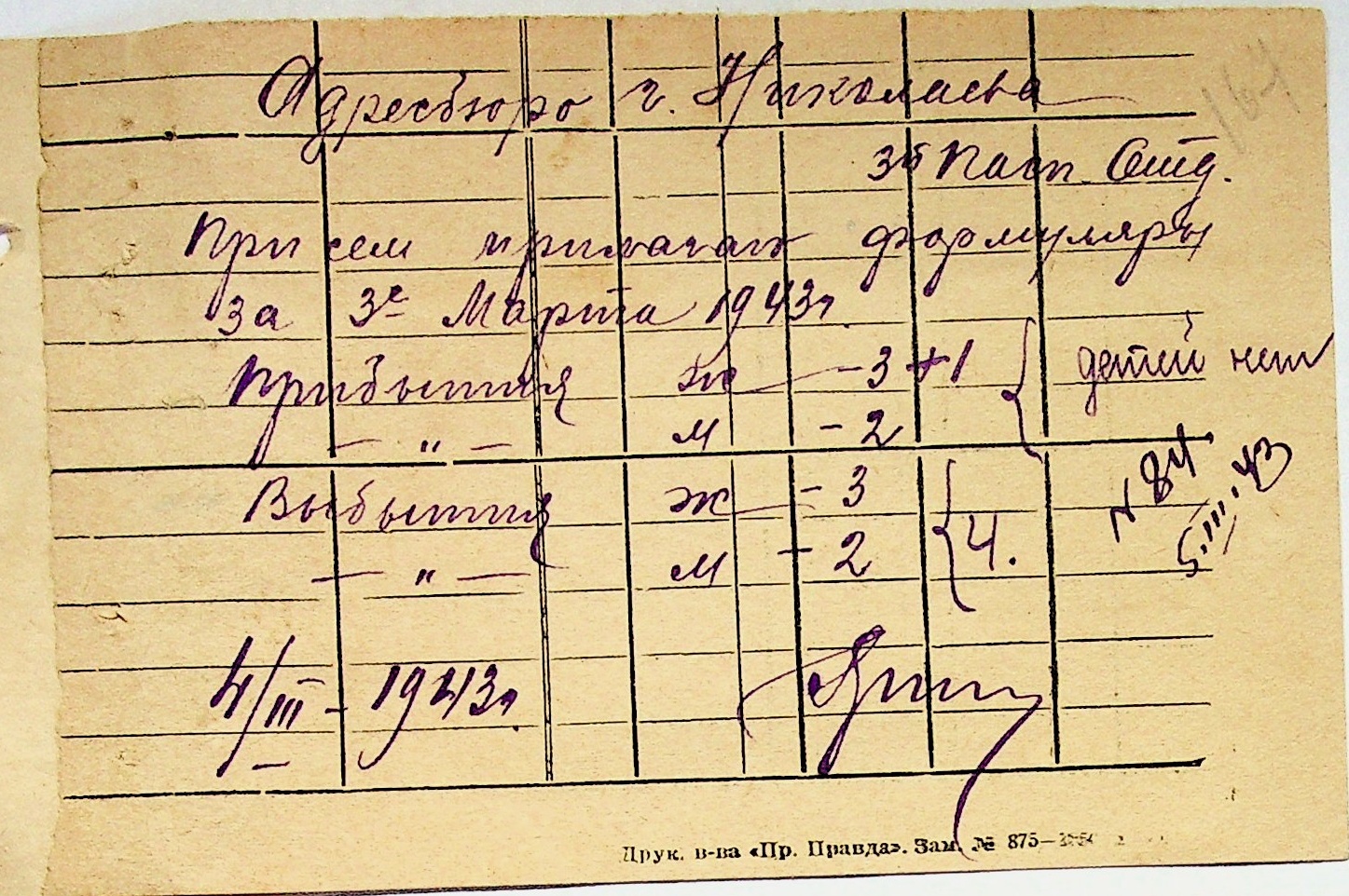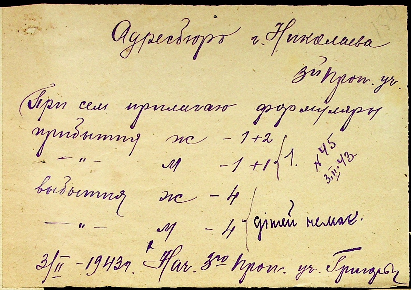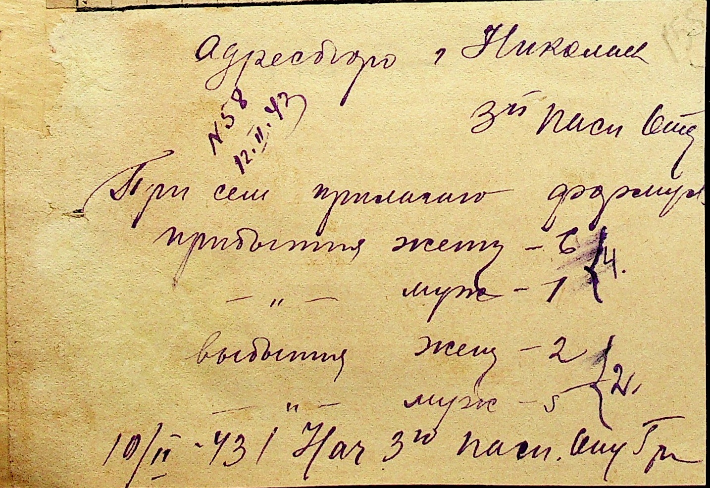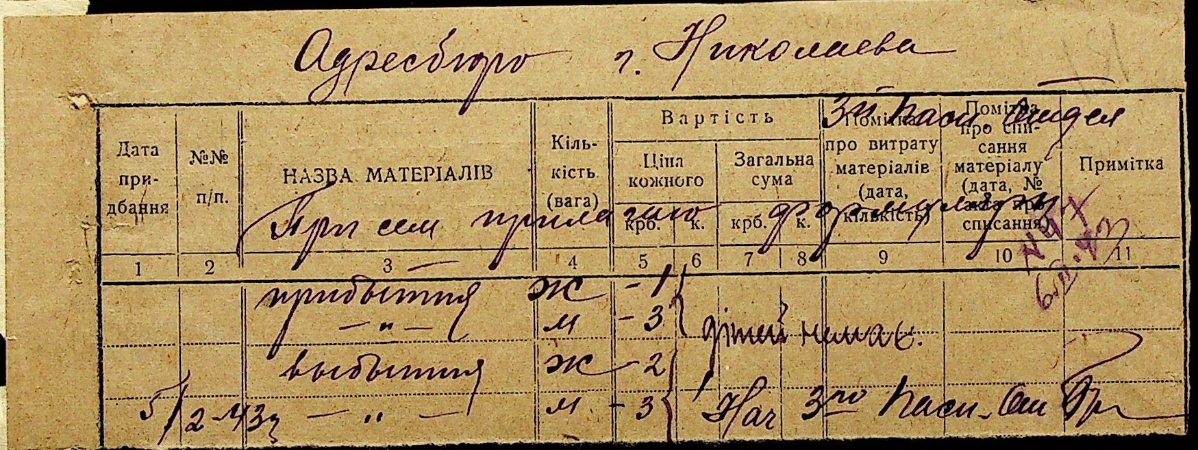 • • • • Справа № 10 “Списки осіб, які прибули до або вибули з приписних пунктів м.Миколаєва”