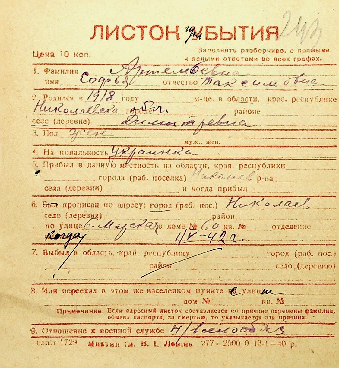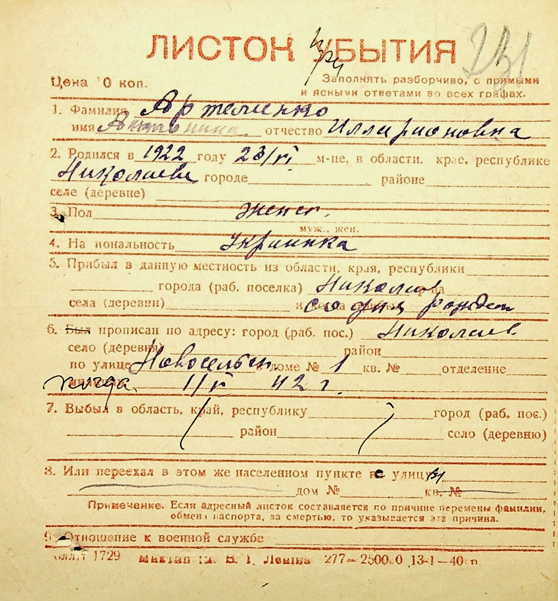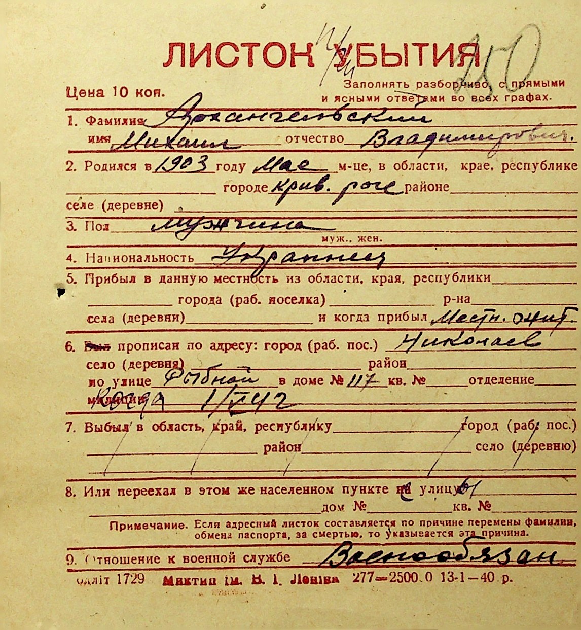 ◦ ◦ Фонд № Н-1016 “Адресне бюро м. Миколаєва”
