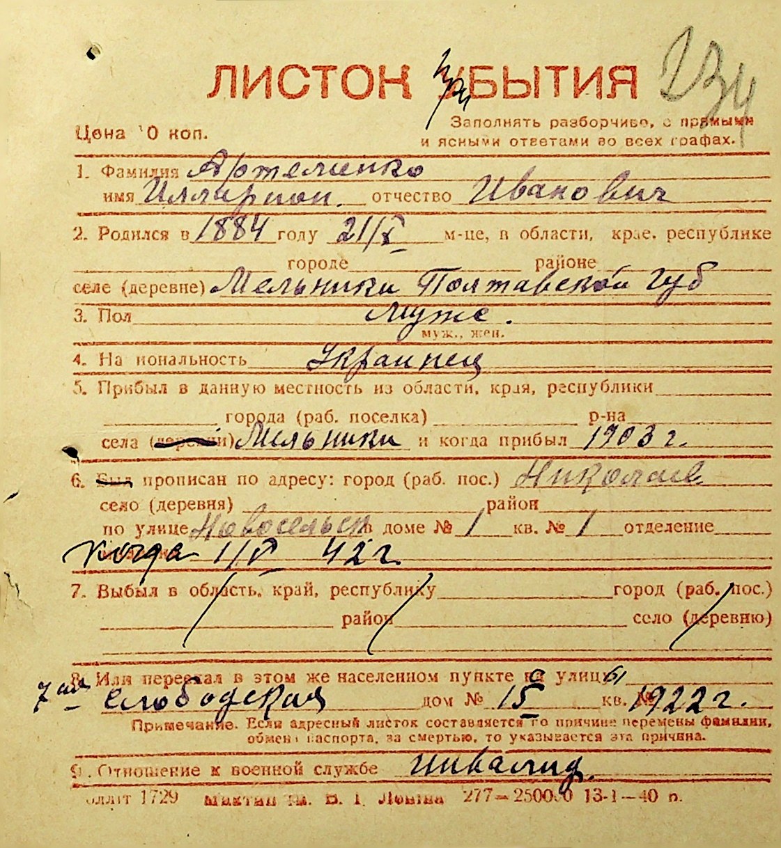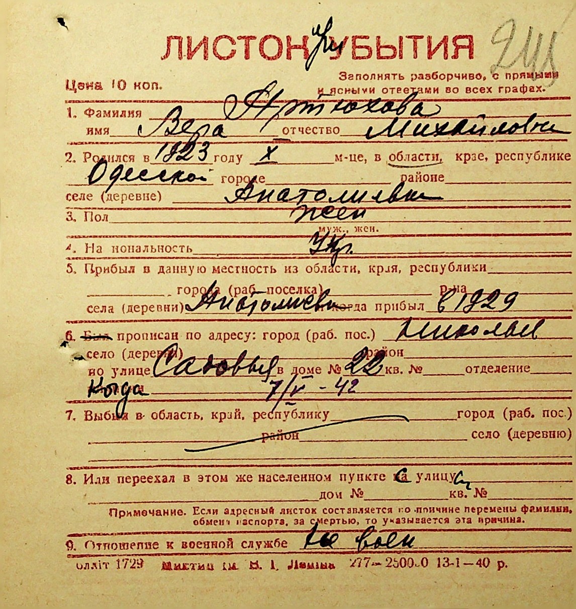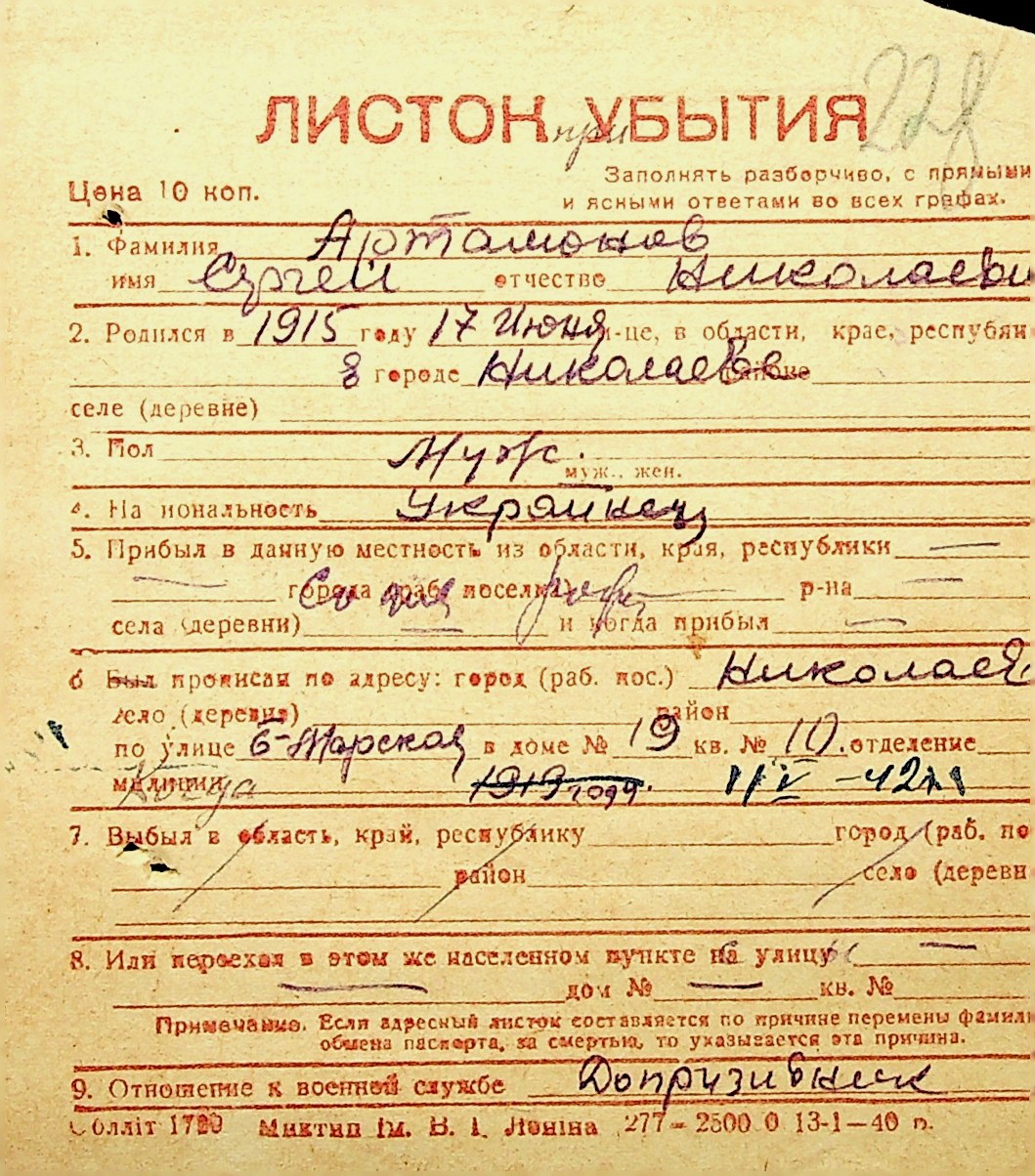 ◦ ◦ Фонд № Н-1016 “Адресне бюро м. Миколаєва”