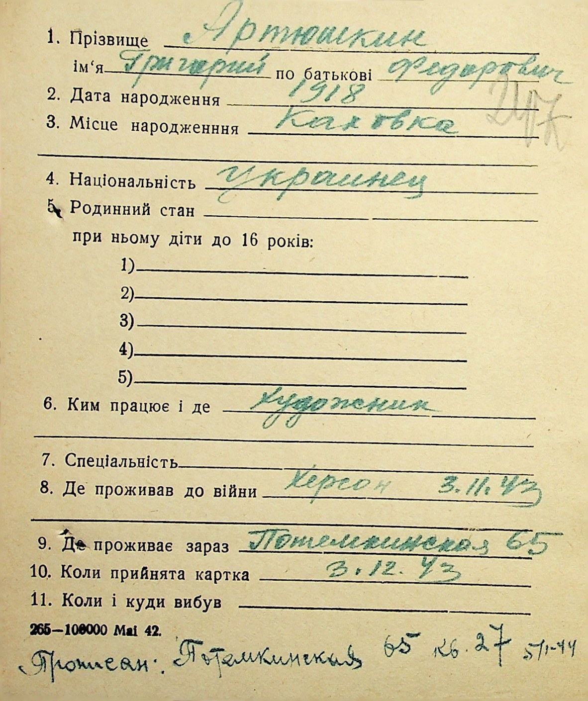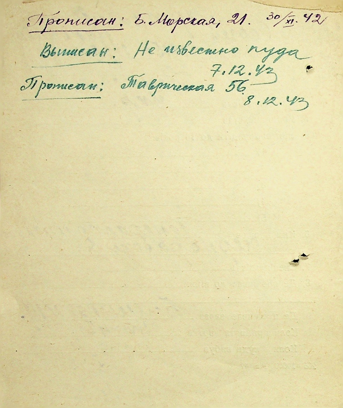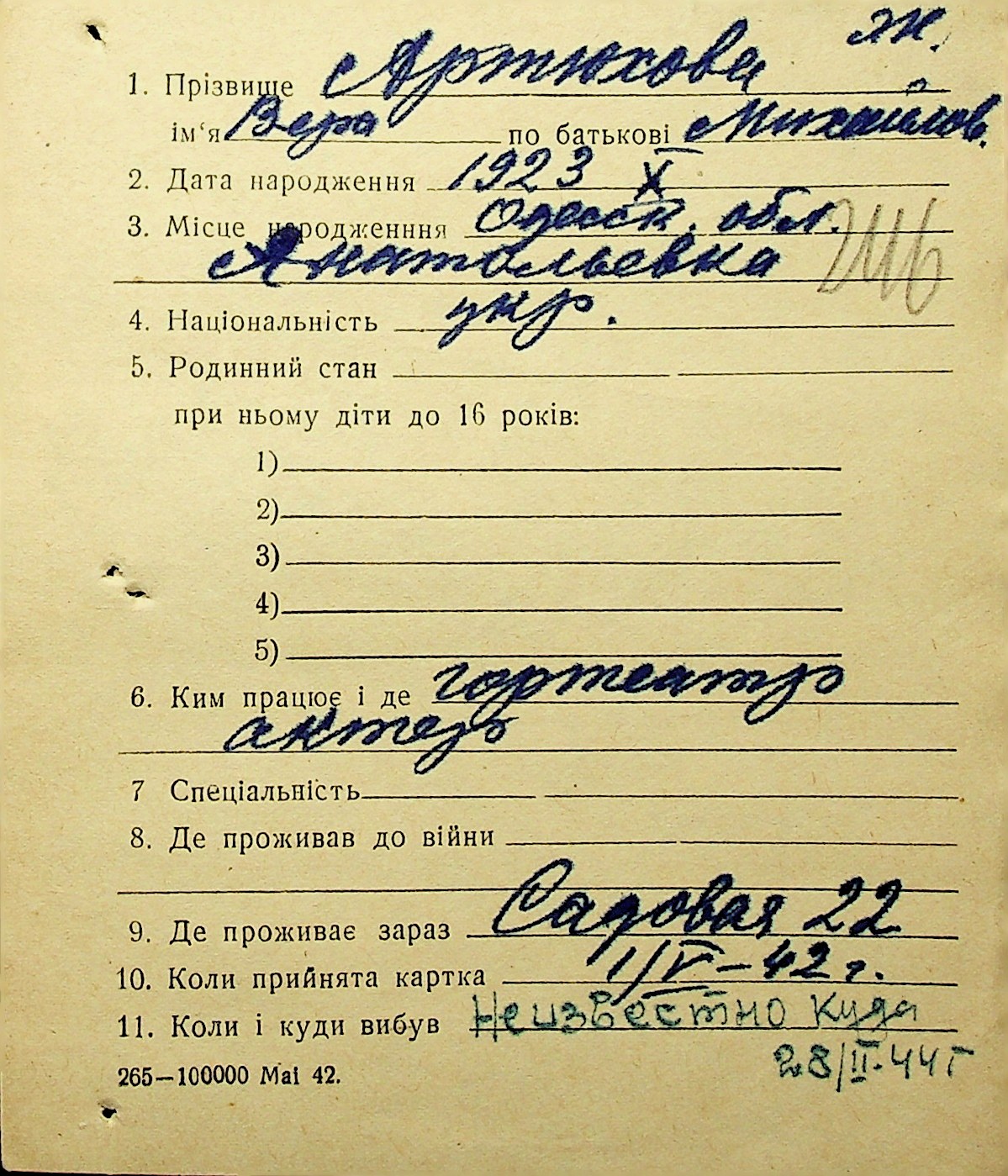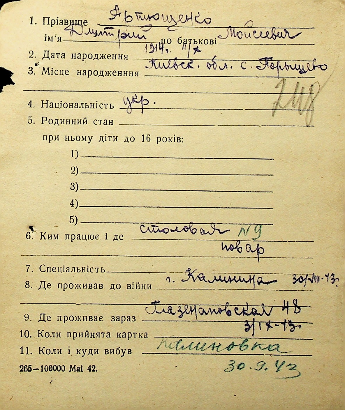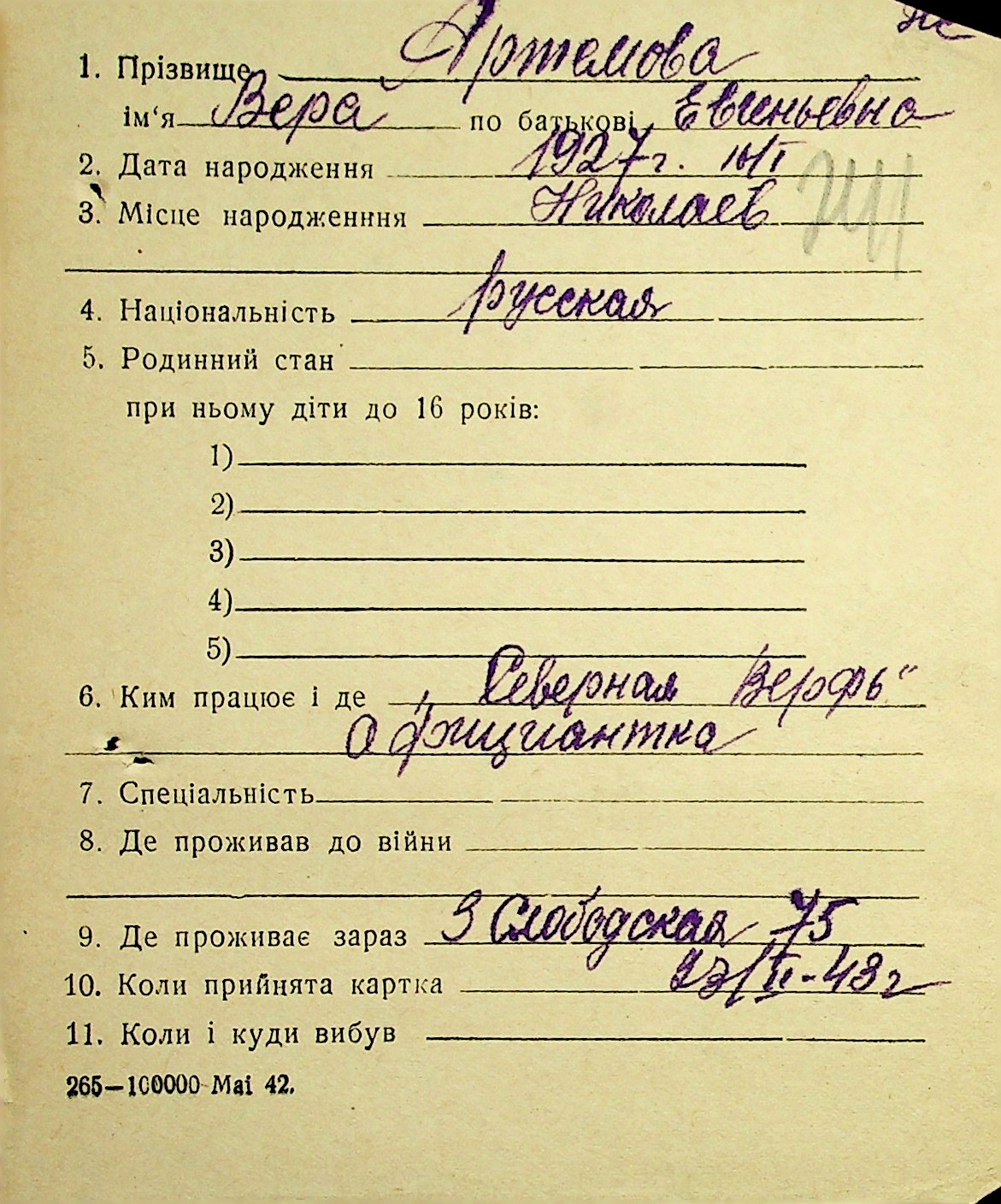 • • • • Справа № 1 “Картки адресного бюро м. Миколаєва на осіб, які працювали в німецько-фашистських установах та військових частинах. Прізвища на літеру «А». Том 3”