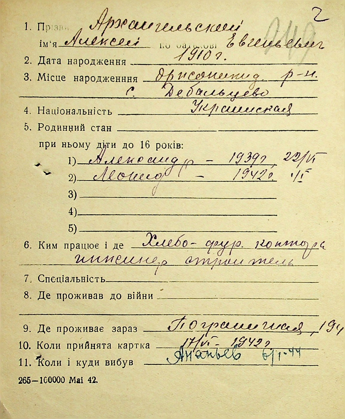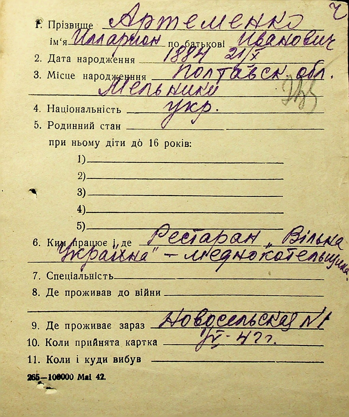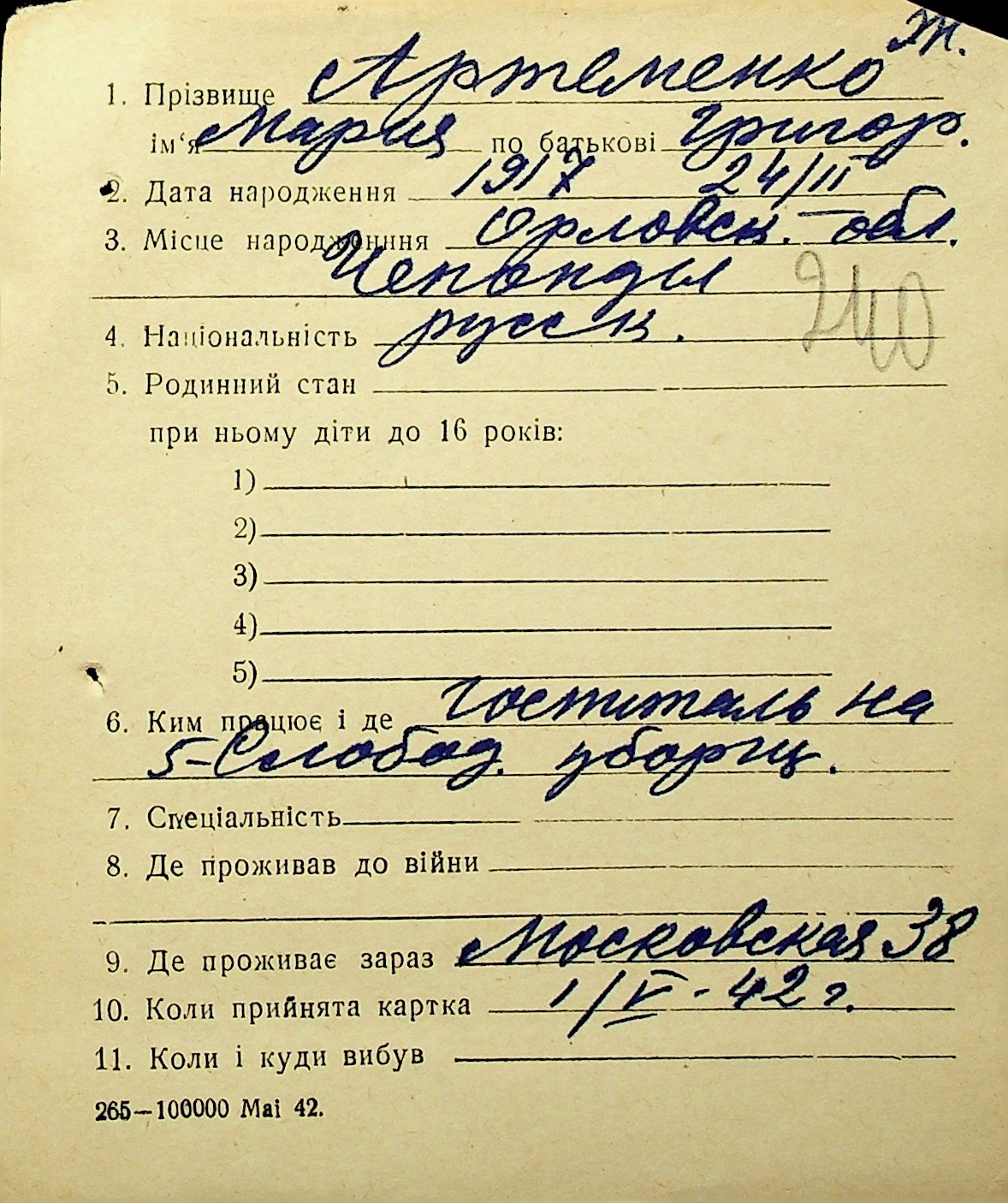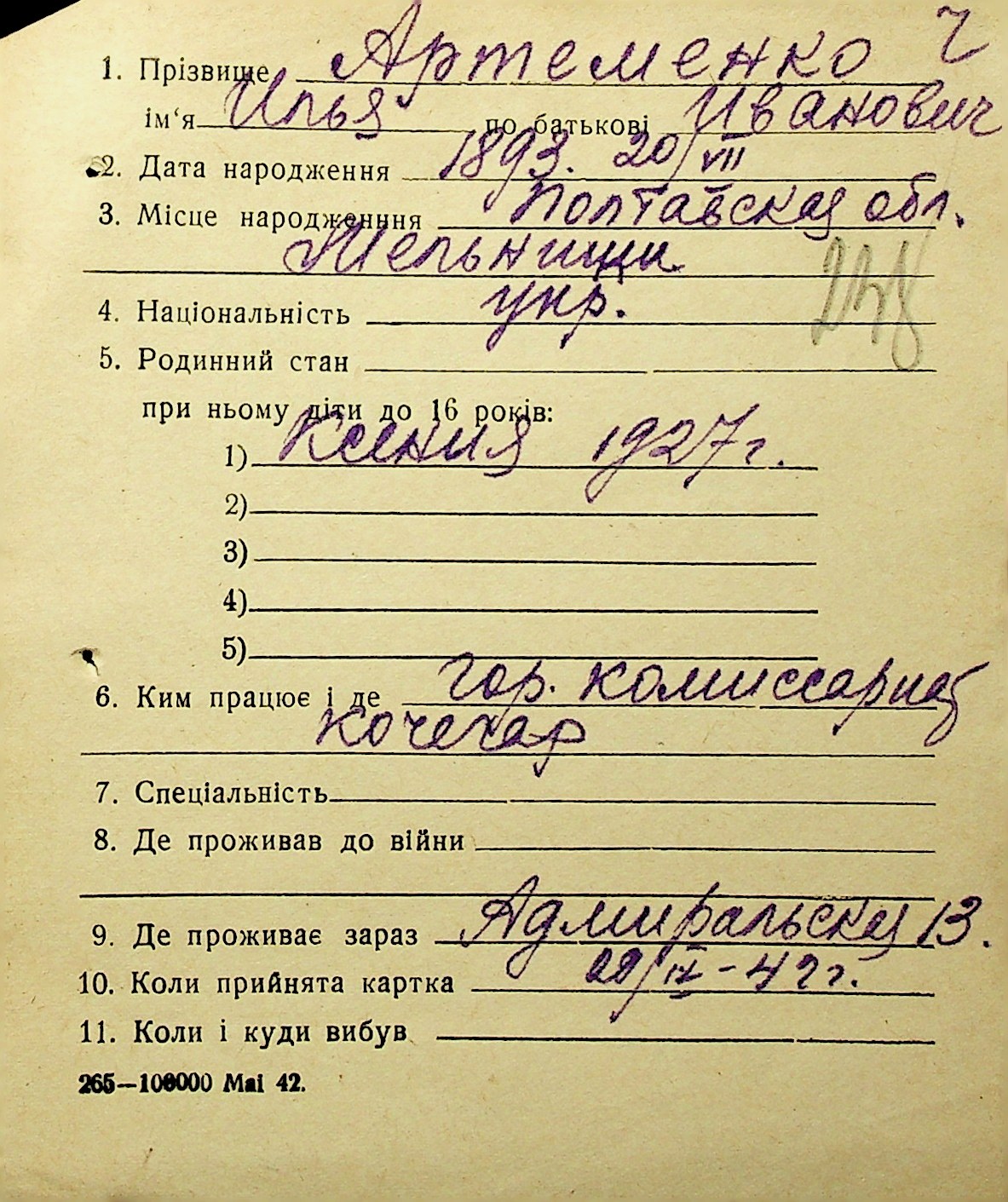 • • • • Справа № 1 “Картки адресного бюро м. Миколаєва на осіб, які працювали в німецько-фашистських установах та військових частинах. Прізвища на літеру «А». Том 3”