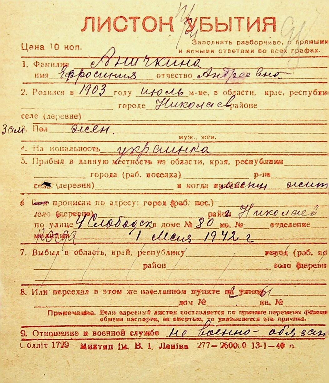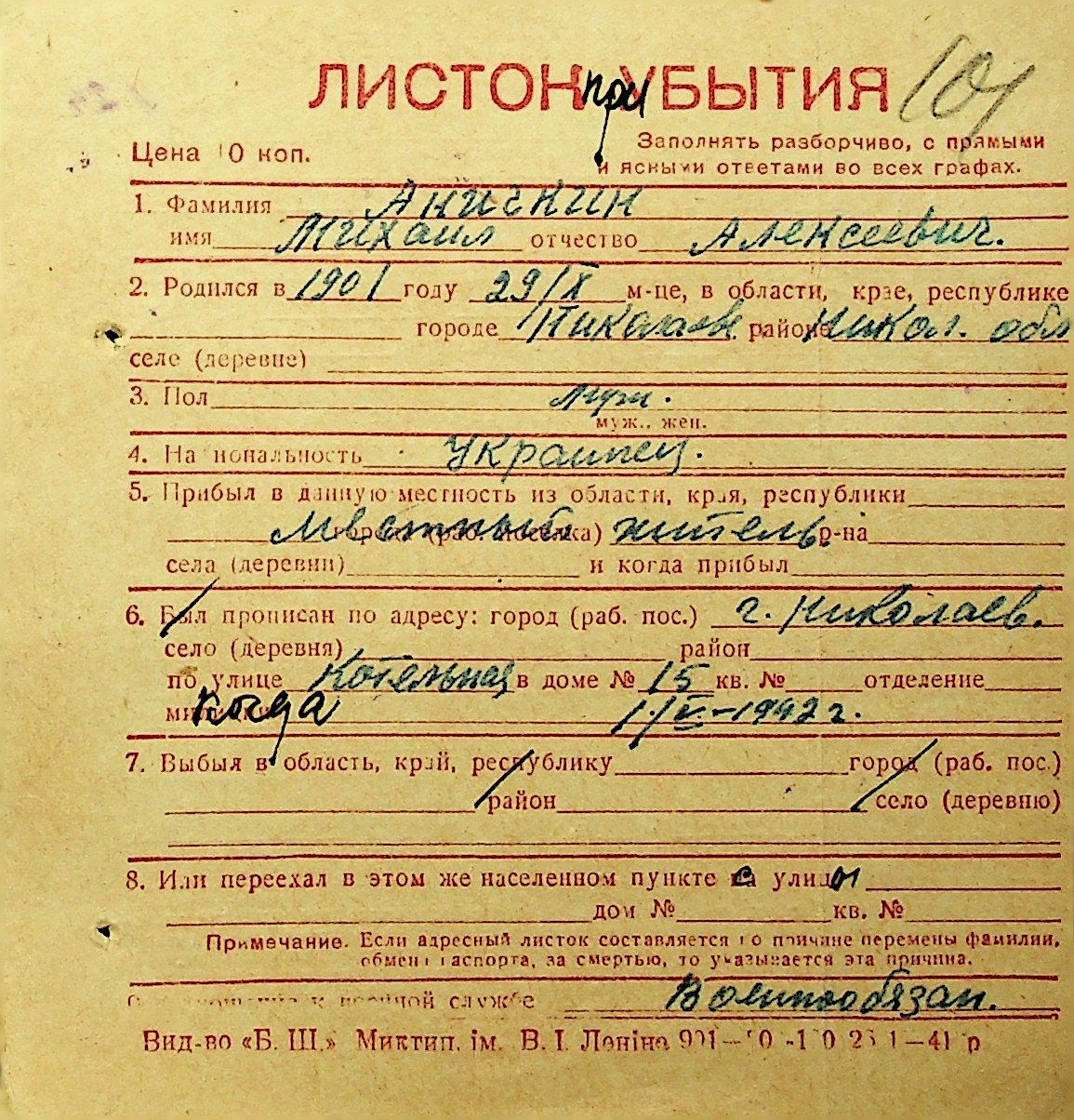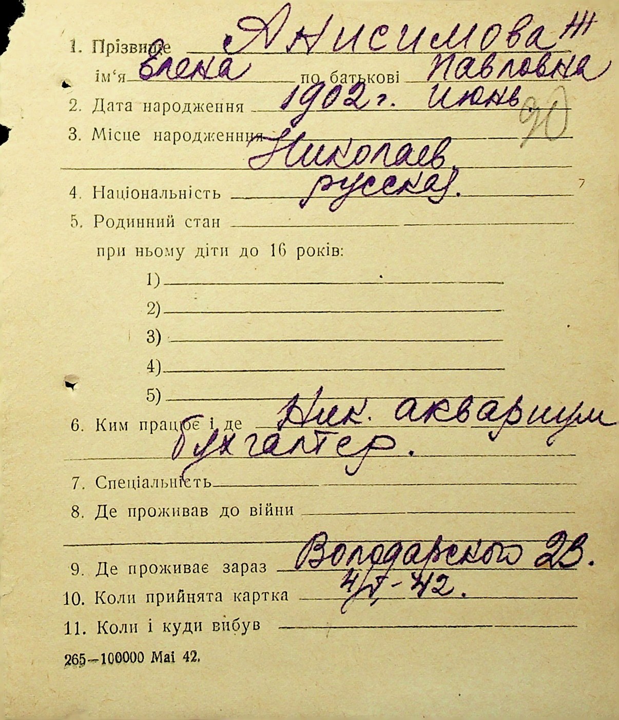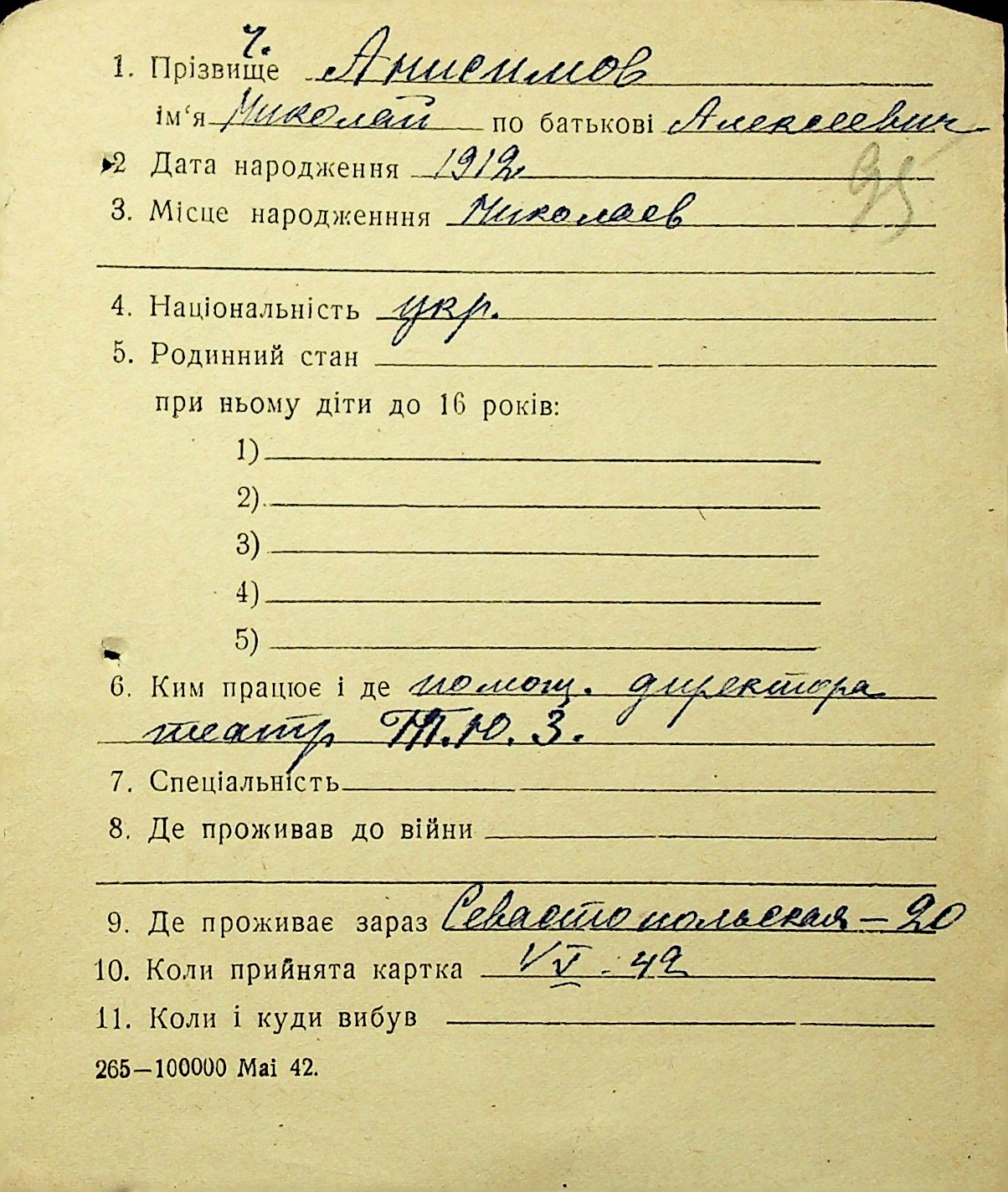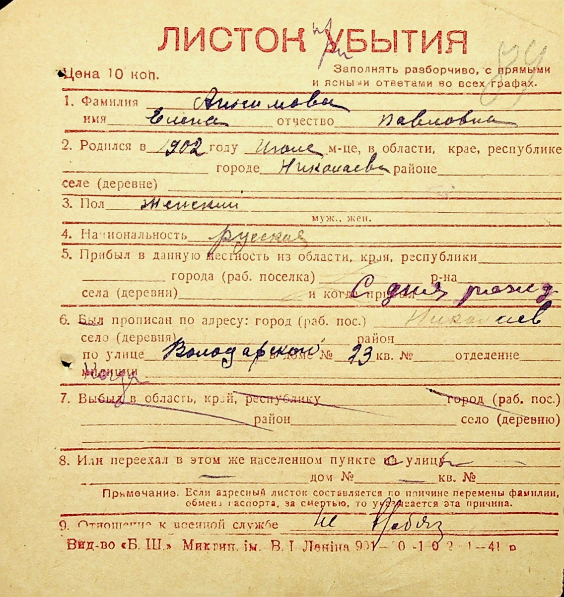 ◦ ◦ Фонд № Н-1016 “Адресне бюро м. Миколаєва”