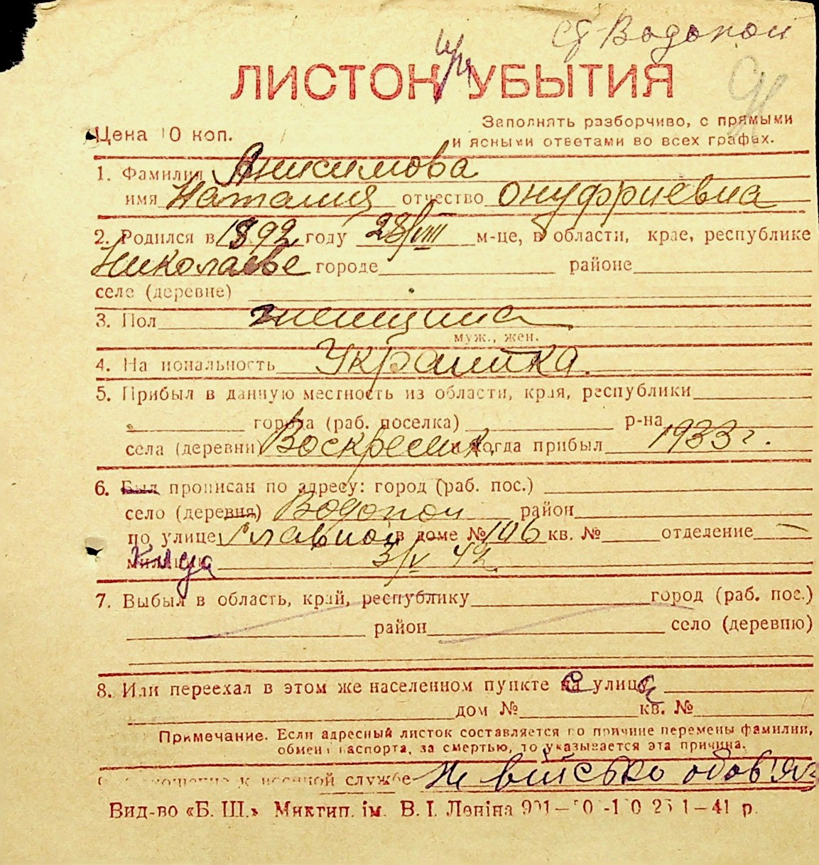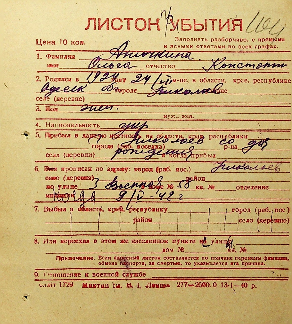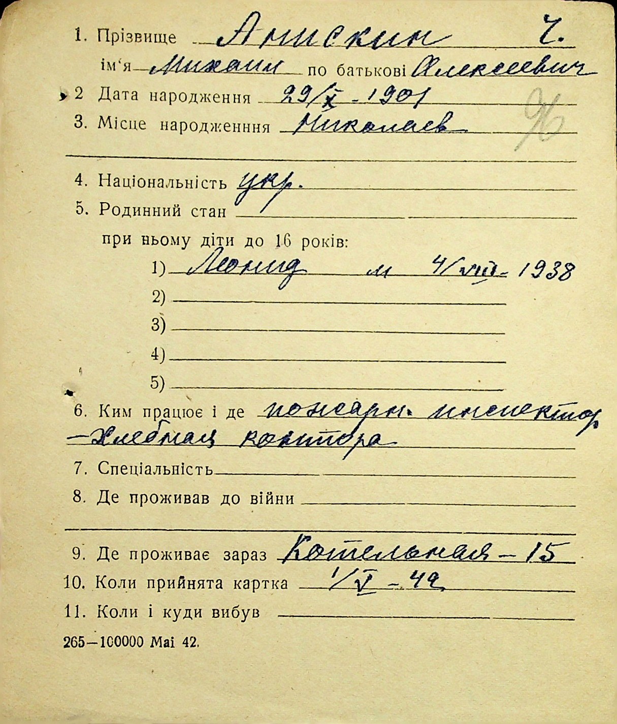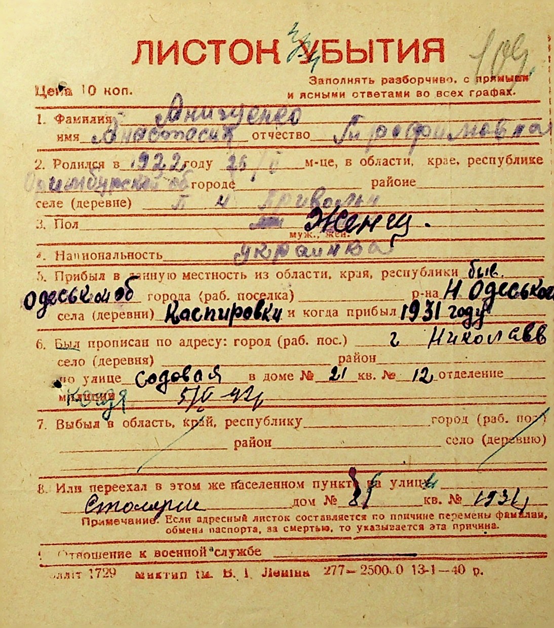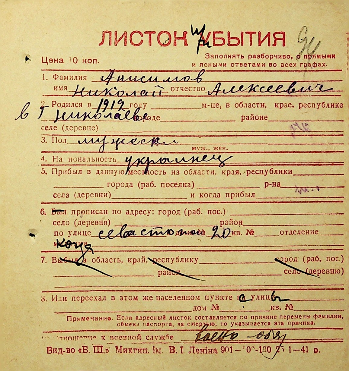 ◦ ◦ Фонд № Н-1016 “Адресне бюро м. Миколаєва”
