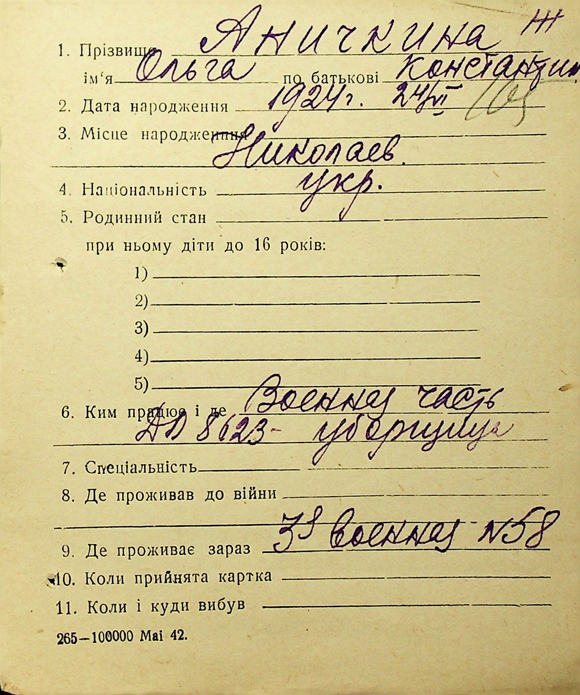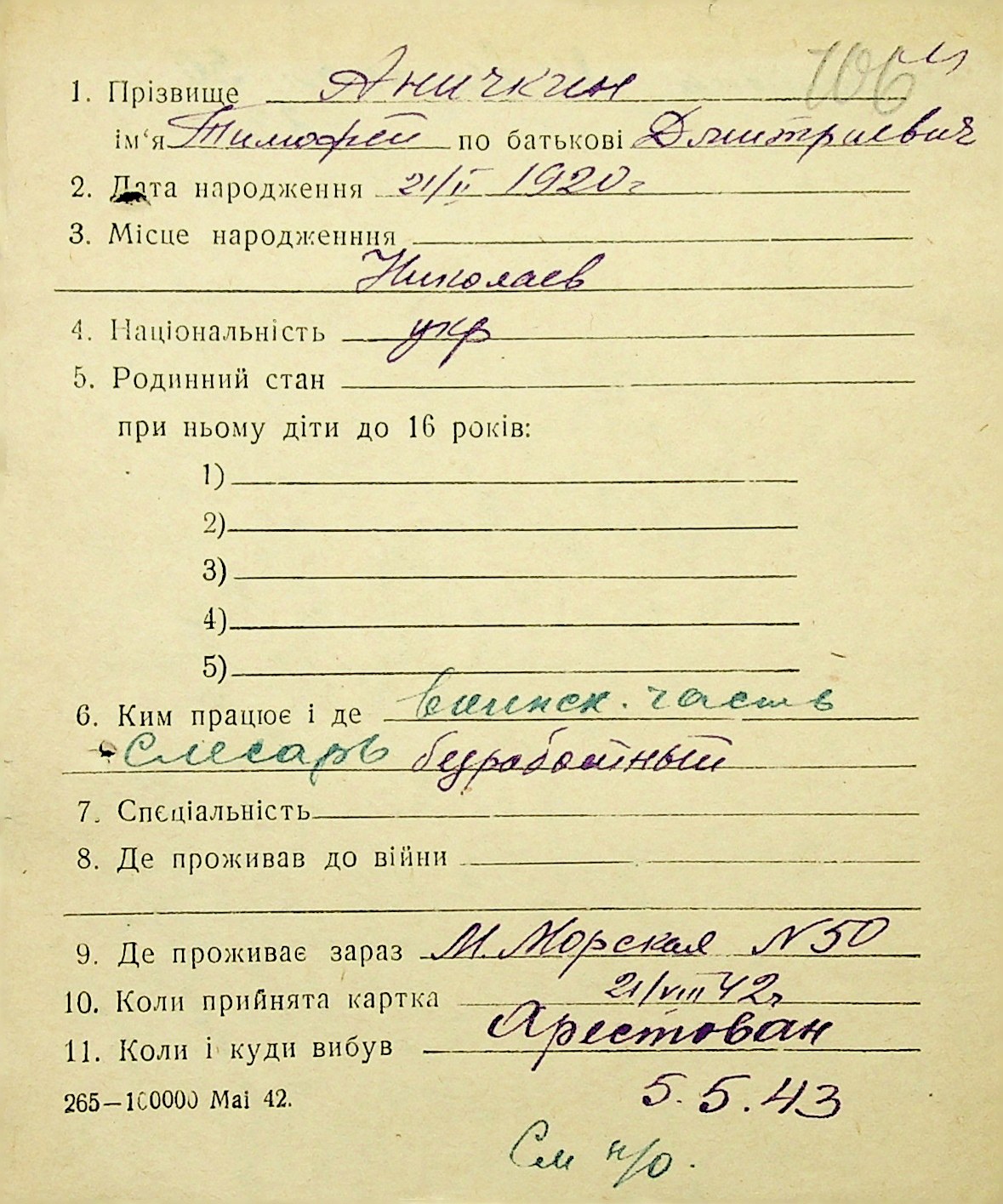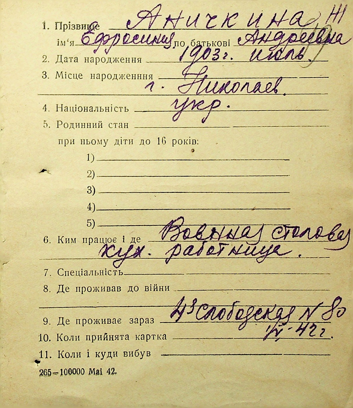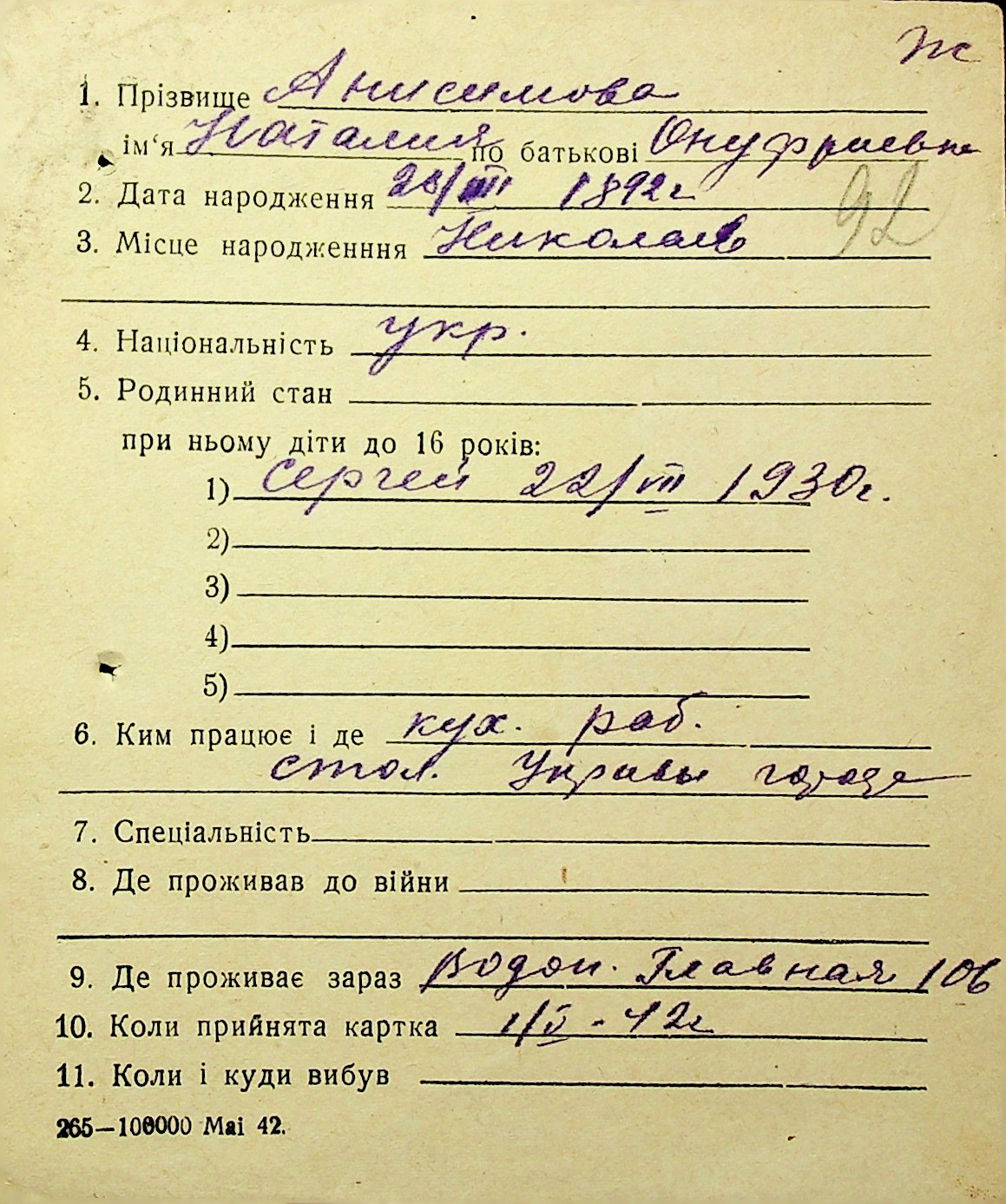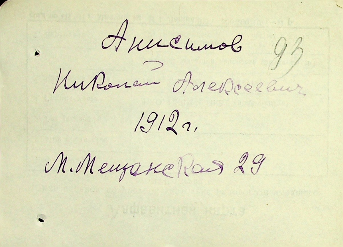 • • • • Справа № 1 “Картки адресного бюро м. Миколаєва на осіб, які працювали в німецько-фашистських установах та військових частинах. Прізвища на літеру «А». Том 3”