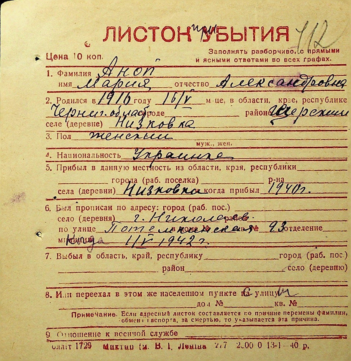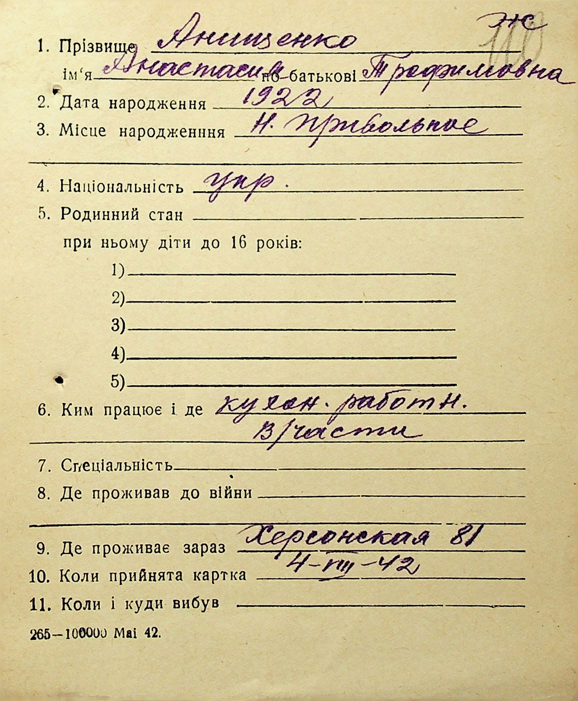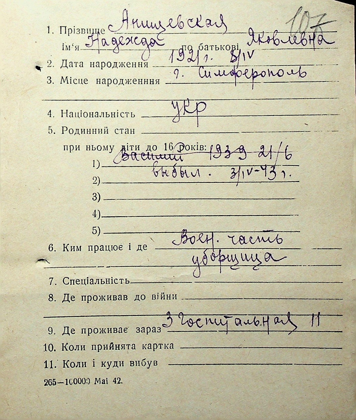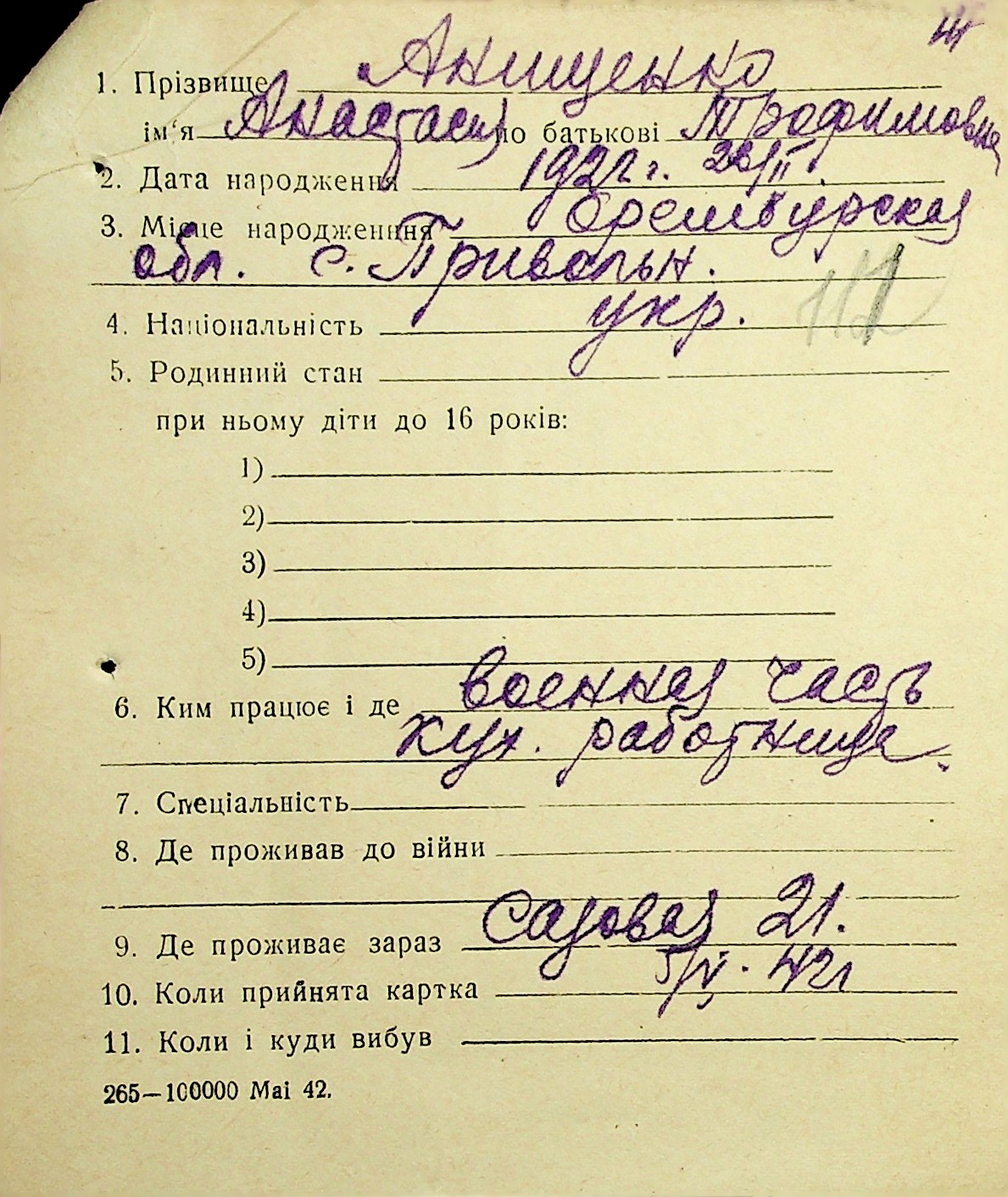 • • • • Справа № 1 “Картки адресного бюро м. Миколаєва на осіб, які працювали в німецько-фашистських установах та військових частинах. Прізвища на літеру «А». Том 3”