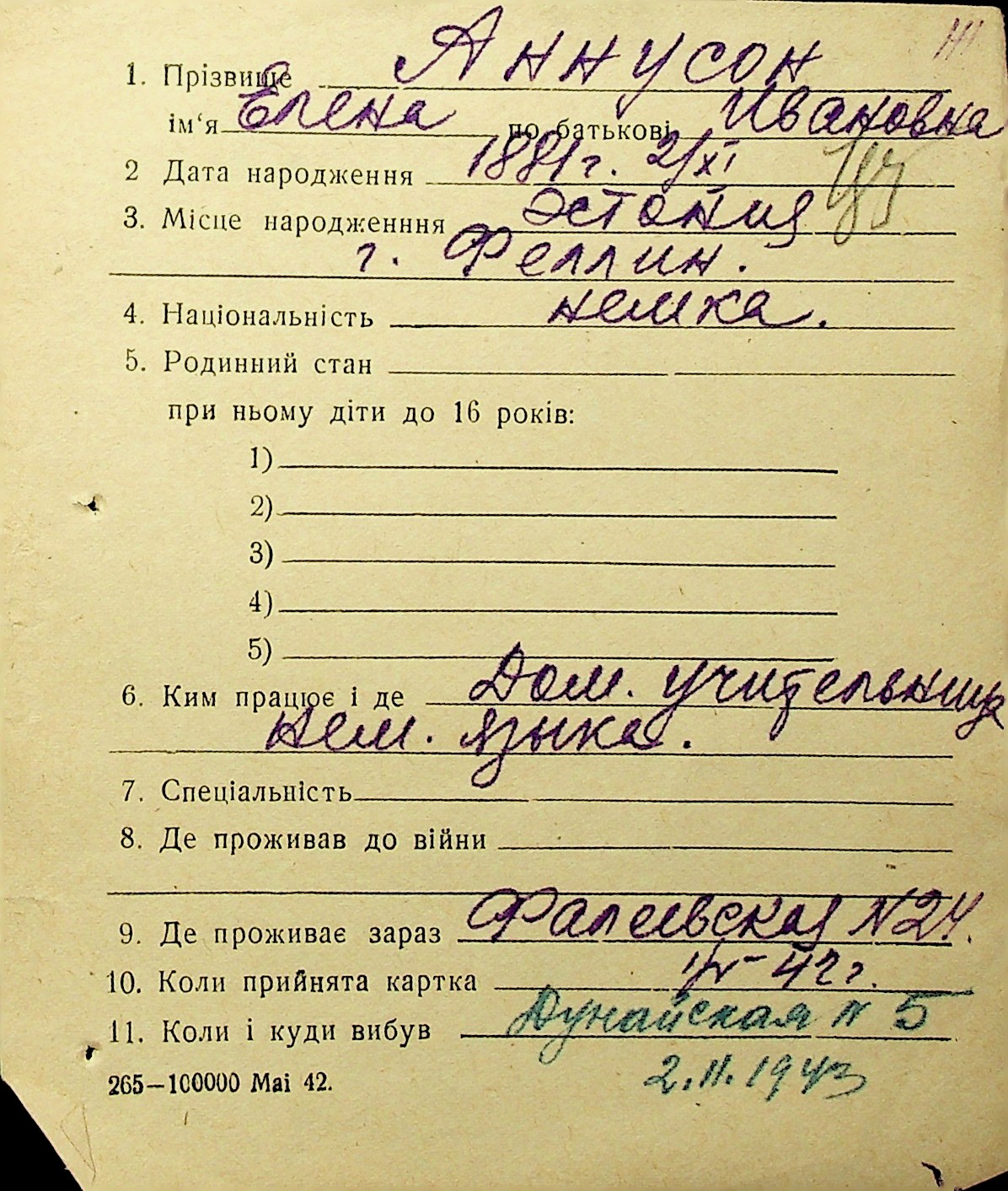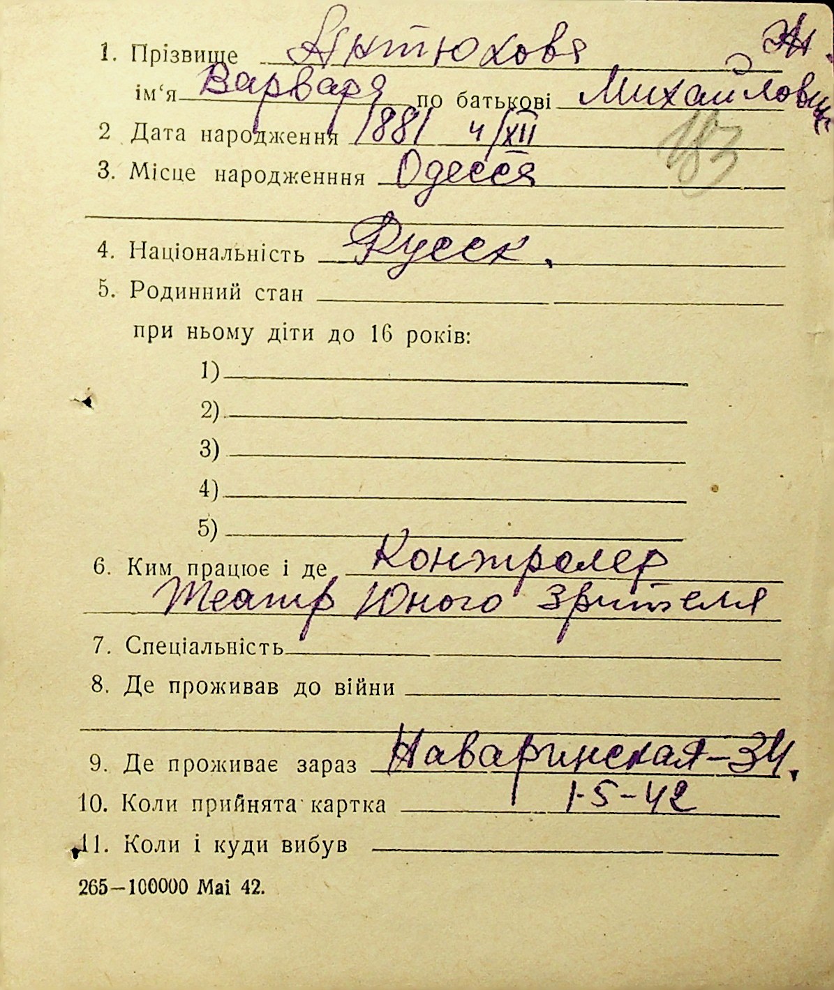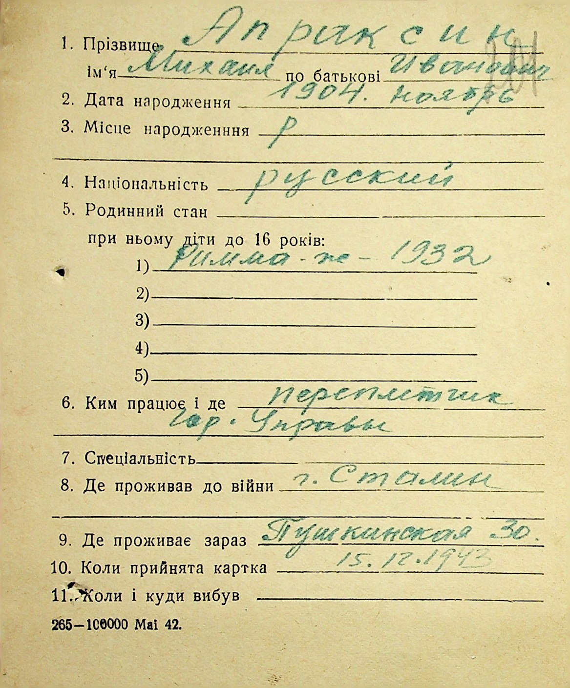 • • • • Справа № 1 “Картки адресного бюро м. Миколаєва на осіб, які працювали в німецько-фашистських установах та військових частинах. Прізвища на літеру «А». Том 3”