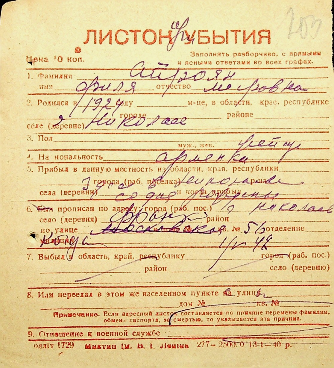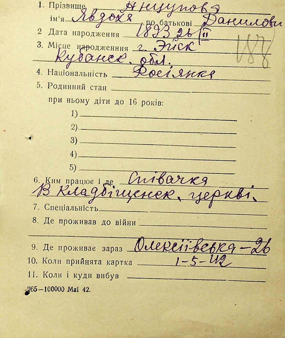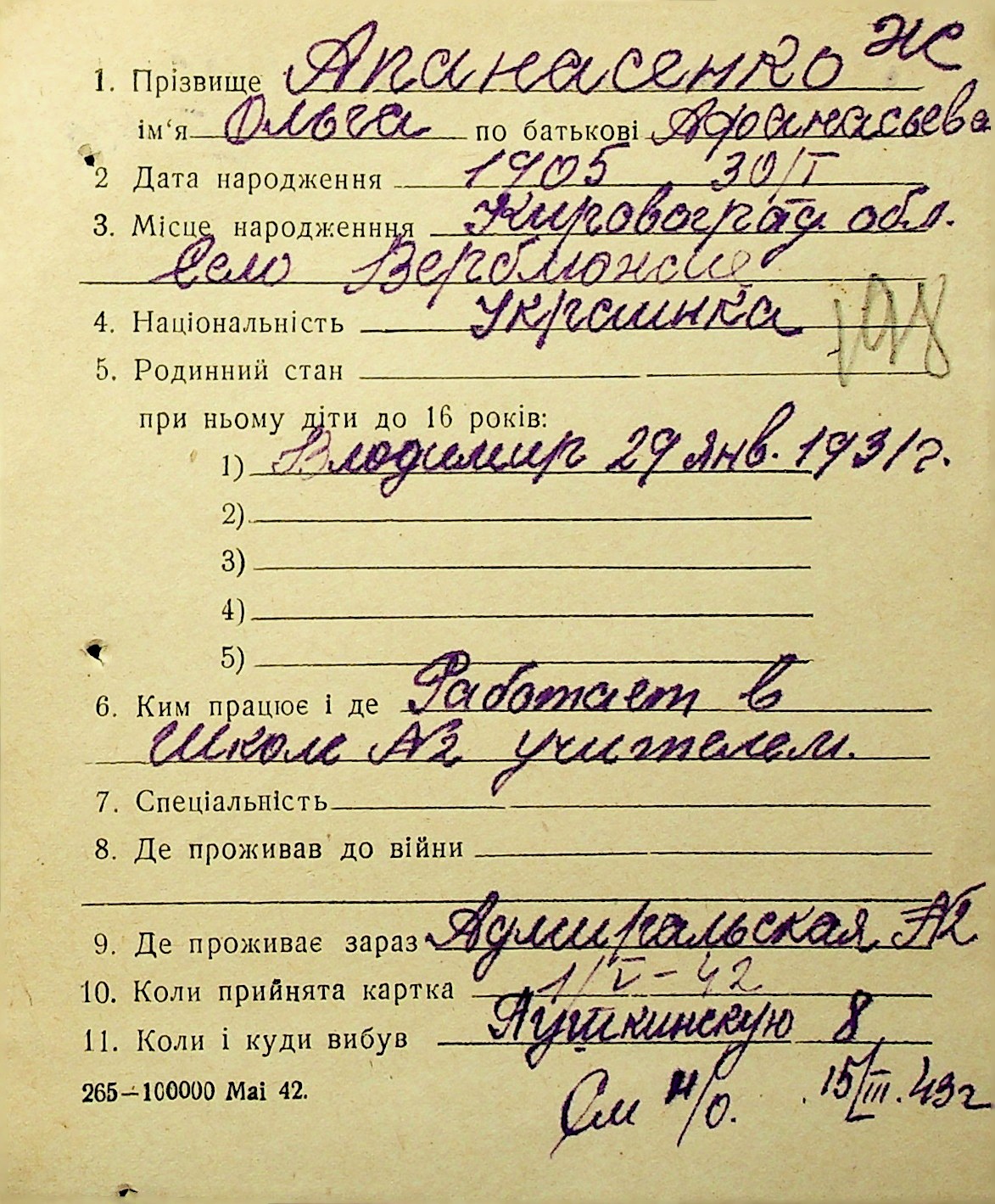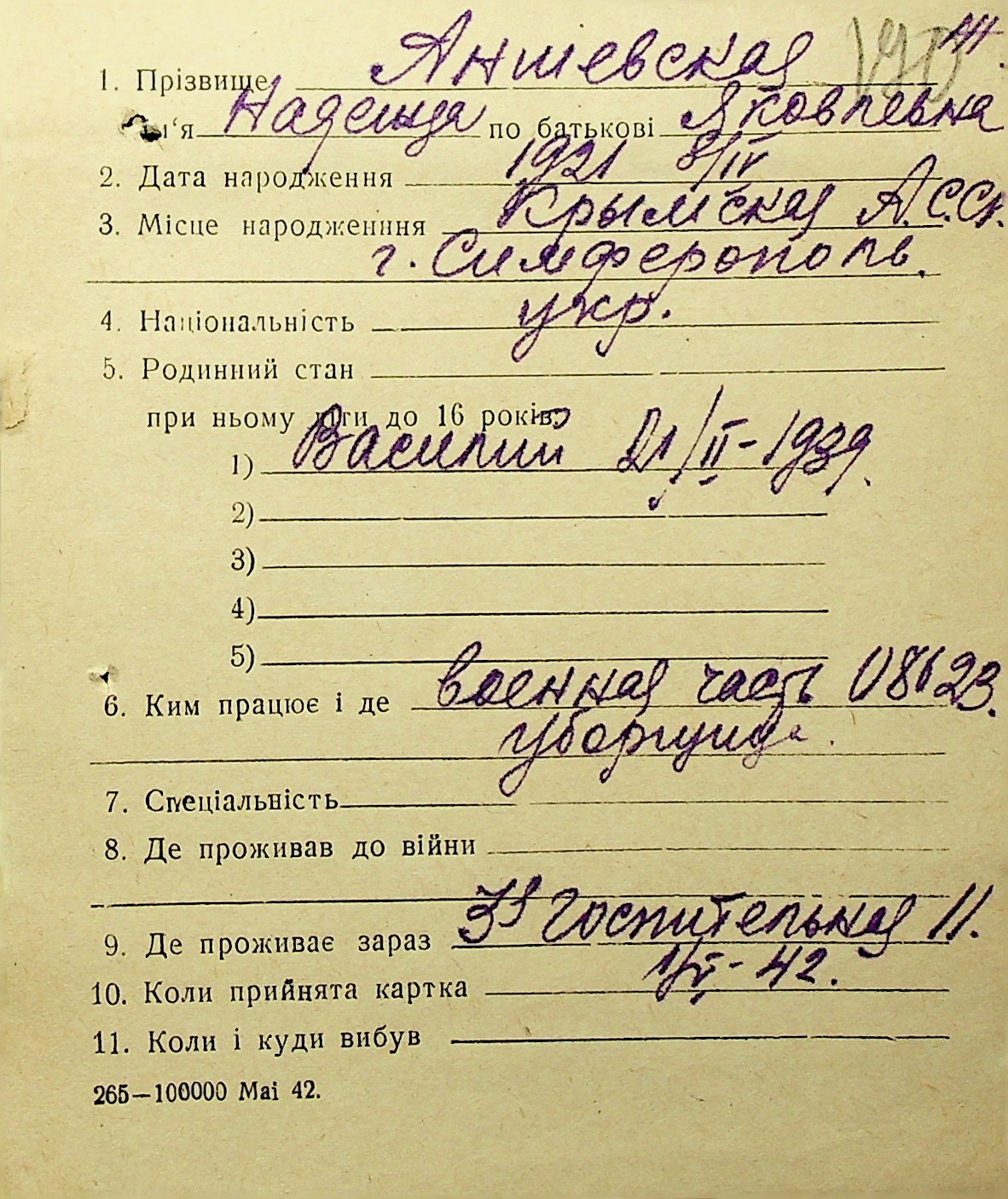 • • • • Справа № 1 “Картки адресного бюро м. Миколаєва на осіб, які працювали в німецько-фашистських установах та військових частинах. Прізвища на літеру «А». Том 3”