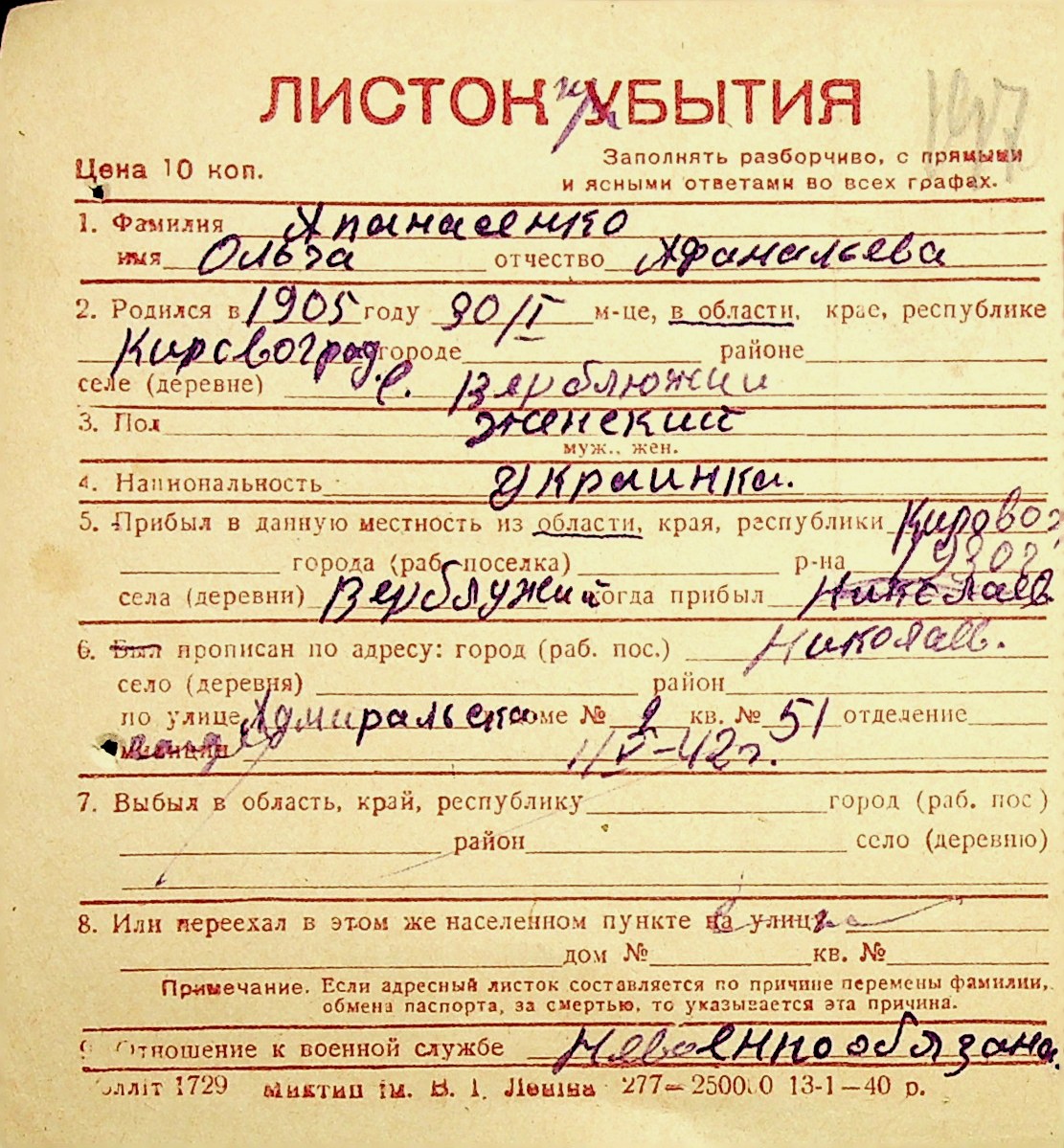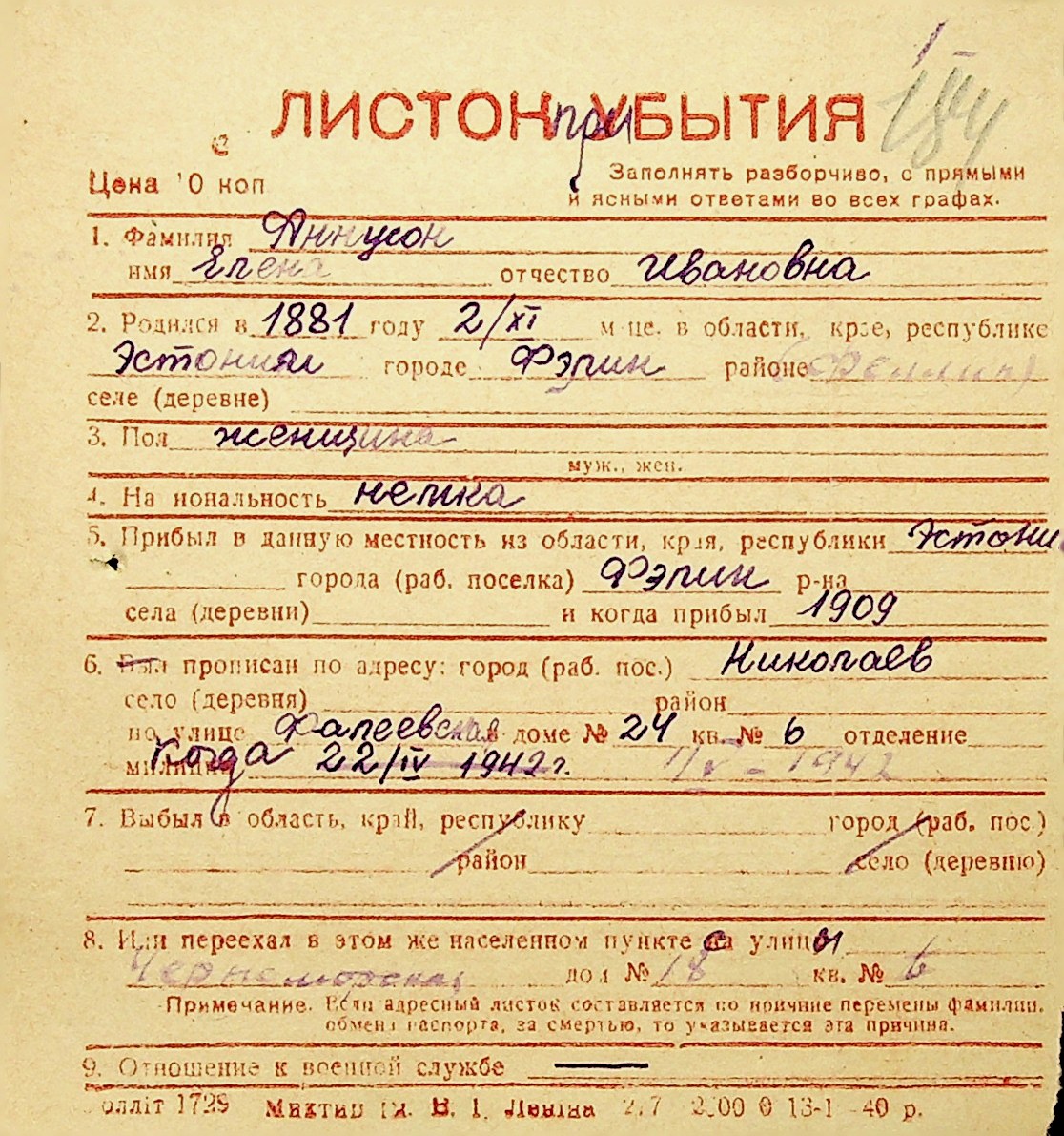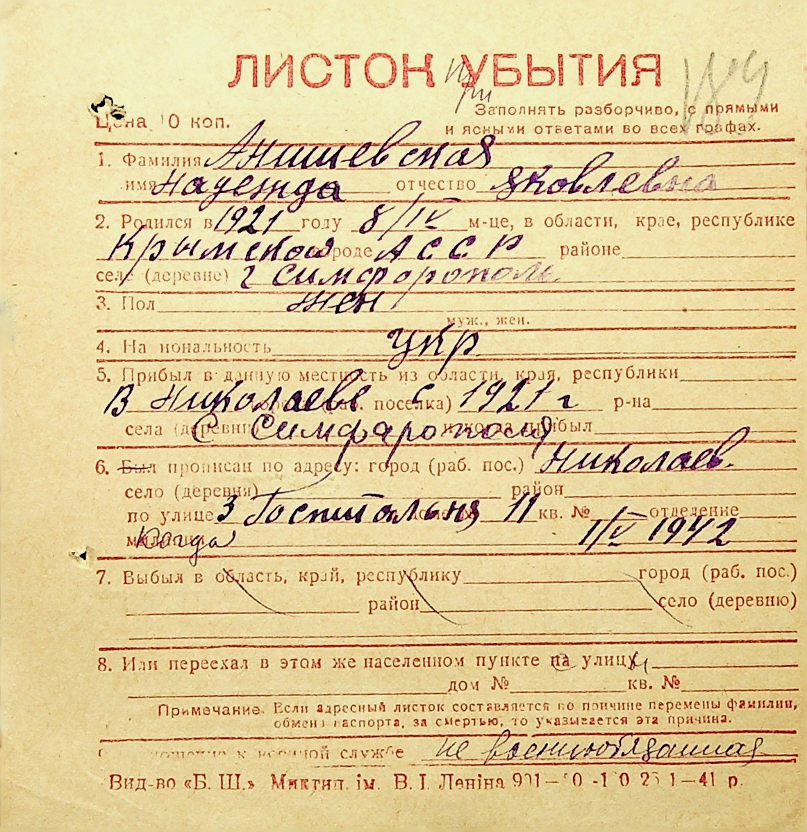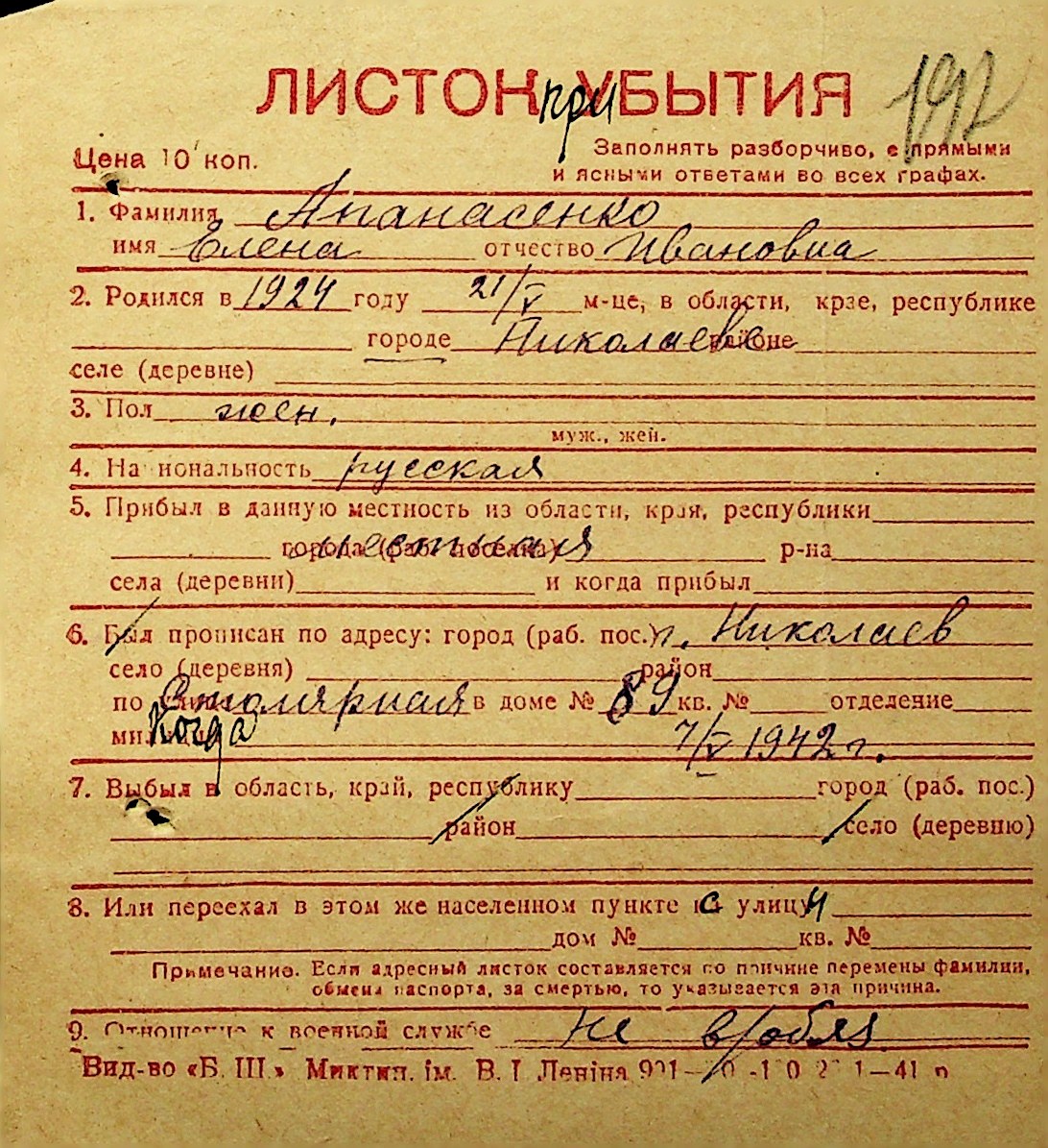 ◦ ◦ Фонд № Н-1016 “Адресне бюро м. Миколаєва”