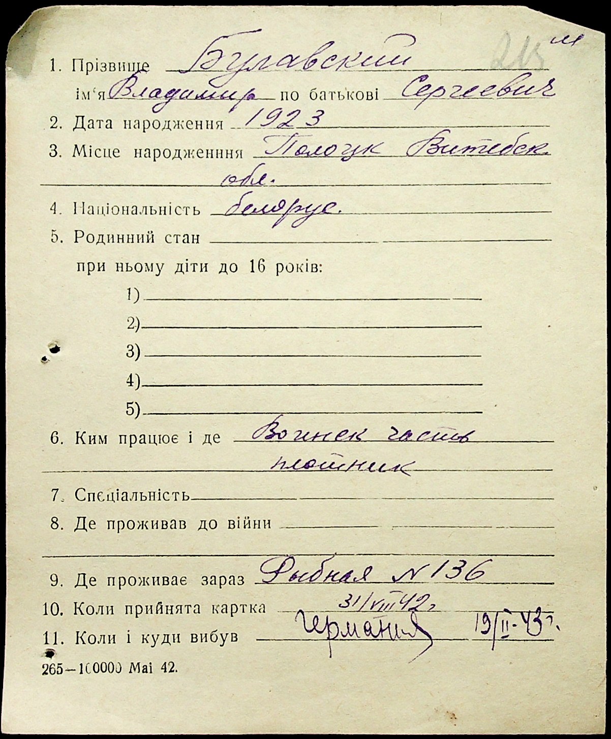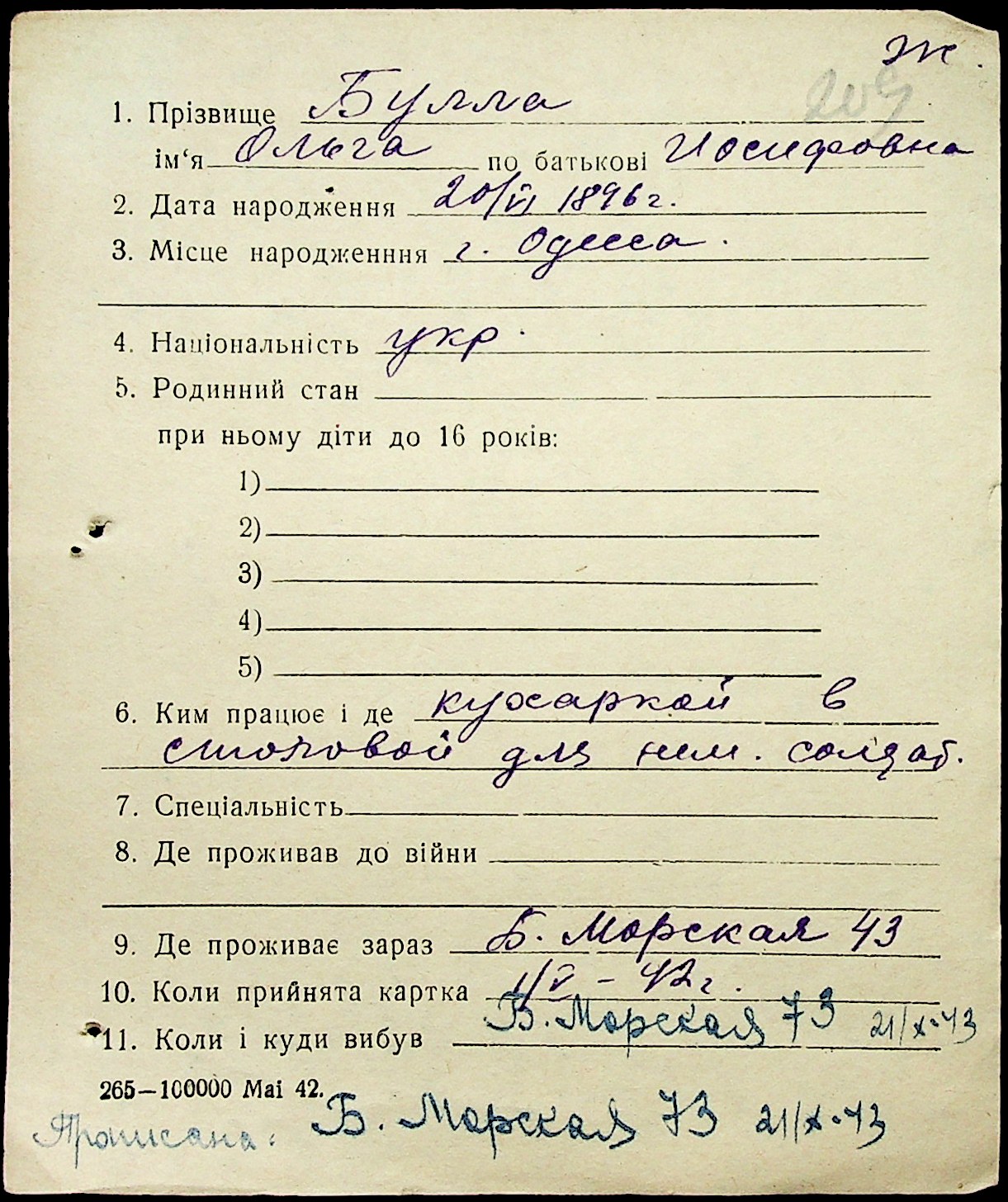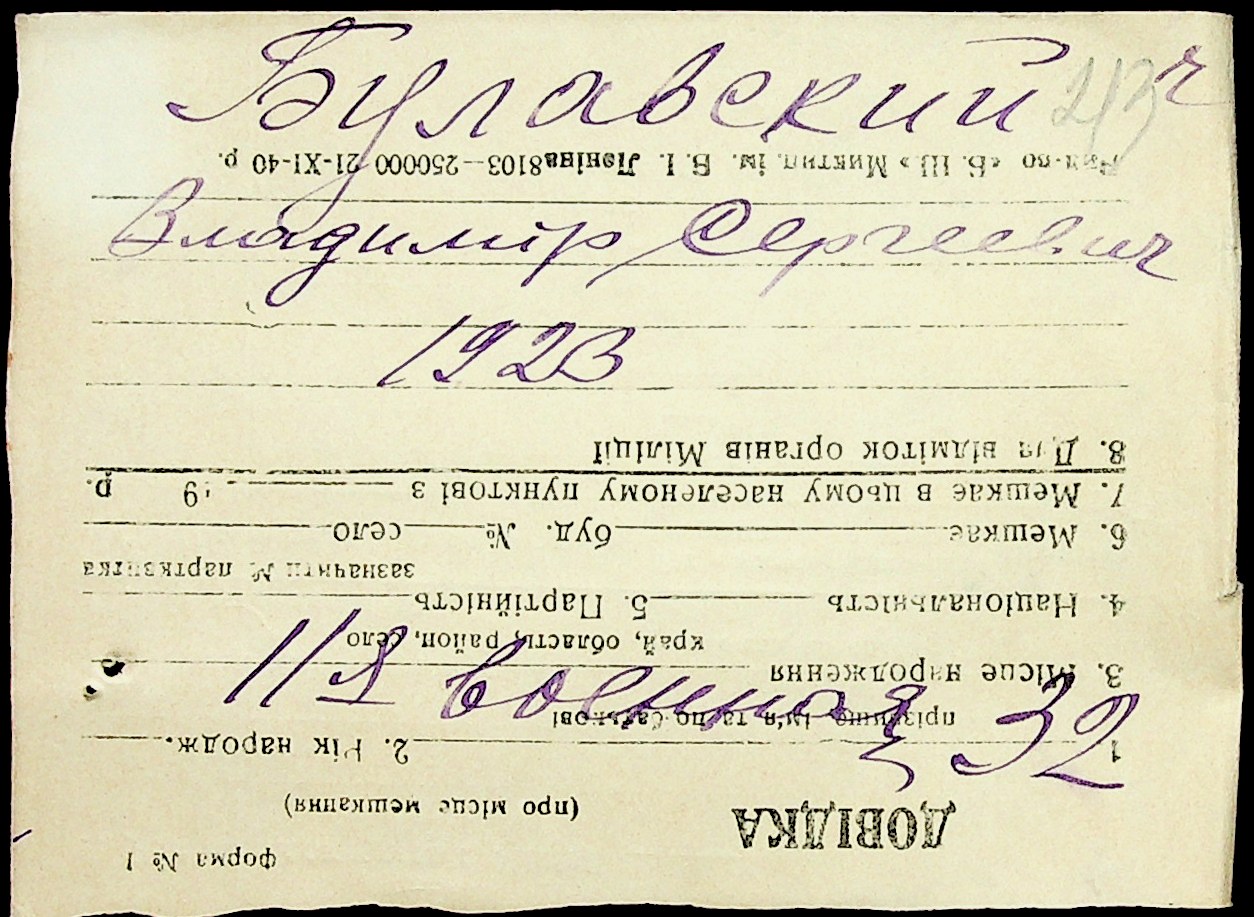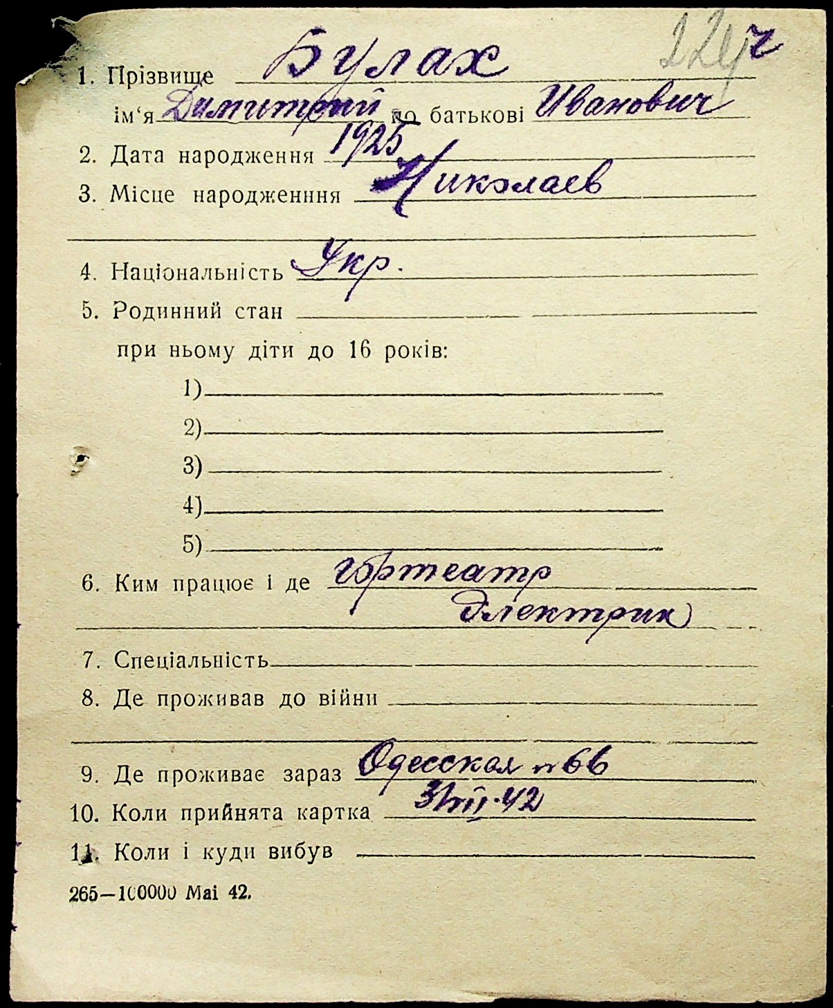 • • • • Справа № 1 “Картки адресного бюро м. Миколаєва на осіб, які працювали в німецько-фашистських установах та військових частинах. Прізвища на літеру «Б». Том 5”