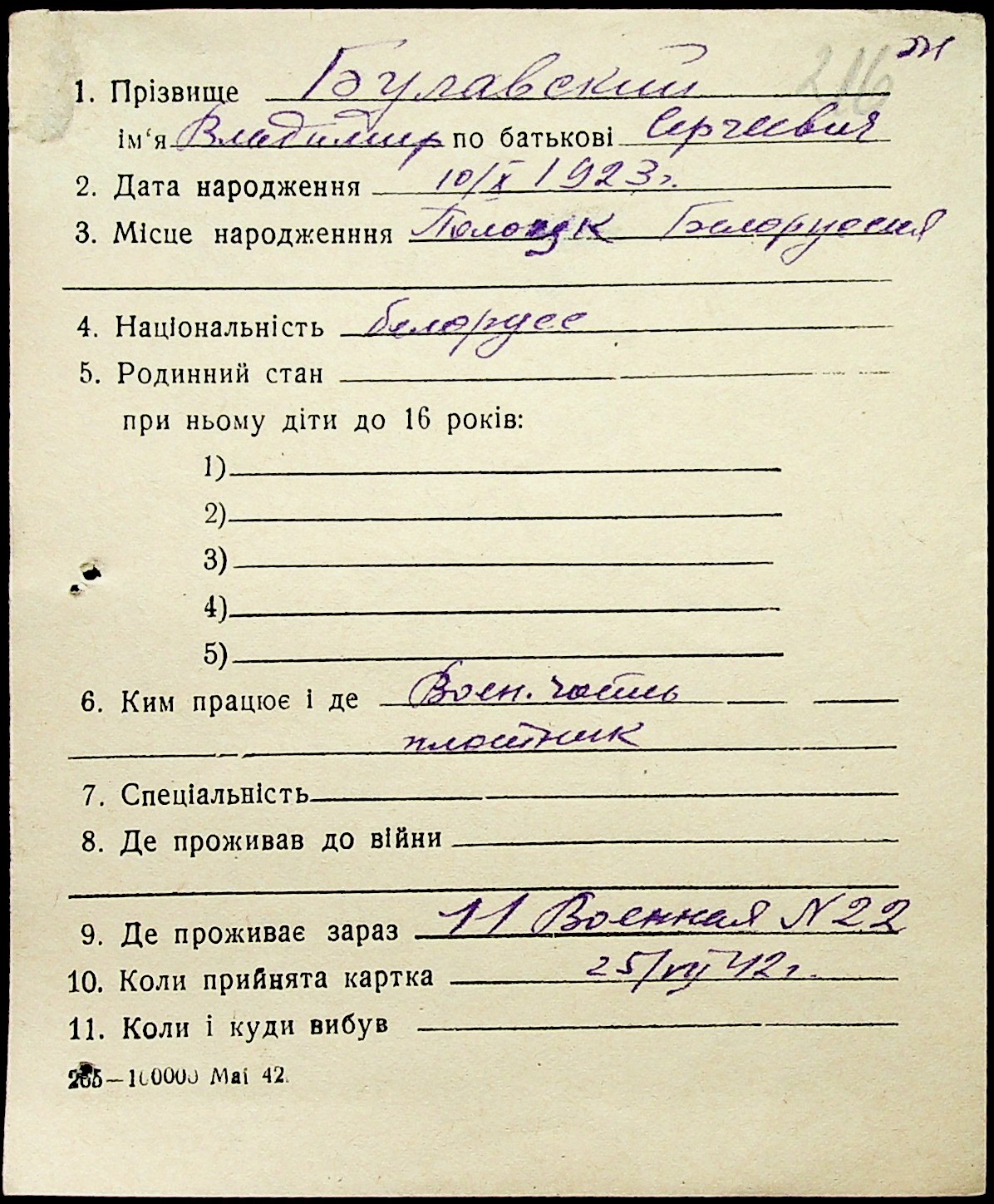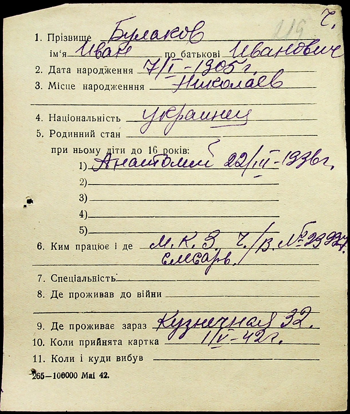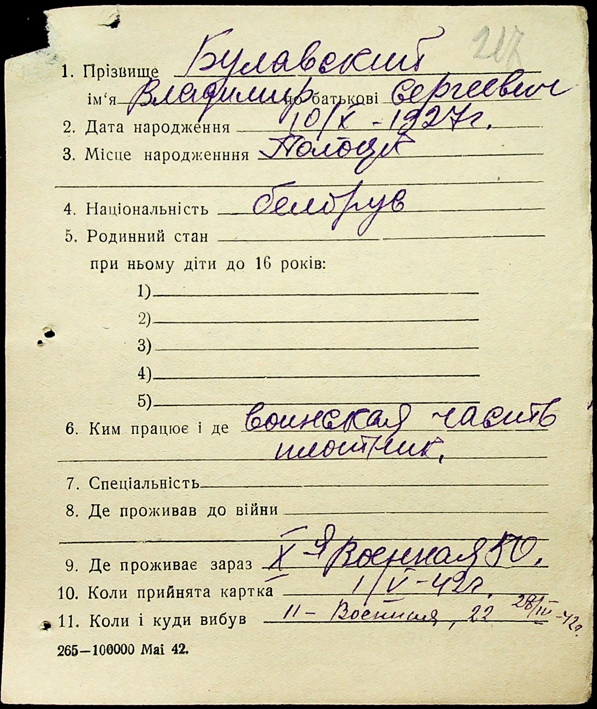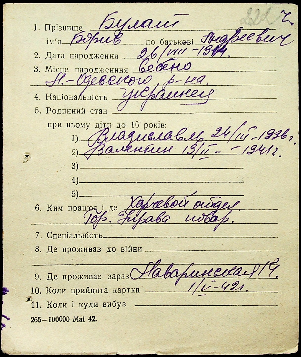 • • • • Справа № 1 “Картки адресного бюро м. Миколаєва на осіб, які працювали в німецько-фашистських установах та військових частинах. Прізвища на літеру «Б». Том 5”