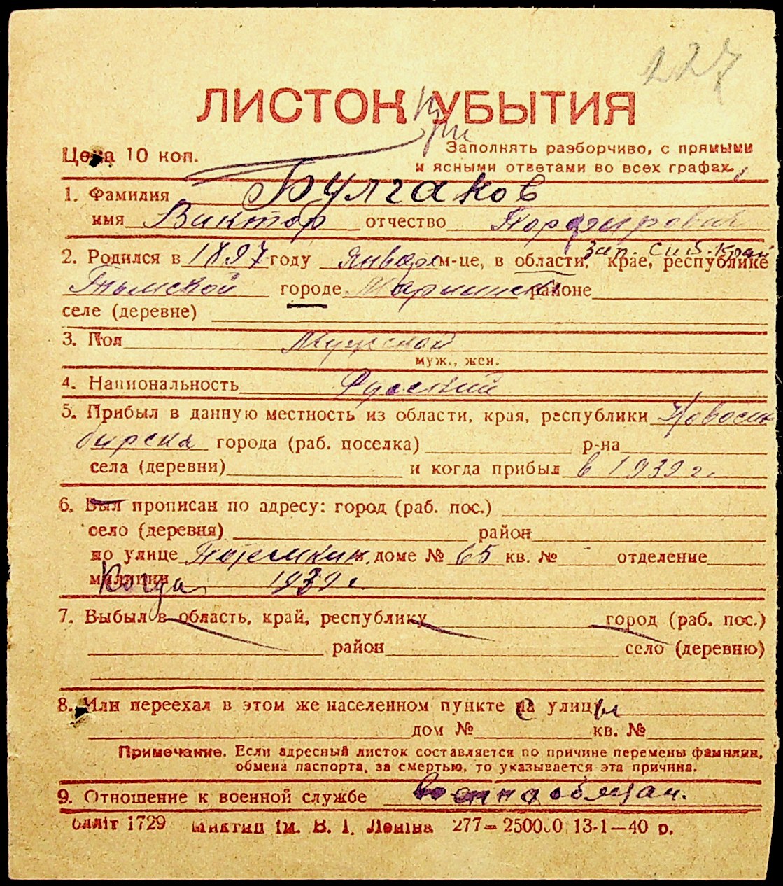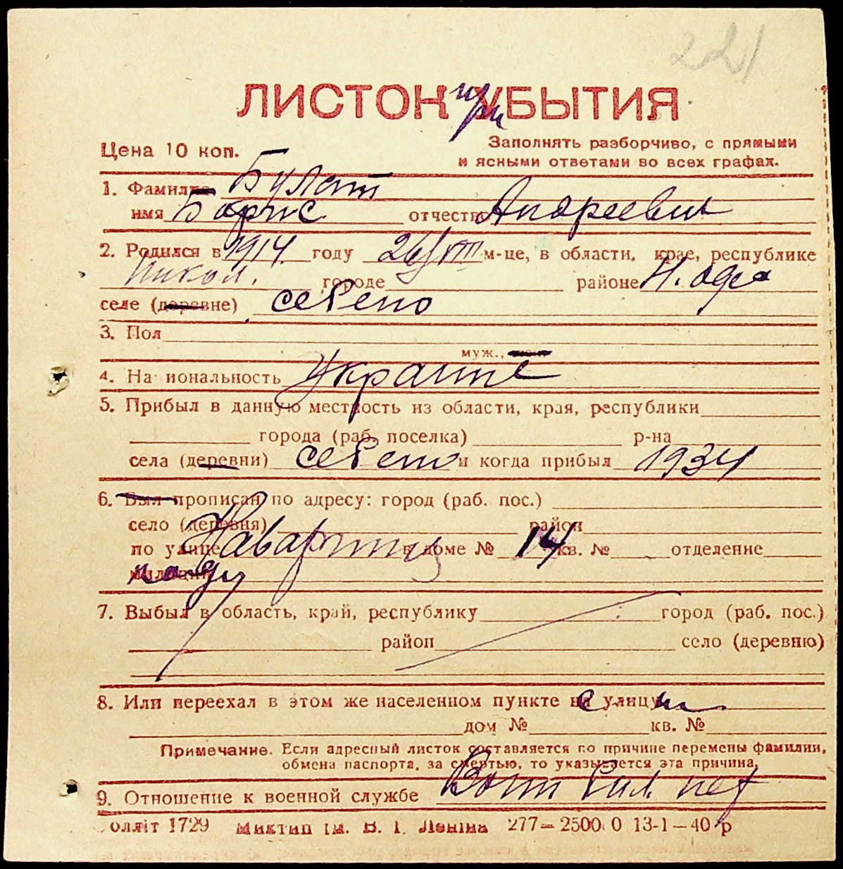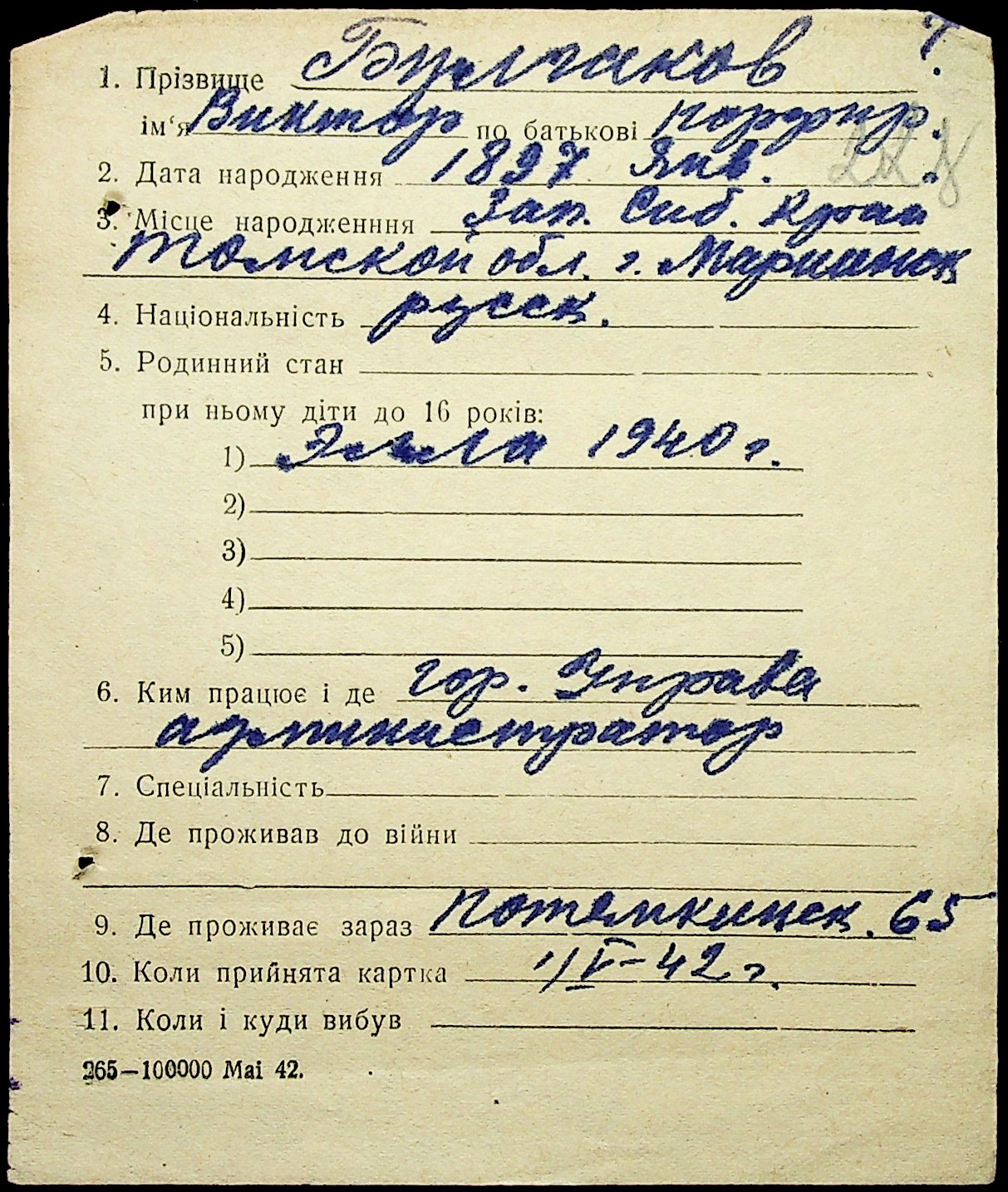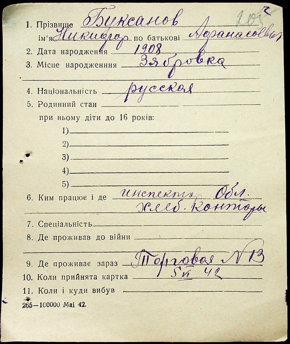 • • • • Справа № 1 “Картки адресного бюро м. Миколаєва на осіб, які працювали в німецько-фашистських установах та військових частинах. Прізвища на літеру «Б». Том 5”