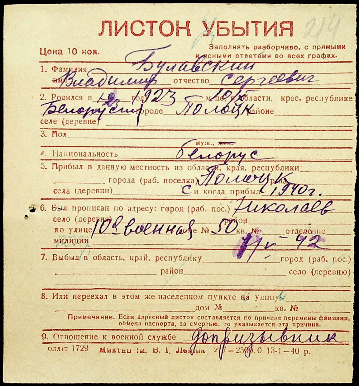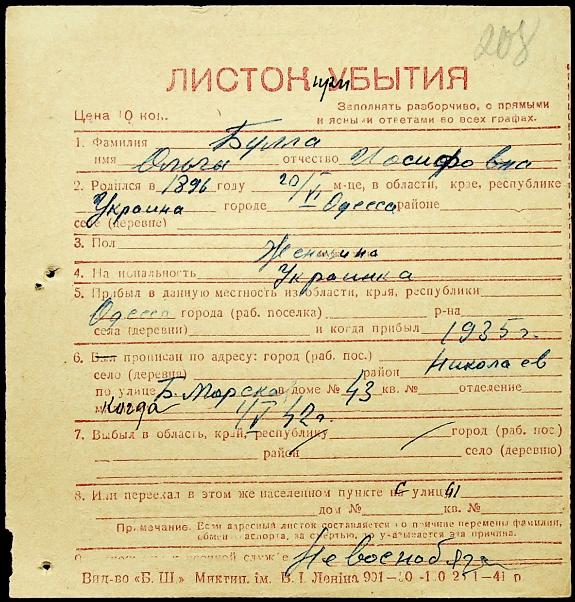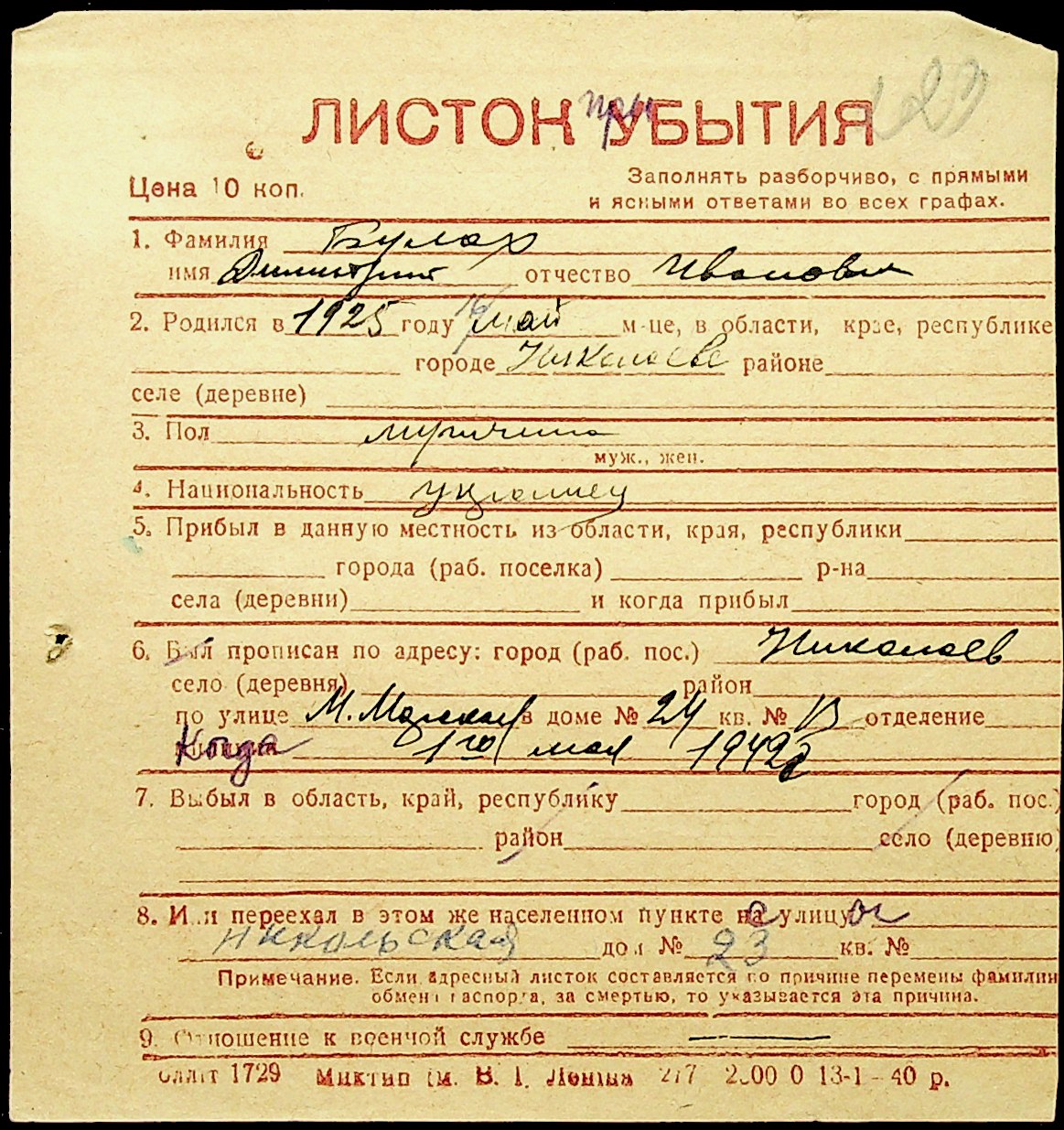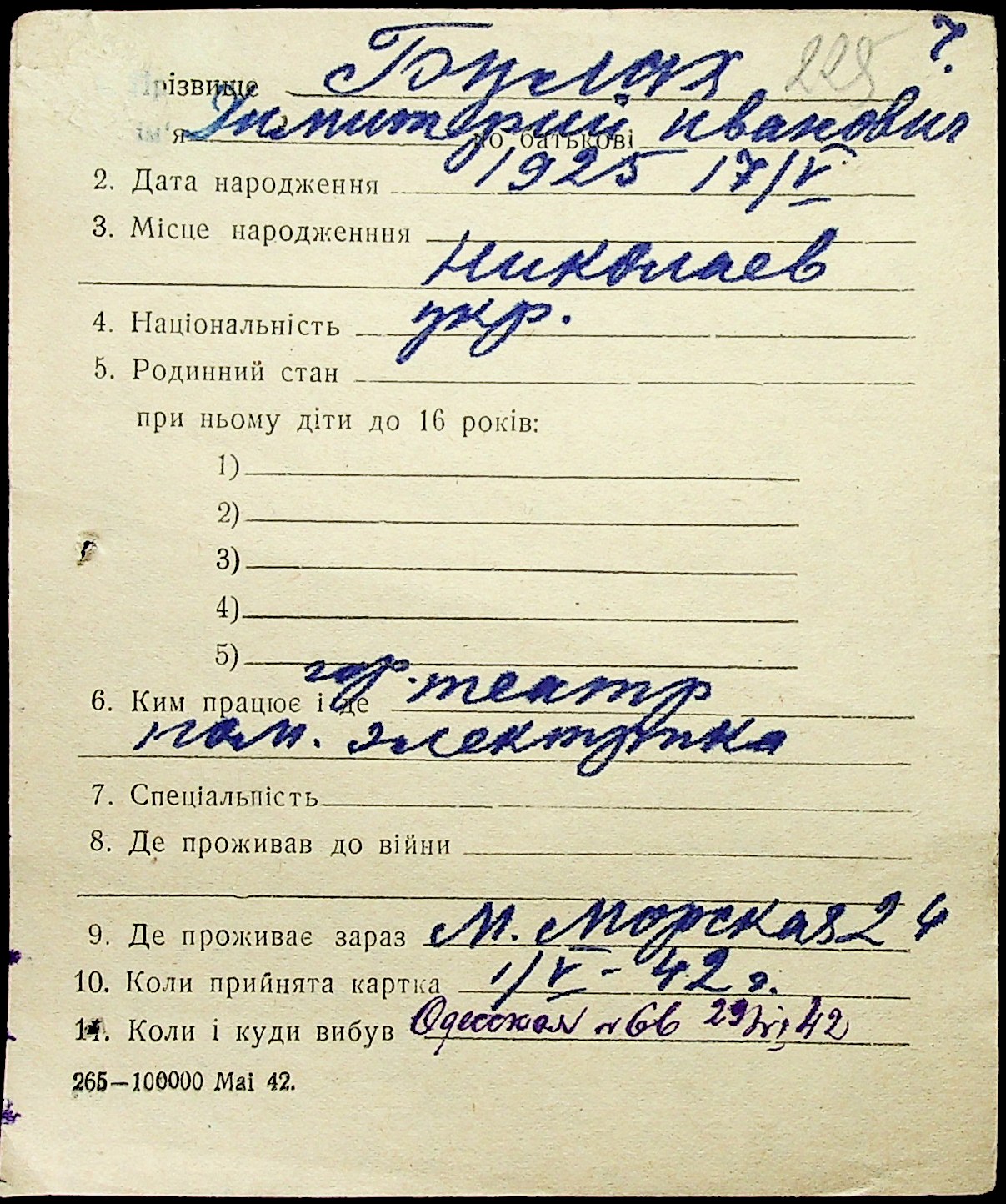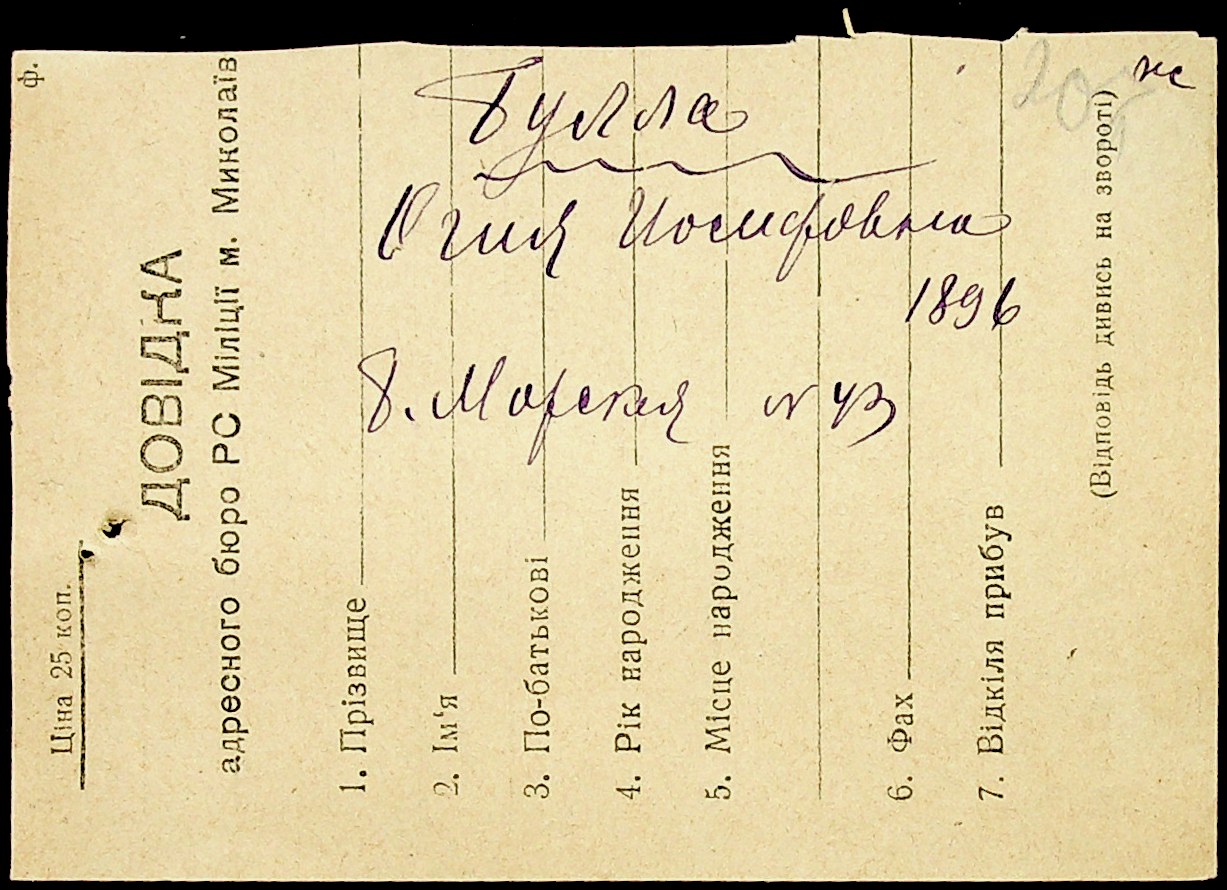 ◦ ◦ Фонд № Н-1016 “Адресне бюро м. Миколаєва”