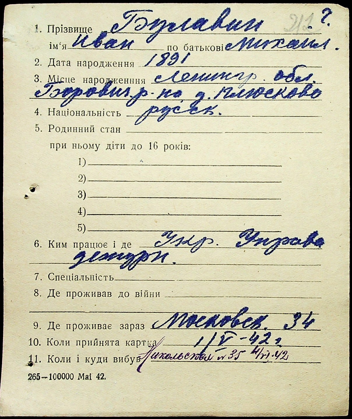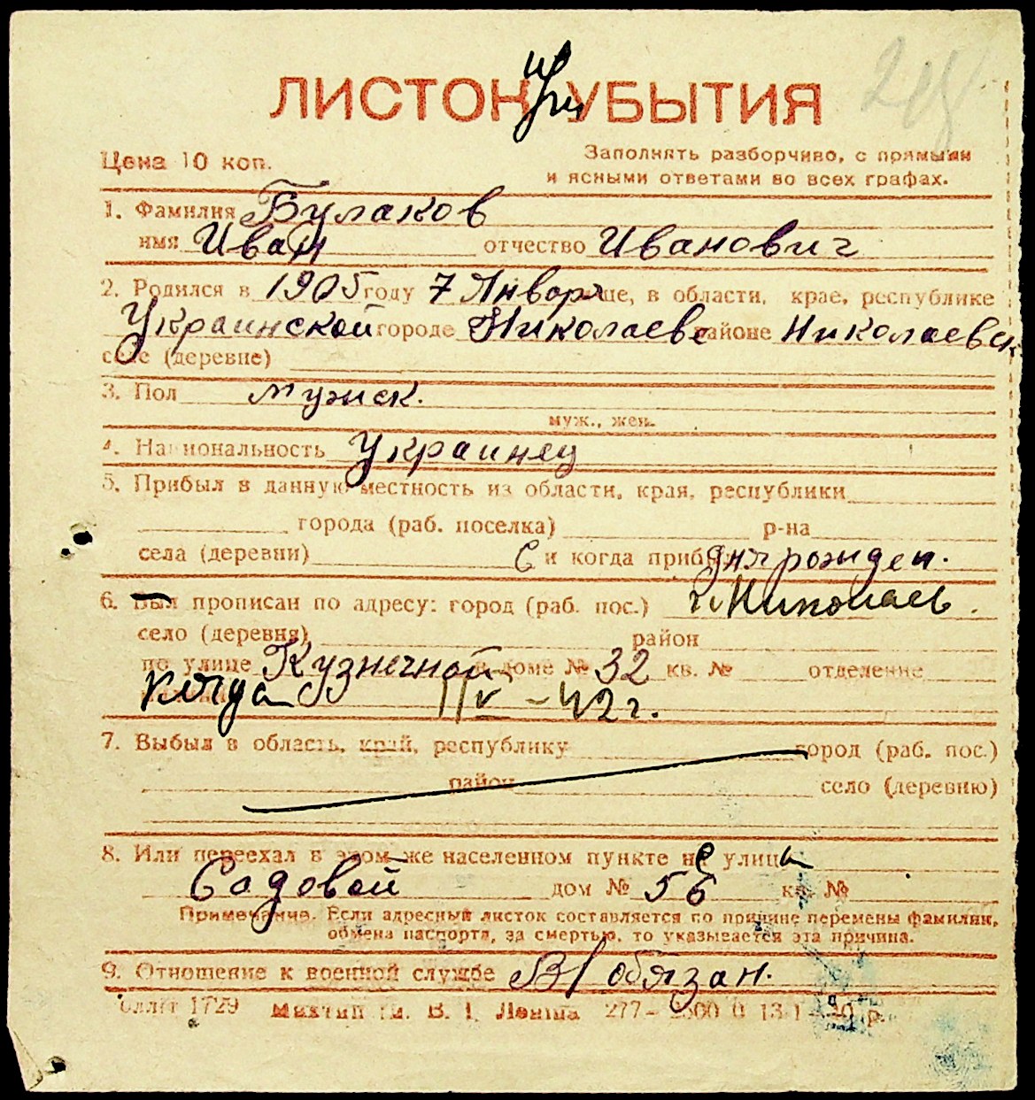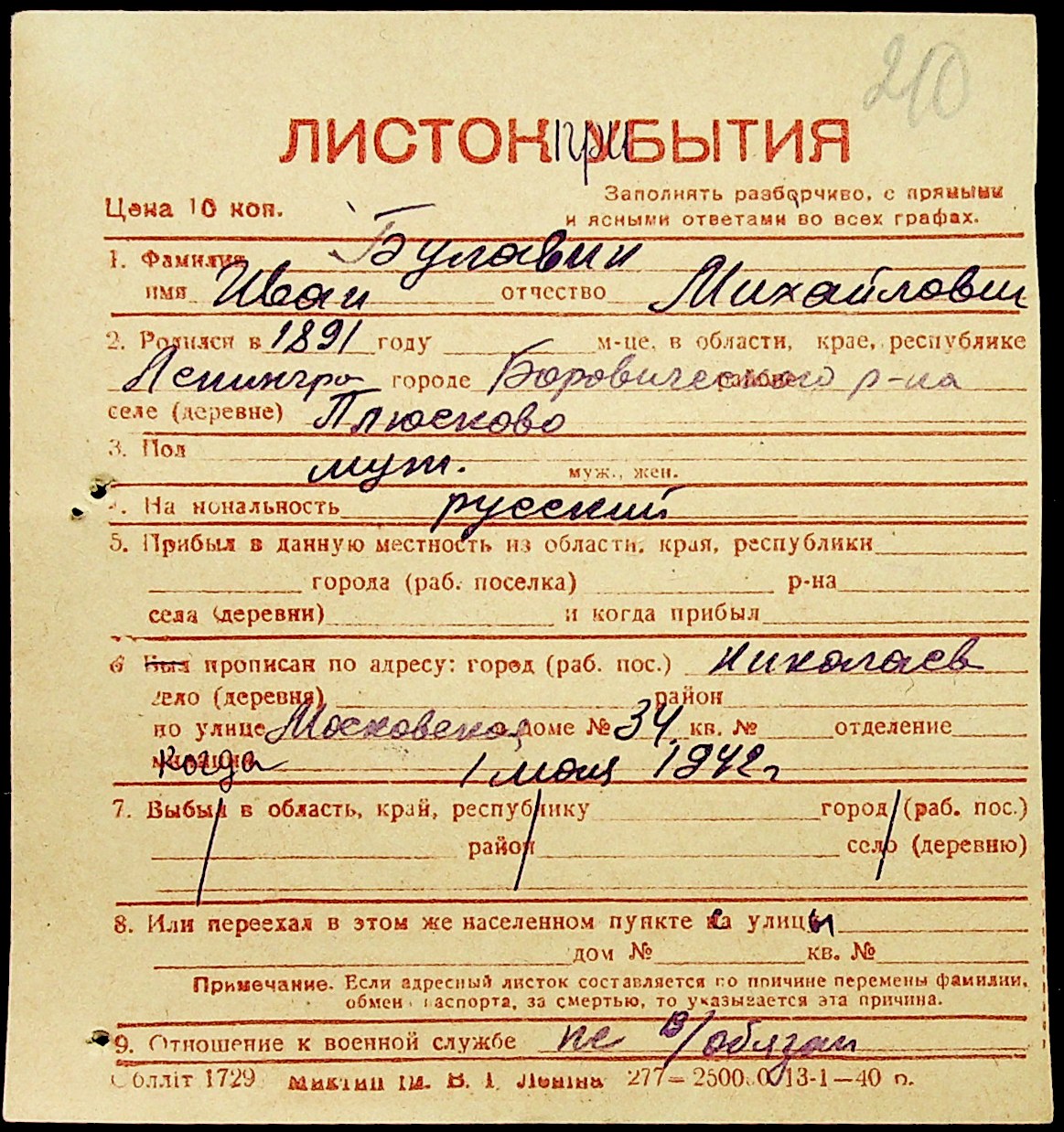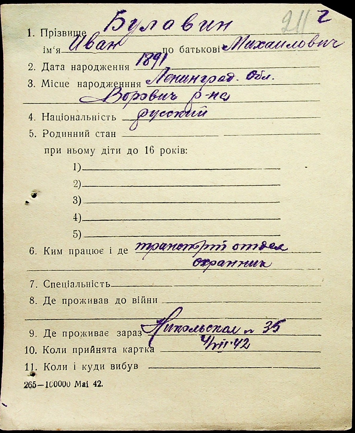 ◦ ◦ Фонд № Н-1016 “Адресне бюро м. Миколаєва”