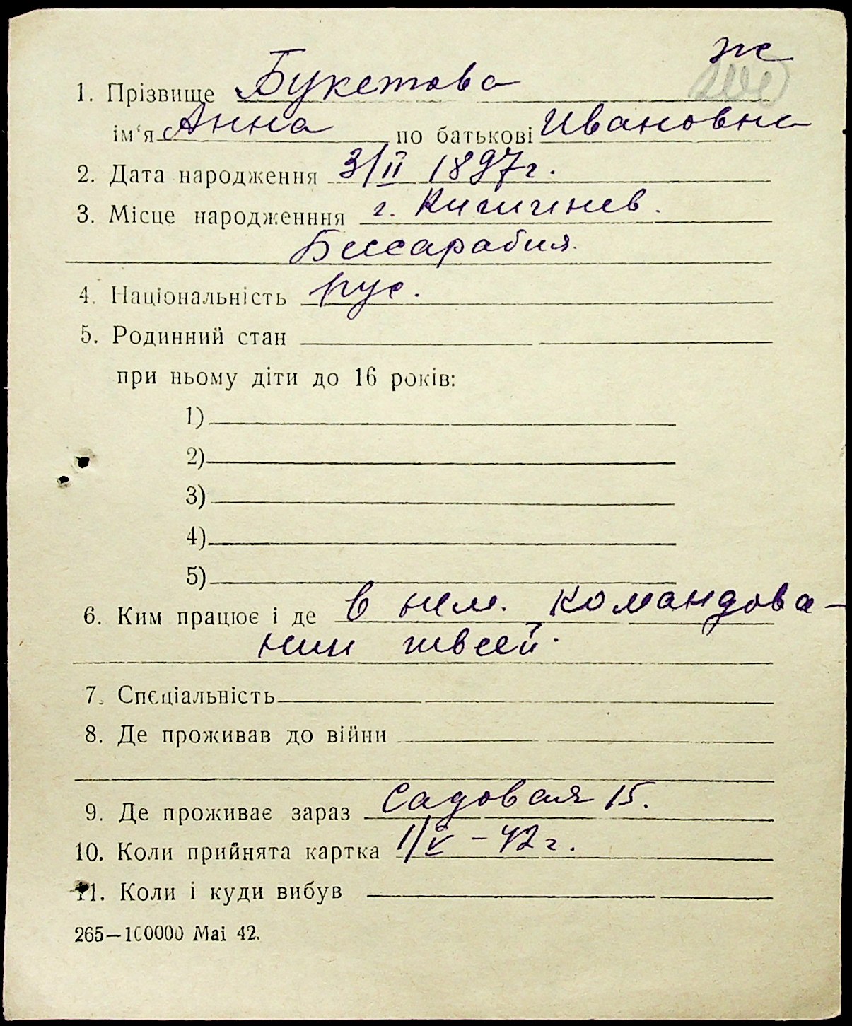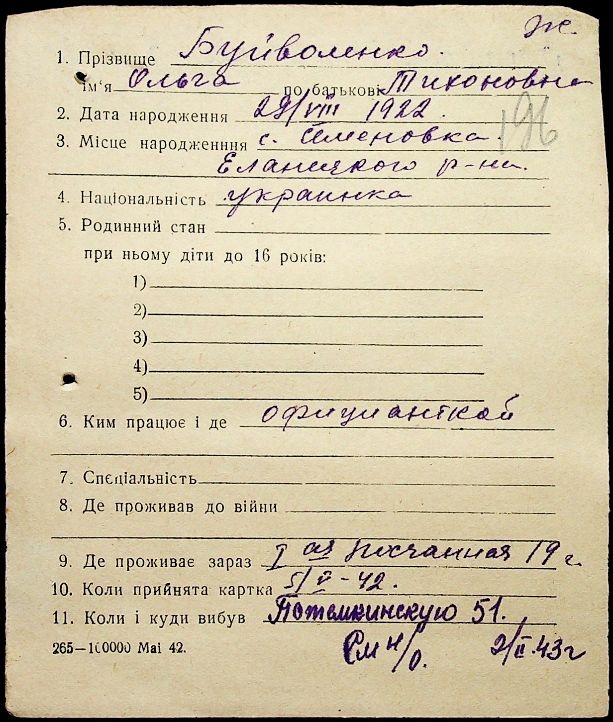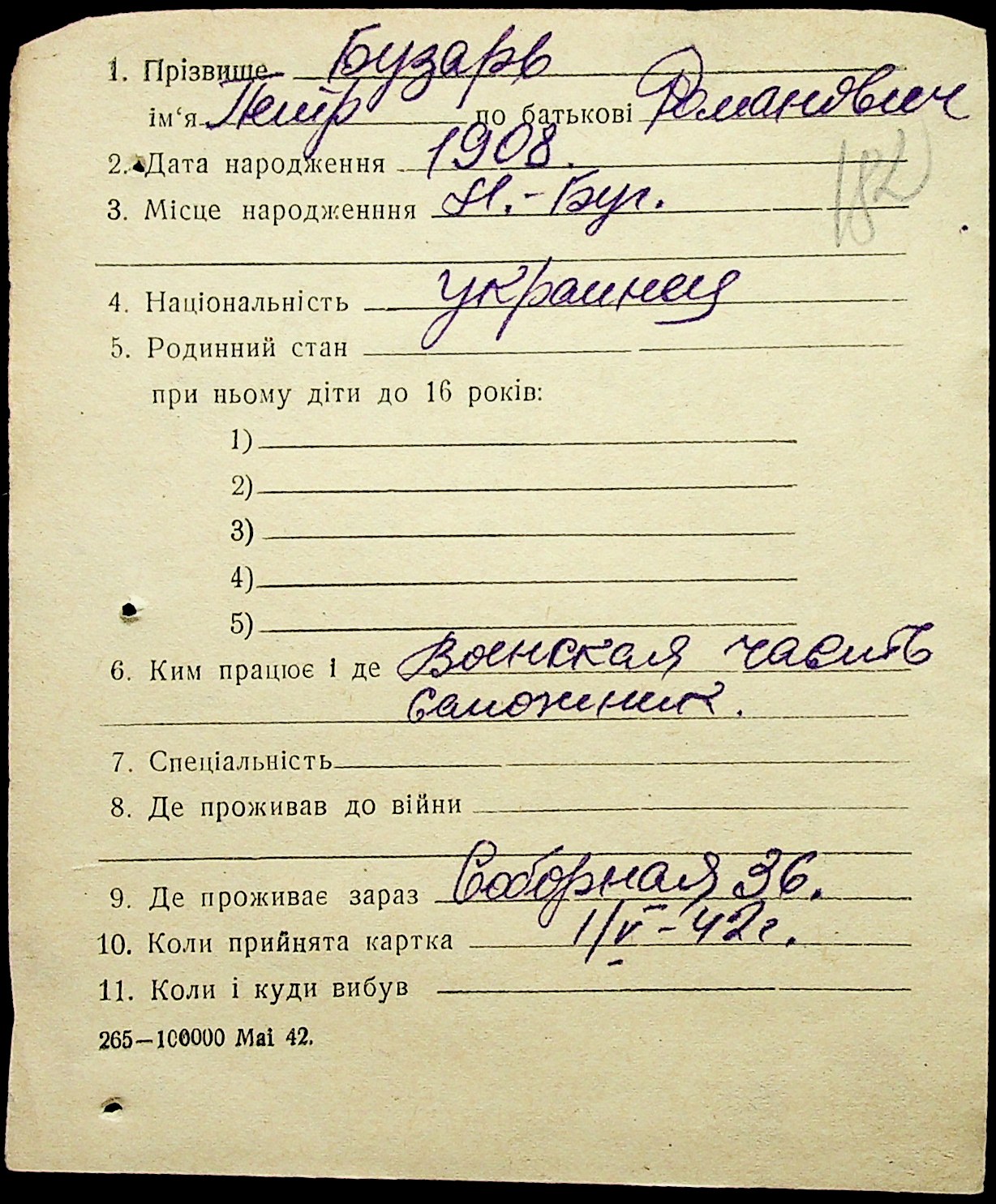 • • • • Справа № 1 “Картки адресного бюро м. Миколаєва на осіб, які працювали в німецько-фашистських установах та військових частинах. Прізвища на літеру «Б». Том 5”