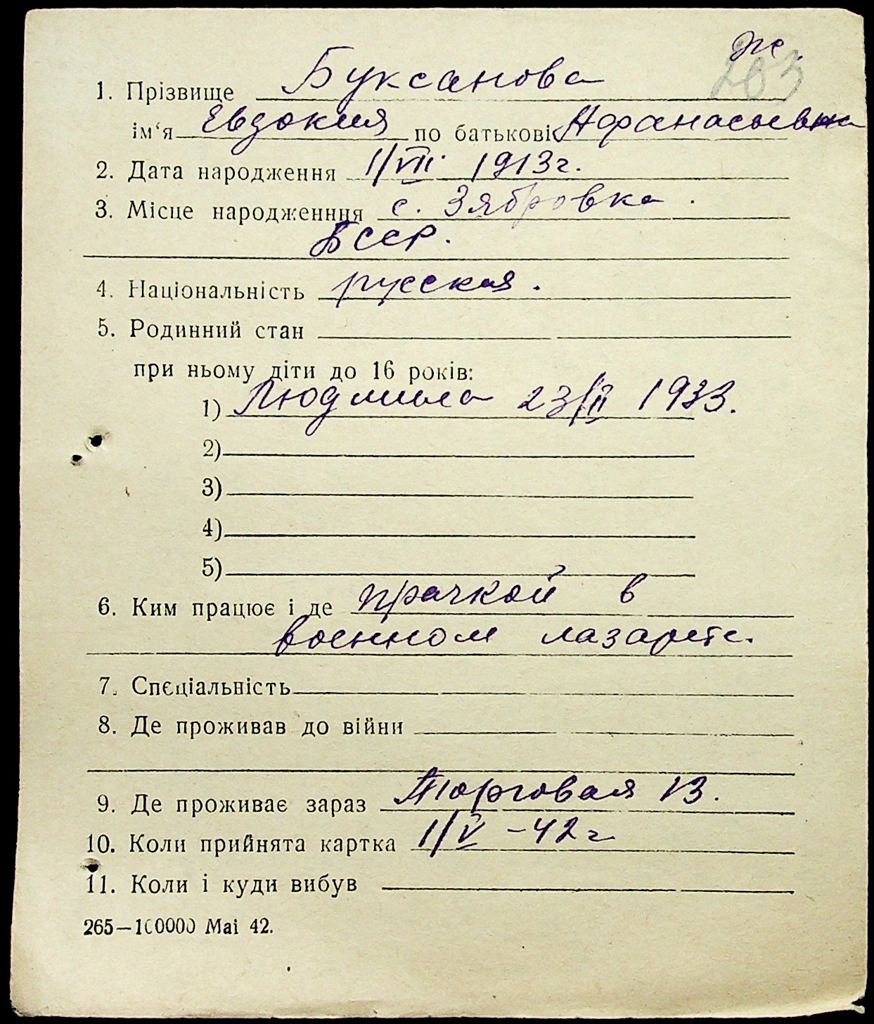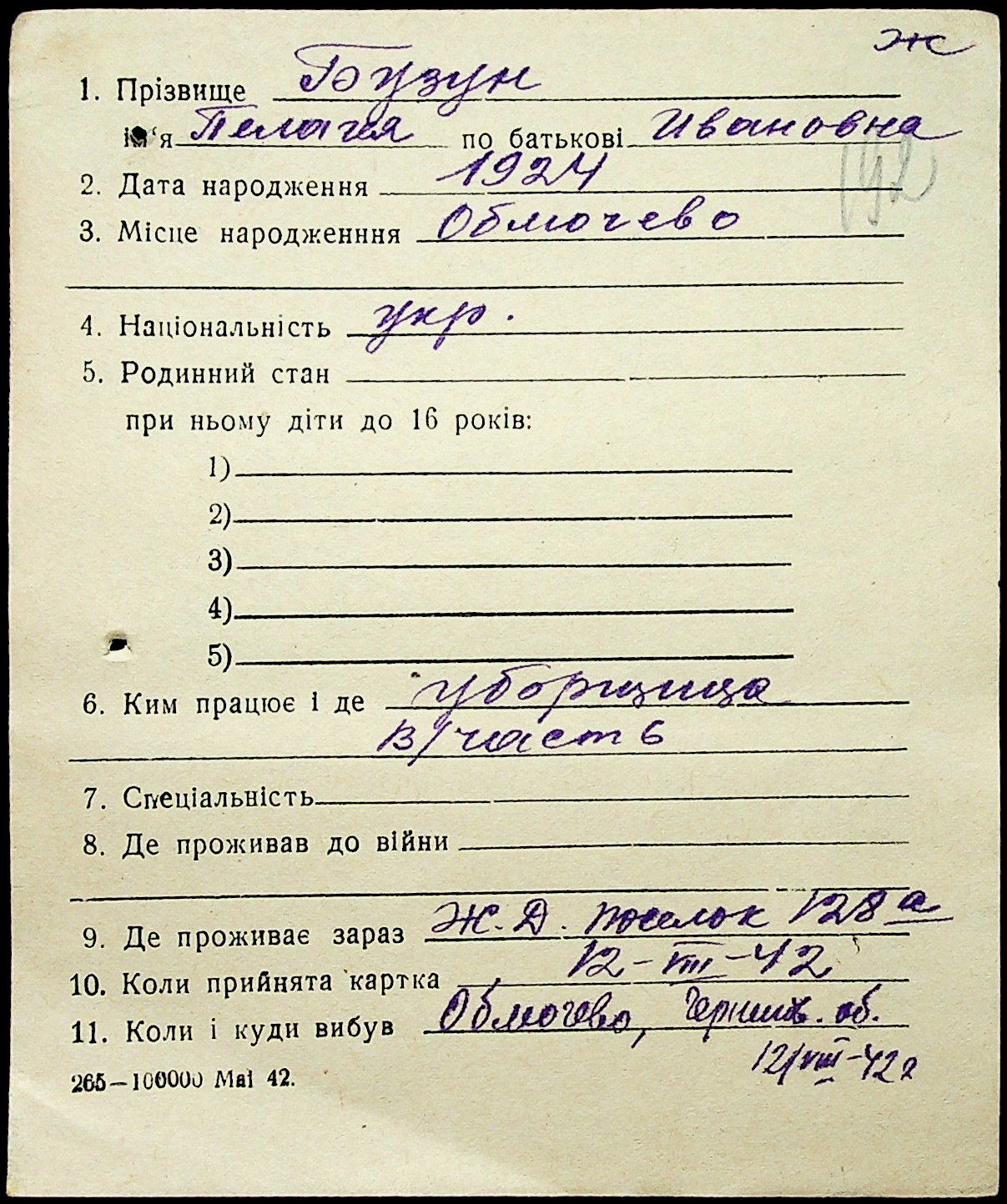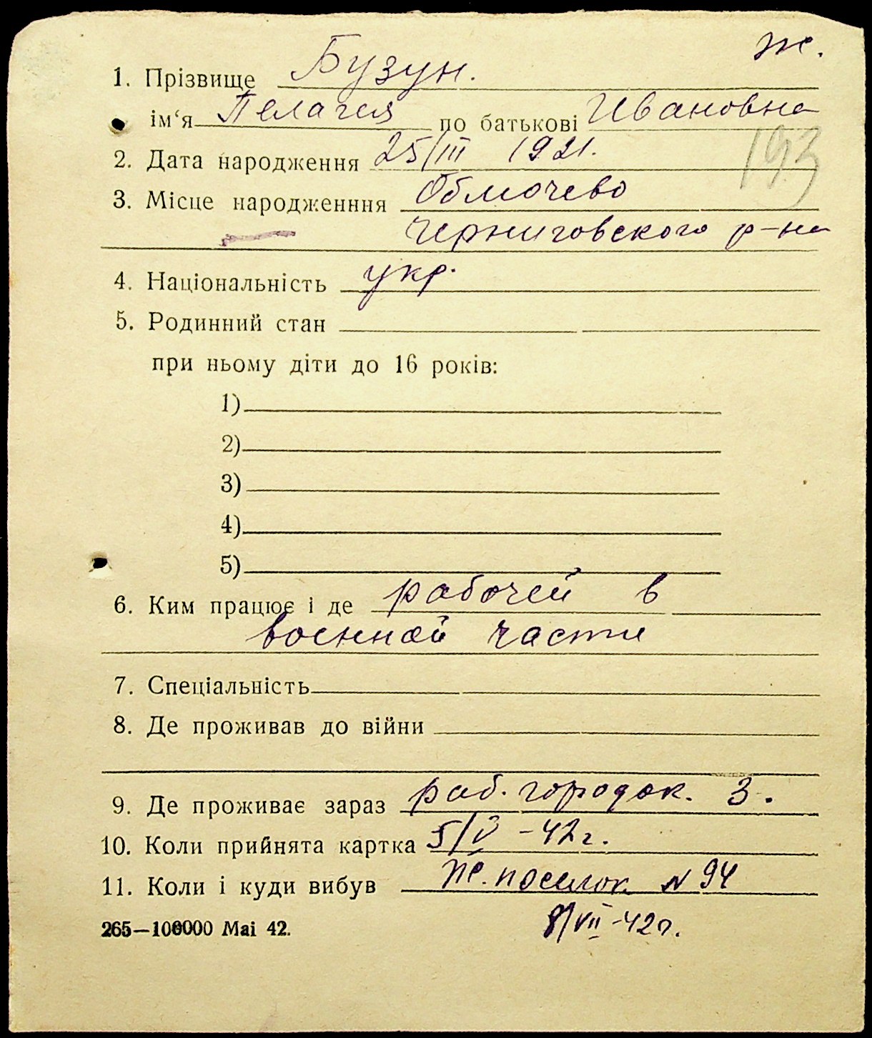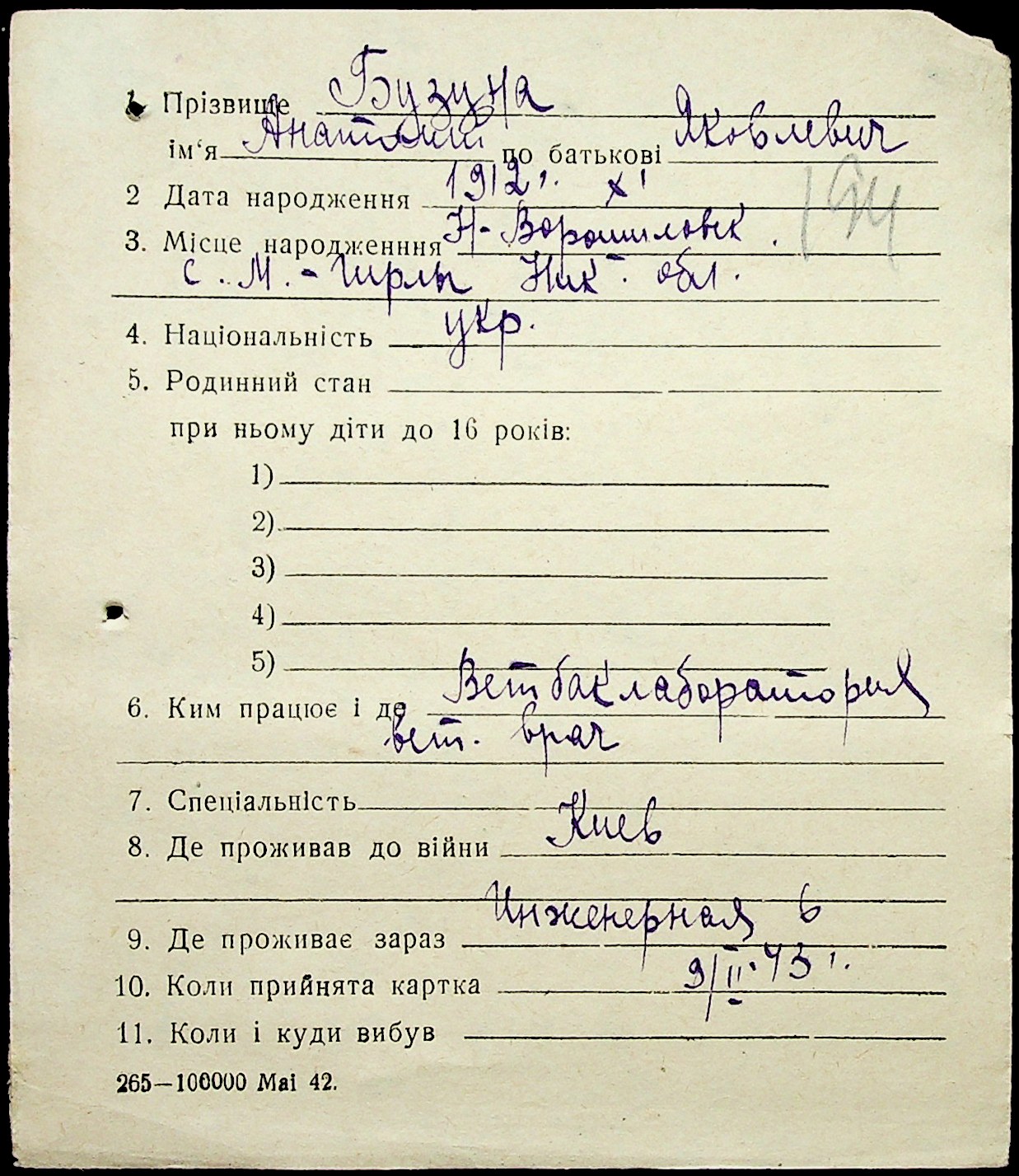 • • • • Справа № 1 “Картки адресного бюро м. Миколаєва на осіб, які працювали в німецько-фашистських установах та військових частинах. Прізвища на літеру «Б». Том 5”